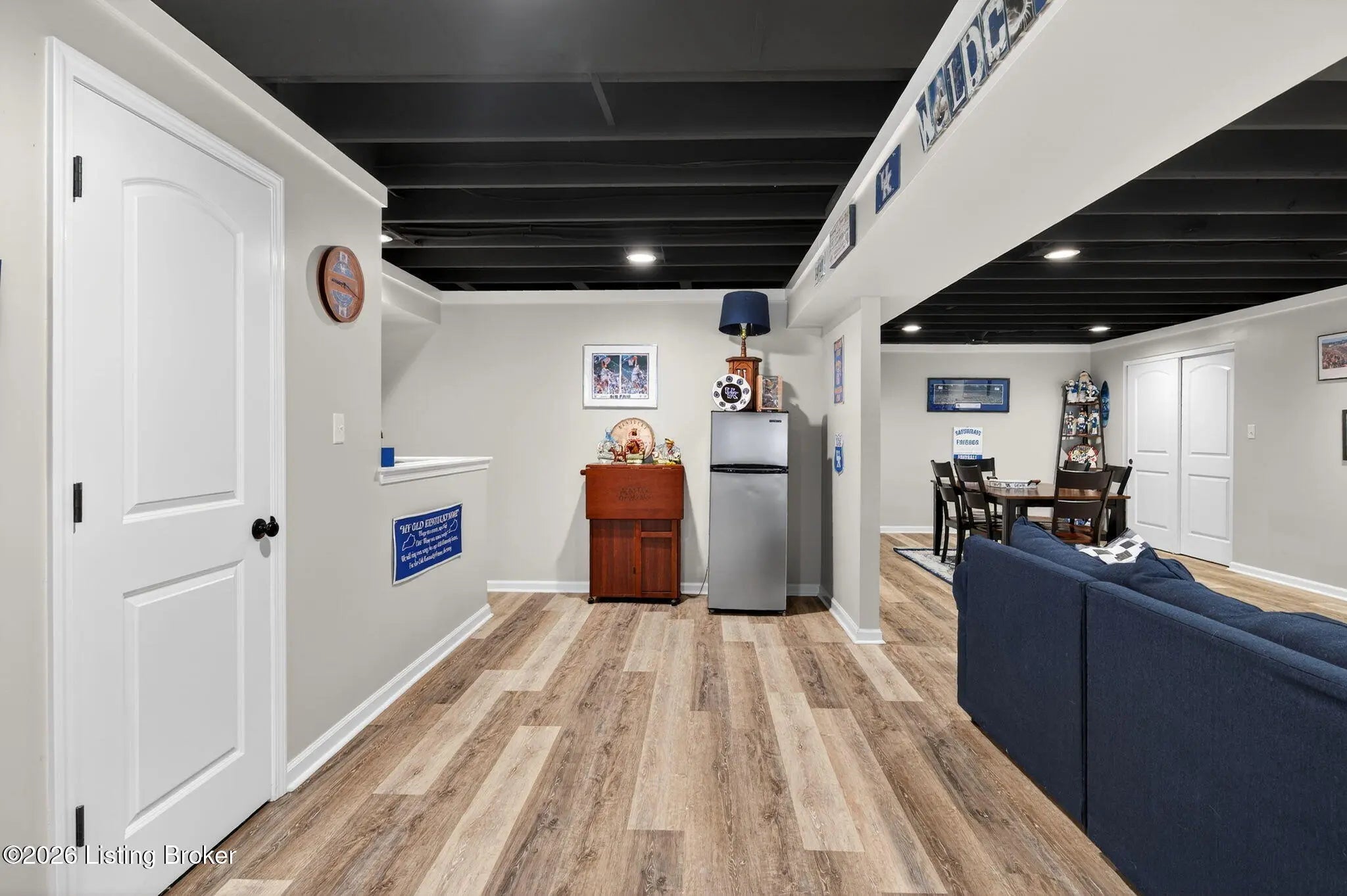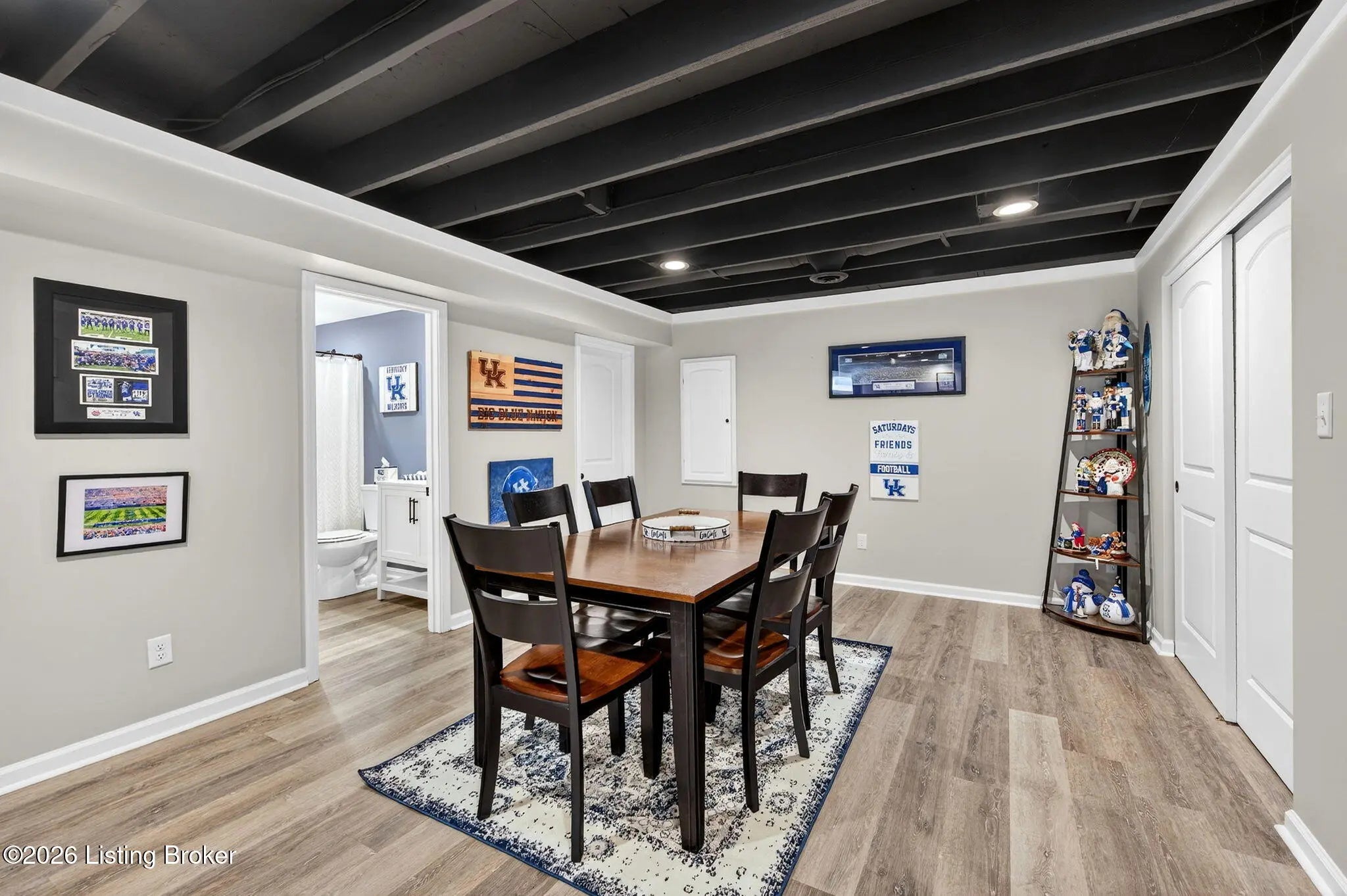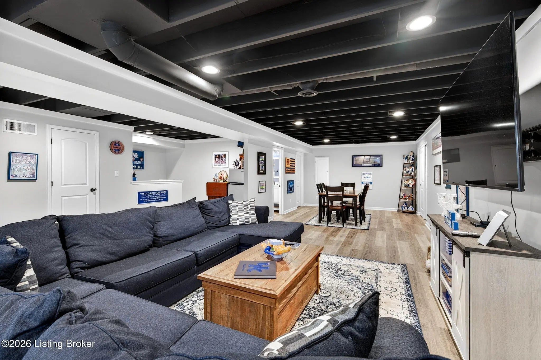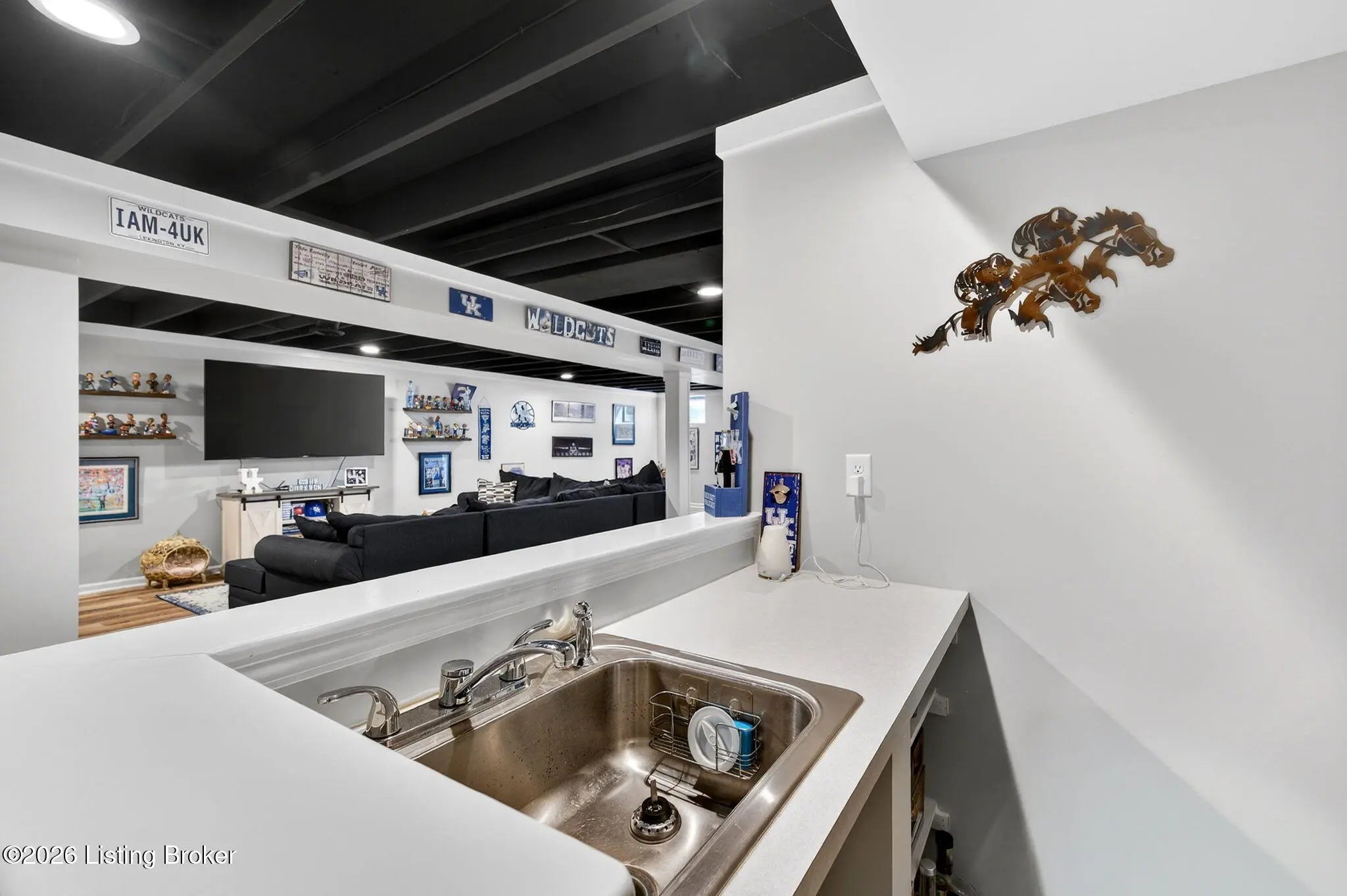 Move right in to this well-maintained, turn-key ranch in Oakwood, offering a functional layout and thoughtful finishes throughout. From the covered front porch, LVP flooring welcomes you into the foyer and flows through the main living areas. Arched openings lead into the open-concept living space, ideal for both everyday living and entertaining. The spacious living room features a tray ceiling and direct access to the patio, and opens seamlessly to the kitchen and dining area. The kitchen is well-appointed with granite countertops, tile backsplash, stainless appliances, and shaker-style cabinetry, complemented by a warm wood perimeter and contrasting white center island with breakfast bar seating. Just off the garage entry, you'll find a convenient walk-in pantry and laundry room. The primary suite is privately positioned apart from the secondary bedrooms and includes a walk-in closet and en suite bath with double vanity, walk-in shower, and water closet. Two additional bedrooms and a full bath complete the main level. The finished lower level expands your living space with a large family room, wet bar, game area, full bath, and a flexible bonus room. Enjoy the outdoors from the patio overlooking the fully fenced backyard with a storage shed. Two-car garage. Conveniently located with easy access to local shopping, dining, and I-65, this home offers a comfortable lifestyle just minutes from the heart of Shepherdsville and a straightforward commute to Louisville.