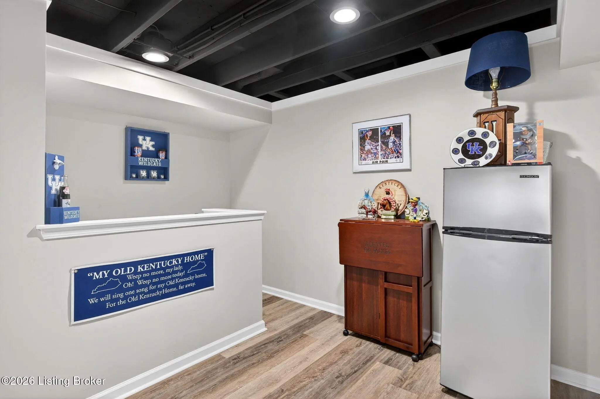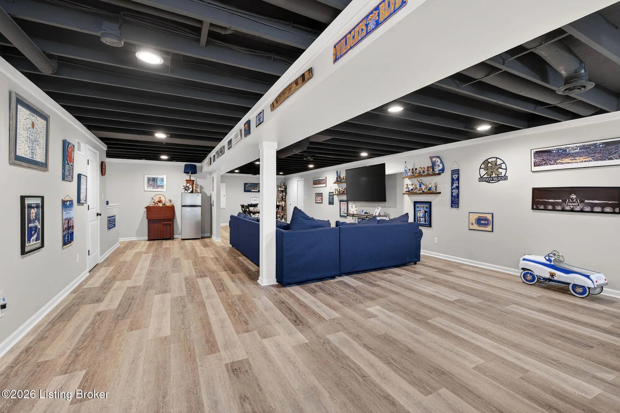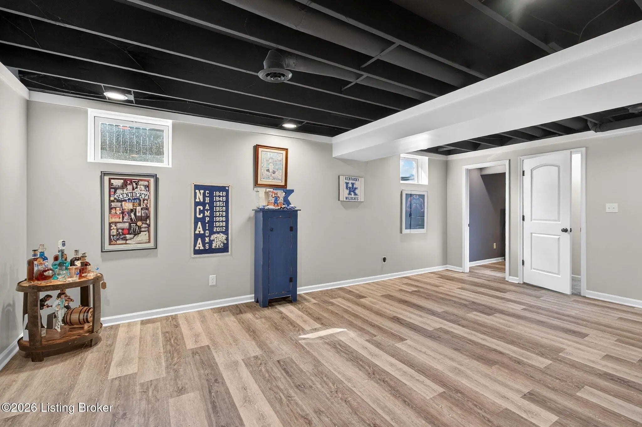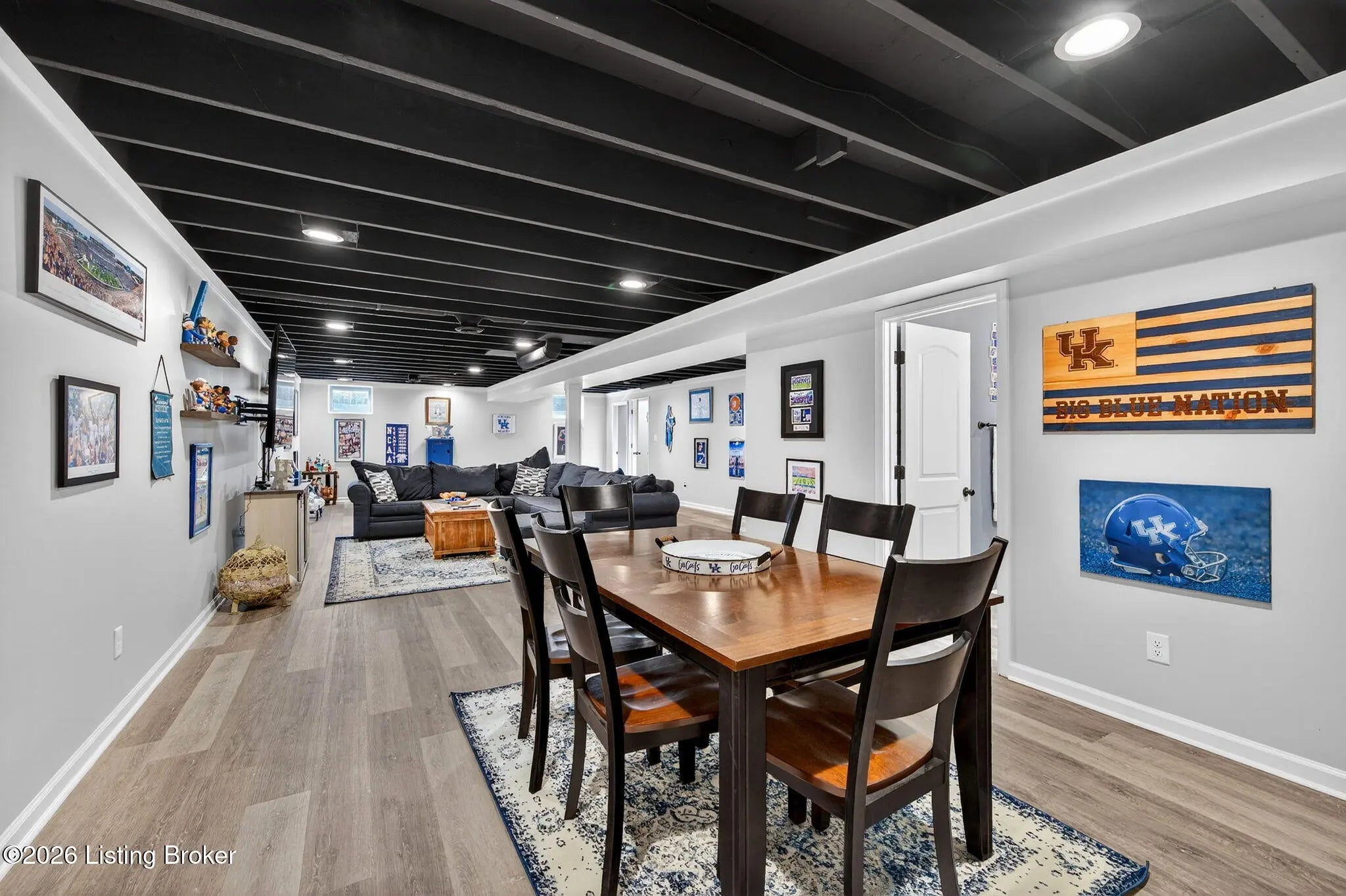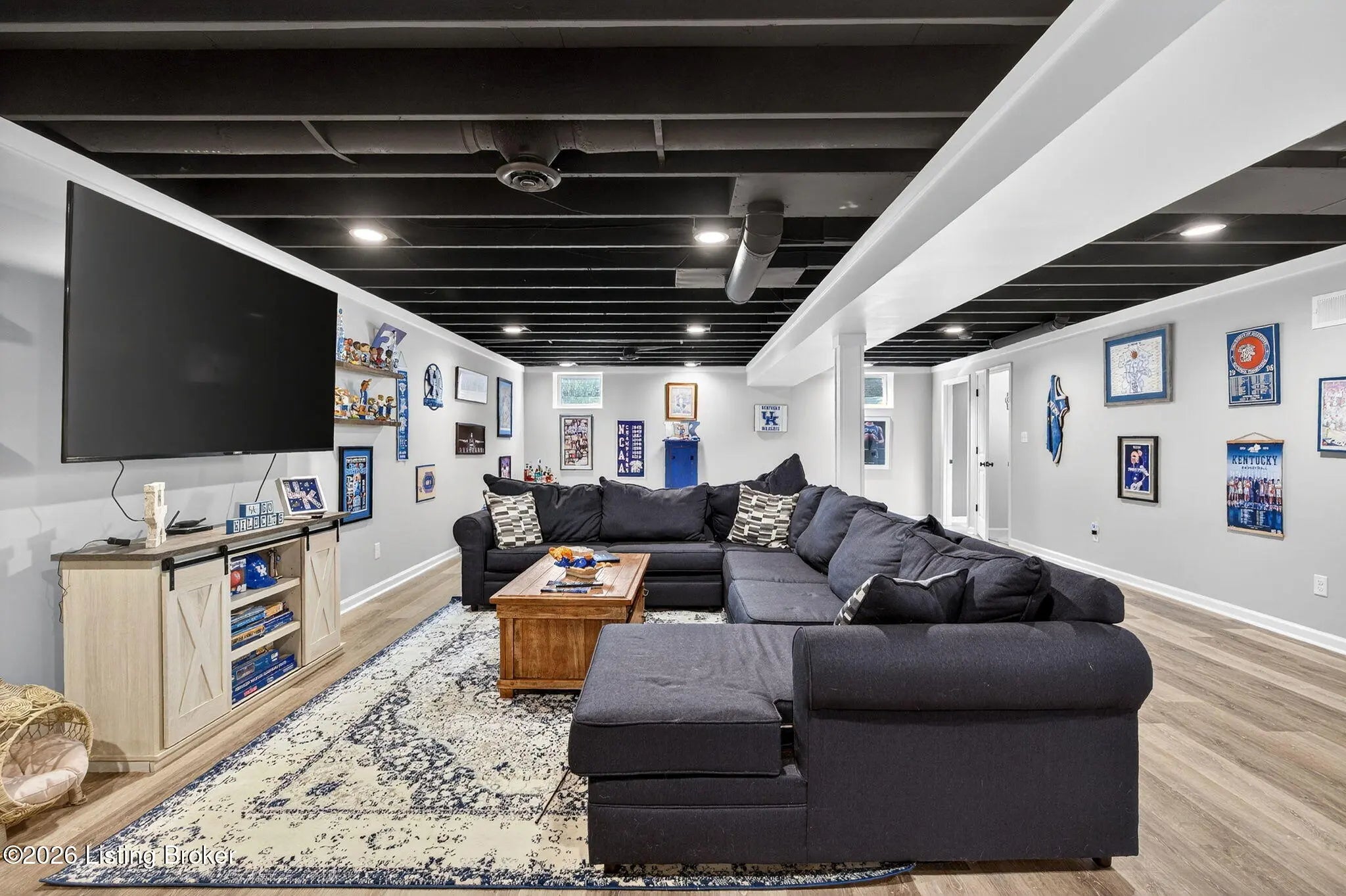 Move right in to this well-maintained, turn-key ranch in Oakwood, offering a functional layout and thoughtful finishes throughout. From the covered front porch, LVP flooring welcomes you into the foyer and flows through the main living areas. Arched openings lead into the open-concept living space, ideal for both everyday living and entertaining. The spacious living room features a tray ceiling and direct access to the patio, and opens seamlessly to the kitchen and dining area. The kitchen is well-appointed with granite countertops, tile backsplash, stainless appliances, and shaker-style cabinetry, complemented by a warm wood perimeter and contrasting white center island with breakfast bar seating. Just off the garage entry, you'll find a convenient walk-in pantry and laundry room. The primary suite is privately positioned apart from the secondary bedrooms and includes a walk-in closet and en suite bath with double vanity, walk-in shower, and water closet. Two additional bedrooms and a full bath complete the main level. The finished lower level expands your living space with a large family room, wet bar, game area, full bath, and a flexible bonus room. Enjoy the outdoors from the patio overlooking the fully fenced backyard with a storage shed. Two-car garage. Conveniently located with easy access to local shopping, dining, and I-65, this home offers a comfortable lifestyle just minutes from the heart of Shepherdsville and a straightforward commute to Louisville.