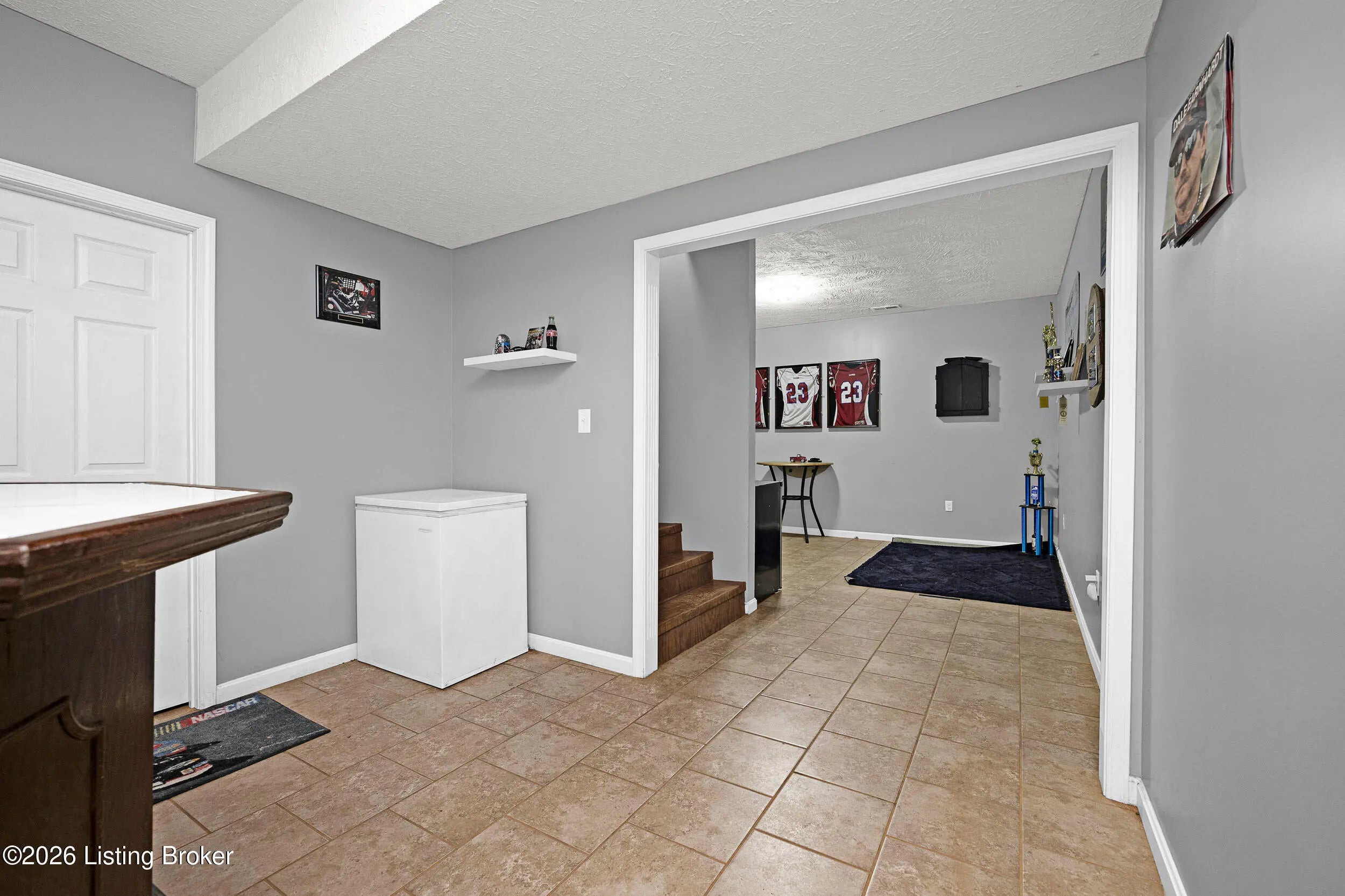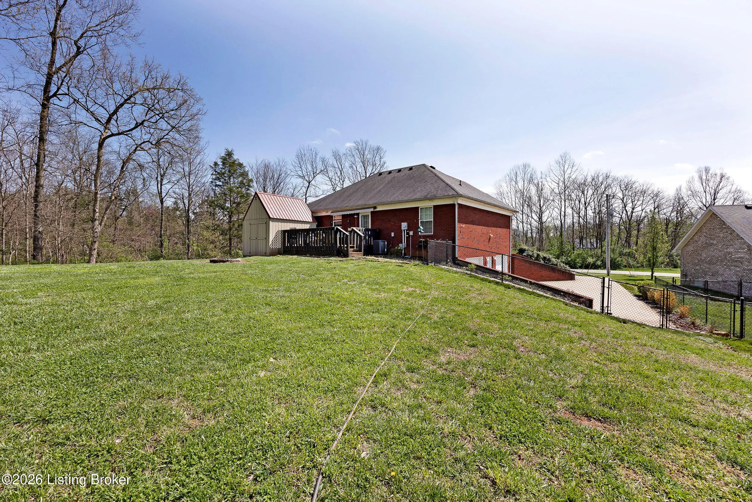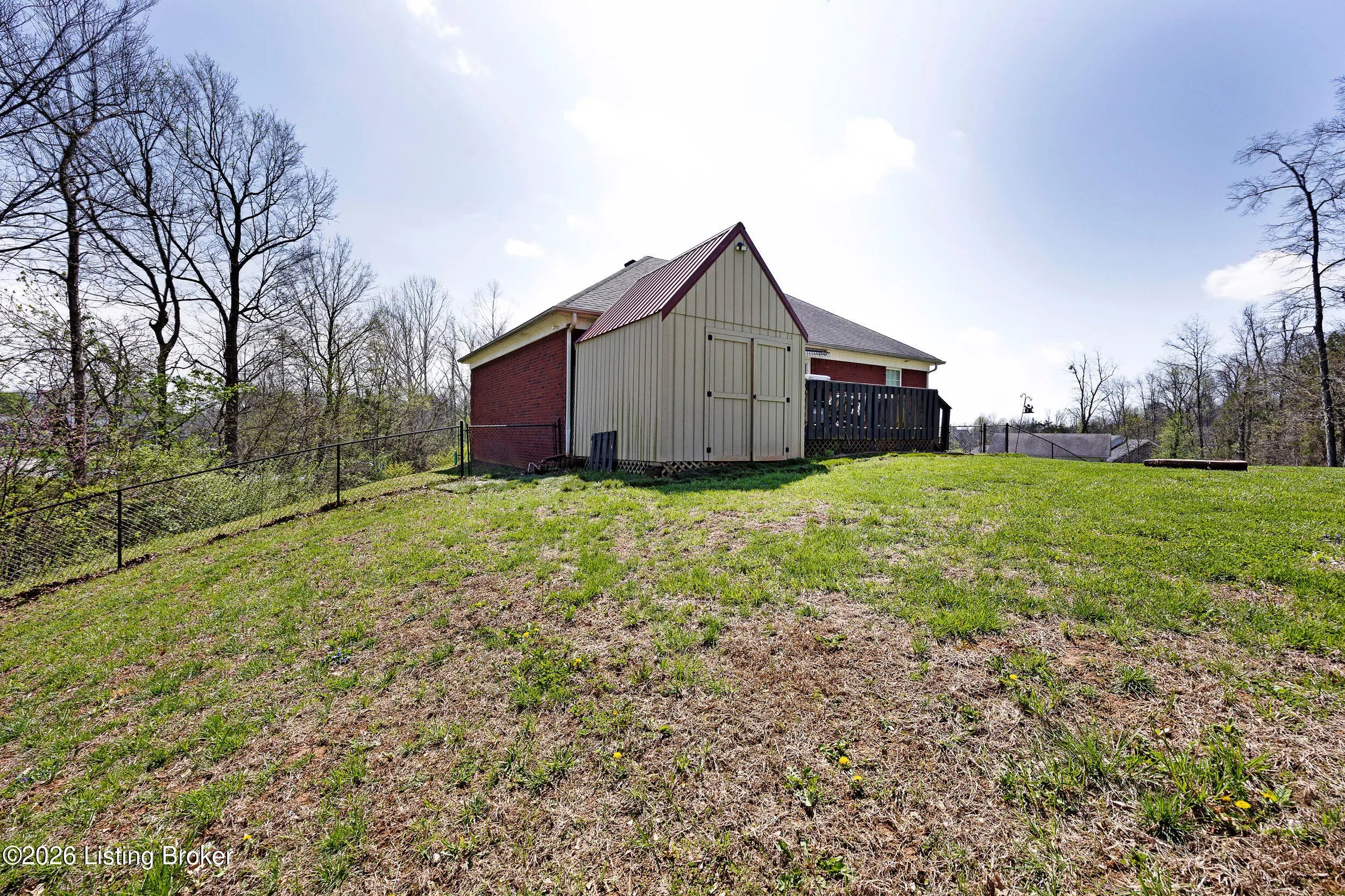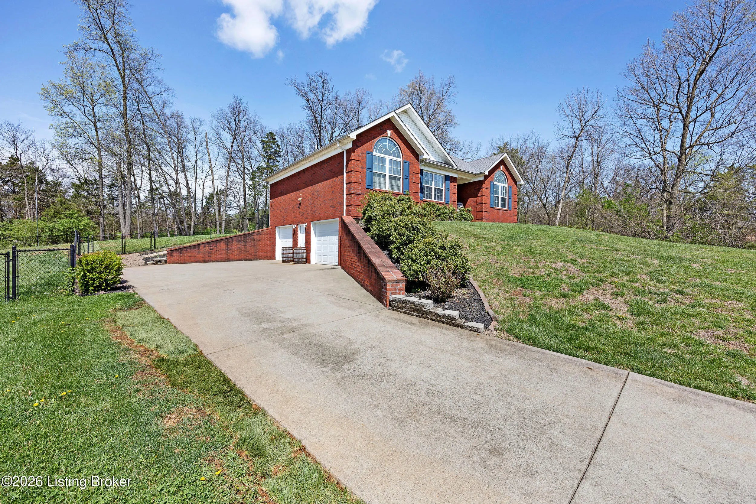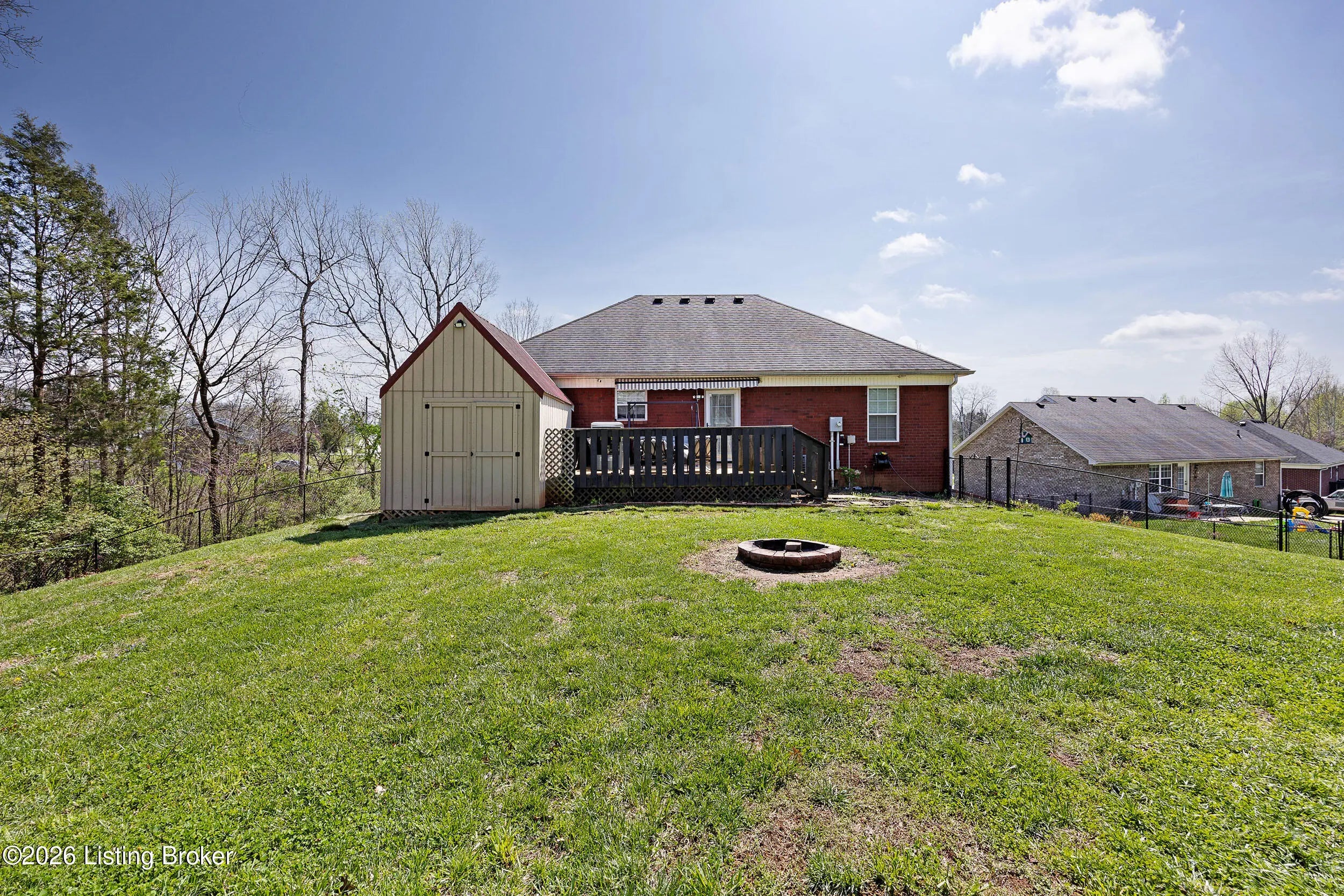 Welcome home to this inviting 3-bedroom, 3-bath brick home offering plenty of space to live. As you step inside, you're greeted by a spacious living room that flows into the kitchen, complete with a full line of appliances and stylish backsplash. A large closet on the main floor has been thoughtfully converted into a convenient laundry closet. The primary suite features a private bath with a walk-in shower and walk-in closet, while two additional bedrooms and a full bath are located on the opposite side of the home for added privacy. The partially finished basement provides even more living space with a full bath, family/bonus room, and a laundry area that could easily be converted back if desired. A two-car lower-level garage offers additional storage space as well. Outside, enjoy the large, fenced backyard, a relaxing deck, and a large outbuilding with electric perfect for extra storage or a workshop.