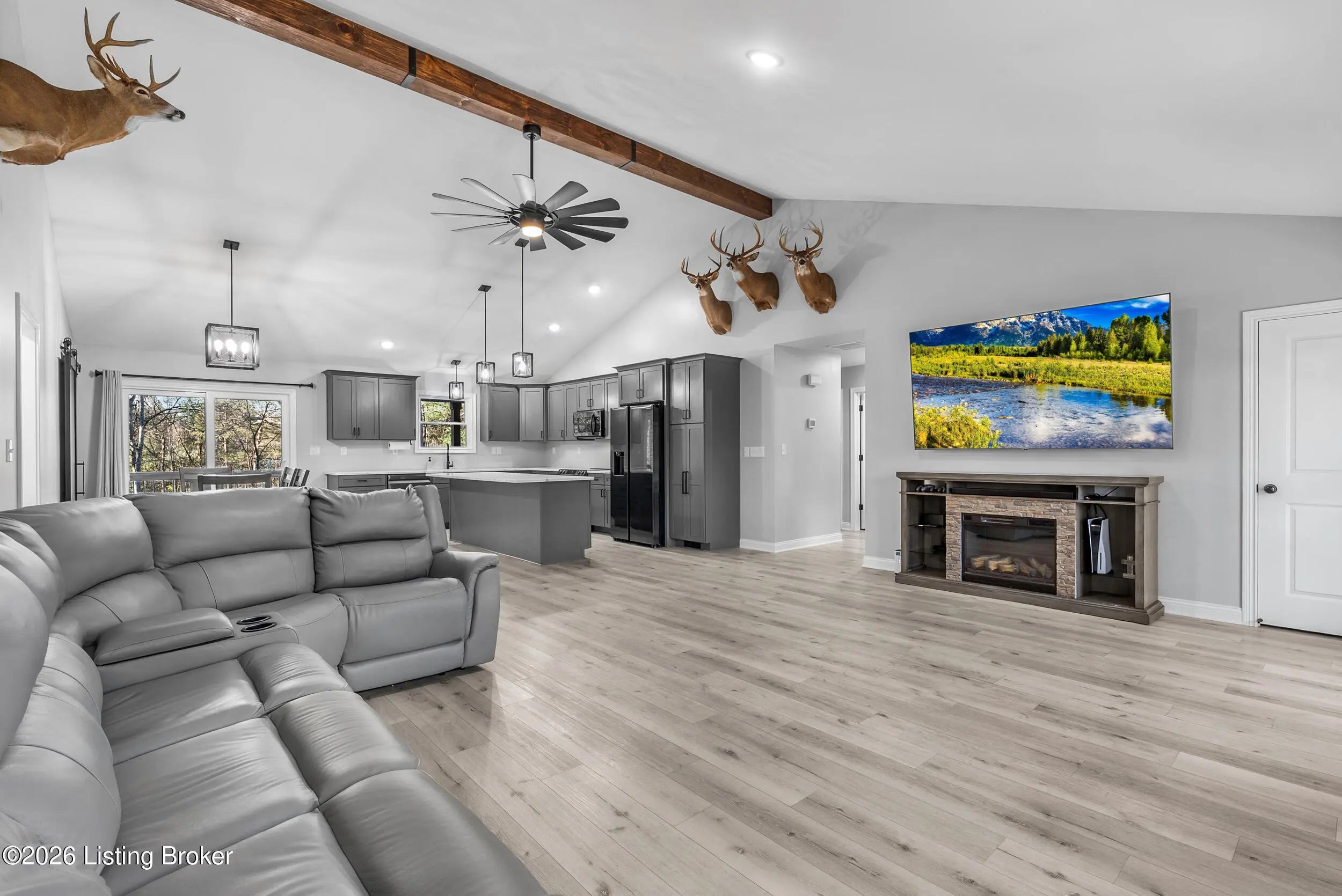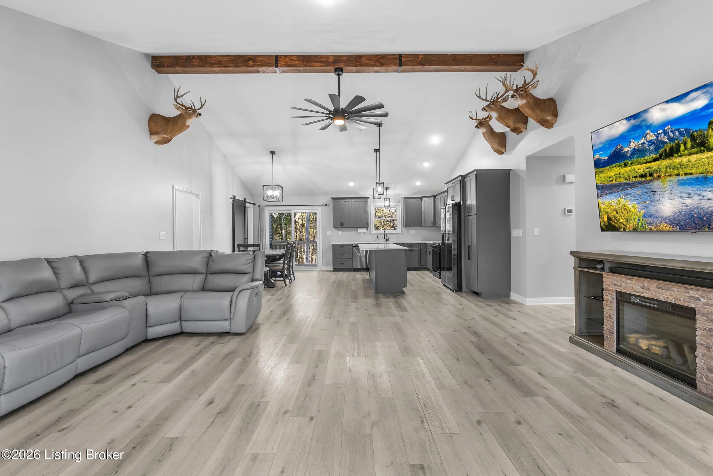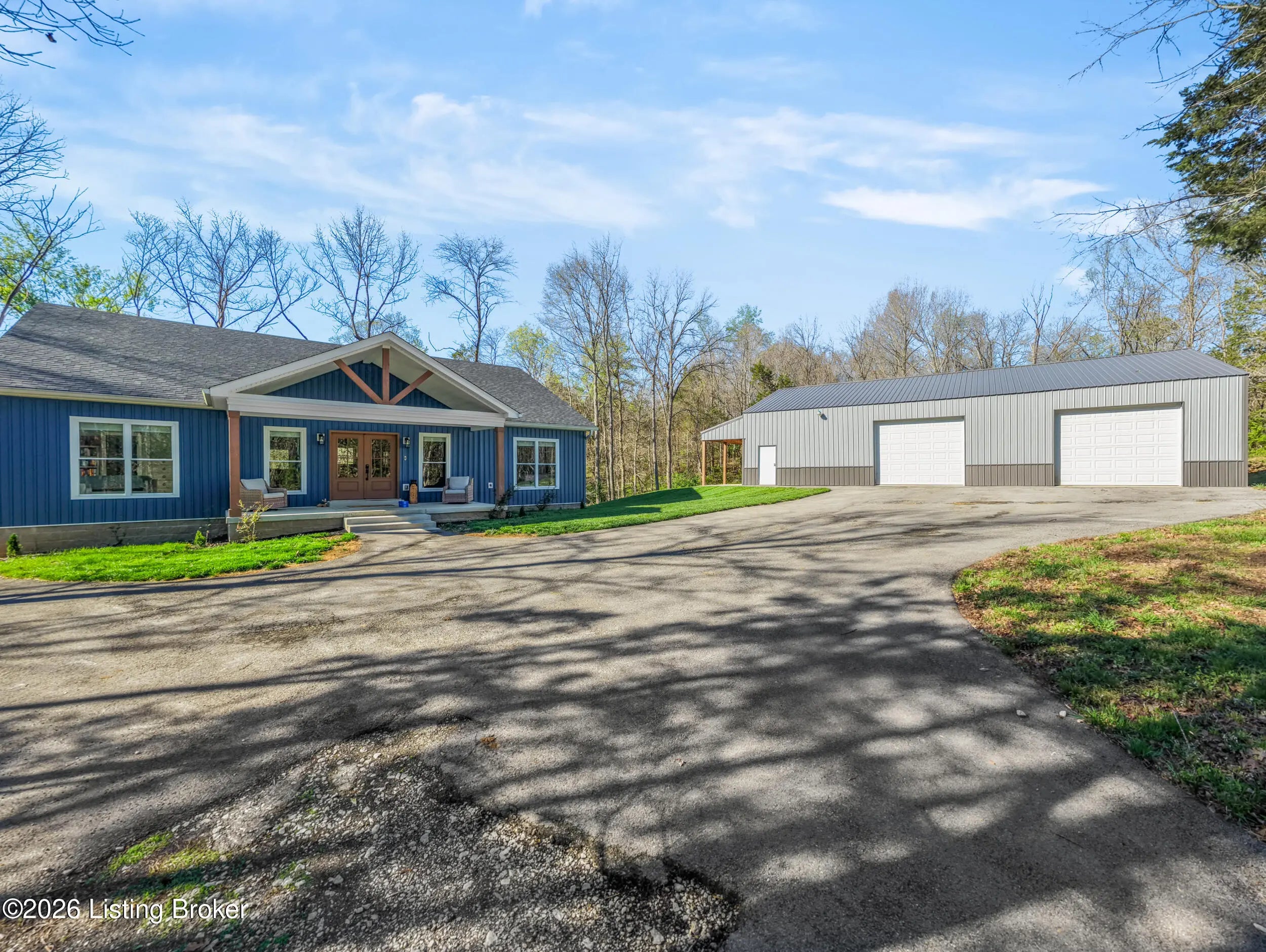Tucked just outside the heart of Mt. Washington, this nearly new 3-bedroom, 2-bath ranch offers a rare blend of space, function, and flexibility on 3.78 acres. Built in 2024, the home delivers modern construction and peace of mind with all major components. Inside, the thoughtfully designed split-bedroom layout creates separation without sacrificing flow. The open-concept living area connects seamlessly to the kitchen and dining space, making everyday living and entertaining feel effortless. The primary suite is positioned for privacy and features a spacious bath and oversized walk-in closet. Step outside and the possibilities expand. A fully finished 60x40x14 pole barn with concrete floors, 3 overhead doors, and a paved driveway offers ideal space for storage, hobbies, or equipment. The acreage provides room to roam, with natural surroundings that attract local wildlife that is eligible for pursuing. Located just minutes from the conveniences of Mt. Washington while still offering a sense of privacy, this property is well-suited for those looking to combine newer construction with usable land and outbuilding space.