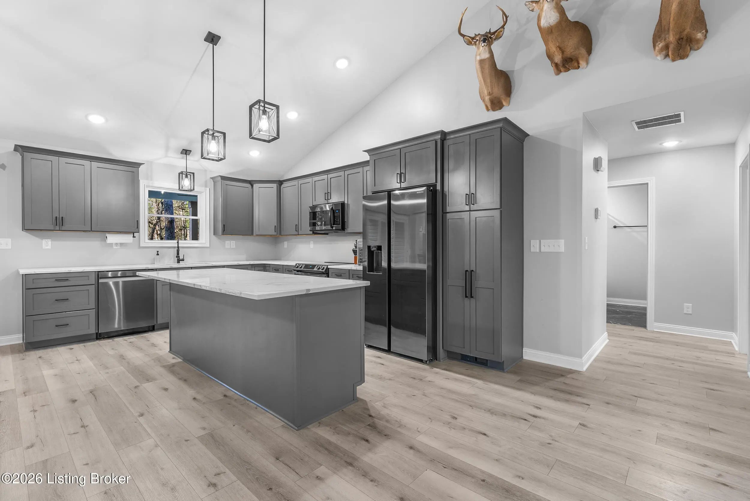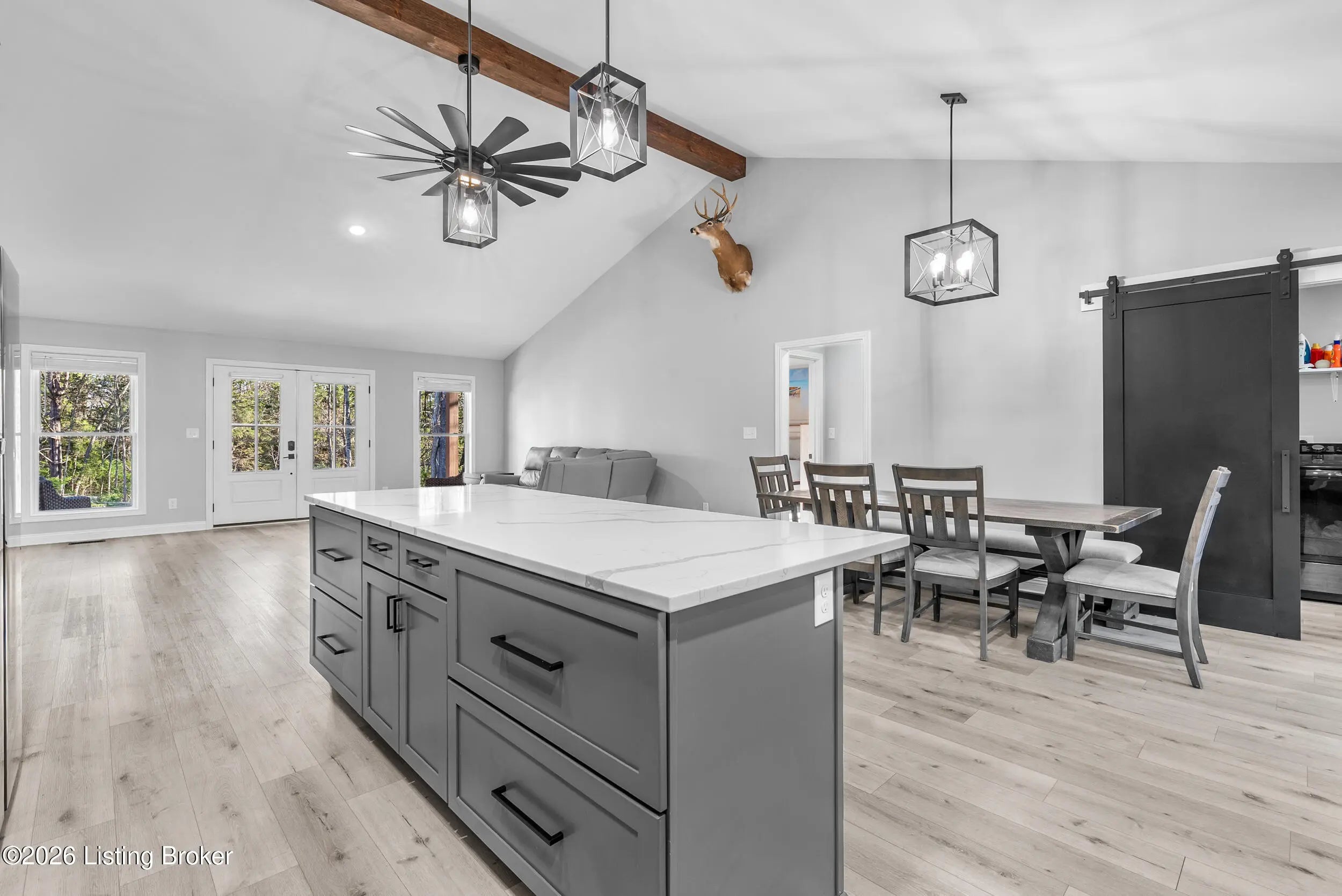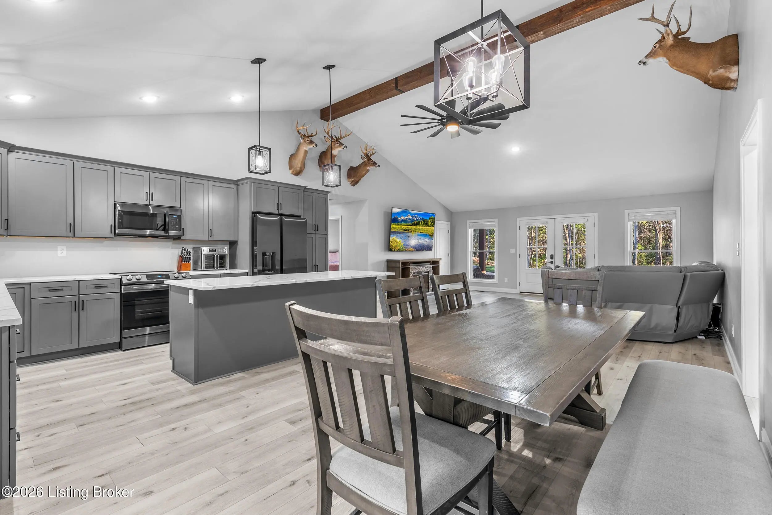 Tucked just outside the heart of Mt. Washington, this nearly new 3-bedroom, 2-bath ranch offers a rare blend of space, function, and flexibility on 3.78 acres. Built in 2024, the home delivers modern construction and peace of mind with all major components. Inside, the thoughtfully designed split-bedroom layout creates separation without sacrificing flow. The open-concept living area connects seamlessly to the kitchen and dining space, making everyday living and entertaining feel effortless. The primary suite is positioned for privacy and features a spacious bath and oversized walk-in closet. Step outside and the possibilities expand. A fully finished 60x40x14 pole barn with concrete floors, 3 overhead doors, and a paved driveway offers ideal space for storage, hobbies, or equipment. The acreage provides room to roam, with natural surroundings that attract local wildlife that is eligible for pursuing. Located just minutes from the conveniences of Mt. Washington while still offering a sense of privacy, this property is well-suited for those looking to combine newer construction with usable land and outbuilding space.