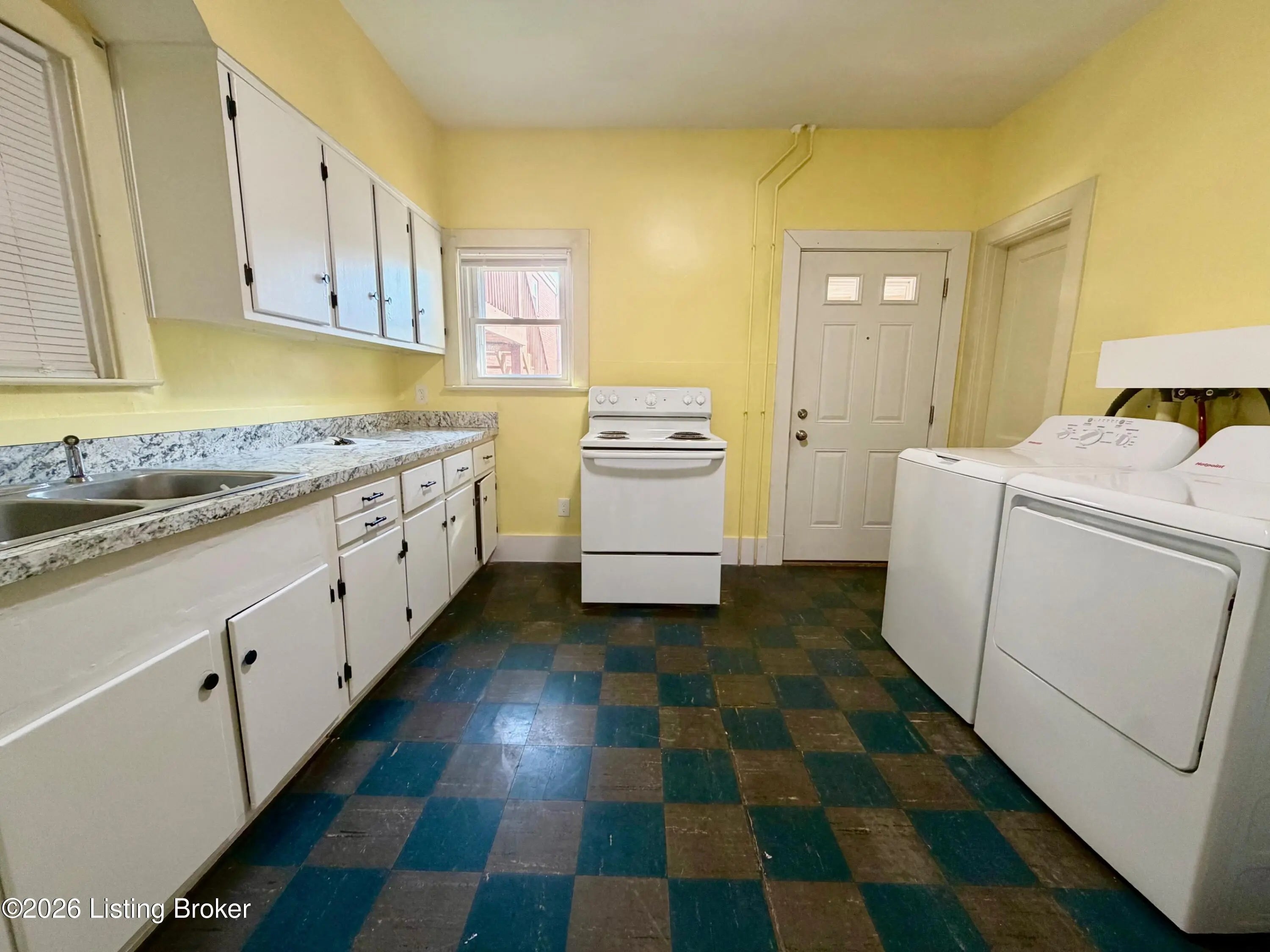This 1-bedroom 1-bath apartment in a duplex features a large covered front porch, central A/C, and off-street parking behind the flower shop. The unit includes in-unit washer/dryer hookups and an updated kitchen with fresh paint, new flooring, new cabinets, new countertops, and a new oven and refrigerator. Tenant pays LG&E; owner pays water.