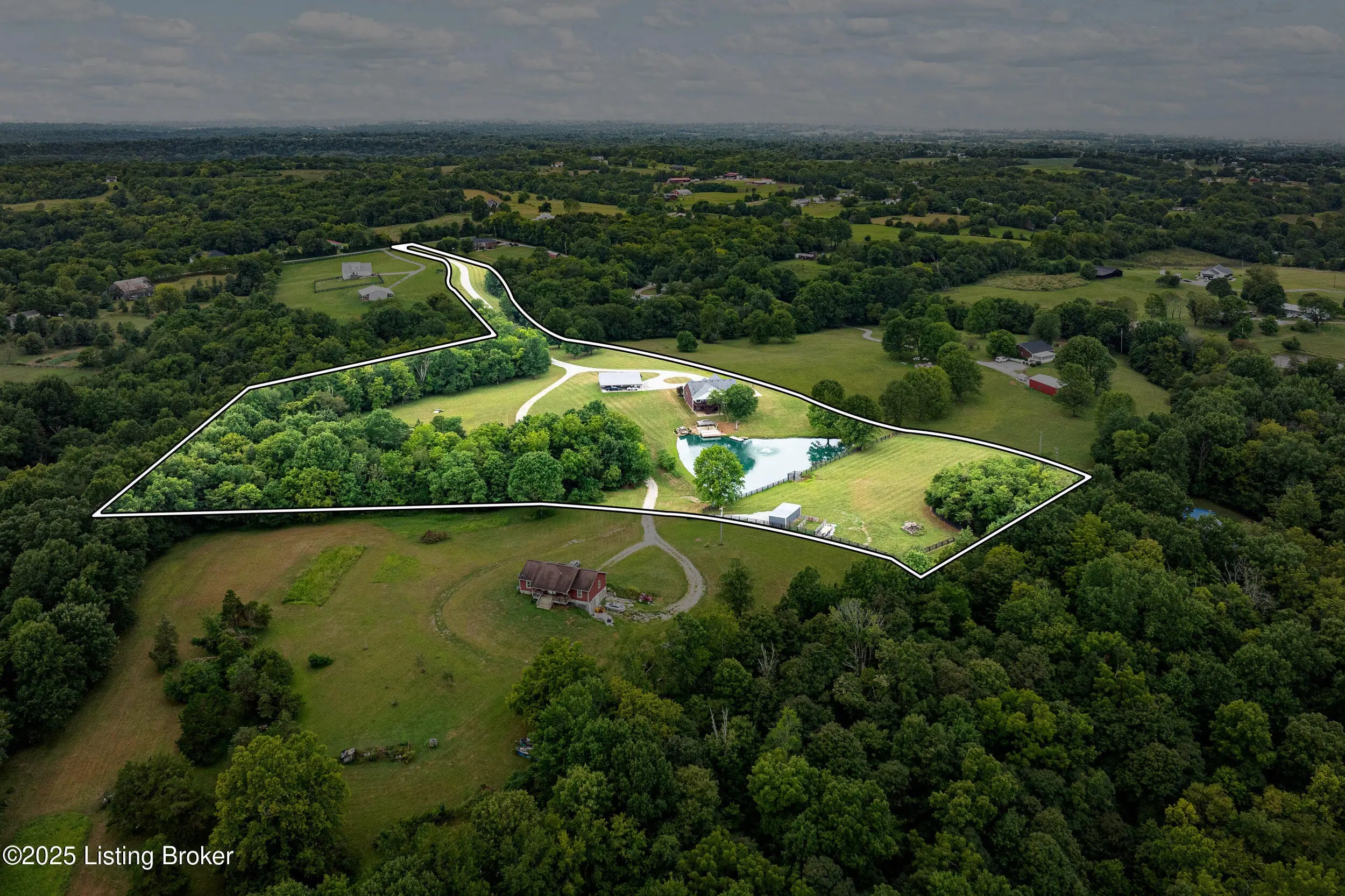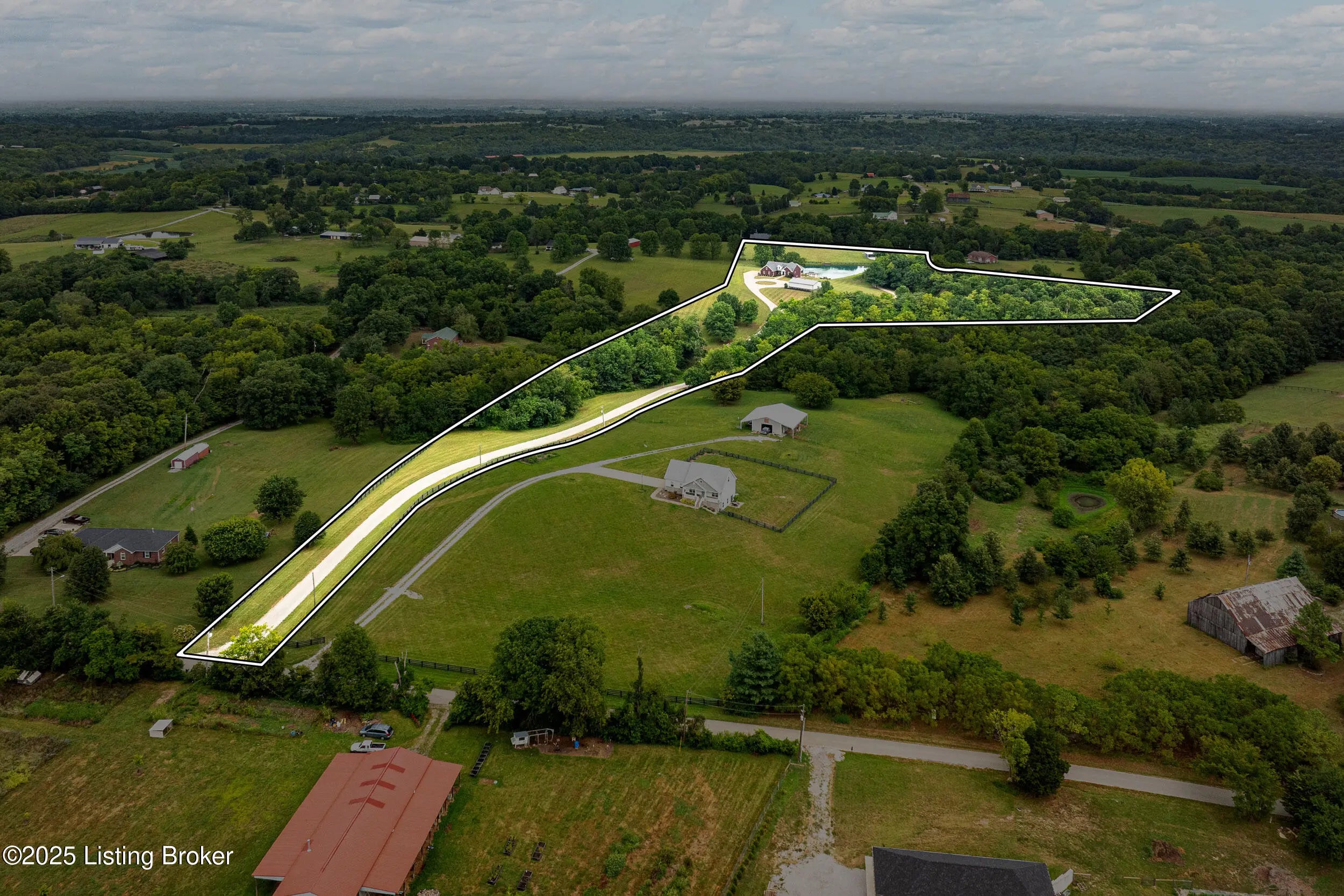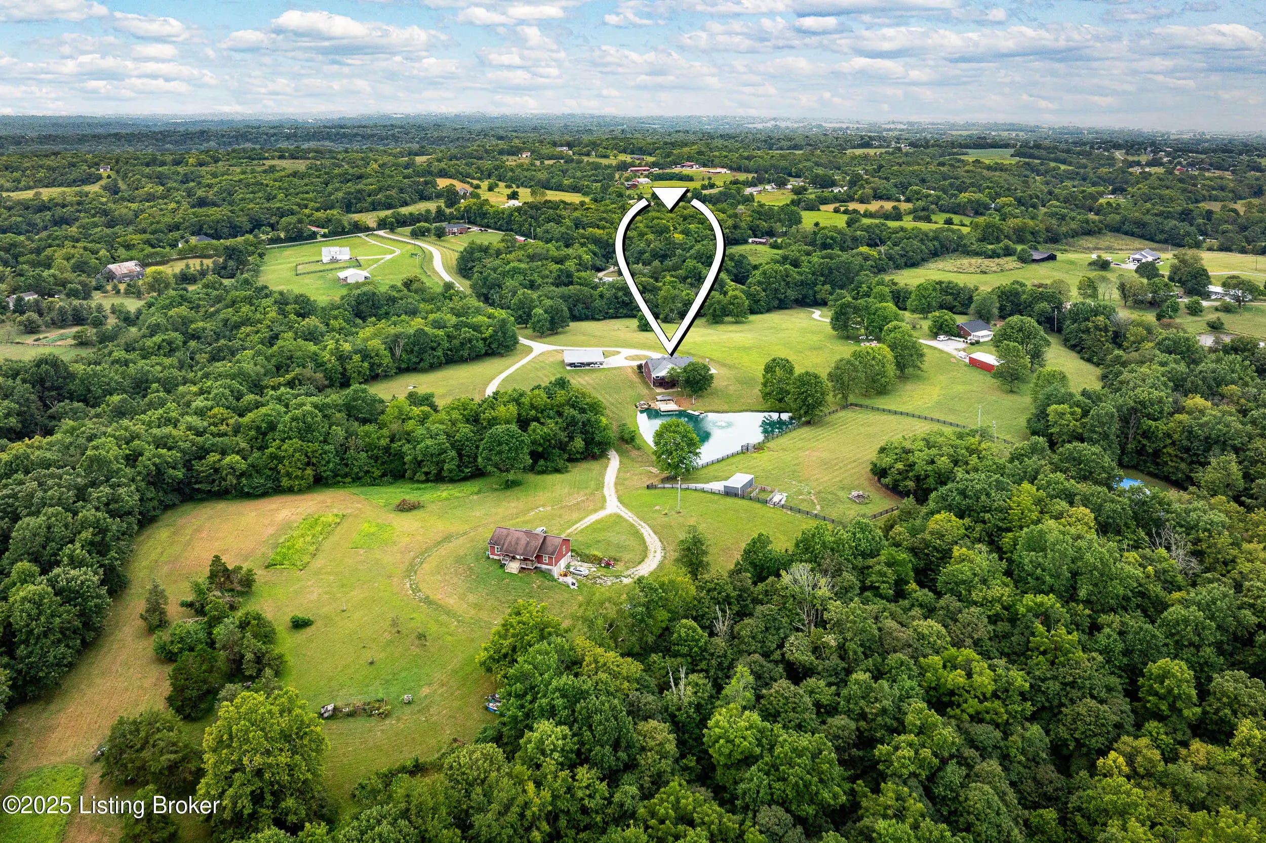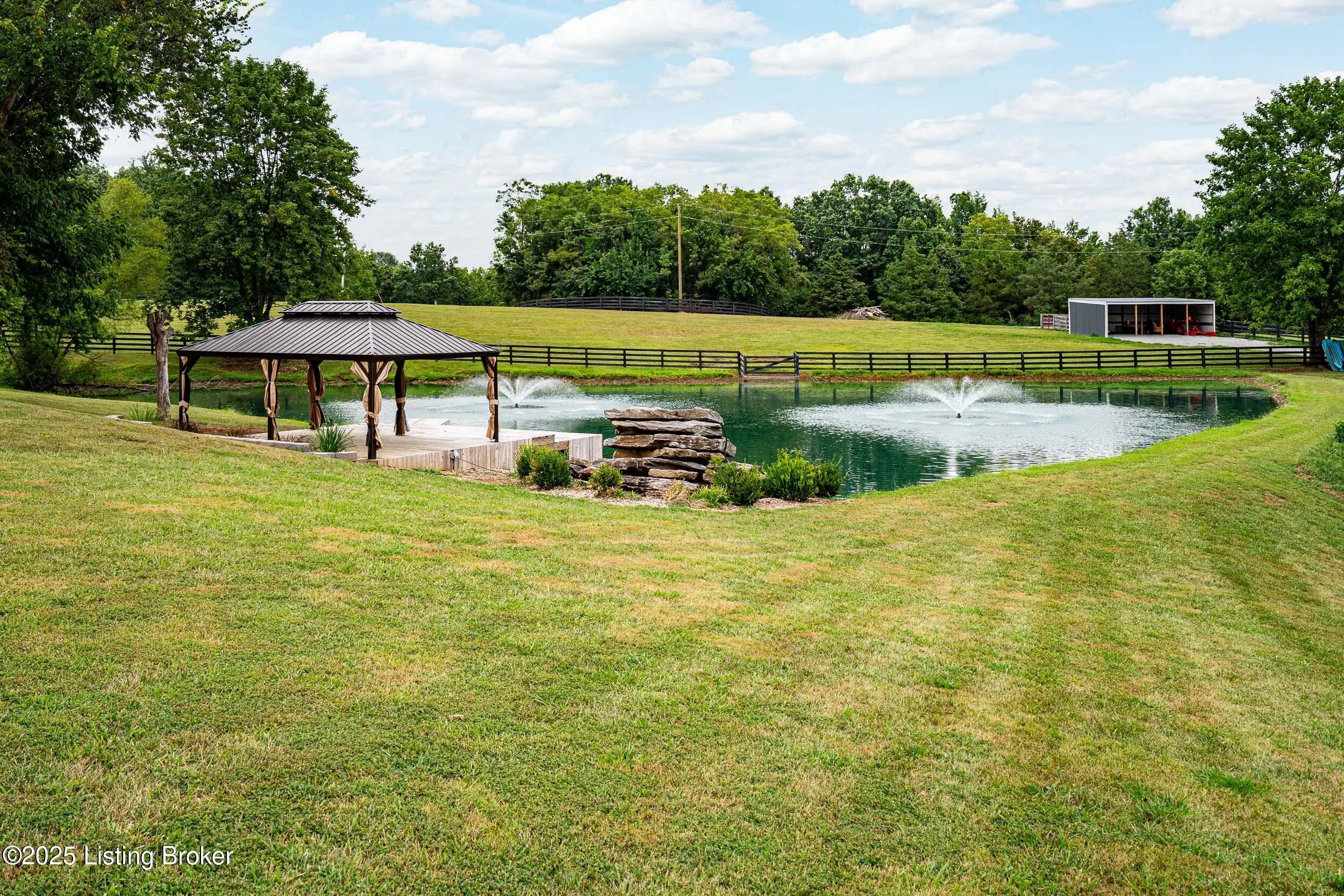 Private 13+Acre Luxury Estate and Recreational Compound | Homestead Ready Discover the ultimate retreat in the heart of Taylorsville. Situated on 13.4 pristine acres, this custom built 2016 estate offers a rare blend of high-end architectural detail and functional rural utility. Whether you are looking for a multi-generational living solution, a hobby farm, or a private sanctuary, this property delivers unmatched versatility. Spanning over 4,300 square feet, this home features a split bedroom ranch layout designed for privacy. The primary suite is a true sanctuary with direct laundry access, while the open concept living area is anchored by a floor to ceiling stone fireplace. The walkout lower level is a showpiece of entertainment, featuring a professional theater room, custom wet bar, and game room perfect for hosting or converting into a sprawling guest suite. Safety is paramount with a built in, reinforced storm shelter. Enjoy your private, stocked pond featuring a fountain and a gazebo topped deck. Miles of wooded trails and a creek provide endless recreational opportunities. A massive 32x48 pole barn with a lean-to offers ample space for a car collection, workshop, or livestock. An additional 16x32 open shed provides dedicated storage for ATVs and equipment. To make this a truly turnkey move, the tractor, implements, and all theater/living room TVs are negotiable with the sale. Located in the sought-after Elk Creek area, you are minutes from Taylorsville Lake State Park and local wineries, while maintaining a smooth commute to Louisville's business hubs. Experience the height of Spencer County luxury. Schedule your private, appointment-only tour today.