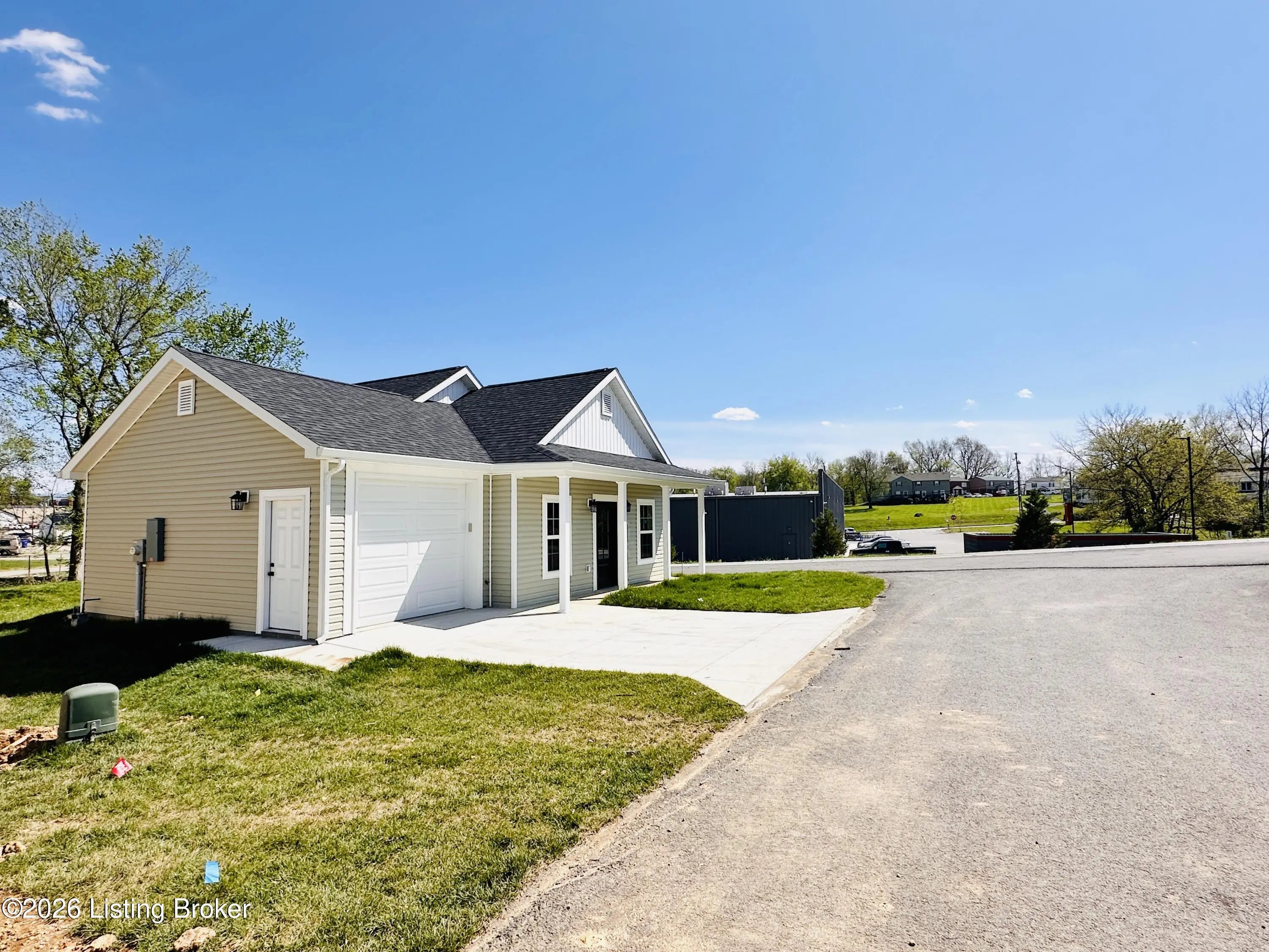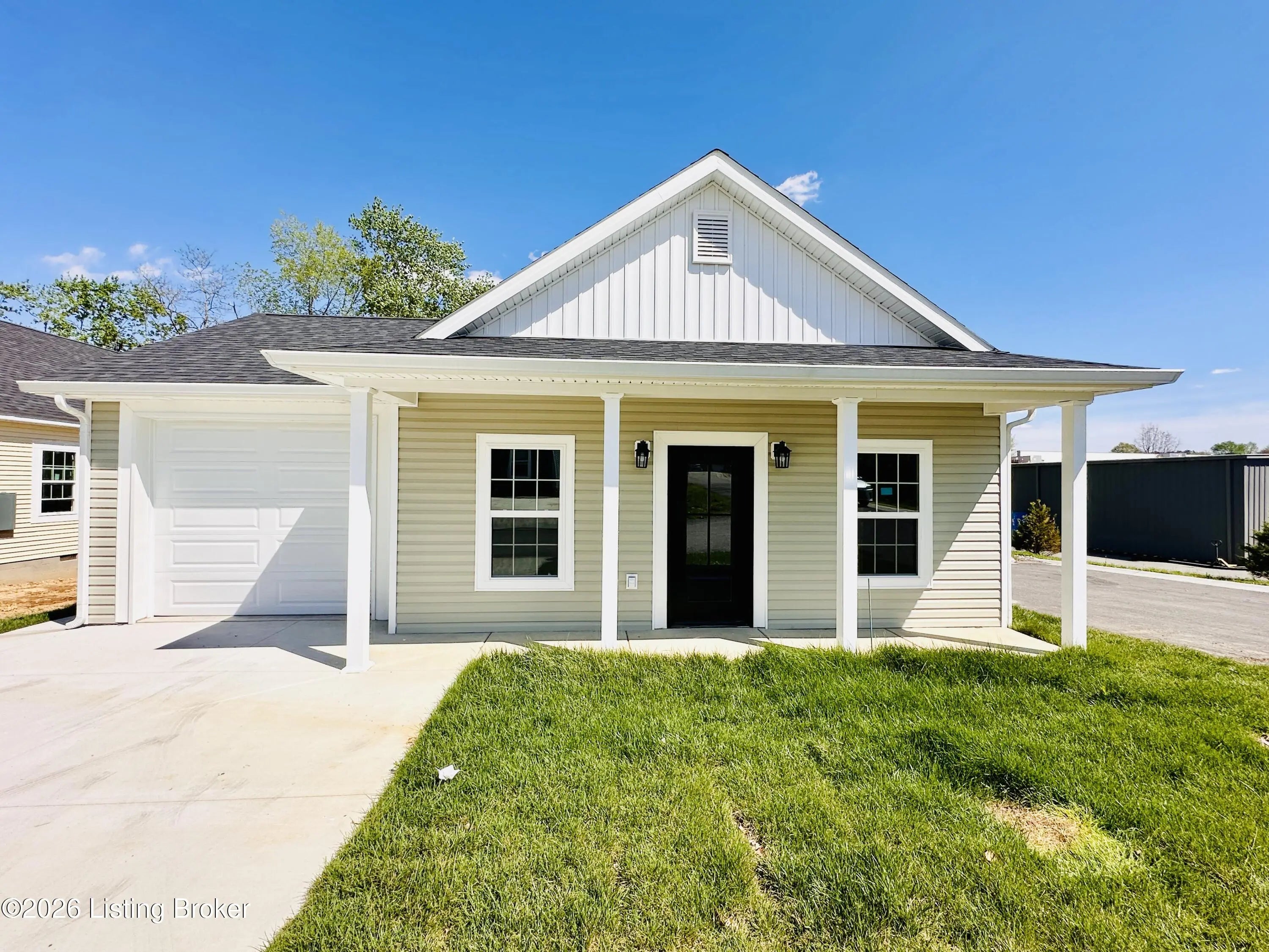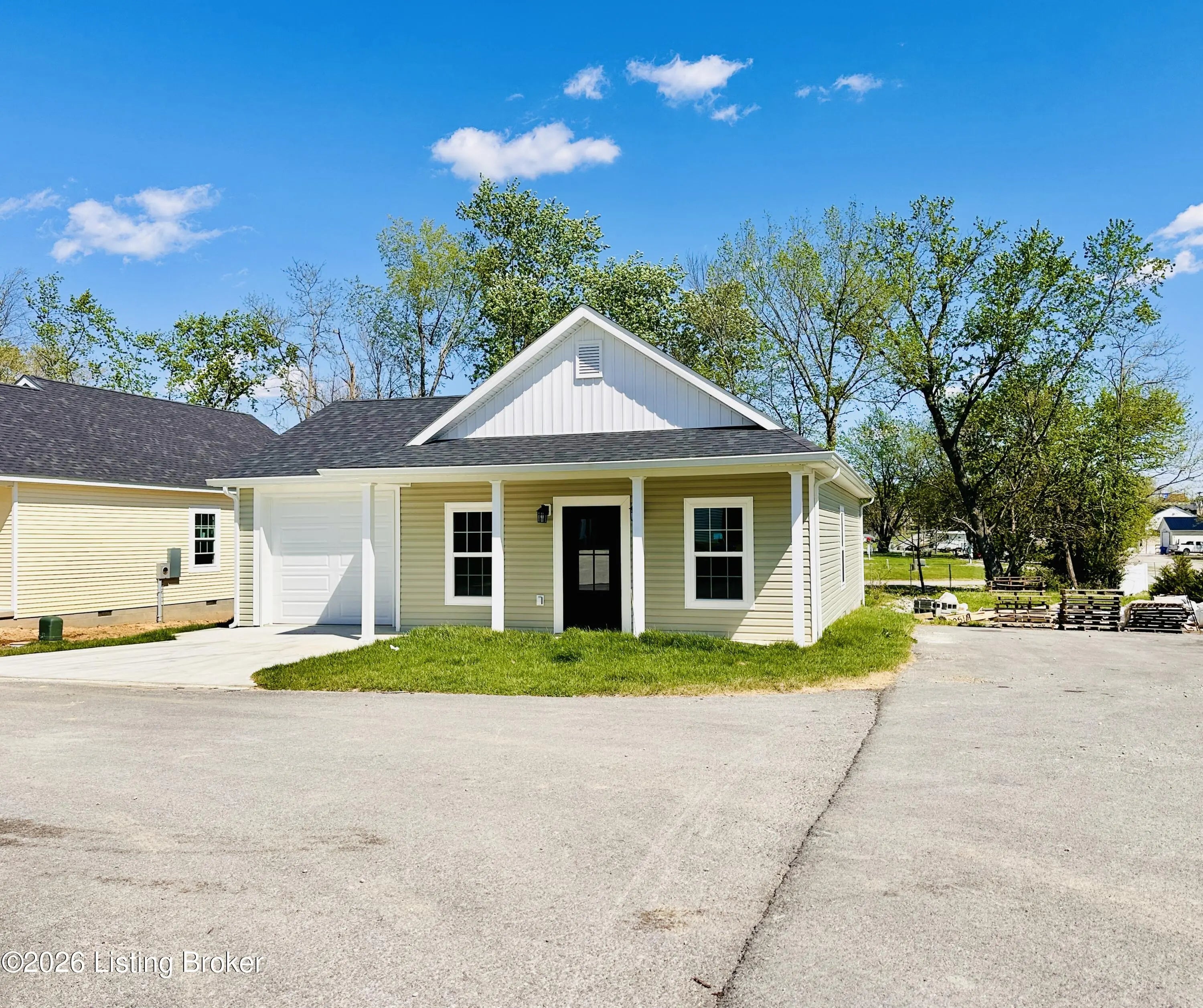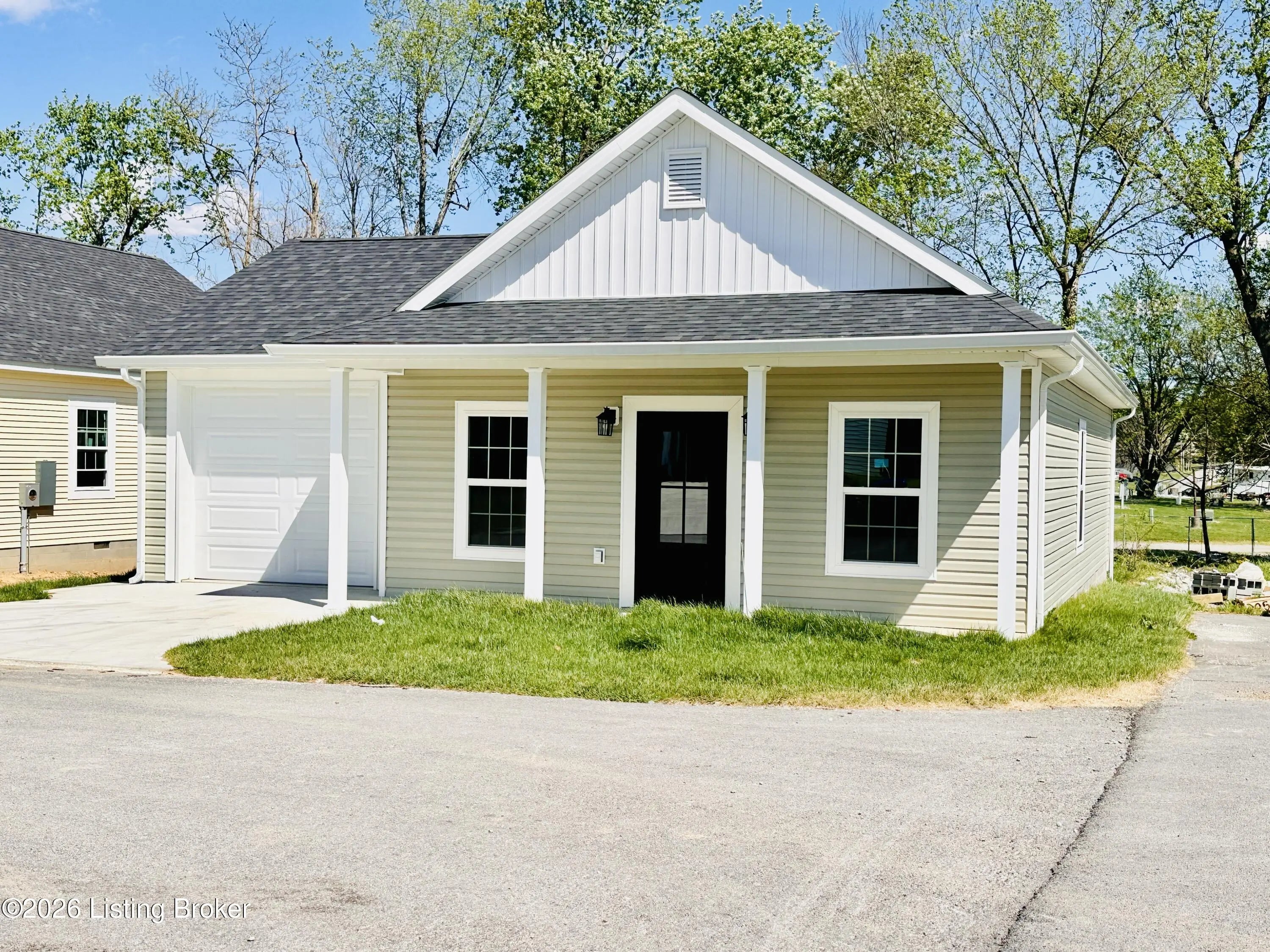 Welcome to this beautiful new construction home located in the newly developed Realand Subdivision, right within the Leitchfield city limits! Situated on a +/- 0.12 acre lot at 401 Strawberry Lane, this charming 3 bedroom, 2 bath home offers the perfect blend of convenience and low-maintenance living. Enjoy a prime location within walking distance to local schools and a grocery store, with easy access to the town square where you'll find shopping and dining just minutes away.Step inside to an inviting open-concept layout featuring a spacious living room, dining area, and kitchen—perfect for everyday living and entertaining. The kitchen is thoughtfully designed with granite countertops, stainless steel appliances including a refrigerator, natural gas cookstove, microwave, and dishwasher. Just off the kitchen, you'll find a convenient 1-car attached garage. Down the hall are three bedrooms, including a comfortable primary suite with its own private bathroom. With approximately 1,083 +/- square feet, this home is ideal for first-time buyers or those looking to downsize without sacrificing style or functionality. Additional features include a welcoming front porch and a back deck—perfect for relaxing or enjoying the outdoors. Don't miss your opportunity to own this move-in-ready, low-maintenance home in a great location!