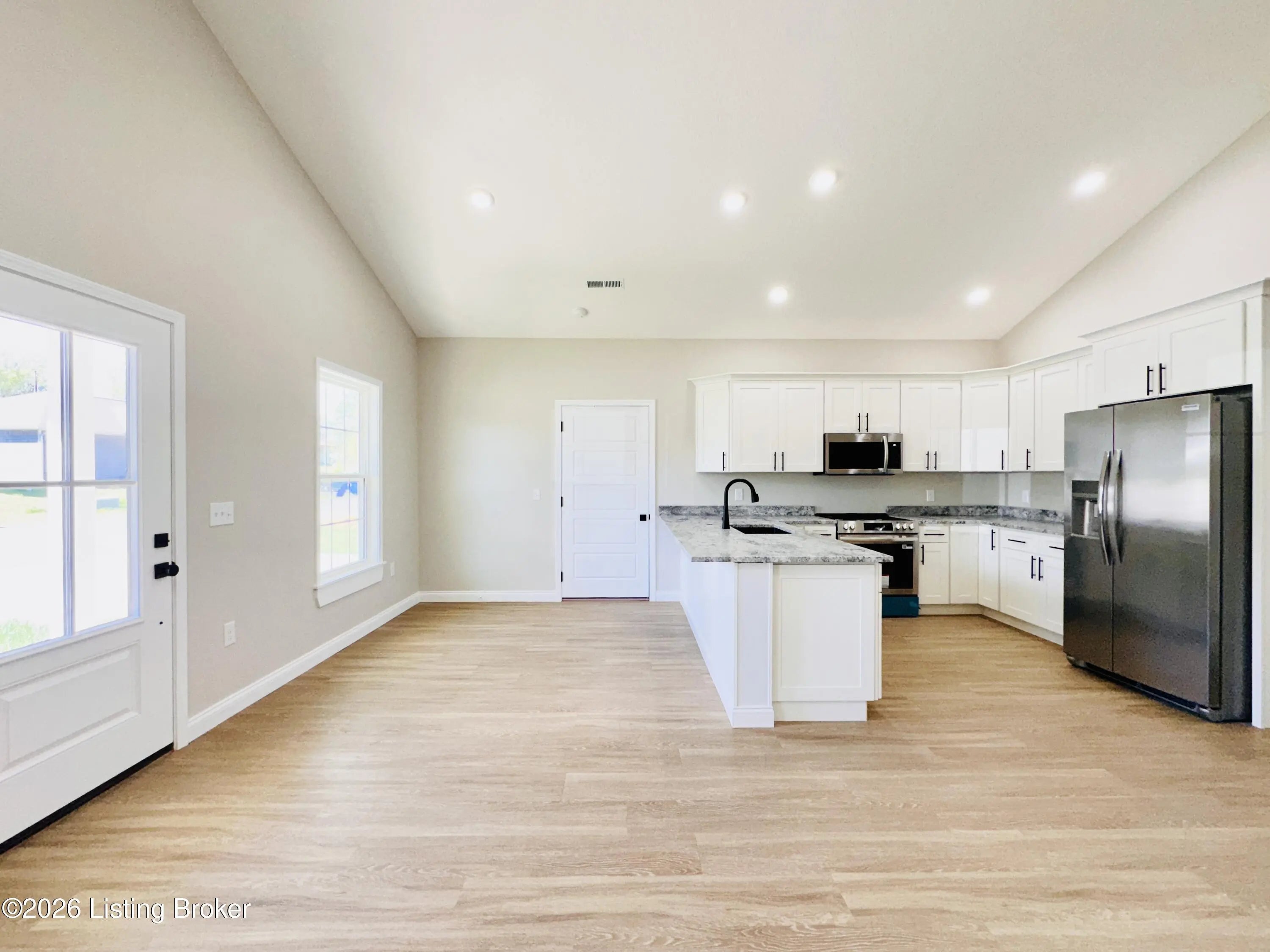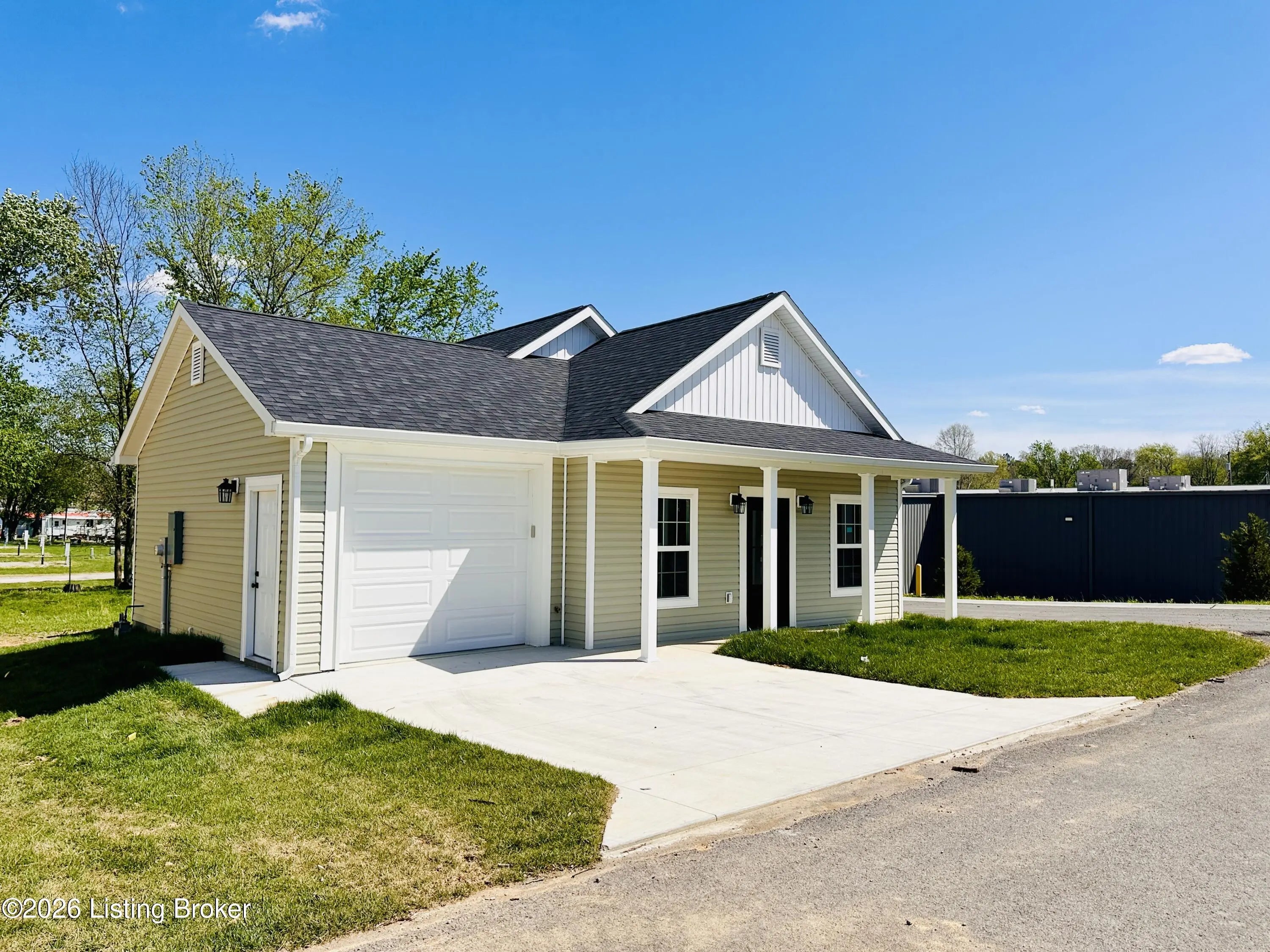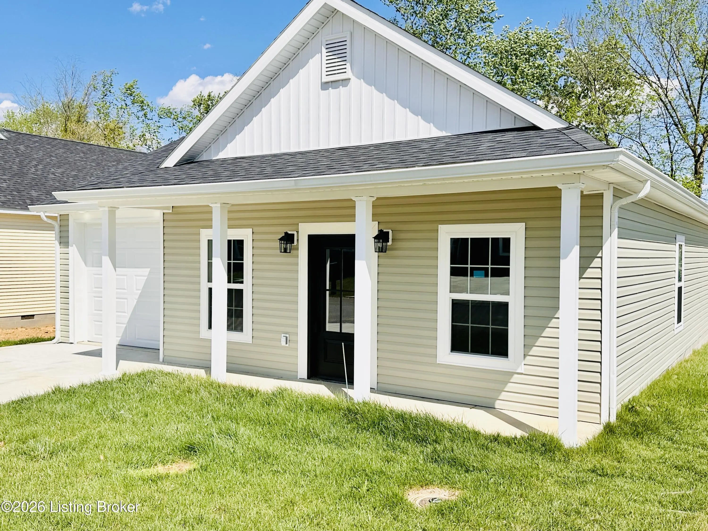 Welcome to this beautiful new construction home located in the newly developed Realand Subdivision, right within the Leitchfield city limits! Situated on a +/- 0.12 acre lot at 401 Strawberry Lane, this charming 3 bedroom, 2 bath home offers the perfect blend of convenience and low-maintenance living. Enjoy a prime location within walking distance to local schools and a grocery store, with easy access to the town square where you'll find shopping and dining just minutes away.Step inside to an inviting open-concept layout featuring a spacious living room, dining area, and kitchen—perfect for everyday living and entertaining. The kitchen is thoughtfully designed with granite countertops, stainless steel appliances including a refrigerator, natural gas cookstove, microwave, and dishwasher. Just off the kitchen, you'll find a convenient 1-car attached garage. Down the hall are three bedrooms, including a comfortable primary suite with its own private bathroom. With approximately 1,083 +/- square feet, this home is ideal for first-time buyers or those looking to downsize without sacrificing style or functionality. Additional features include a welcoming front porch and a back deck—perfect for relaxing or enjoying the outdoors. Don't miss your opportunity to own this move-in-ready, low-maintenance home in a great location!