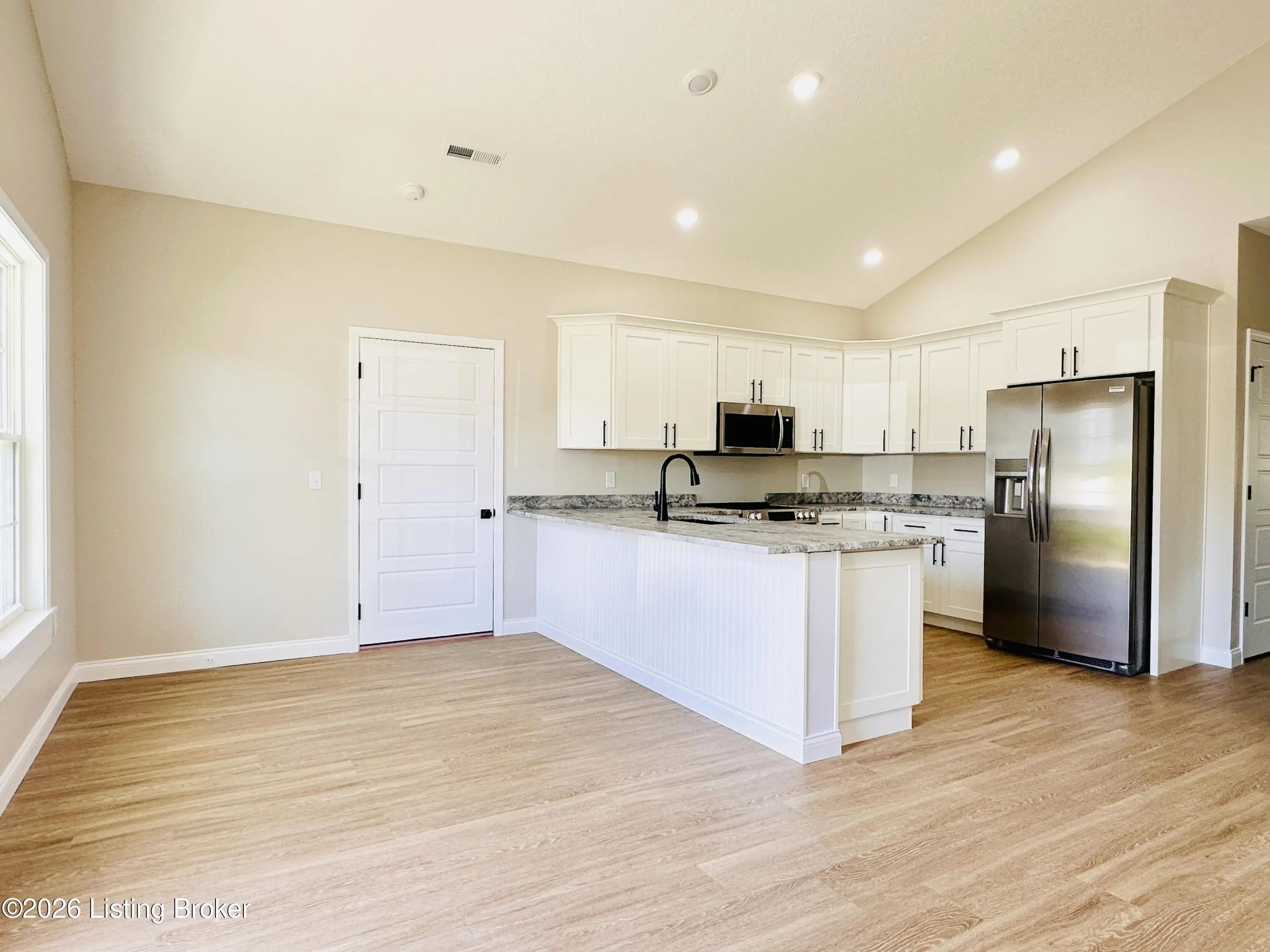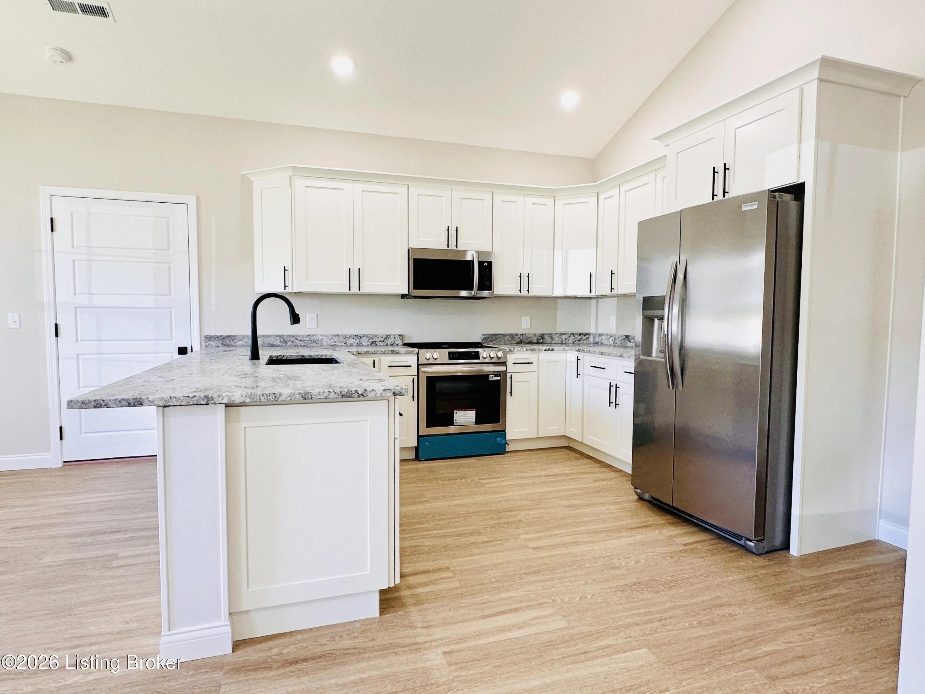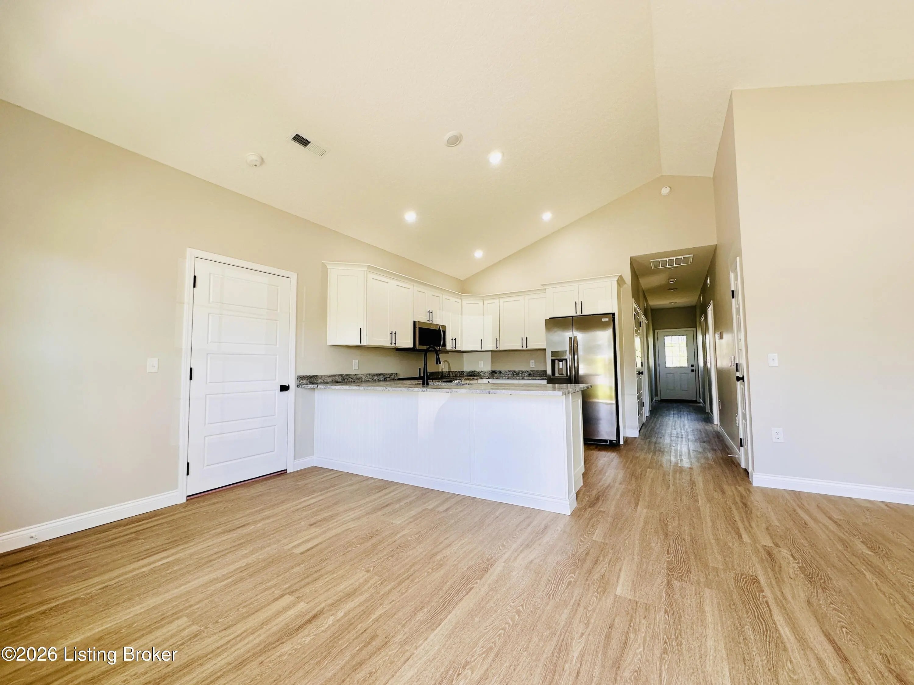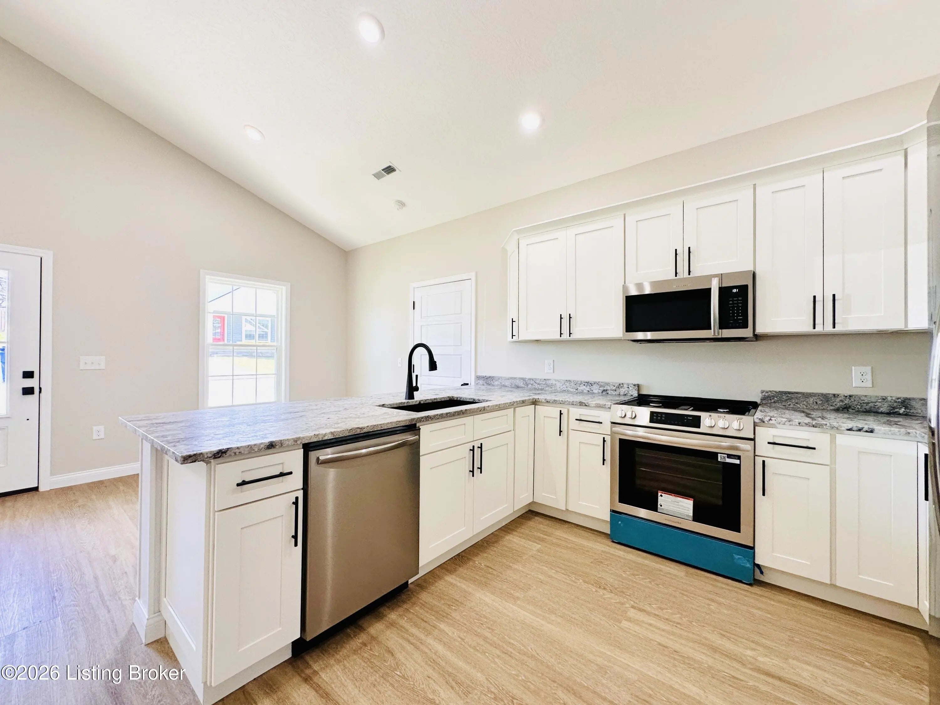 Welcome to this beautiful new construction home located in the newly developed Realand Subdivision, right within the Leitchfield city limits! Situated on a +/- 0.12 acre lot at 401 Strawberry Lane, this charming 3 bedroom, 2 bath home offers the perfect blend of convenience and low-maintenance living. Enjoy a prime location within walking distance to local schools and a grocery store, with easy access to the town square where you'll find shopping and dining just minutes away.Step inside to an inviting open-concept layout featuring a spacious living room, dining area, and kitchen—perfect for everyday living and entertaining. The kitchen is thoughtfully designed with granite countertops, stainless steel appliances including a refrigerator, natural gas cookstove, microwave, and dishwasher. Just off the kitchen, you'll find a convenient 1-car attached garage. Down the hall are three bedrooms, including a comfortable primary suite with its own private bathroom. With approximately 1,083 +/- square feet, this home is ideal for first-time buyers or those looking to downsize without sacrificing style or functionality. Additional features include a welcoming front porch and a back deck—perfect for relaxing or enjoying the outdoors. Don't miss your opportunity to own this move-in-ready, low-maintenance home in a great location!