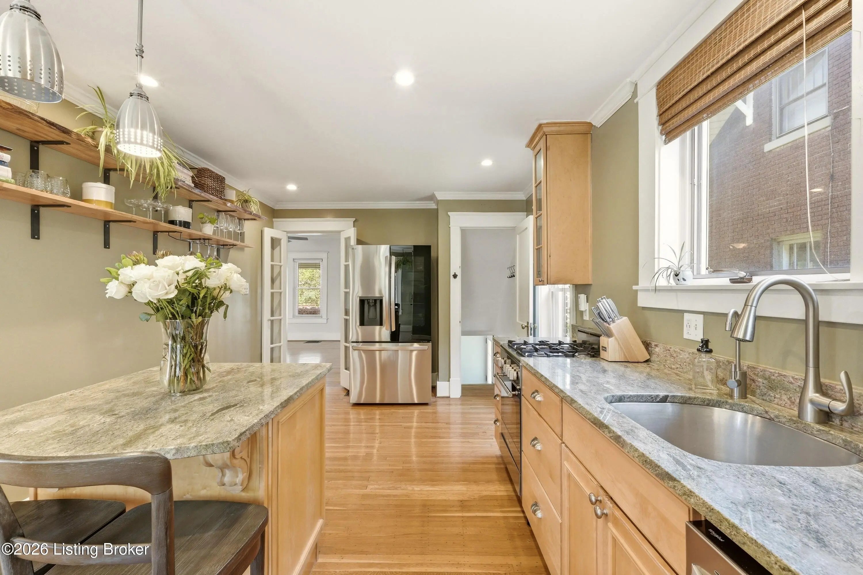 Situated just minutes from Cherokee Park, this charming bungalow offers a thoughtful blend of character, comfort, and opportunity. Inside, beautiful pine and oak flooring and tall ceilings create a warm, inviting atmosphere throughout. The light-filled living room is complemented by a spacious dining room featuring a fireplace with built-in shelving on either side—adding both charm and functionality. The updated kitchen is well-appointed with granite countertops, stainless steel appliances, and a gas range, offering both style and everyday convenience. The second level features a generously sized primary bedroom with two closets, a second spacious bedroom with front-facing windows, and a newly remodeled full bathroom. The lower level includes a partially completed bath area, currently equipped with a functioning shower and toilet, offering an excellent opportunity for future expansion. Outdoor living is equally appealing with a covered front porch, a fully fenced flat backyard complete with a fire pit, and a large outbuilding for additional storage or workspace. A spacious driveway allows for ample off-street parking. Combining classic charm with modern updates and room to grow, this home offers a compelling opportunity in a desirable location.