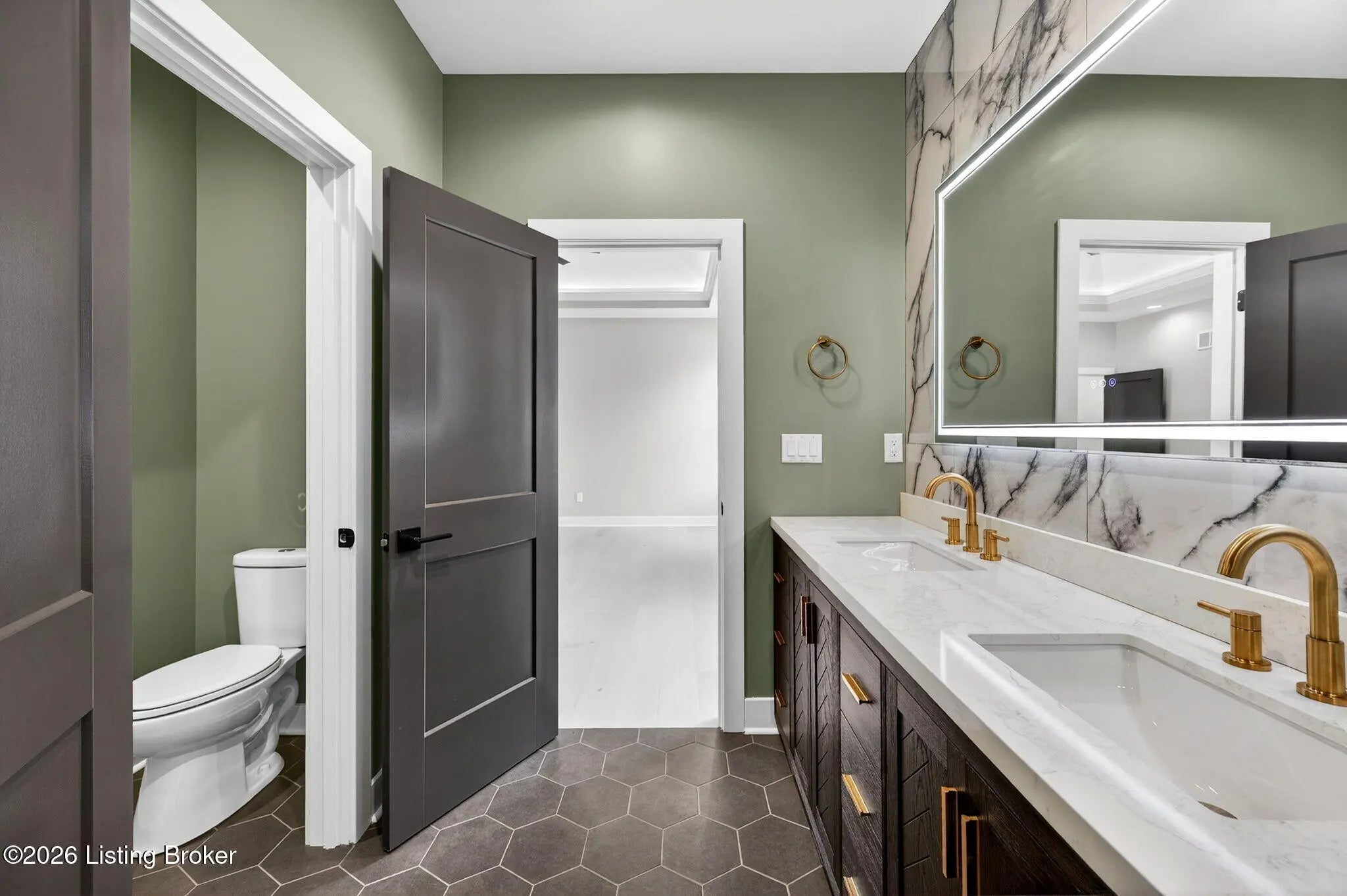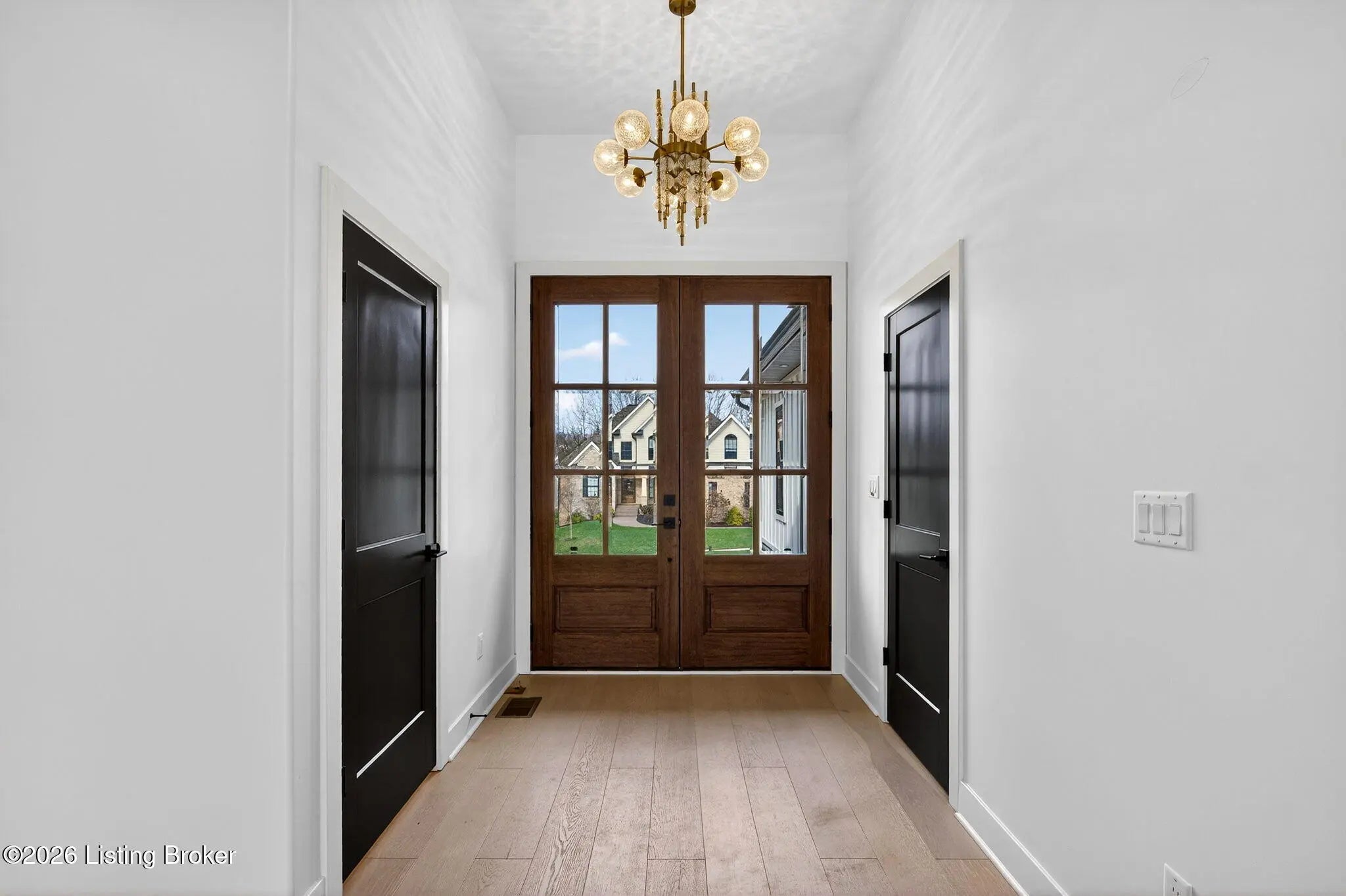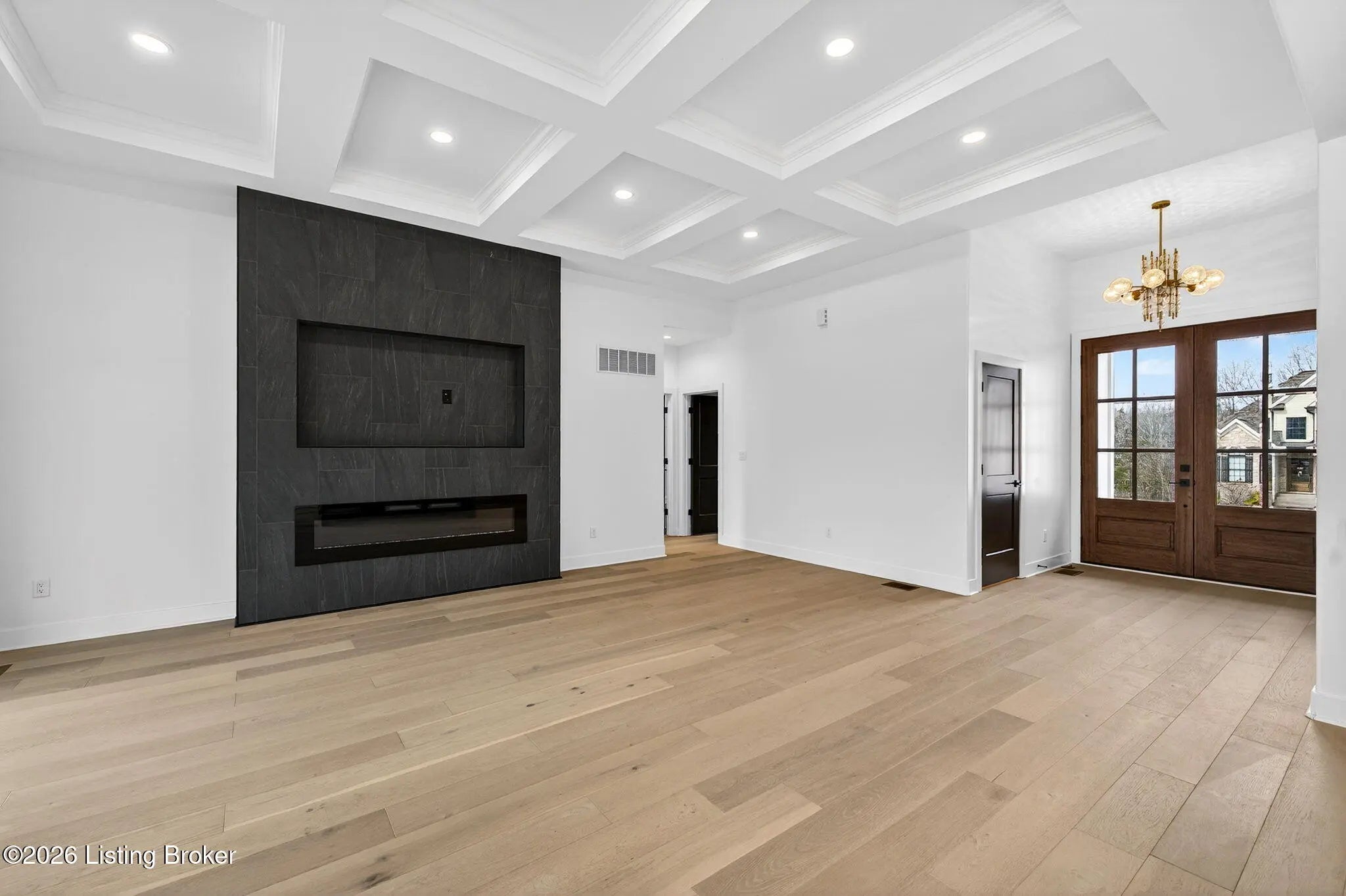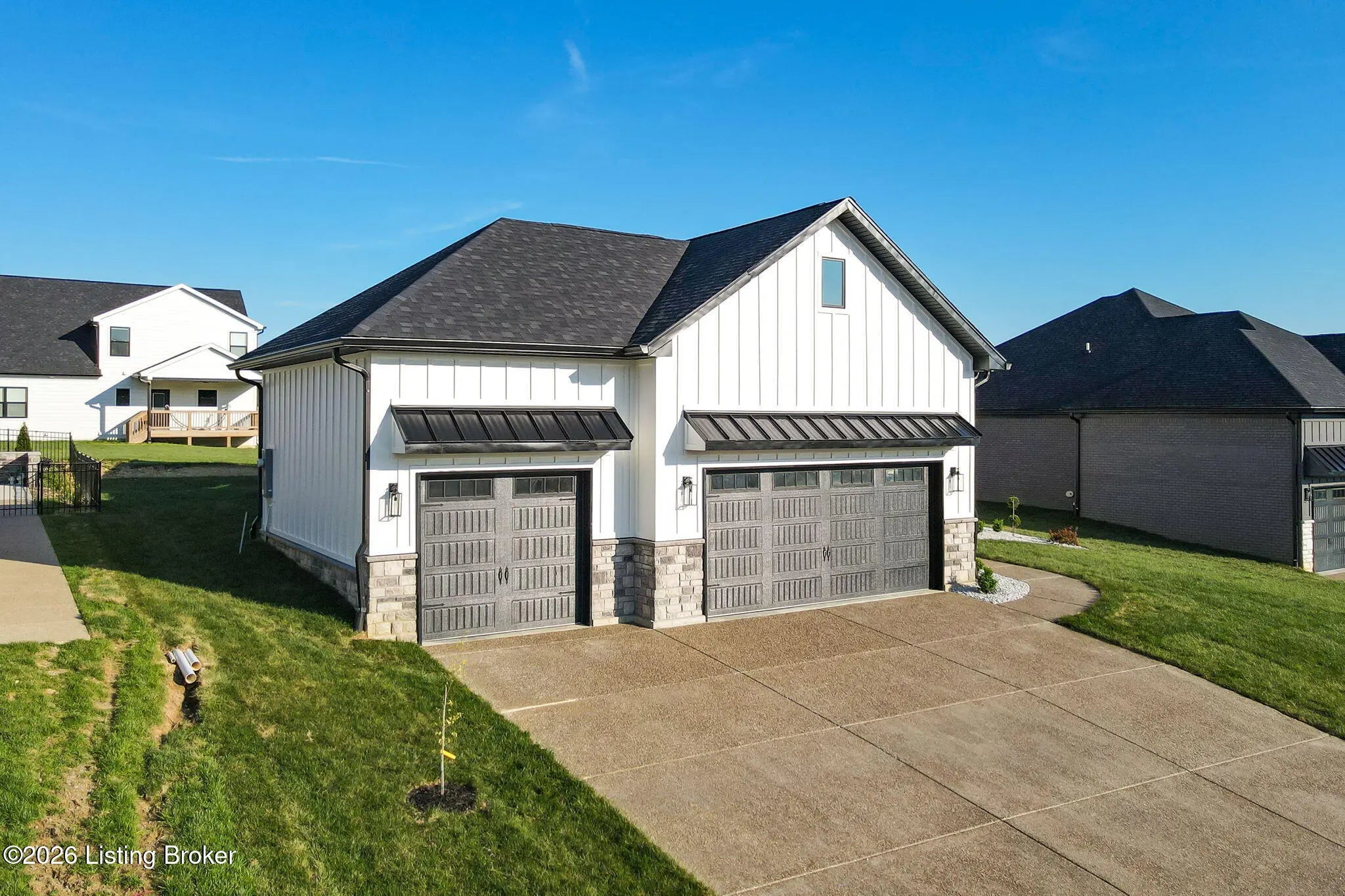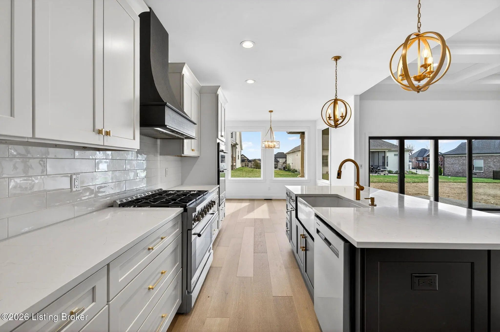 Welcome to 1505 Lincoln Hill Way — an impressive new construction ranch nestled in the highly sought-after Meremont community of east Louisville, where upscale living meets everyday convenience. Situated off Long Run Road in east Jefferson County, this quiet neighborhood is close to Middletown restaurants, shopping, and schools, with The Parklands and Long Run Park just minutes away. With close proximity to major highways, commuting to work or exploring the surrounding area is effortless, while the peaceful, well-maintained neighborhood with parks, walking trails, and playgrounds gives you the suburban retreat you deserve. From the covered front porch, a double-door entry welcomes you into a gracious foyer featuring engineered hardwood flooring and soaring 9-ft ceilings that carry throughout this thoughtfully designed open floor plan. The spacious living room impresses with coffered ceiling detail and a modern inset gas fireplace, while patio doors fully retract to blur the line between indoor and outdoor living. The chef-inspired eat-in kitchen is finished in timeless black and white with shaker cabinetry, a center island with breakfast bar, apron-front farmhouse sink, subway tile backsplash, bold black range hood, stainless appliances including a double wall oven and gas range, and a sun-drenched dining area perfect for everyday meals and entertaining alike. A powder room and laundry room are conveniently tucked just off the kitchen. Retreat to the primary suite, where a double tray ceiling sets an elegant tone. The stunning en suite features hex tile flooring, a marble-topped double vanity, floor-to-ceiling tile accent walls, a large walk-in shower with built-in bench seating and frameless glass enclosure, a private water closet, and a walk-in closet with custom built-ins. Also in this wing is a connected bedroom — ideal as a nursery — along with three additional bedrooms and a full bath that complete the main level. The unfinished lower level offers an additional 2,241 sq ft of potential, with 9-ft ceilings and rough-ins for a fifth bedroom with egress window and a full bath — contact agent for finishing costs. Outdoors, enjoy a fully covered patio, irrigation system, and an oversized 3-car garage with bays accommodating full-size trucks. Added peace of mind comes with a one-year builder's warranty included with the purchase of this exceptional home.