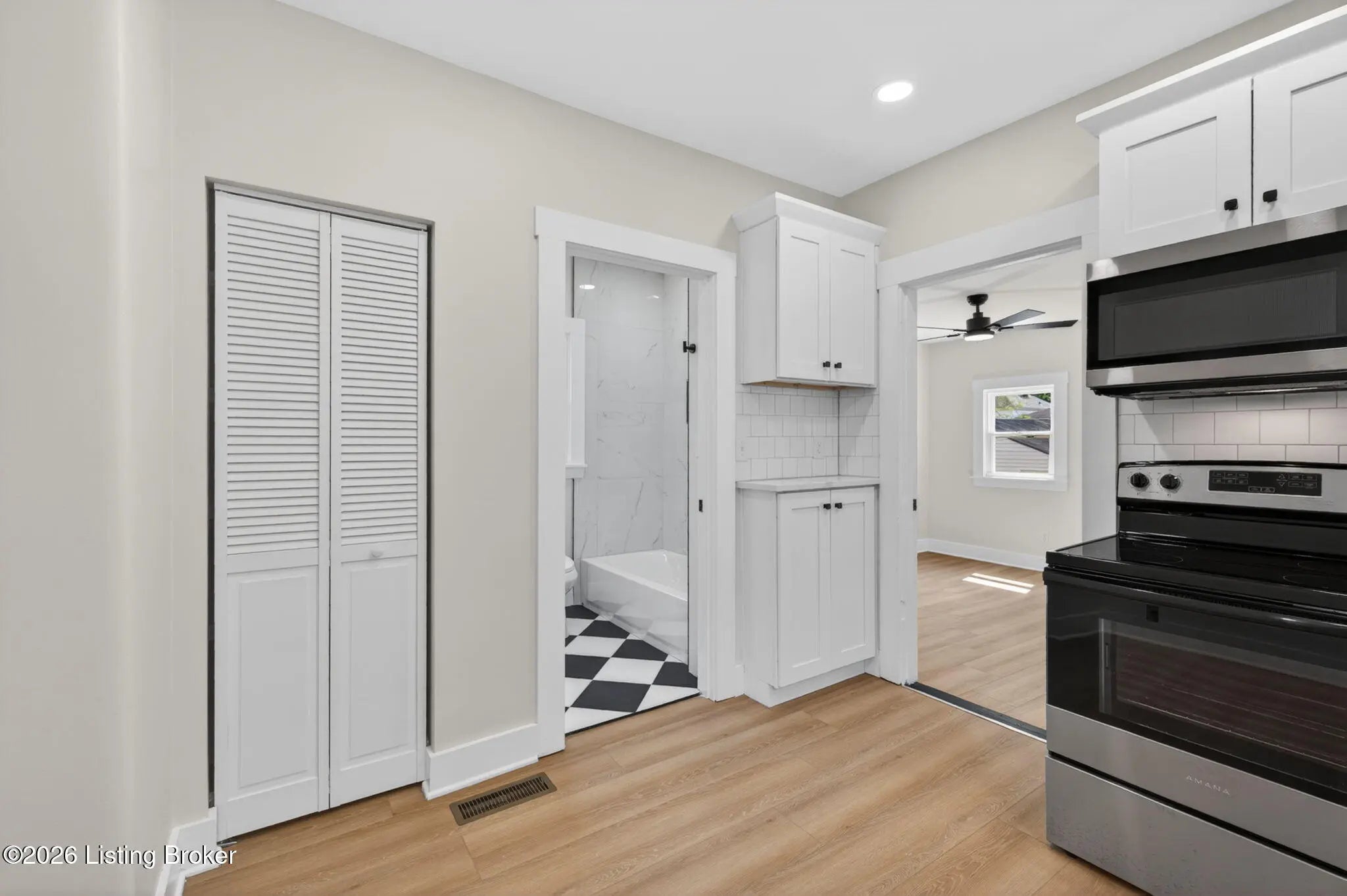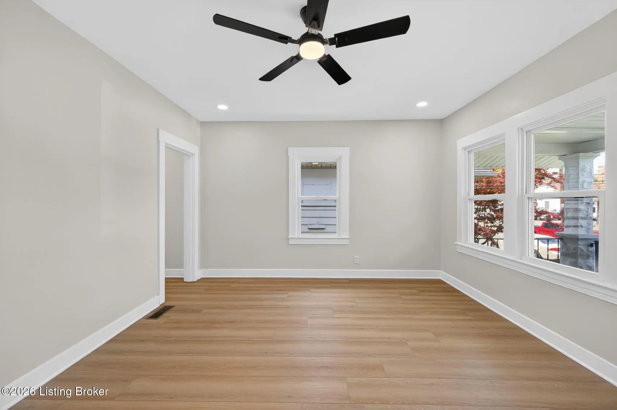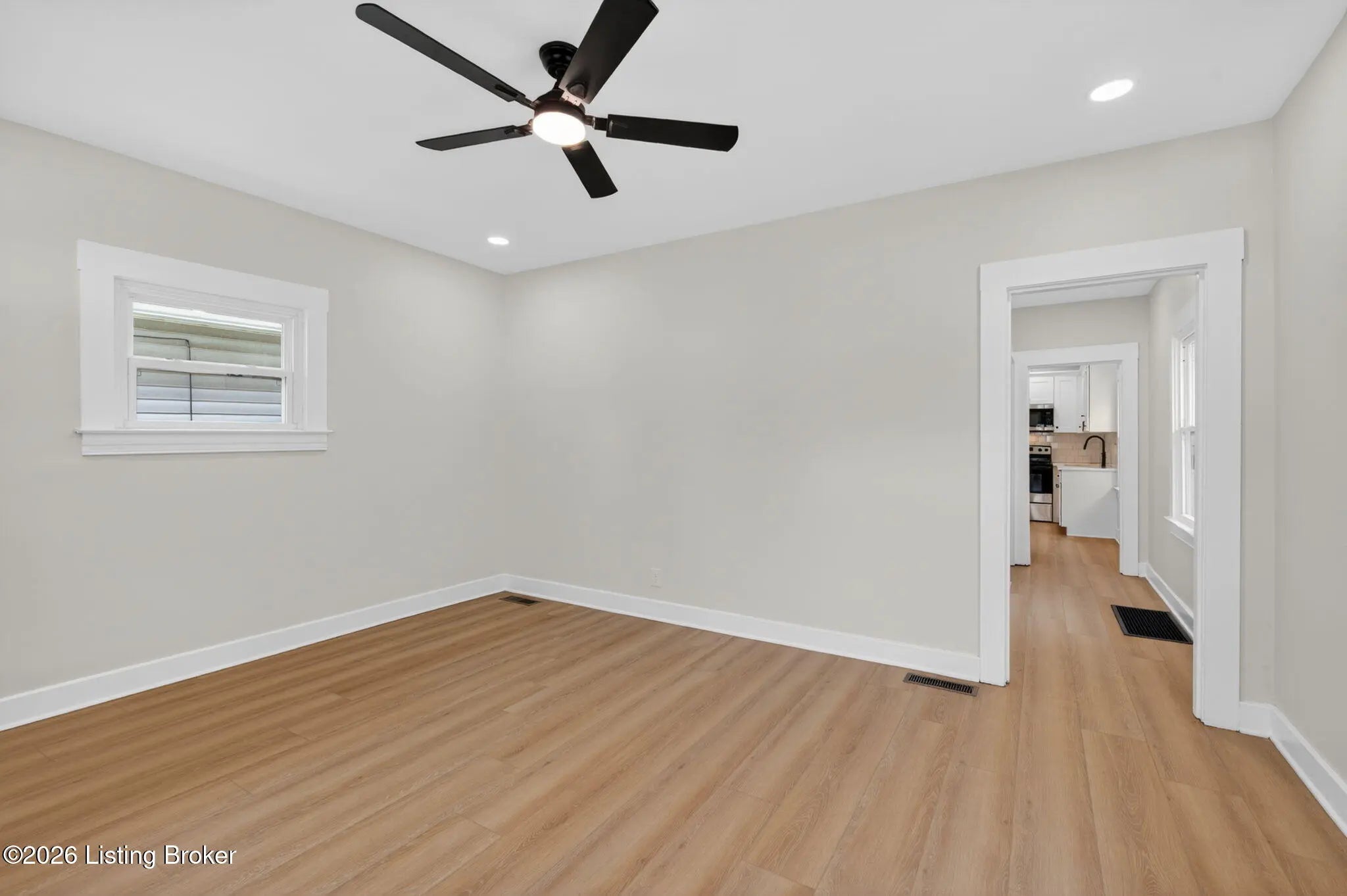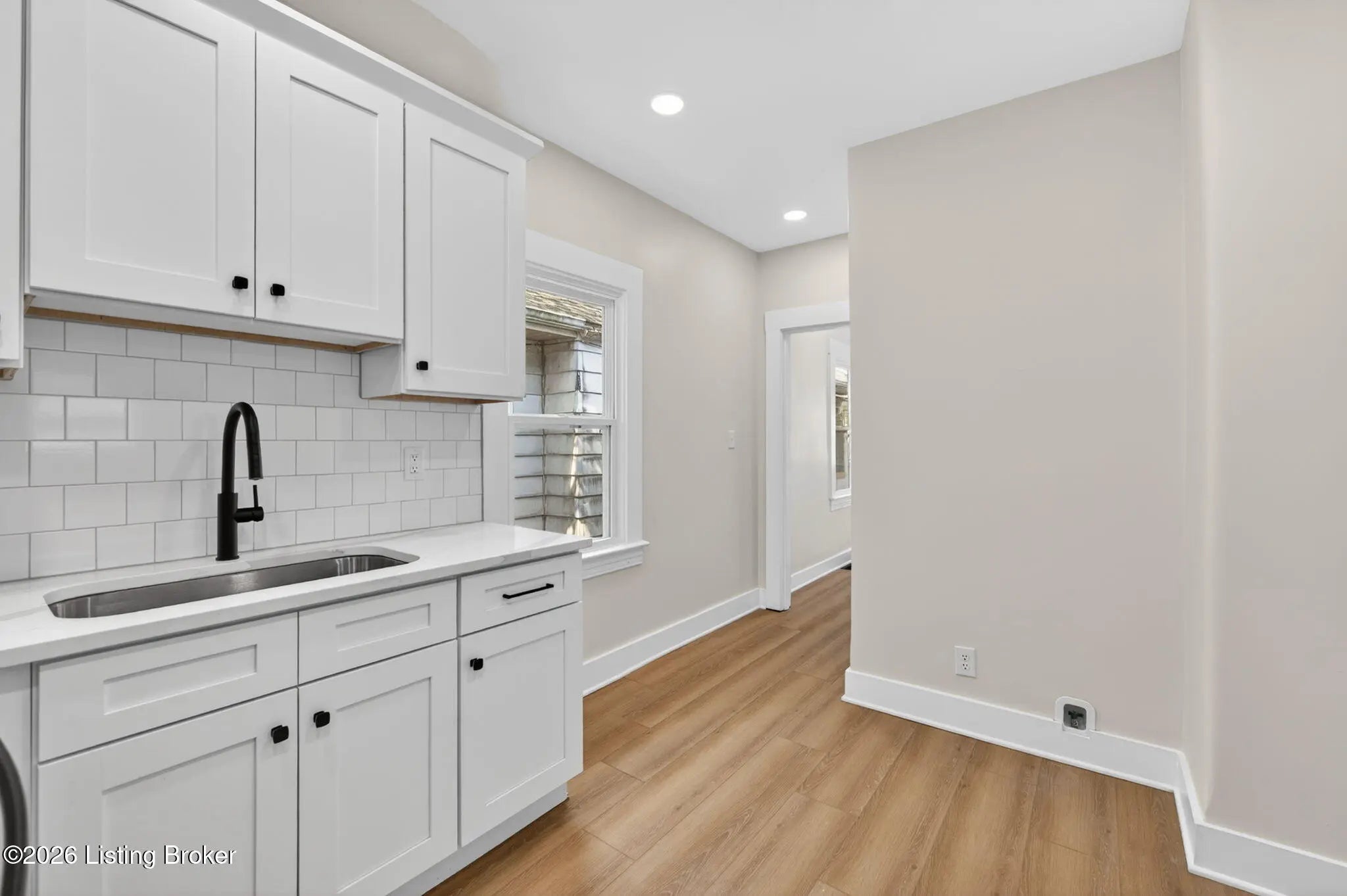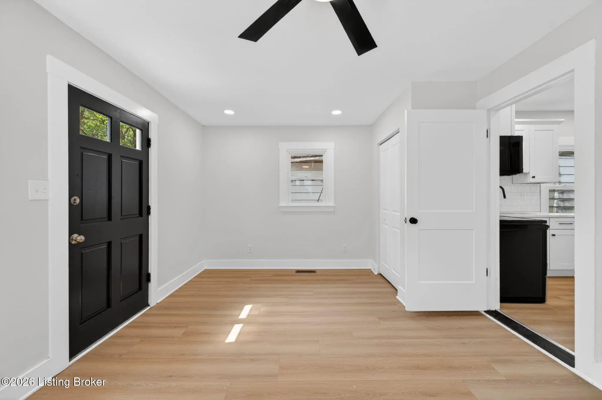 Welcome to this completely renovated shotgun-style gem in Louisville's historic Oakdale neighborhood — truly move-in ready from day one. Step onto the charming covered front porch and into the living room where durable LVP flooring flows seamlessly throughout the home. The updated kitchen impresses with classic white shaker cabinetry, a tile backsplash, quartz countertops, and stainless appliances. The home offers two comfortable bedrooms, including one with its own private entry — ideal for guests, a home office, or rental flexibility — and a second bedroom featuring a generous walk-in closet. The full bath is finished in a timeless checkerboard tile flooring and a marble-tiled shower stall. The unfinished basement provides laundry access along with abundant storage space or the potential for future finished living area. Outside, enjoy the newly added deck overlooking a partially fenced yard, complete with a gravel parking pad. Oakdale sits adjacent to Churchill Downs and the Taylor Boulevard commercial corridor, with easy connectivity to the University of Louisville, downtown Louisville, and major employment centers. Residents also enjoy walkable access to Wyandotte Park and the broader Olmsted Park System. Whether you're a first-time buyer, investor, or downsizer, this one checks every box.