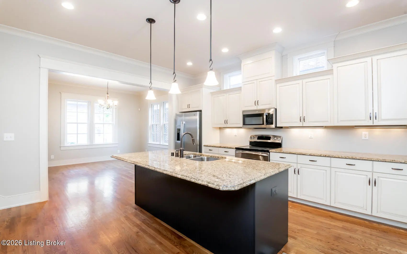 This stylish townhome in the South Village of Norton Commons offers a thoughtfully designed layout with quality finishes and flexible living space. The first floor features an open-concept plan with beautiful hardwood flooring, custom cabinetry, and an elegant trim package that enhances the great room, dining area, and kitchen—perfect for everyday living and entertaining. The second level includes a spacious primary suite complete with a tiled shower, double vanity, and a generous walk-in closet. A second bedroom, full hall bath, and convenient laundry area complete this floor. The third level adds versatility with a nicely sized third bedroom, ideal for guests, a home office, or additional living space. The walkout basement opens to a patio and is roughed in for a full bath, offering excellent potential for future finishing and expanded living space. Outside, enjoy a private rear courtyard with a covered breezeway and privacy fencing, along with a two-car garage that provides both convenience and additional storage. Ideally located close to neighborhood restaurants, shopping, parks, and community pools, this home offers the perfect blend of comfort, convenience, and the vibrant lifestyle Norton Commons has to offer.