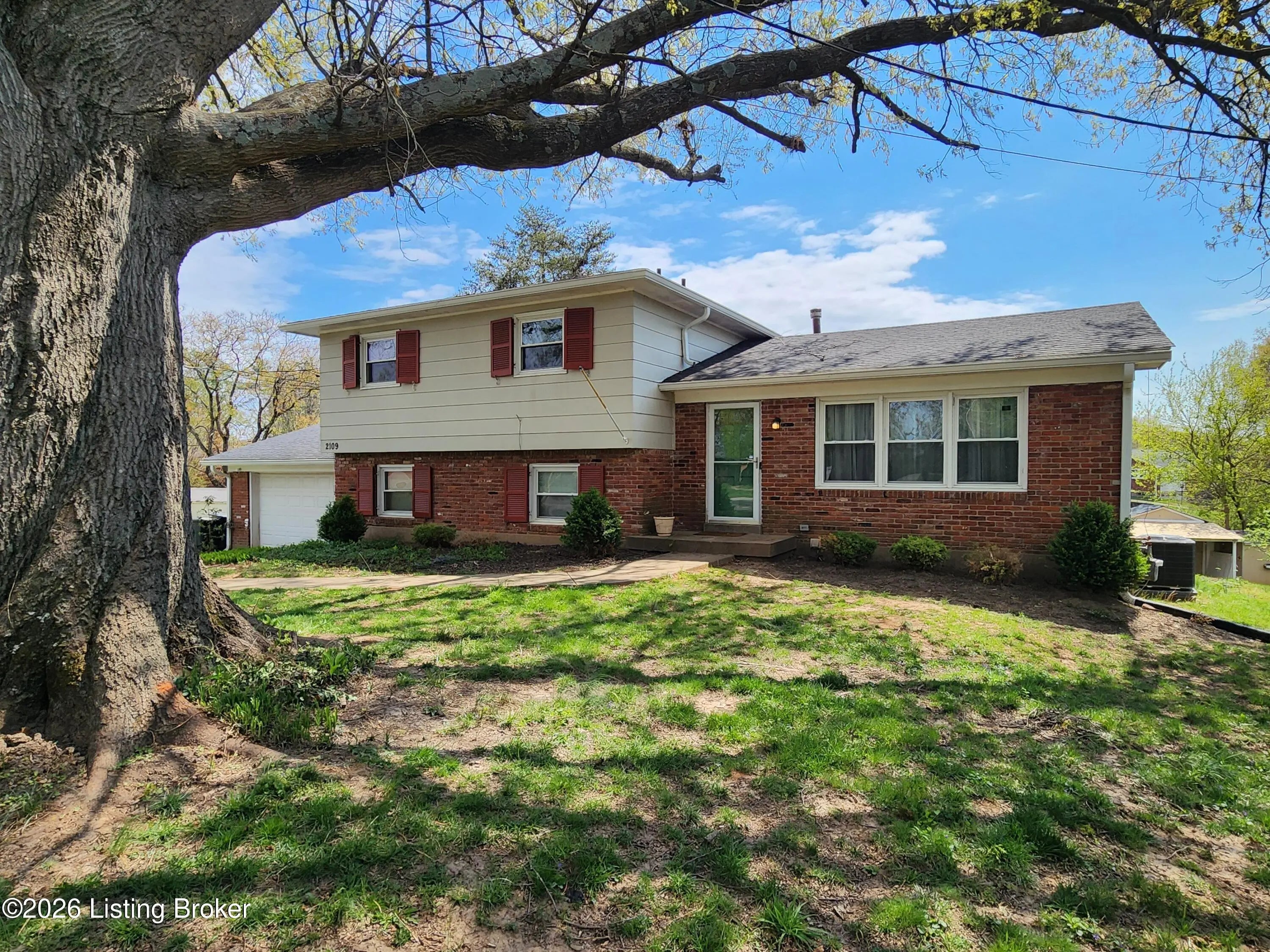 What an opportunity in Bluegrass Estates! This QUAD-LEVEL on a CUL DE SAC with a tremendous lot is ready to be polished to your vision of perfection! With two bedrooms combined to make a large PRIMARY suite, there are still 3 true bedrooms and 2 full bathrooms in this spacious house. Upstairs, the FULL BATHROOM was expanded and has access from the hall and the PBR. On level 1, a HUGE BONUS ROOM was added that can accommodate a large dining table and lounge space for family and guests! The UPDATED KITCHEN is the heart of the home, and seamlessly connects the Living Room, Bonus Room addition, and Family Room. You'll find another BEDROOM and FULL BATHROOM down one level, with the Family Room, and you can escape to the lowest level through a door and just one short flight of steps down from there. Access the PATIO, DECK, and surprisingly LARGE BACKYARD from the Family Room or ATTACHED 2-CAR GARAGE. If you've ever wanted "a little piece of the country" in the city, this is the place for you! You'll have an established asparagus bed, raspberry patch, grape arbor, your own fruit trees, and a potter's shed! There are various other previously-tilled beds in part of the backyard that have been used for seasonal gardening and a pool in the past, and there's still a lot of space to just enjoy playing in the yard! Fall in love with a delightful property, a fantastic neighborhood, and even the chance for some equity by making 2109 Gateway Ct the place you call home!