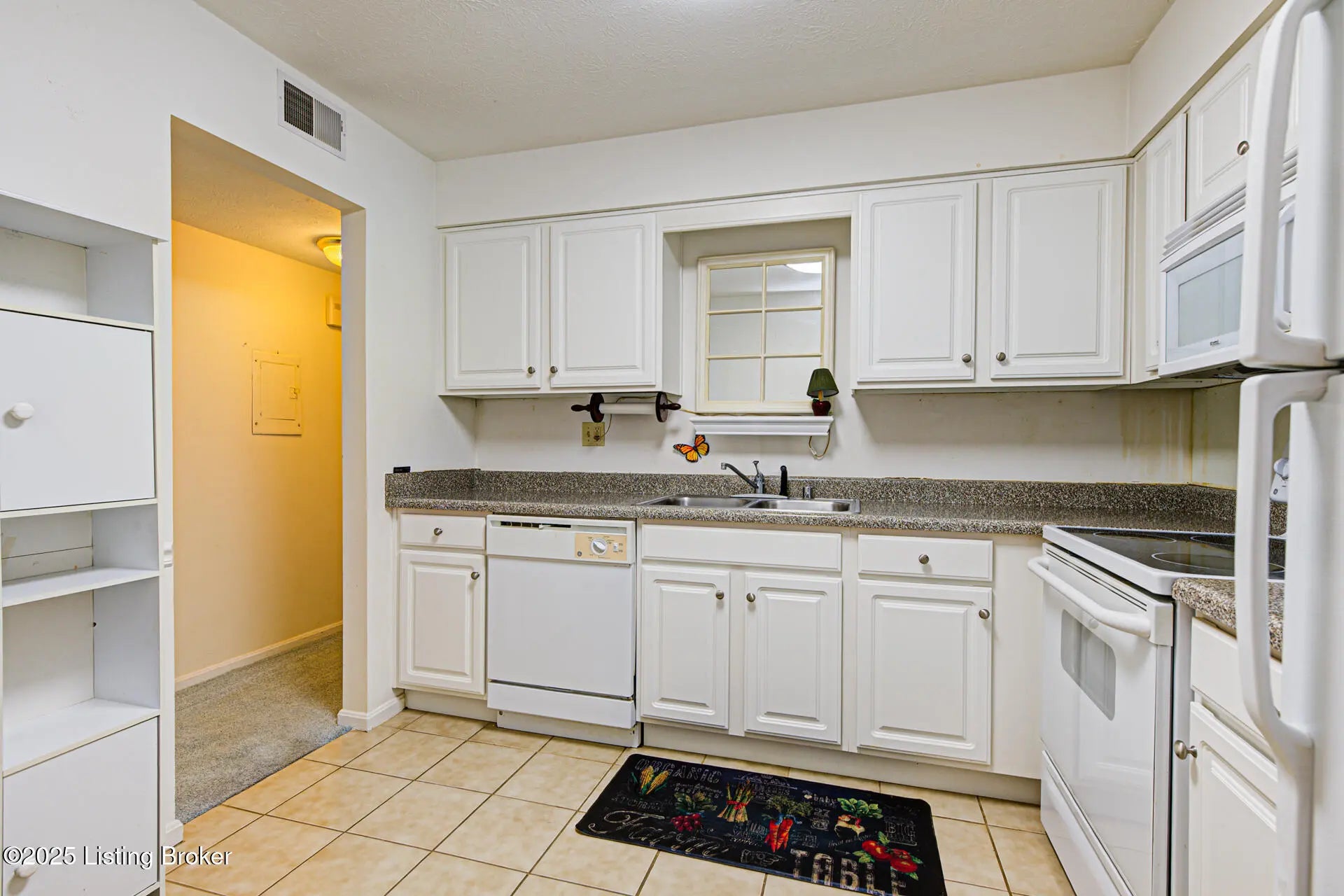 Lovely 2-bedroom, 2 full bath condo conveniently located as an end unit on the first floor in Shelby Crossings. This home has a living room with electric fireplace, dining room, eat-in kitchen, and primary bedroom with laundry closet and clothes closet. The primary bath also has a clothes closet with a separate vanity area and toilet/shower room. A second bedroom with closet and a full bath with 2 linen closets connect to a central hallway. The home has new luxury vinyl plank flooring in the living room, dining space, and hallway with new carpet in the bedrooms. The gas furnace and central air were replaced in 2019, and a UV Air Filter installed. A privacy fenced patio is located off the living room, which is ideal for outdoor entertaining. Washer, dryer, and kitchen appliances to remain; however, the microwave does not work and will not be replaced. The monthly HOA fee covers exterior maintenance, water, sewer, trash, snow removal, grounds keeping, master insurance, and access to the clubhouse amenities and pool. Surface parking is available; however, this unit has the option to rent carport space for an additional cost of $25 per month. Please note that this condo community is not FHA or VA approved and may require a non-warrantable loan or cash.