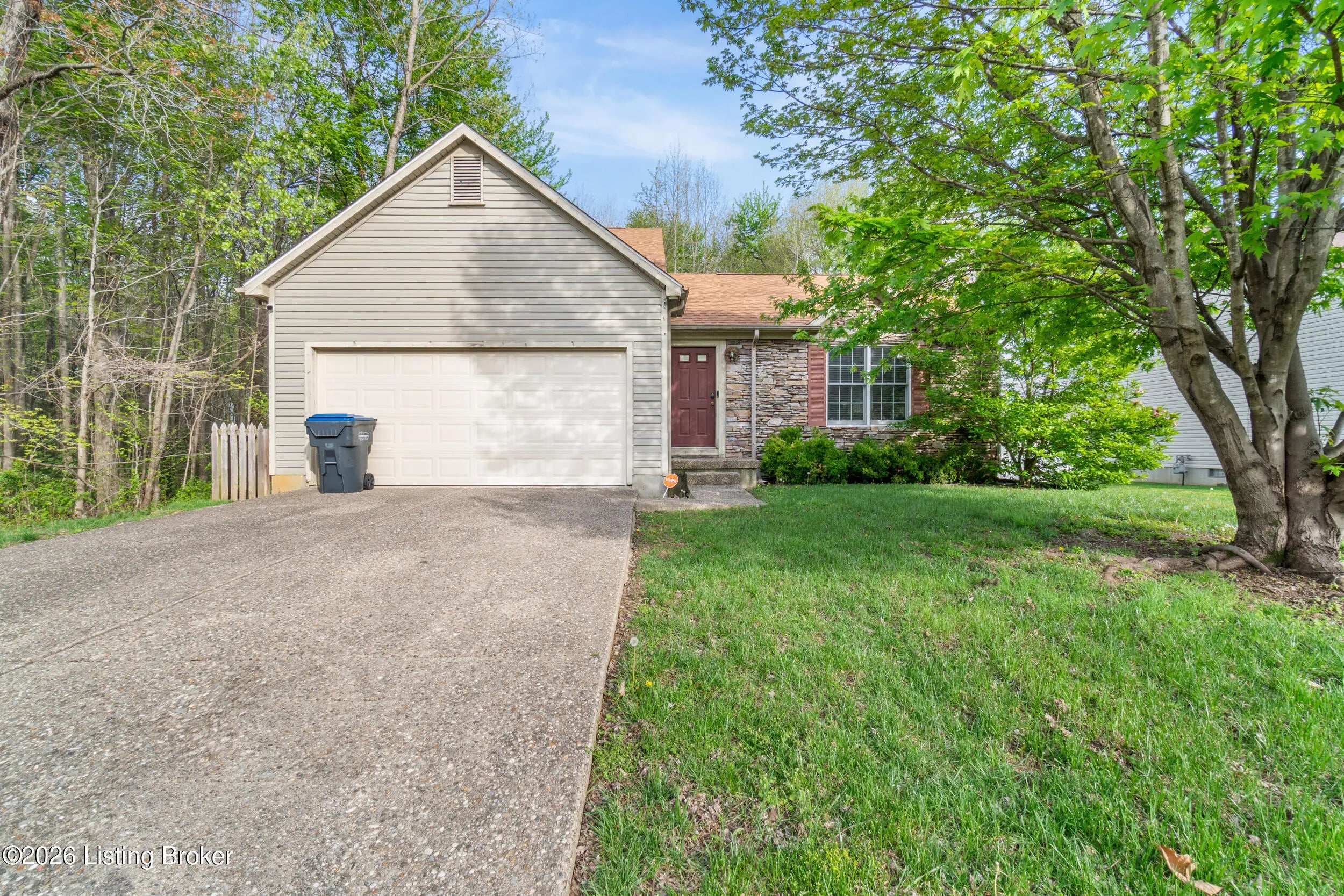 Welcome to this charming 3-bedroom, 2-bath home offering approximately 1,393 square feet of potential! Featuring a convenient layout with one bedroom and a full bath on the first floor, this home is ideal for flexible living arrangements. The property boasts a stone front exterior, a two-car attached front-entry garage, and a semi-private setting with a wooded lot along one side. Inside, the kitchen has been thoughtfully updated with newer cabinets, quartz countertops, modern appliances, and tile flooring—providing a great foundation for further improvements. The roof was also replaced in 2023. The unfinished basement offers additional space for storage or future expansion. With just a bit of TLC, including fresh paint and new carpet, this home can truly shine. Whether you're a buyer looking to personalize your space or an investor seeking your next opportunity, this property offers excellent potential and value.