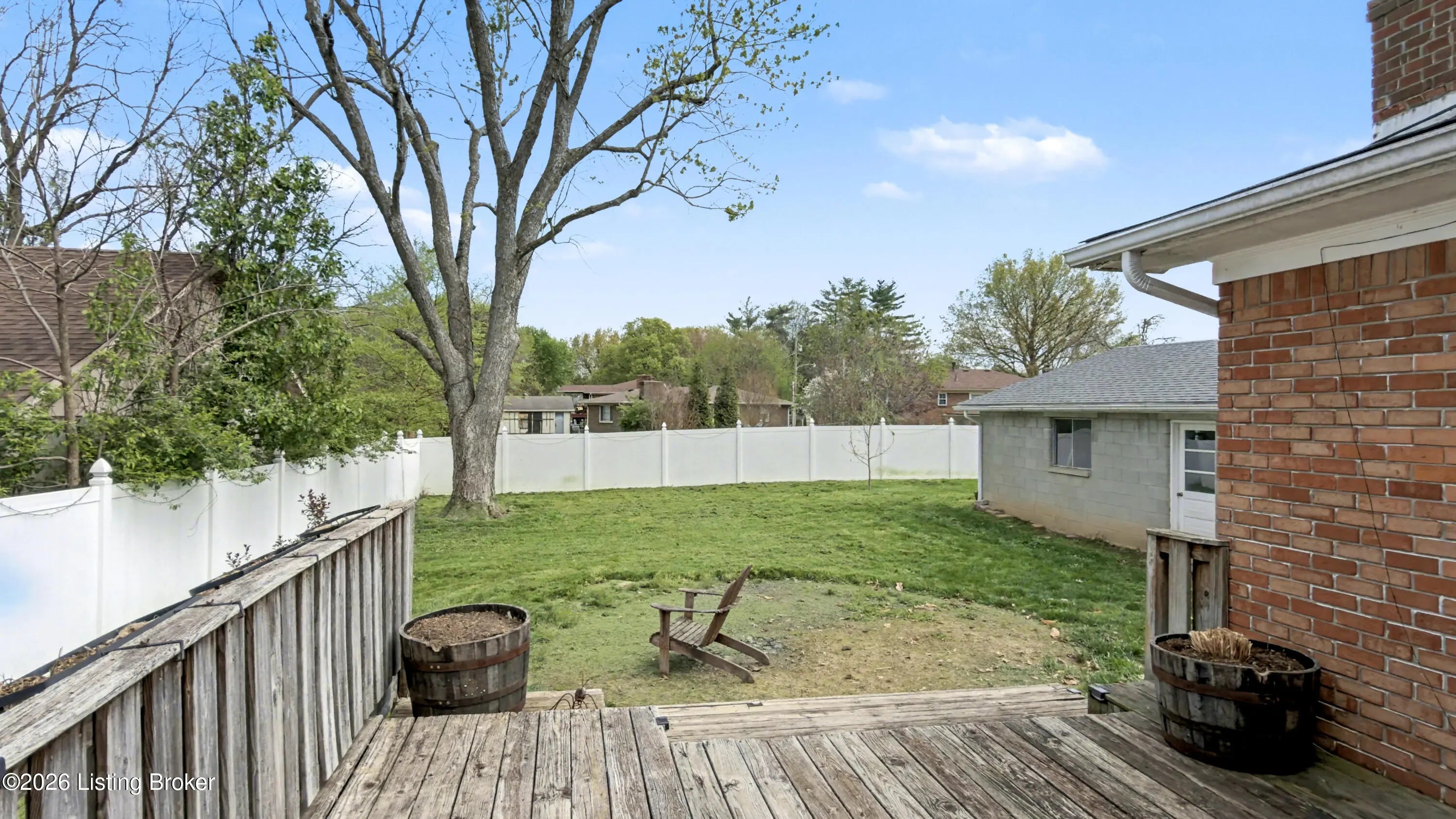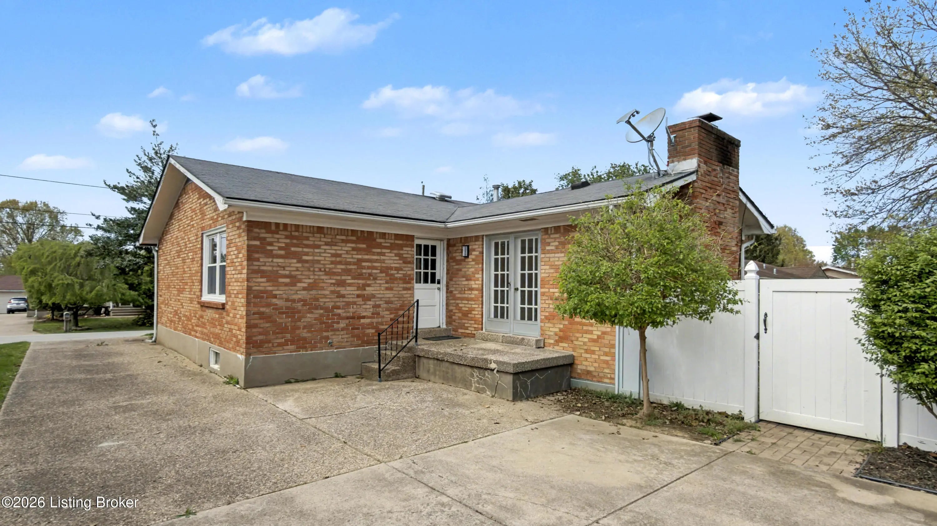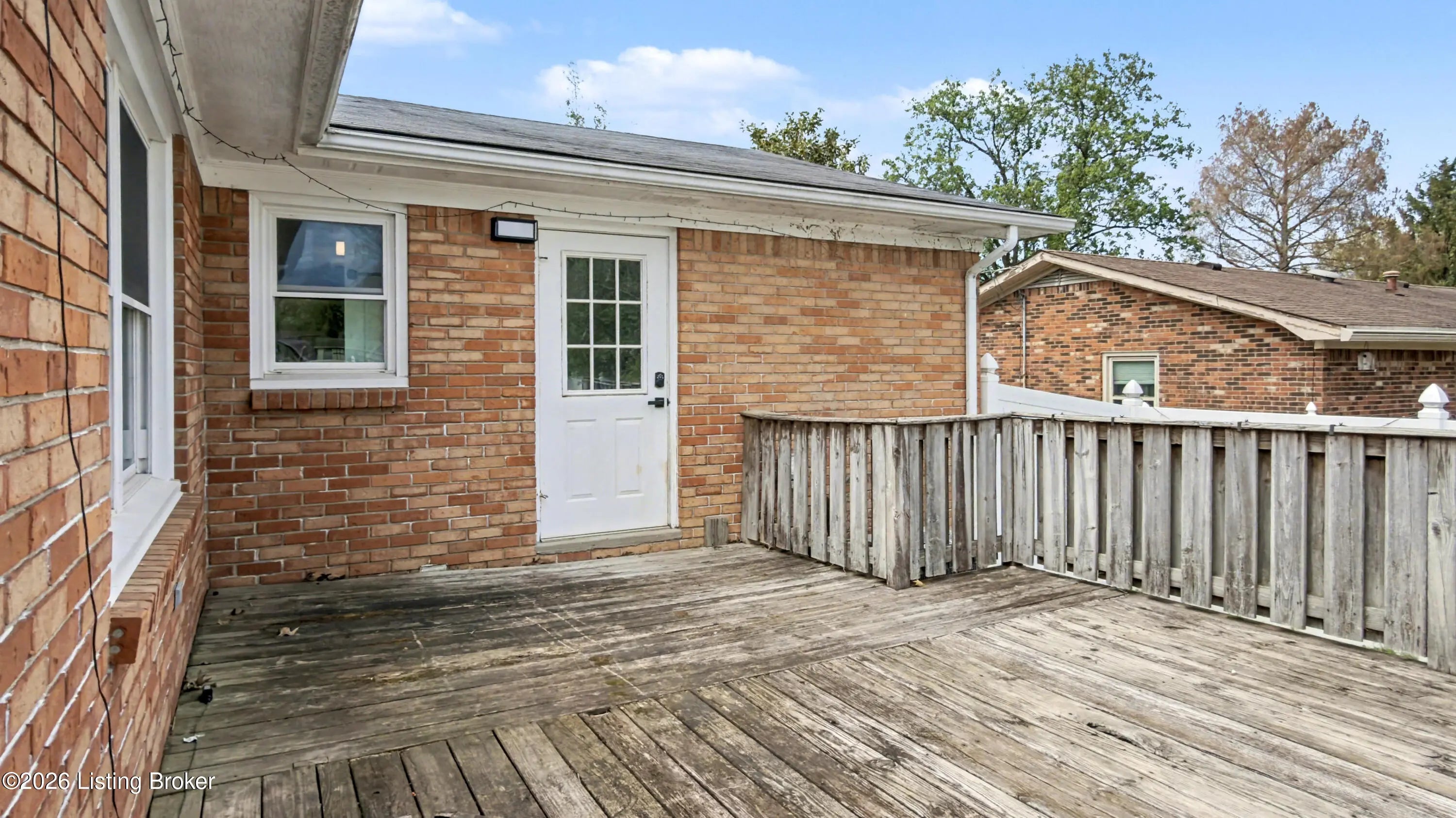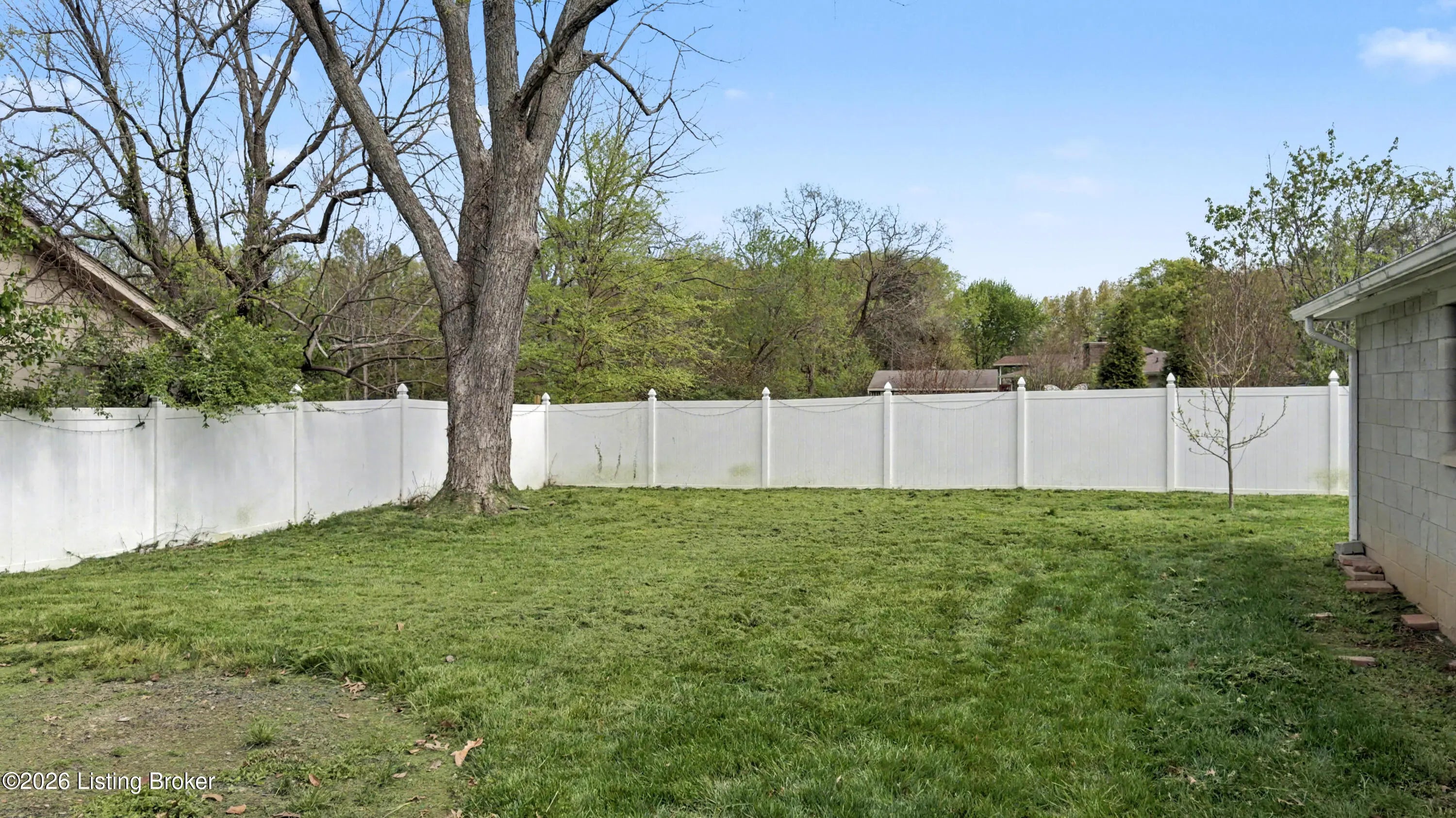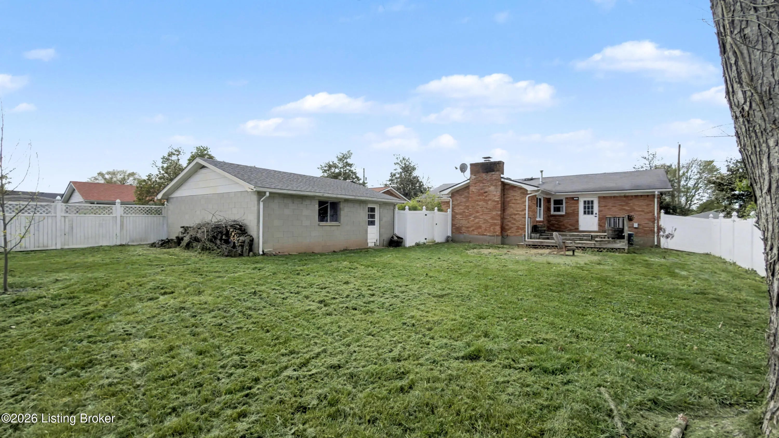 Welcome to this classic brick ranch in Friendly Hills East. Step inside to a traditional living room that flows into a formal dining room, then into the eat-in kitchen with stainless appliances. At the back of the home, a generous family room with a stained wood box-beam ceiling and brick fireplace is made for evenings in, game days, and entertaining. Both full baths have been extensively renovated. The primary bath features a frameless glass shower with floor-to-ceiling tile and a marble-top vanity. Detached 2-car garage, spacious fenced yard with white vinyl privacy fencing, and finished basement rec room plus den. Basement waterproofing by Champion Waterproofing with transferable warranty. Quick access to I-265 and I-65. HOA $75/yr. Schedule your showing today. Three bedrooms and two full baths round out the main floor. The primary bedroom includes a door to the rear deck and direct access to the renovated en suite, which features a large frameless glass-enclosed shower with floor-to-ceiling tile, hexagon mosaic floor tile, a built-in niche, marble-top vanity, and matte black hardware. The hall bath was extensively renovated as well, with a tiled tub surround and updated vanity with marble top. All three bedrooms have LVP flooring and ceiling fans. LVP and new baseboards run throughout the main living areas, installed in 2021. Downstairs, the finished basement adds a rec room with recessed lighting and a wood-paneled accent wall, plus a separate den well-suited for a home office or flex space. The large unfinished area provides substantial storage alongside the mechanicals. The rear deck, spacious fenced yard, and white vinyl privacy fencing make the outdoor space as functional as the interior. The detached 2-car garage sits at the back of the property on a concrete driveway. Documented improvements include: new 50-gallon water heater (2026), basement waterproofing with transferable warranty (2026), new garage roof (2024), extensively renovated primary bath (2024), central air on a routine two-year inspection schedule, extensively renovated hall bath (2018), new gutters with Rhino Gutter Guard (2015), LVP flooring and baseboards throughout (2021), and house roof replaced (2014). Located in the deed-restricted Friendly Hills East neighborhood, just off I-265 exit 14 with quick access to I-65.