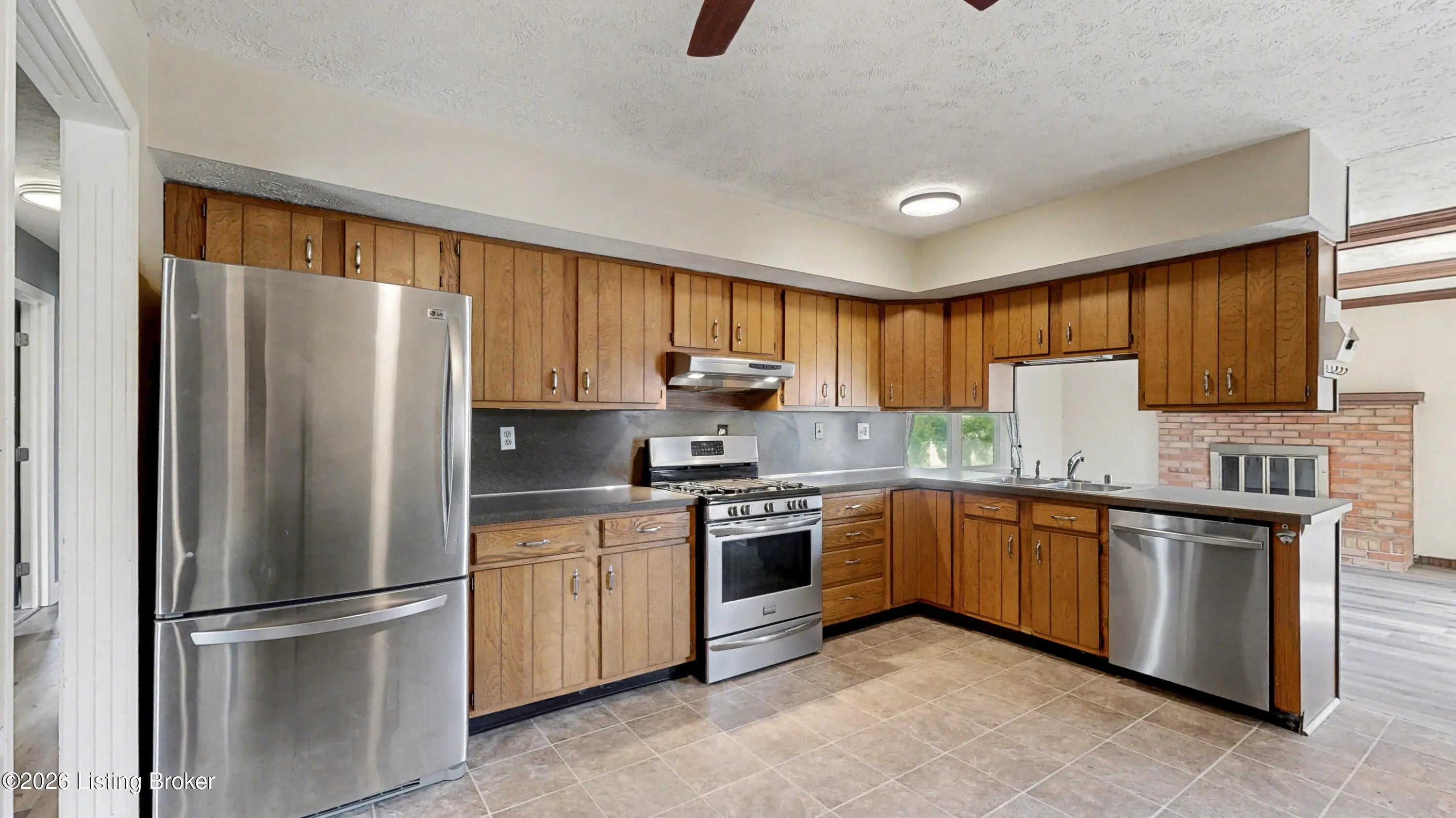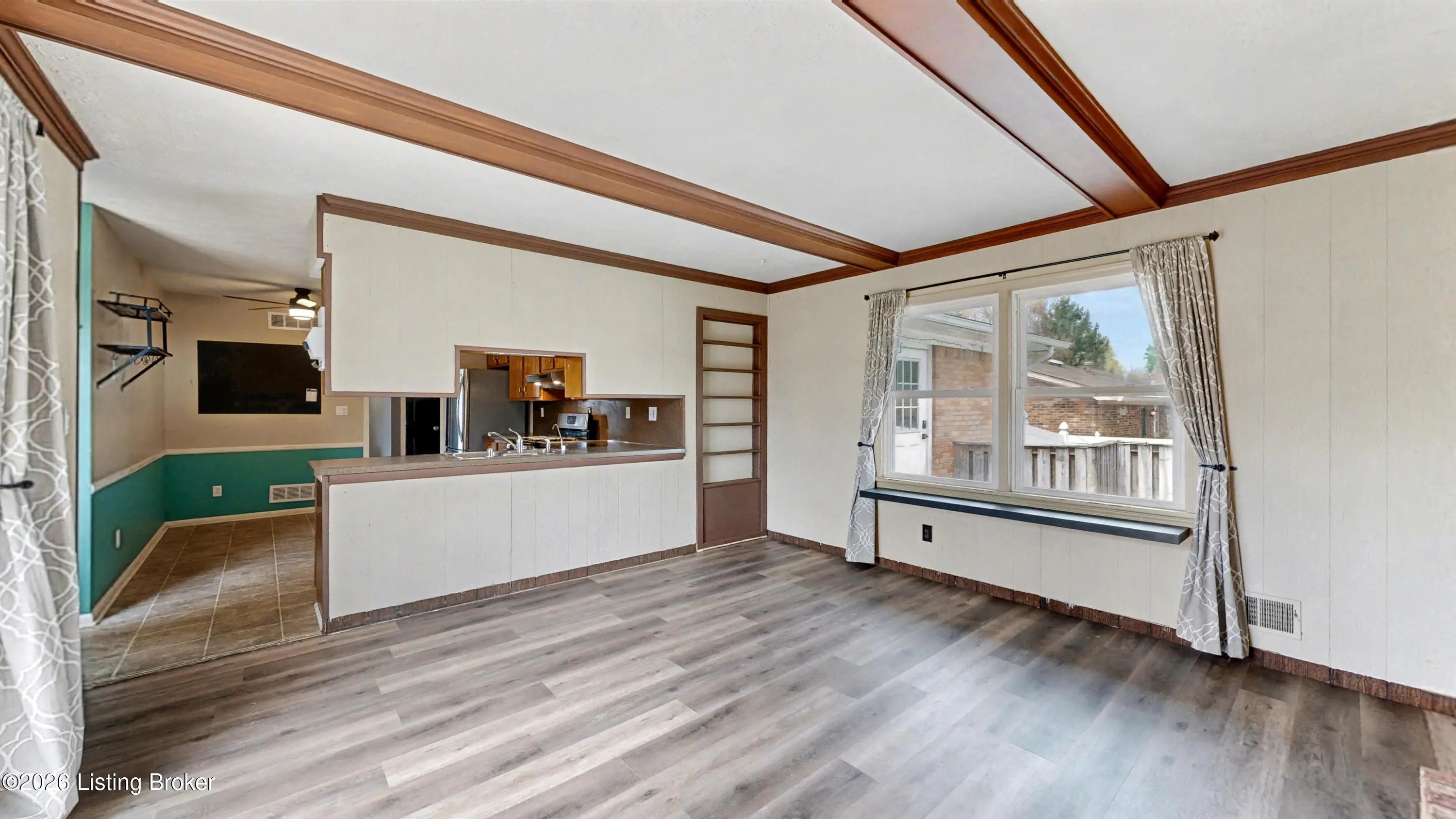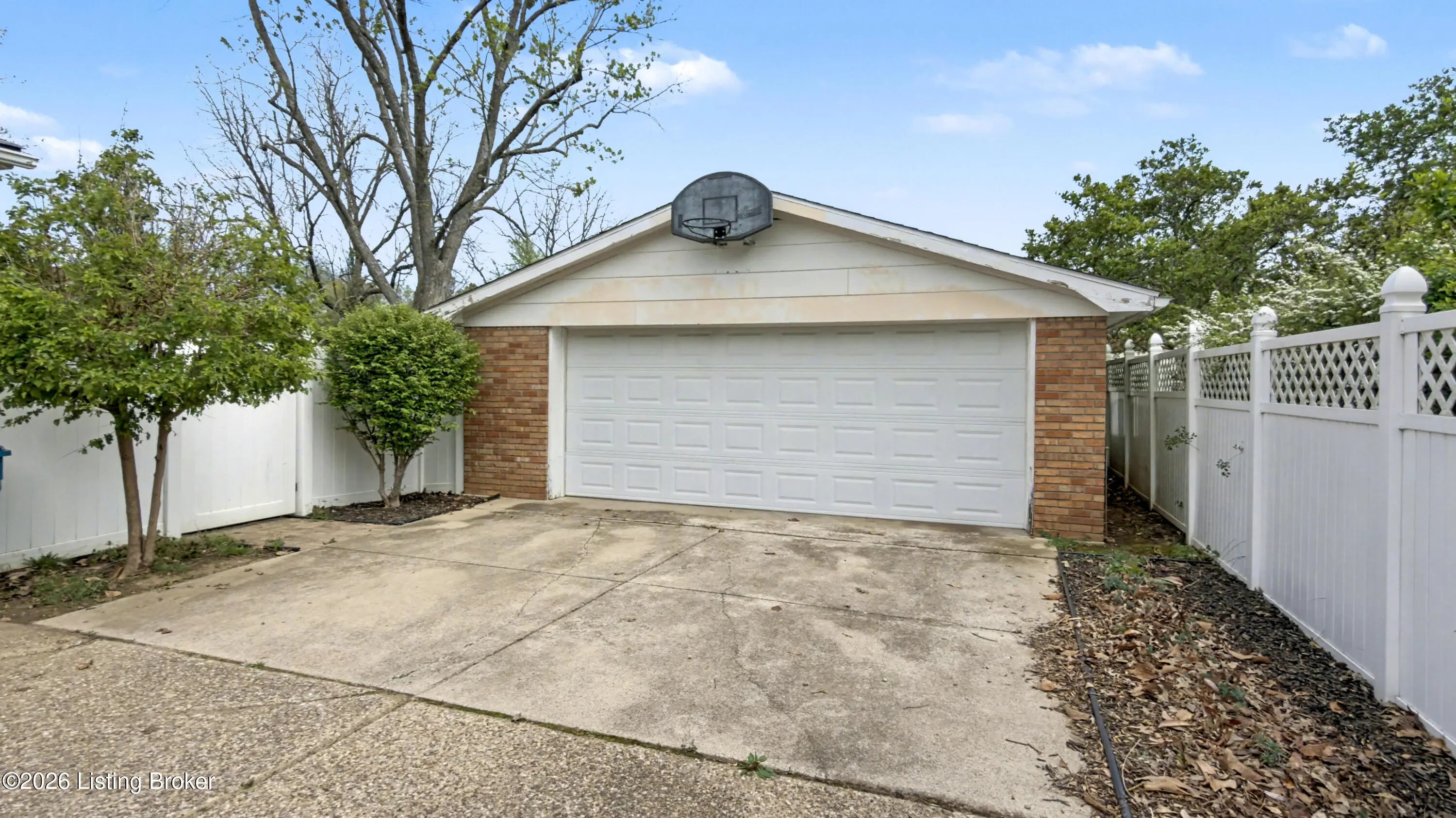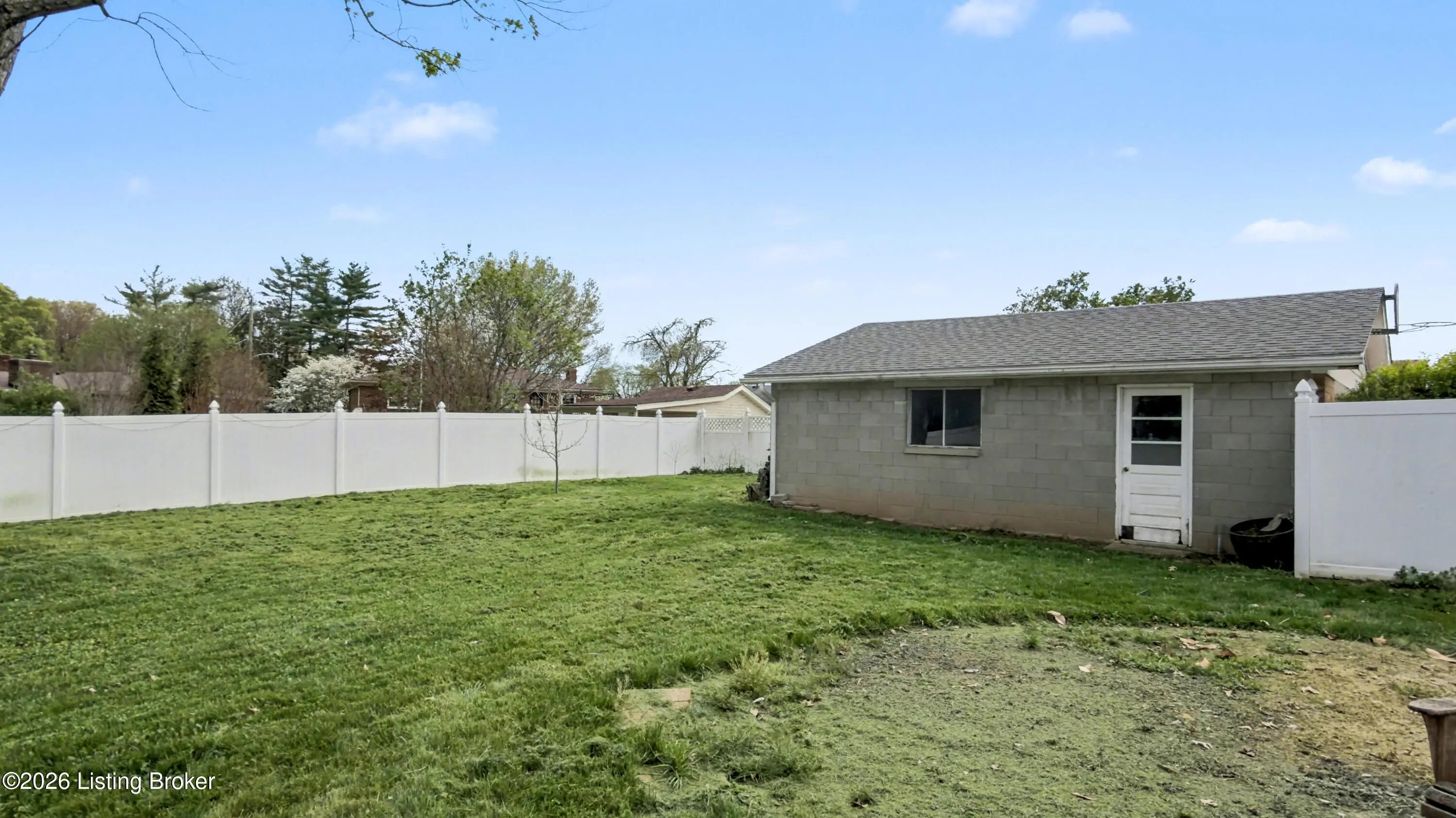 Welcome to this classic brick ranch in Friendly Hills East. Step inside to a traditional living room that flows into a formal dining room, then into the eat-in kitchen with stainless appliances. At the back of the home, a generous family room with a stained wood box-beam ceiling and brick fireplace is made for evenings in, game days, and entertaining. Both full baths have been extensively renovated. The primary bath features a frameless glass shower with floor-to-ceiling tile and a marble-top vanity. Detached 2-car garage, spacious fenced yard with white vinyl privacy fencing, and finished basement rec room plus den. Basement waterproofing by Champion Waterproofing with transferable warranty. Quick access to I-265 and I-65. HOA $75/yr. Schedule your showing today. Three bedrooms and two full baths round out the main floor. The primary bedroom includes a door to the rear deck and direct access to the renovated en suite, which features a large frameless glass-enclosed shower with floor-to-ceiling tile, hexagon mosaic floor tile, a built-in niche, marble-top vanity, and matte black hardware. The hall bath was extensively renovated as well, with a tiled tub surround and updated vanity with marble top. All three bedrooms have LVP flooring and ceiling fans. LVP and new baseboards run throughout the main living areas, installed in 2021. Downstairs, the finished basement adds a rec room with recessed lighting and a wood-paneled accent wall, plus a separate den well-suited for a home office or flex space. The large unfinished area provides substantial storage alongside the mechanicals. The rear deck, spacious fenced yard, and white vinyl privacy fencing make the outdoor space as functional as the interior. The detached 2-car garage sits at the back of the property on a concrete driveway. Documented improvements include: new 50-gallon water heater (2026), basement waterproofing with transferable warranty (2026), new garage roof (2024), extensively renovated primary bath (2024), central air on a routine two-year inspection schedule, extensively renovated hall bath (2018), new gutters with Rhino Gutter Guard (2015), LVP flooring and baseboards throughout (2021), and house roof replaced (2014). Located in the deed-restricted Friendly Hills East neighborhood, just off I-265 exit 14 with quick access to I-65.