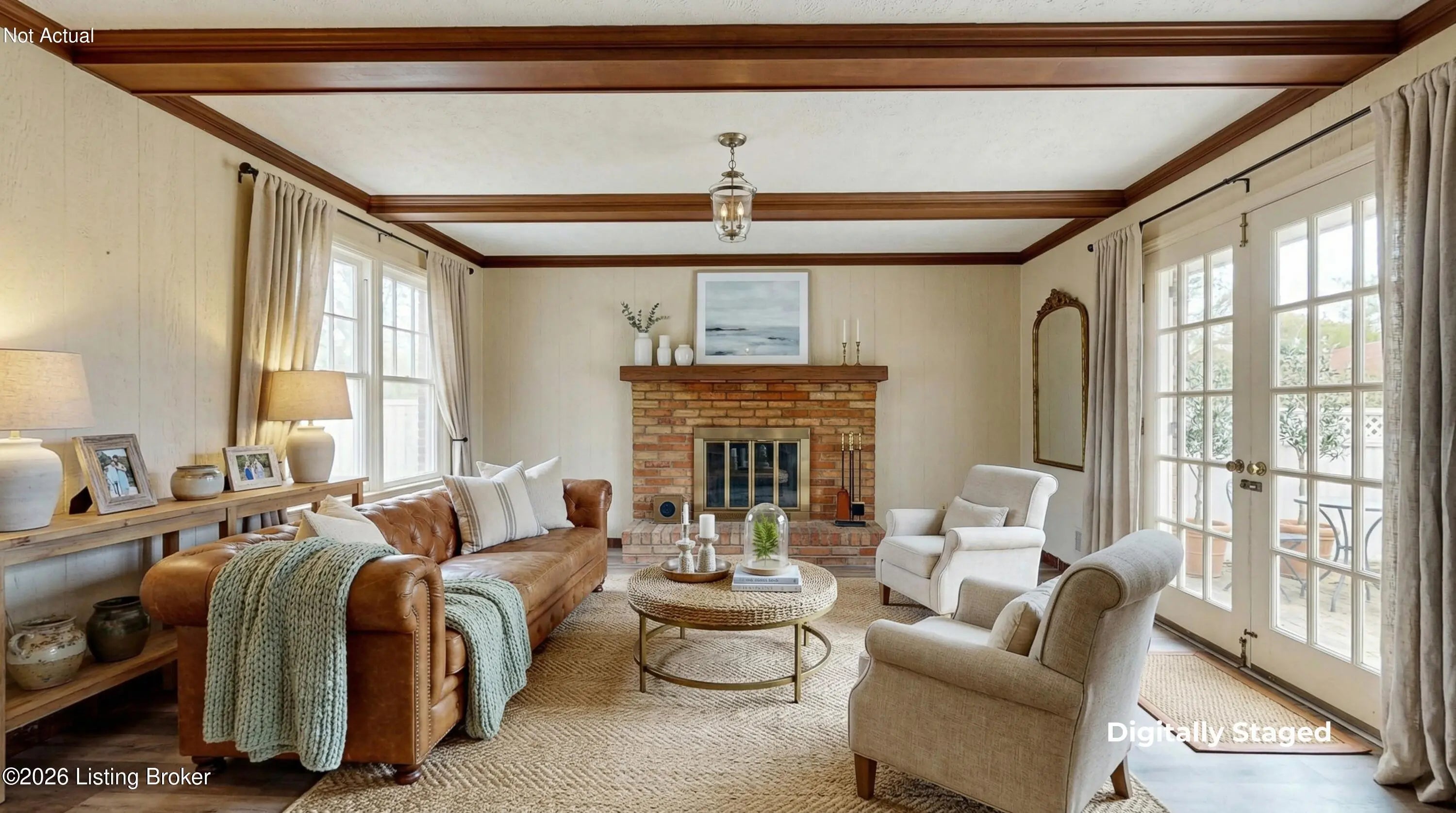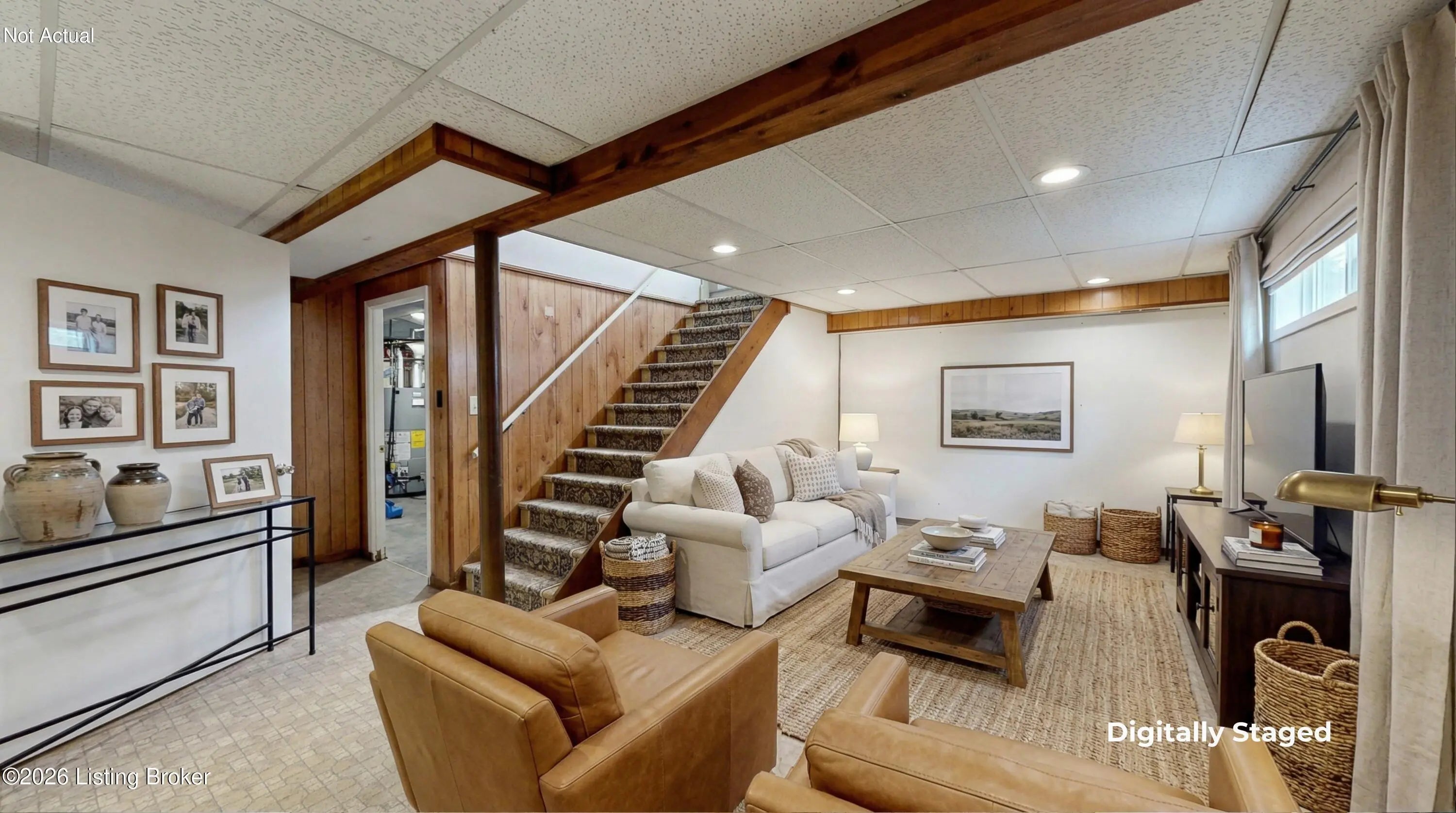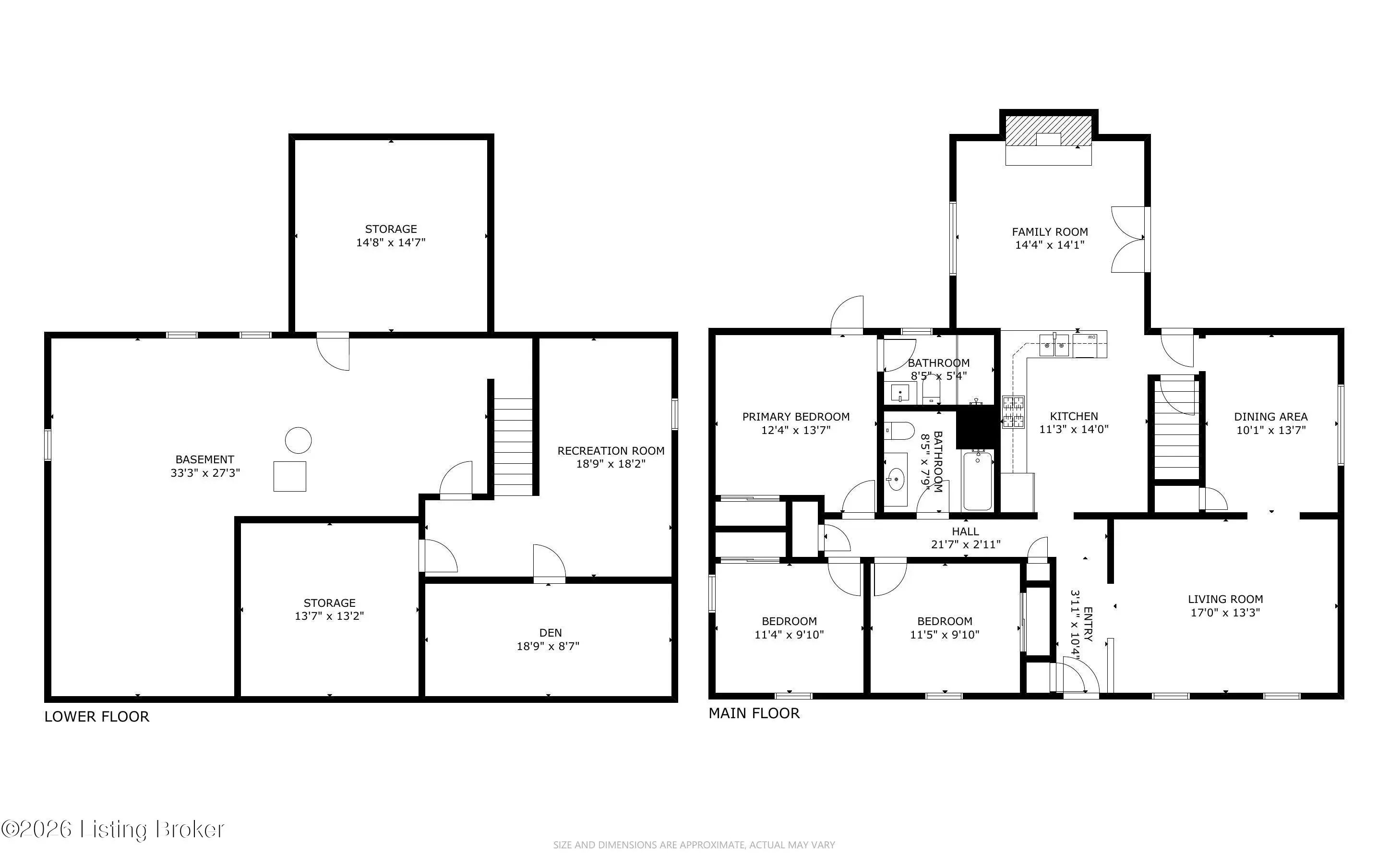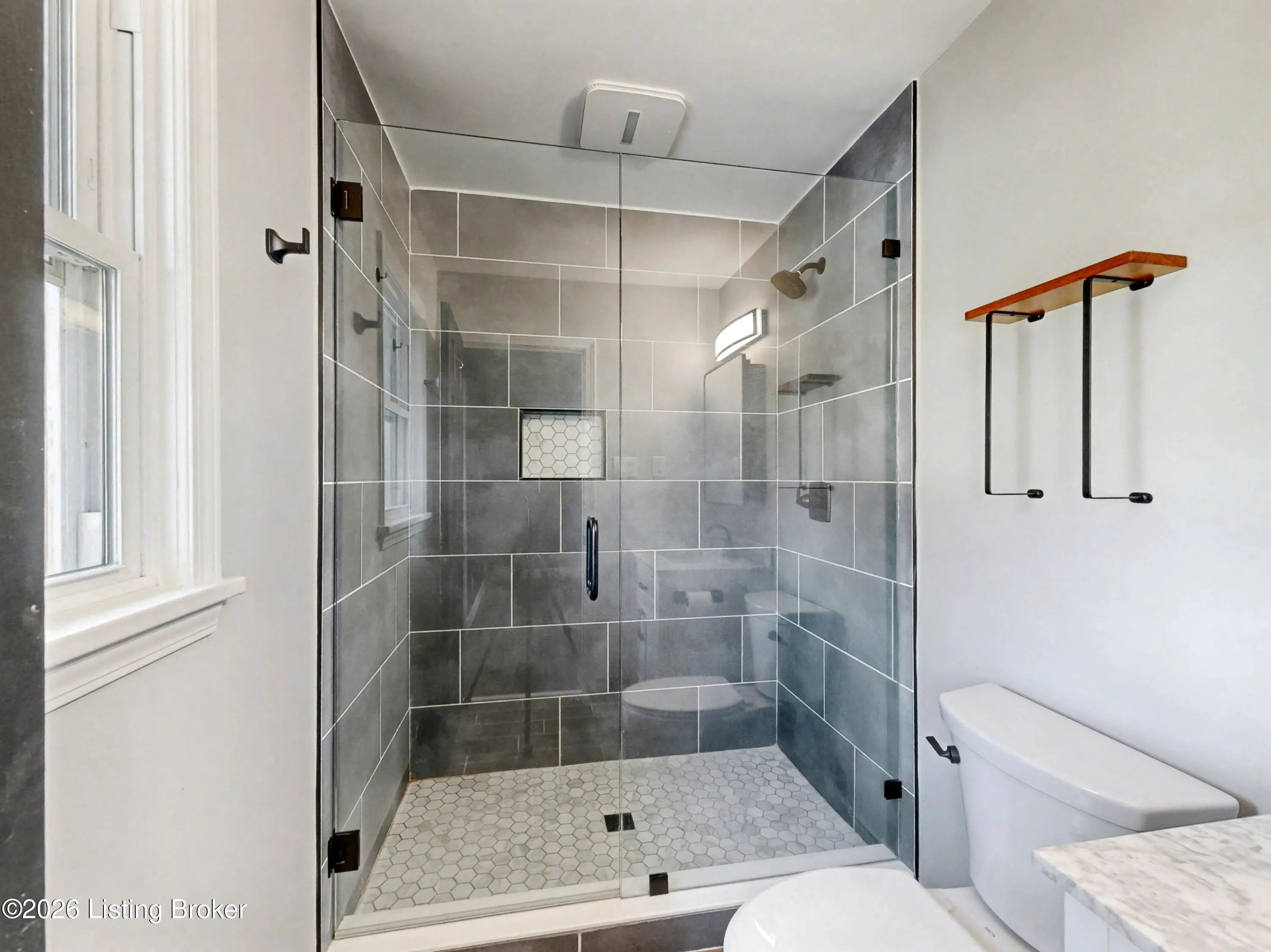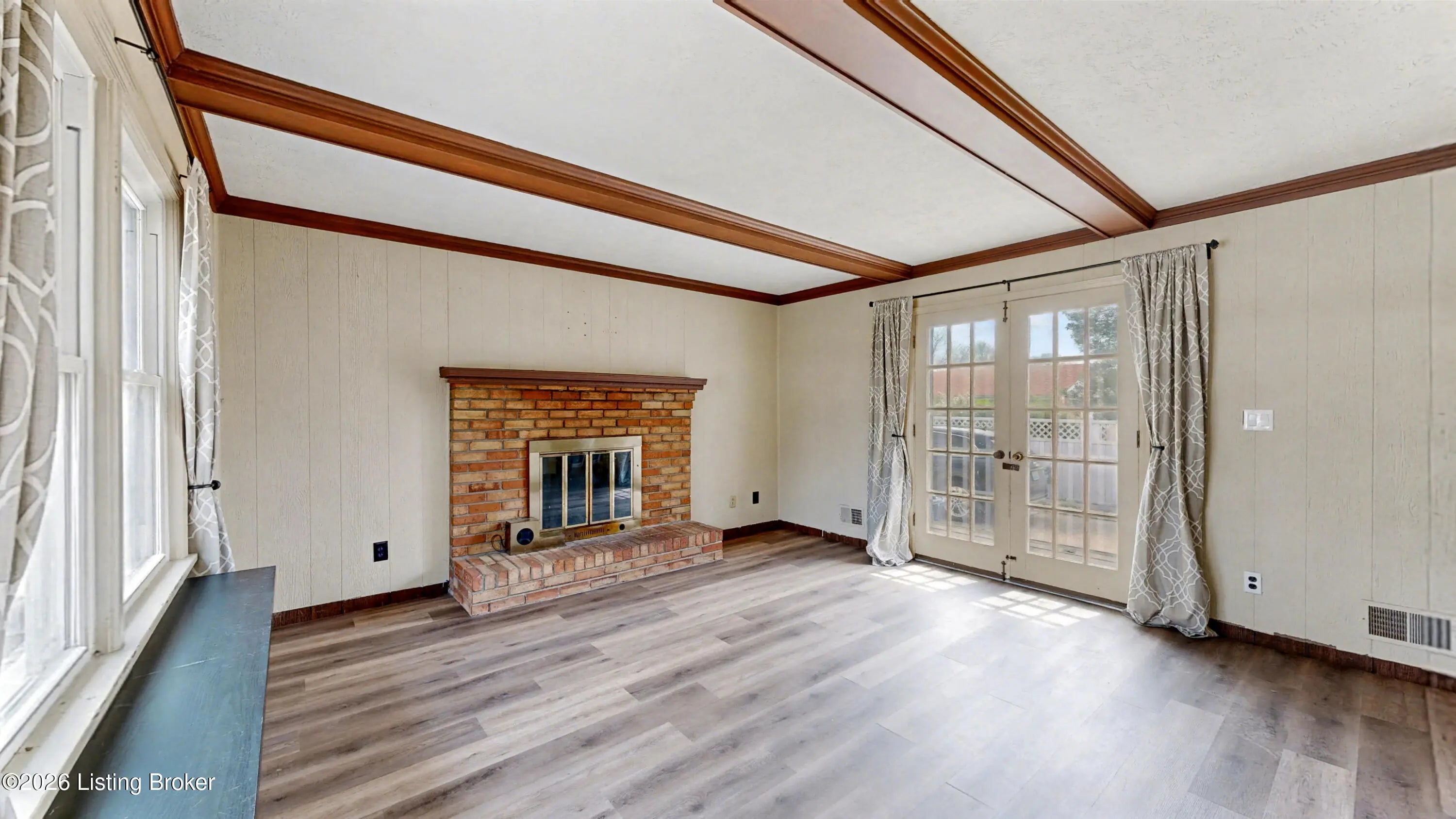 Welcome to this classic brick ranch in Friendly Hills East. Step inside to a traditional living room that flows into a formal dining room, then into the eat-in kitchen with stainless appliances. At the back of the home, a generous family room with a stained wood box-beam ceiling and brick fireplace is made for evenings in, game days, and entertaining. Both full baths have been extensively renovated. The primary bath features a frameless glass shower with floor-to-ceiling tile and a marble-top vanity. Detached 2-car garage, spacious fenced yard with white vinyl privacy fencing, and finished basement rec room plus den. Basement waterproofing by Champion Waterproofing with transferable warranty. Quick access to I-265 and I-65. HOA $75/yr. Schedule your showing today. Three bedrooms and two full baths round out the main floor. The primary bedroom includes a door to the rear deck and direct access to the renovated en suite, which features a large frameless glass-enclosed shower with floor-to-ceiling tile, hexagon mosaic floor tile, a built-in niche, marble-top vanity, and matte black hardware. The hall bath was extensively renovated as well, with a tiled tub surround and updated vanity with marble top. All three bedrooms have LVP flooring and ceiling fans. LVP and new baseboards run throughout the main living areas, installed in 2021. Downstairs, the finished basement adds a rec room with recessed lighting and a wood-paneled accent wall, plus a separate den well-suited for a home office or flex space. The large unfinished area provides substantial storage alongside the mechanicals. The rear deck, spacious fenced yard, and white vinyl privacy fencing make the outdoor space as functional as the interior. The detached 2-car garage sits at the back of the property on a concrete driveway. Documented improvements include: new 50-gallon water heater (2026), basement waterproofing with transferable warranty (2026), new garage roof (2024), extensively renovated primary bath (2024), central air on a routine two-year inspection schedule, extensively renovated hall bath (2018), new gutters with Rhino Gutter Guard (2015), LVP flooring and baseboards throughout (2021), and house roof replaced (2014). Located in the deed-restricted Friendly Hills East neighborhood, just off I-265 exit 14 with quick access to I-65.