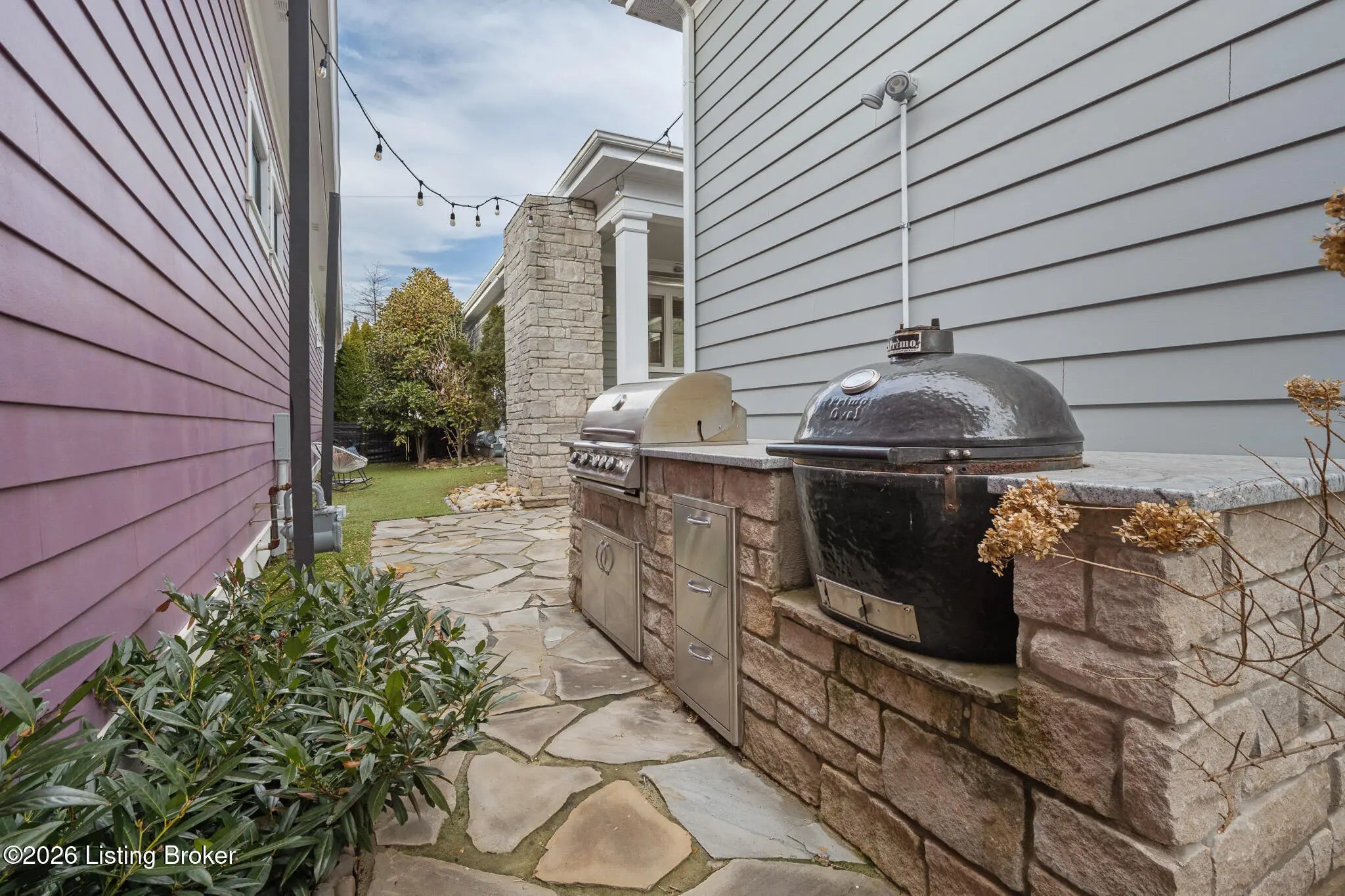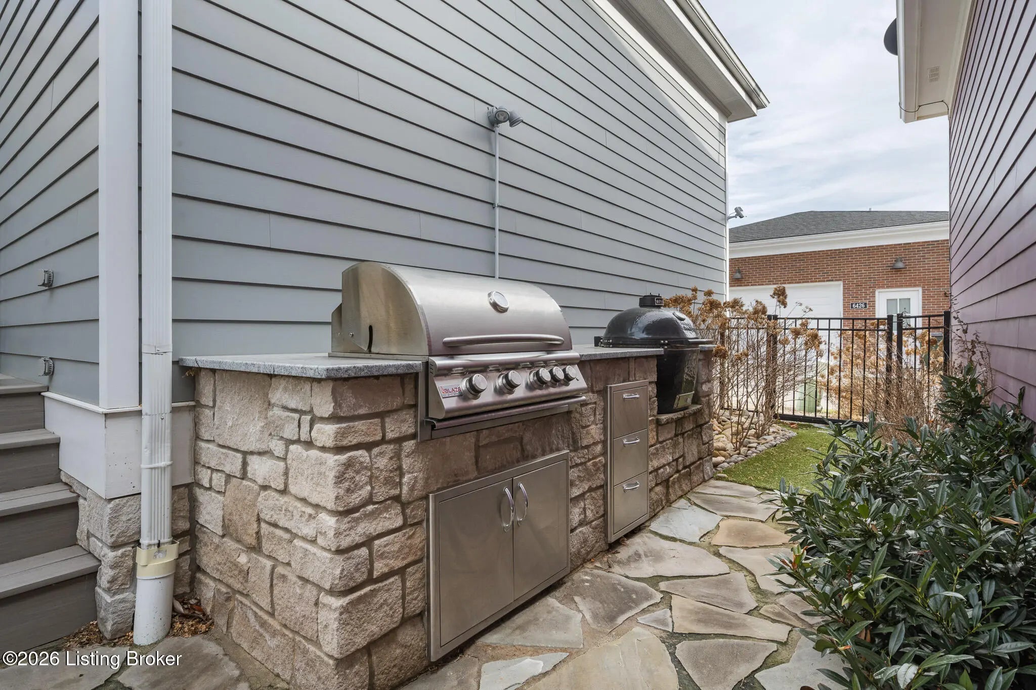Welcome home to 6425 Paintbrush Lane in the North Village of Norton Commons. This three-bedroom, three-bathroom ranch home offers easy single-story living with impressive amenities throughout. The open first floor features a thoughtfully designed living room with built-ins and a gas fireplace that flows seamlessly into a bright kitchen equipped with a pantry and a gas range. The island offers plenty of seating and the kitchen showcases upgraded lighting, fixtures, and appliances. The first-floor primary suite is well laid out, flowing through the en suite—complete with a large walk-in shower and double vanities—into an attached walk-in closet. A second bedroom and updated full bath complete the main level, along with convenient first-floor laundry. The fully finished basement is an entertainer's dream, complete with surround sound and a custom bar featuring a beer tap, wine cooler, and beverage cooler. A third bedroom and full bath provide comfortable guest accommodations. For pet lovers, the home even includes a dedicated dog room with a TV, lounge area, and custom doggie door, adding unique charm. The basement also offers a large unfinished area, allowing for ample storage. Outside, the backyard delivers resort-style relaxation with a Jacuzzi hot tub, an outdoor gas fireplace with a covered seating area and electric heater, and an outdoor kitchen area with grill, and a charcoal egg smoker that conveys. Maintenance-free side turf yard create the perfect space for pets and leisure alike. An expansive and rare three-car garage with a Tesla charger rounds out the package. All appliances are included, along with the washer and dryer. The home also features geothermal heating and cooling for added efficiency. Norton Commons residents enjoy parks, trails, 3 pools (including one splash pool), dog parks, community gardens, playgrounds, fully stocked lake, amphitheater, walking trails, vibrant community events, and nearby dining and shopping.