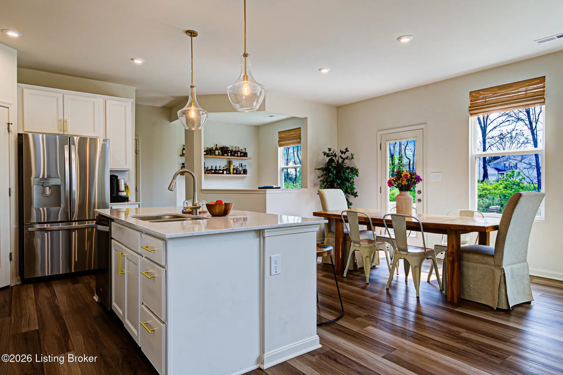 This beautiful three-bedroom, two-and-a-half-bathroom home in the desirable Creekstone subdivision offers a perfect blend of modern upgrades and natural privacy. Situated on a spacious 1/3 acre lot, the property features a fully fenced backyard that backs up to a wooded area, providing a quiet and relaxing space. The interior showcases a thoughtfully designed kitchen equipped with white maple cabinetry, durable quartz countertops, two pantries and a gas stove. Luxury vinyl plank flooring spans the main living areas, offering both style and easy maintenance. The open-concept layout flows effortlessly into the dining and living spaces, where large windows invite an abundance of natural light and offer views of the private outdoor space. The primary suite features a decorative tray ceiling, a spacious flex area, and a private bathroom with a double vanity and contemporary finishes. Throughout the home, upgraded lighting fixtures and neutral tones create an inviting atmosphere. With three flexible living areas suitable for various lifestyle needs, this home is ready for its next chapter. Conveniently located just off I-71, minutes from Oldham County schools, the YMCA, multiple golf courses, the aquatic center, libraries, grocery stores, and much more! This home is a perfect blend of style, space, and convenience. Schedule your private showing today!