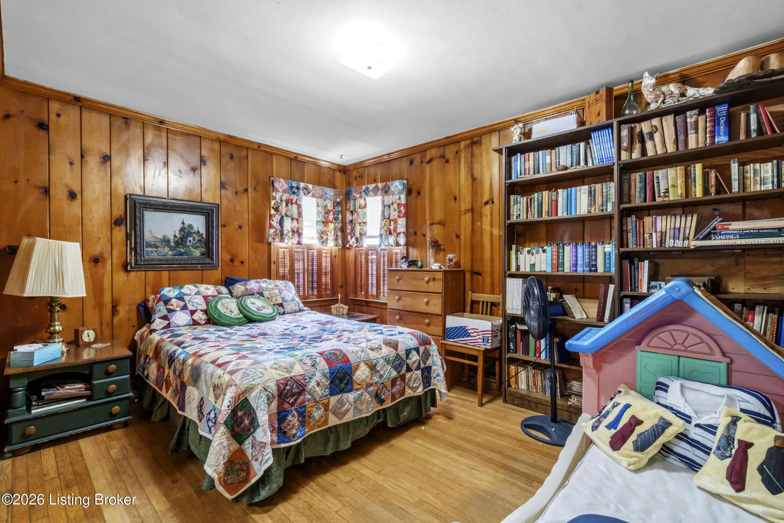 Great opportunity, 4 bedroom, 2 full and 2 half baths with 2,189 square feet of living space on .41 acres. This living room features custom built wood bookcases and fireplace, the large front window allows an abundance of natural light. The primary bedroom offers a walk-in closet, and ensuite bath and bay window overlooking the backyard. The 2-car detached garage has a 2nd level for a workshop or additional storage. Please include financial approval with all offers. Storage shed does not remain.