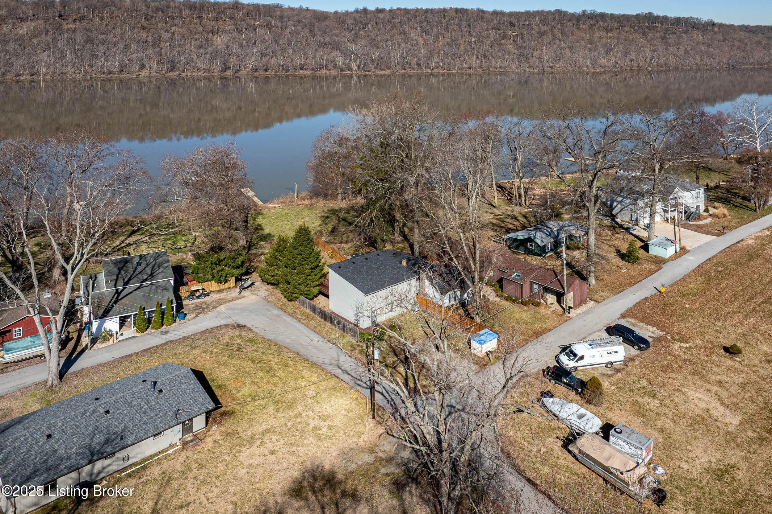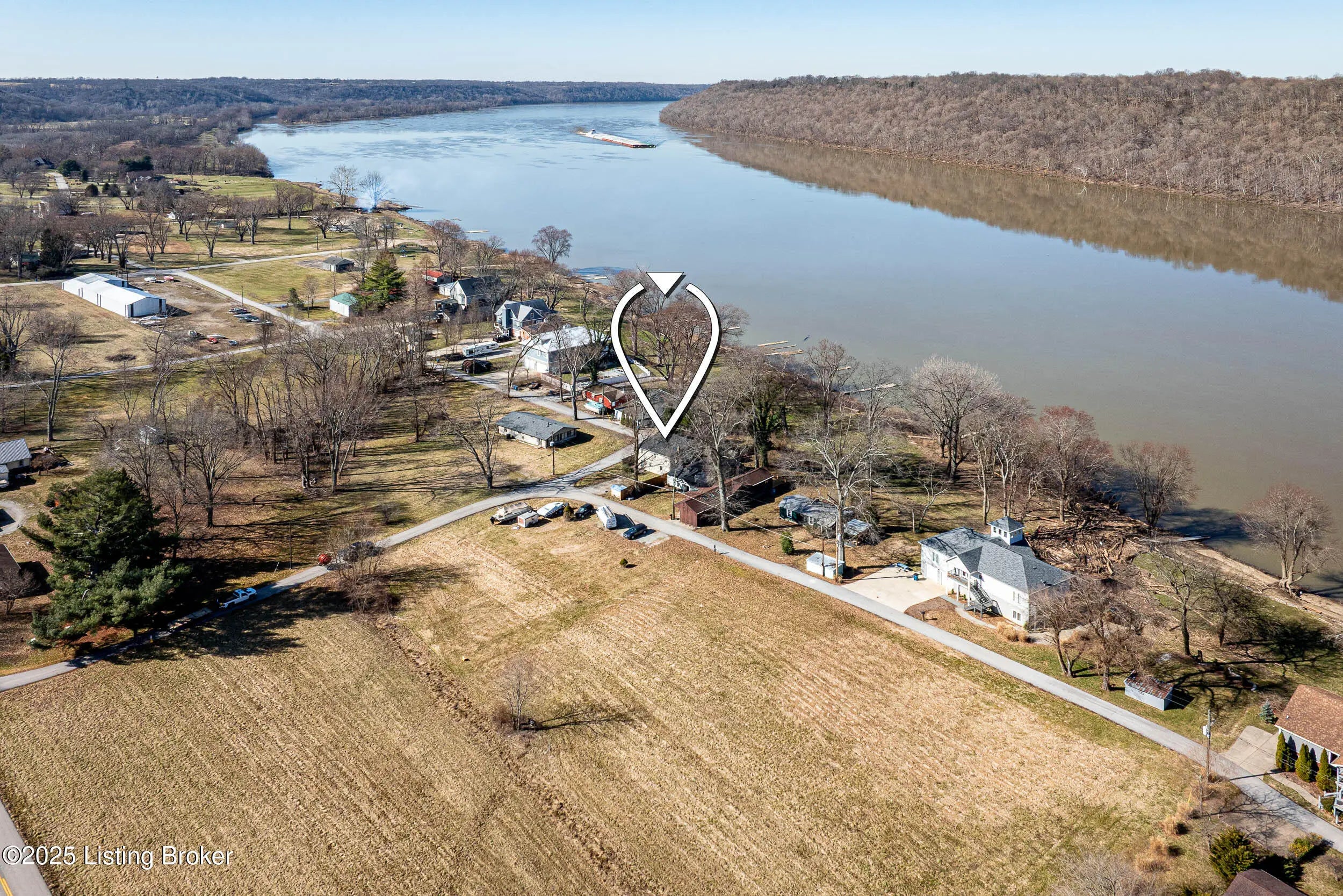 Don't miss this charming riverfront retreat in picturesque Westport, Oldham County — just steps from the Ohio River with breathtaking views from both levels! Whether you're looking for a weekend escape or a forever home, this well-maintained gem offers the best of both worlds. Enjoy uninterrupted river views from the spacious first-floor patio and the second-floor deck — perfect for relaxing, entertaining, or simply taking in the natural beauty around you. Step inside to a bright and open living space featuring a gorgeous, well-lit kitchen, a cozy family room with a stone-front fireplace, a dedicated dining area, and a convenient half bath — all thoughtfully designed for comfort and style. Upstairs, you'll find a huge multipurpose room with stunning river views, plus a spacious primary bedroom, full bath, large closet, and laundry area. Whether you're working from home, hosting guests, or just enjoying your own space, this home adapts to your lifestyle. Out back, the expansive yard provides plenty of room for outdoor fun fish right from your backyard, host summer gatherings, or simply relax and watch the boats go by. Located near Westport Mercantile & Café and Scamback Park. Also be sure to check out the public boat dock. This location offers charm, community, and convenience. Make this riverfront charmer yours the views, the setting, and the lifestyle are truly one of a kind.