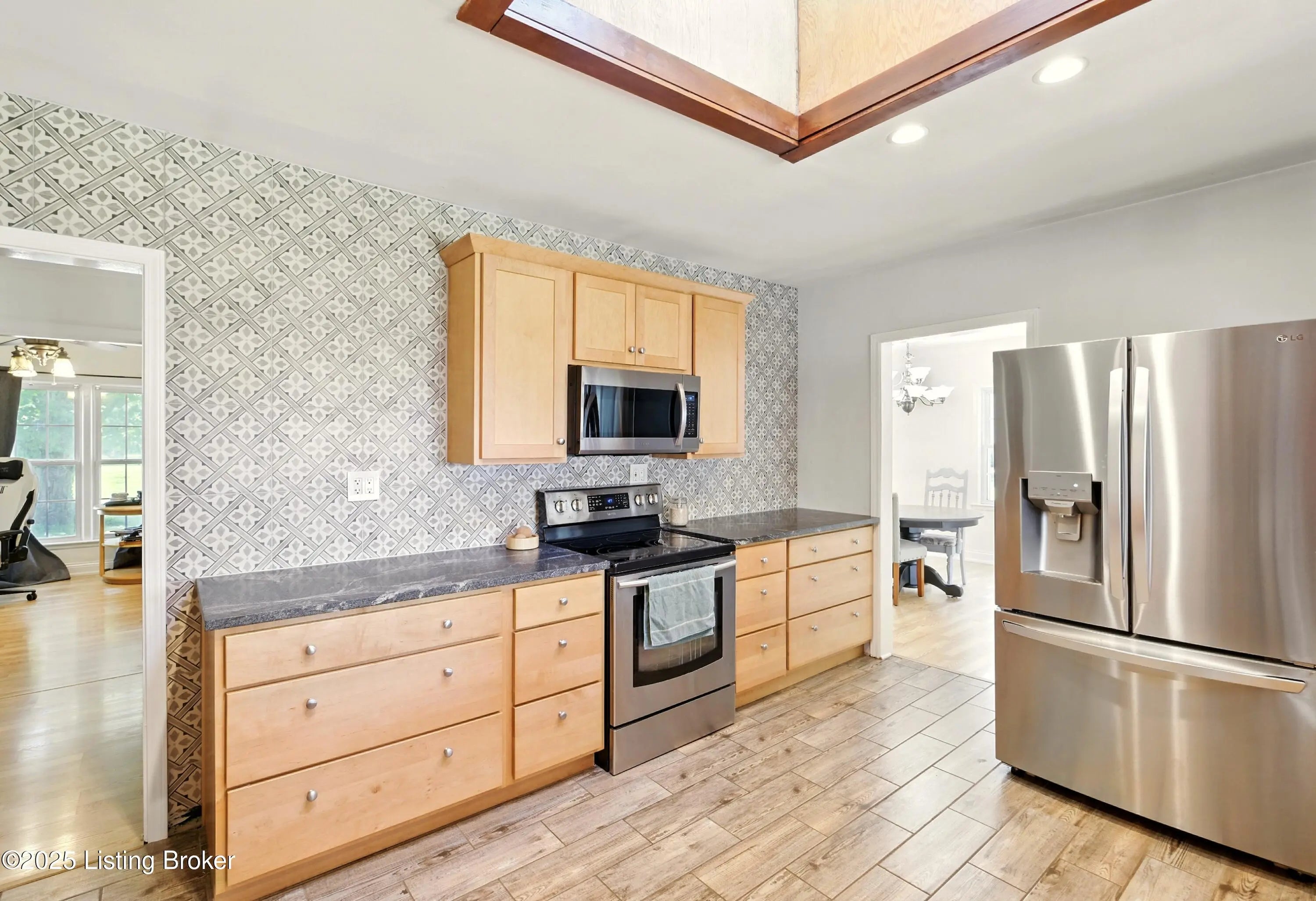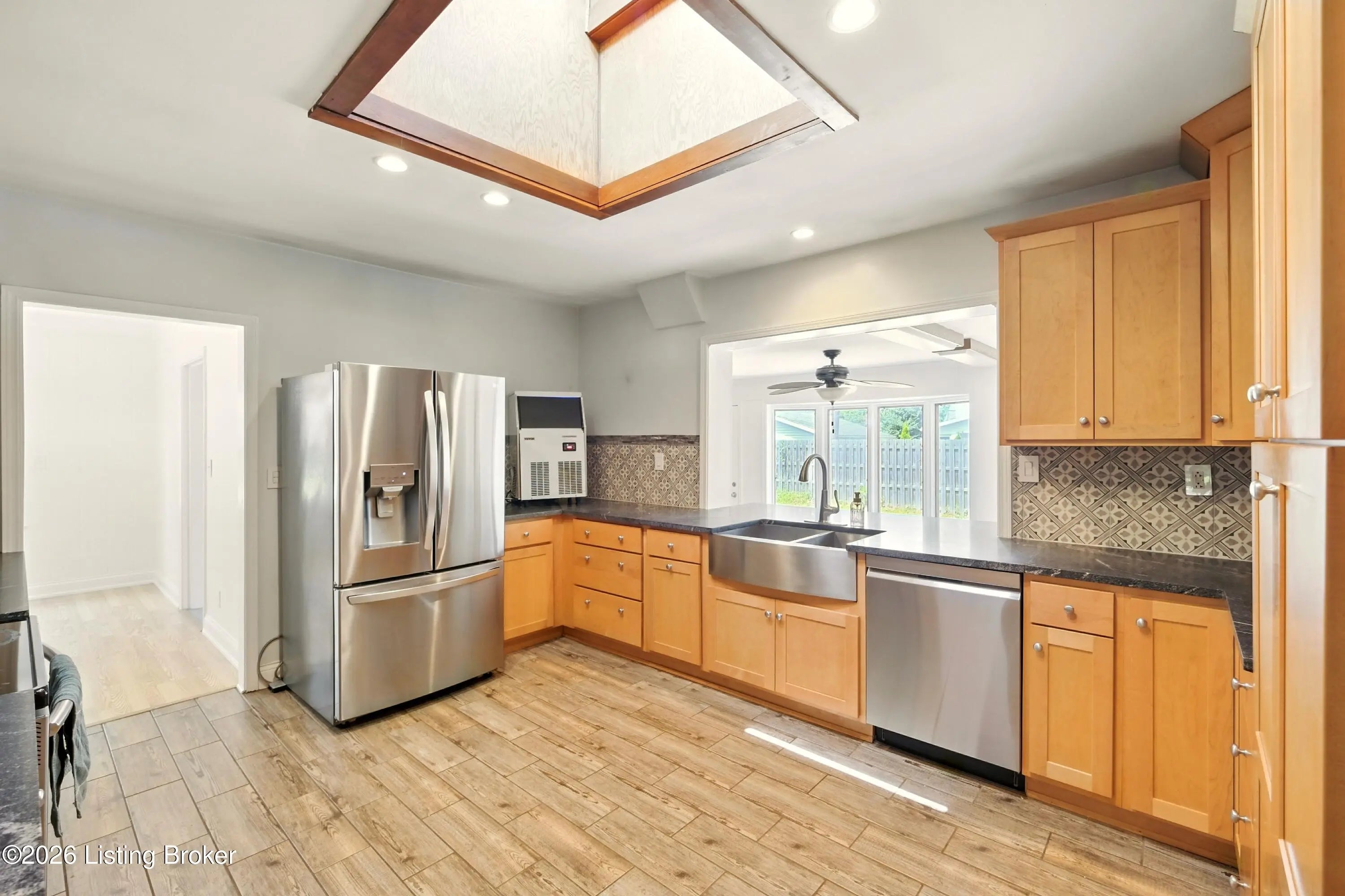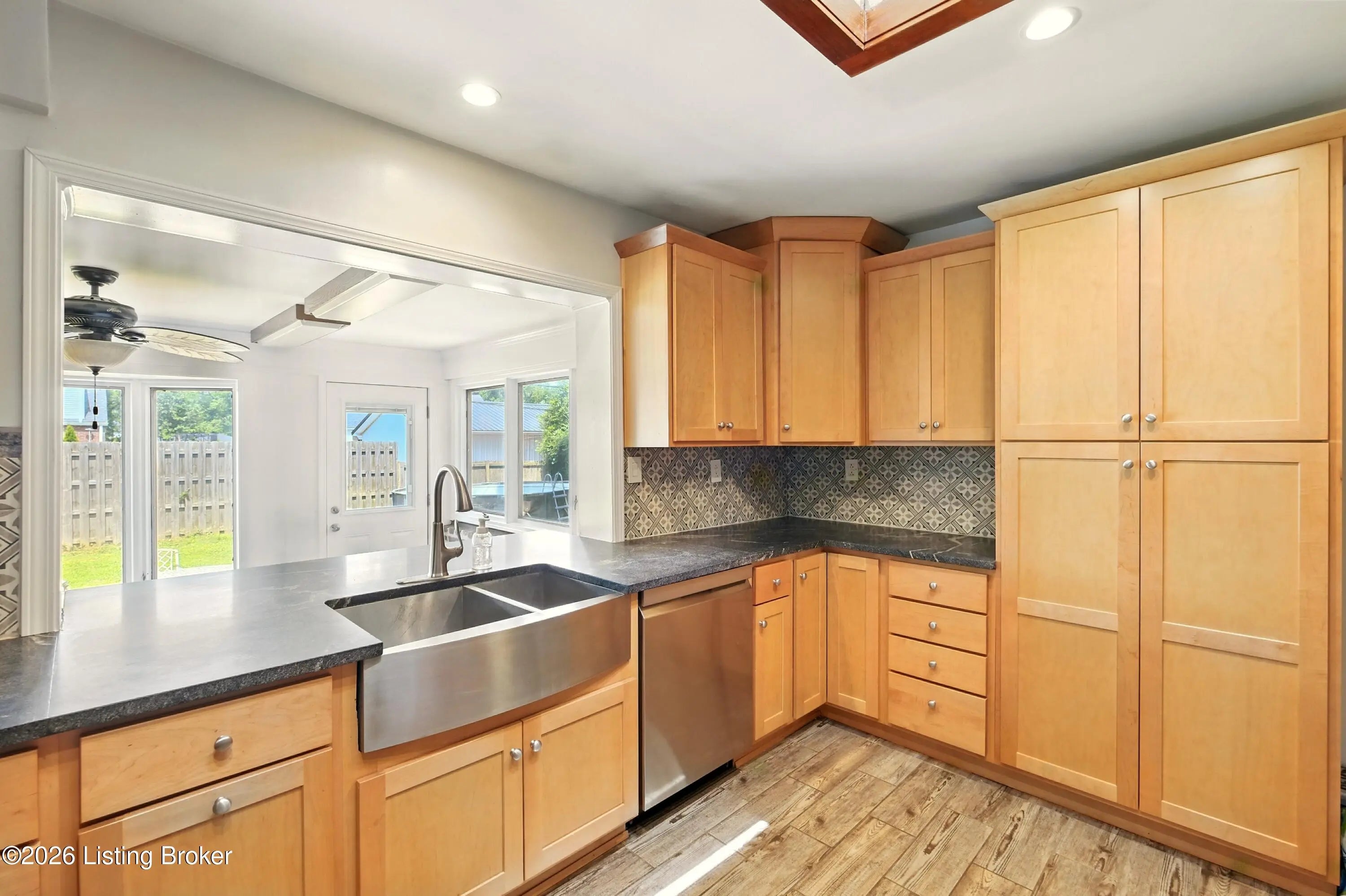 Welcome to this well-appointed 3-bedroom, 2-bath ranch offering a functional layout, quality updates, and easy one-level living in a highly convenient Louisville location. Inside, you'll find a bright and welcoming living room with a cozy fireplace and oversized front window that fills the space with natural light. The open flow continues into the dining area and beautifully updated kitchen, renovated in 2020, featuring stainless steel appliances, generous counter space, and a standout skylight that enhances the home's airy feel. Just beyond, a comfortable family room opens directly to the sunroom—updated in 2020 with tile flooring and a freestanding thermostat-controlled fireplace—creating a versatile space to enjoy year-round. The primary suite includes a private en-suite bath, while two additional bedrooms and a full bathroom complete the main level. A conveniently located first-floor laundry room adds to the home's practical design. The unfinished basement offers excellent storage or future finishing potential. Outside, enjoy a fully fenced backyard with a patio, ideal for relaxing or entertaining. The heated and insulated two-car garage is equipped with Wi-Fi capability, a battery backup system, ventilation for warmer months, and a dedicated 60-amp circuit—perfect for hobbyists or additional workspace needs. Additional highlights include a spacious double driveway with room for multiple vehicles, an upgraded drainage system for improved water management, and low-maintenance gutters with permanent stainless steel leaf guards. With fresh interior paint, thoughtful improvements throughout, and quick access to I-264, I-64, shopping, and dining, this move-in-ready home checks all the boxes.