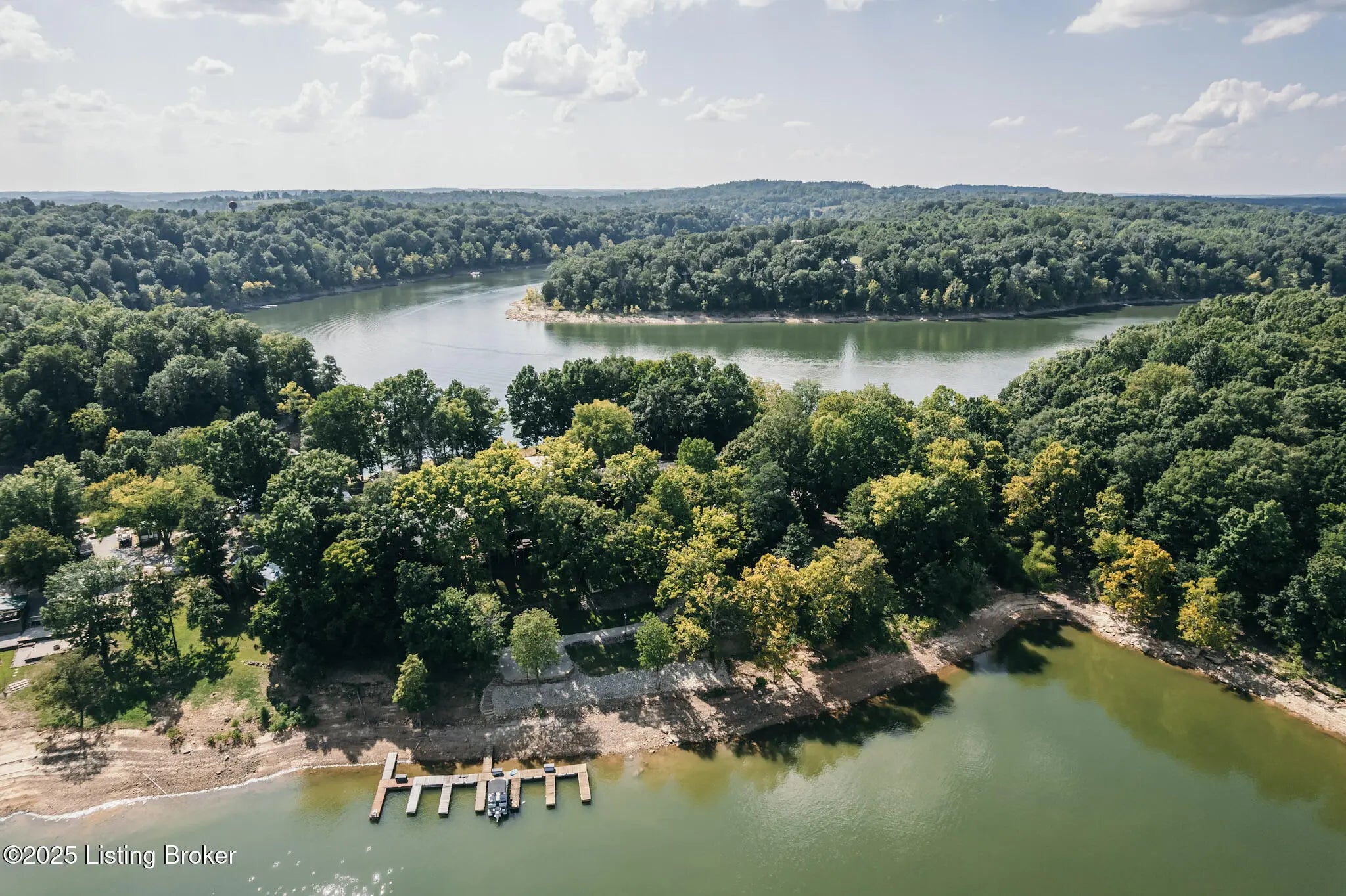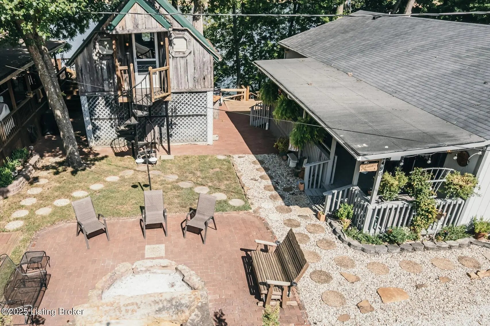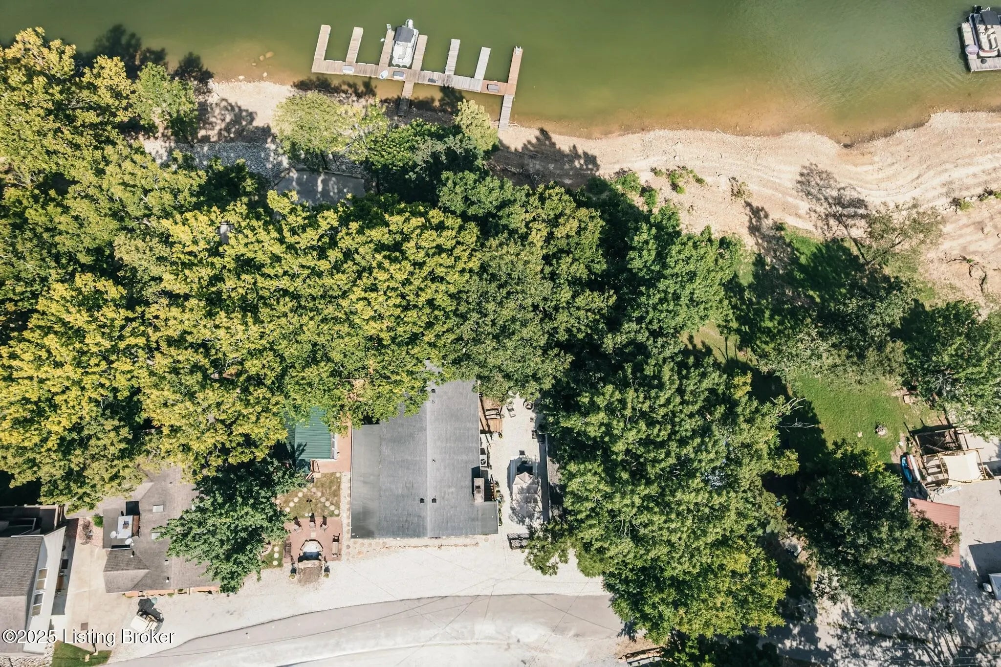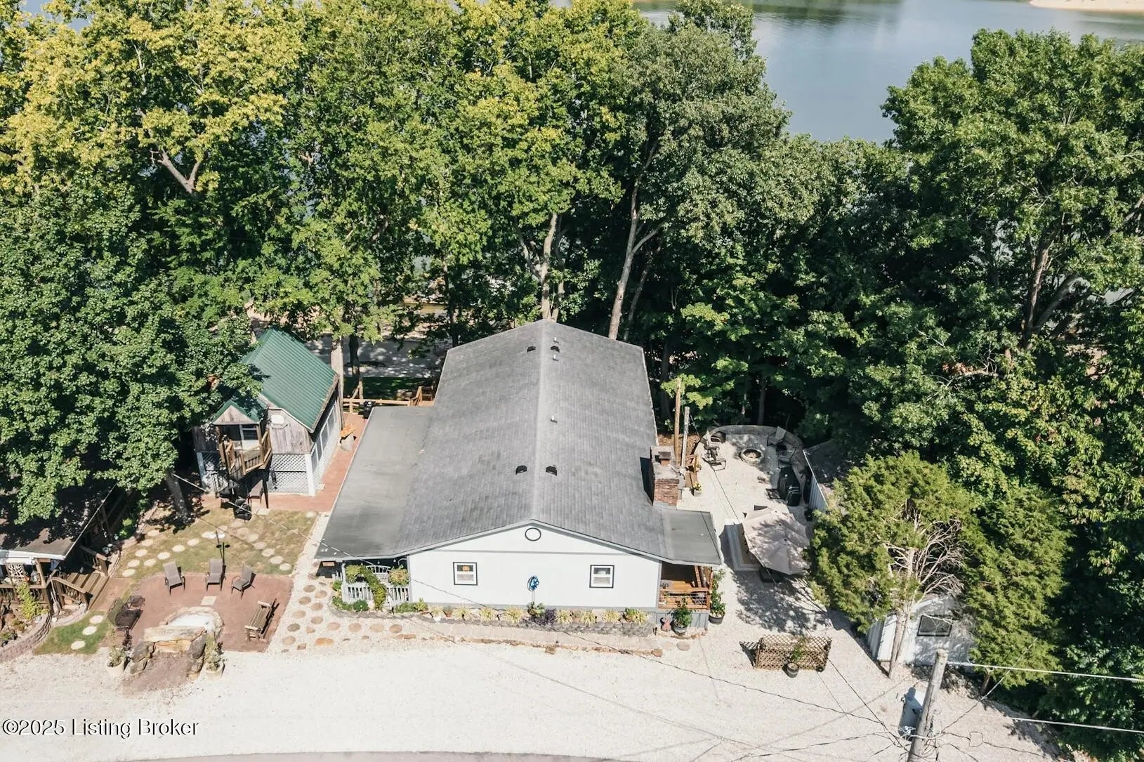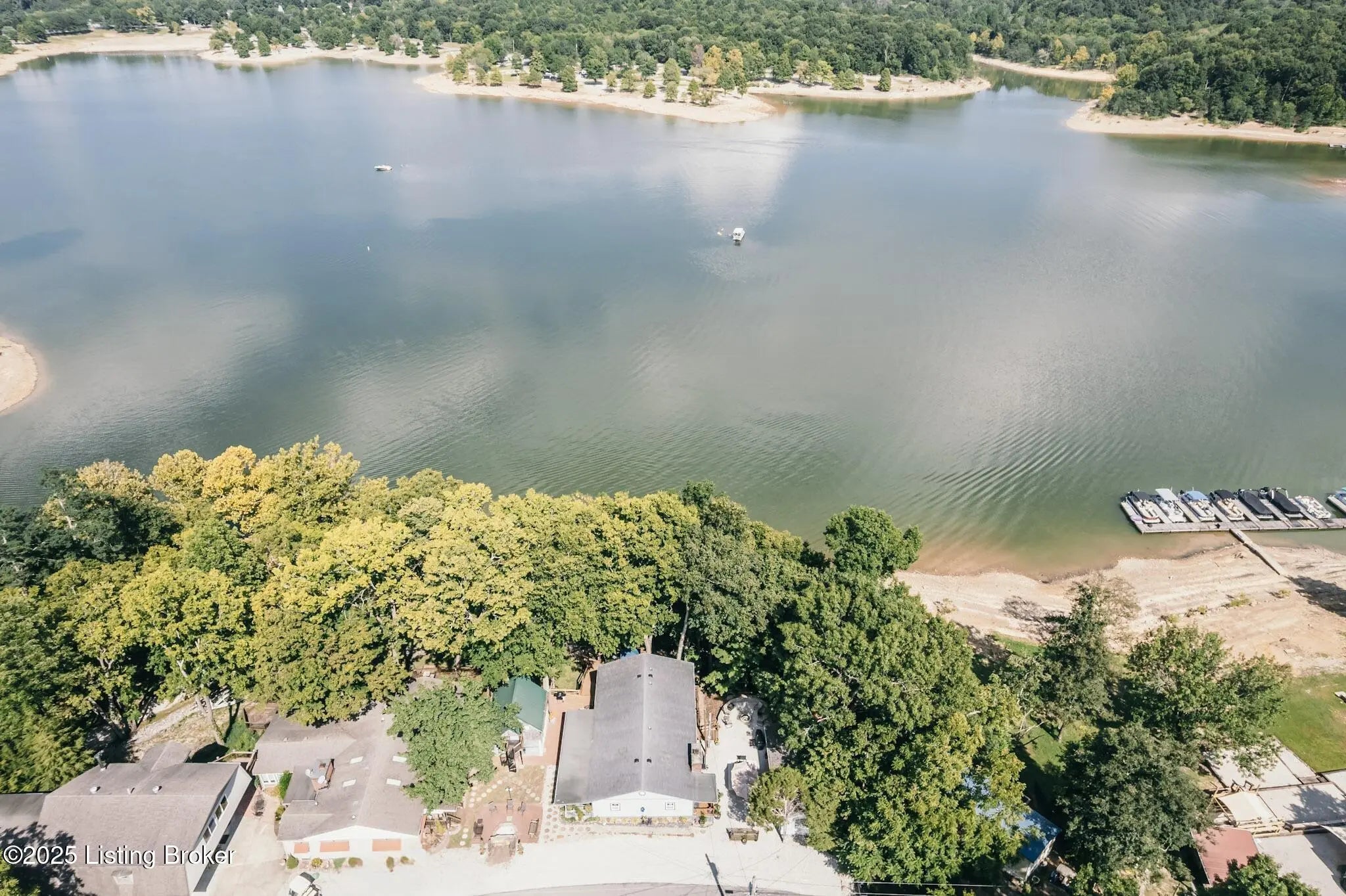 Generations have gathered here sharing laughter, stories & countless fond memories of days & nights spent on this special stretch of Rough River Lake. These 2 waterfront lots are situated on a peninsula at the end of the road with a lakeside home having 4 bedrooms, 2 full baths & a separate laundry room that doubles for extra sleeping arrangements. The property is surrounded by mature shade trees & amazing lake views that overlook the bay toward Axtel Campgrounds where spring, summer & fall nights offer you the mesmerizing glow of campfires shimmering on the lake. Inside, a touch of lakehouse charm can be found most everywhere. The spacious shared bath features a custom vanity & sink...both bathrooms have a subtle touch of rustic character & charm. Eleven closets mean there is a place for most everything while newer LVP flooring runs throughout the entire home. A brick, wood-burning fireplace invites warmth to the cooler evenings while the covered front porch calls for easy afternoons in the shade. The outdoor living spaces are where lots of lake memories are made with a fire pit in front of the tree house, another fire pit & gravel patio space between the home & shed plus a shady lakeside viewing deck that has easy access to the home's hallway. The outdoor shower with hot & cold running water is an experience all on it's on whether in the morning before a day on the lake or after. Newly built, Amish-crafted steps make it an easy stroll to the shoreline for both the young & old alike. A whimsical spiral staircase leads to an extra sleeping or hangout space in the tree house which has electricity & yet another beautiful view of the lake. The screened-in porch below it is perfect for outdoor dining, card games & most any celebration with friends & family. Modern day amenities are well covered...electric, public water & a septic system are connected to the property with rare high-speed fiber optic internet being available. The large shed with electric is ideal as a workshop or storage needs for your gardening tools & lake toys. Plentiful off-street parking means you can invite many of your favorite people for visits to your lake house. A dock on the string just below the property will transfer with COE approval. By land or water, you're minutes from Nick's Boat Dock & Marina with shopping & dining close by in McDaniels, Hardinsburg & Leitchfield. Easy travel to & from Louisville, Elizabethtown, Owensboro & more. This is more than just a lake house, it's a place where summers are meant to be spent, autumns & winters are cozy and new memories are waiting to be made with you & yours. Be sure to view the walk-through video tour and schedule your showing appointment soon! This is a special lake home & property with one of a kind lake views & easy dock access so don't let the opportunity pass you by!