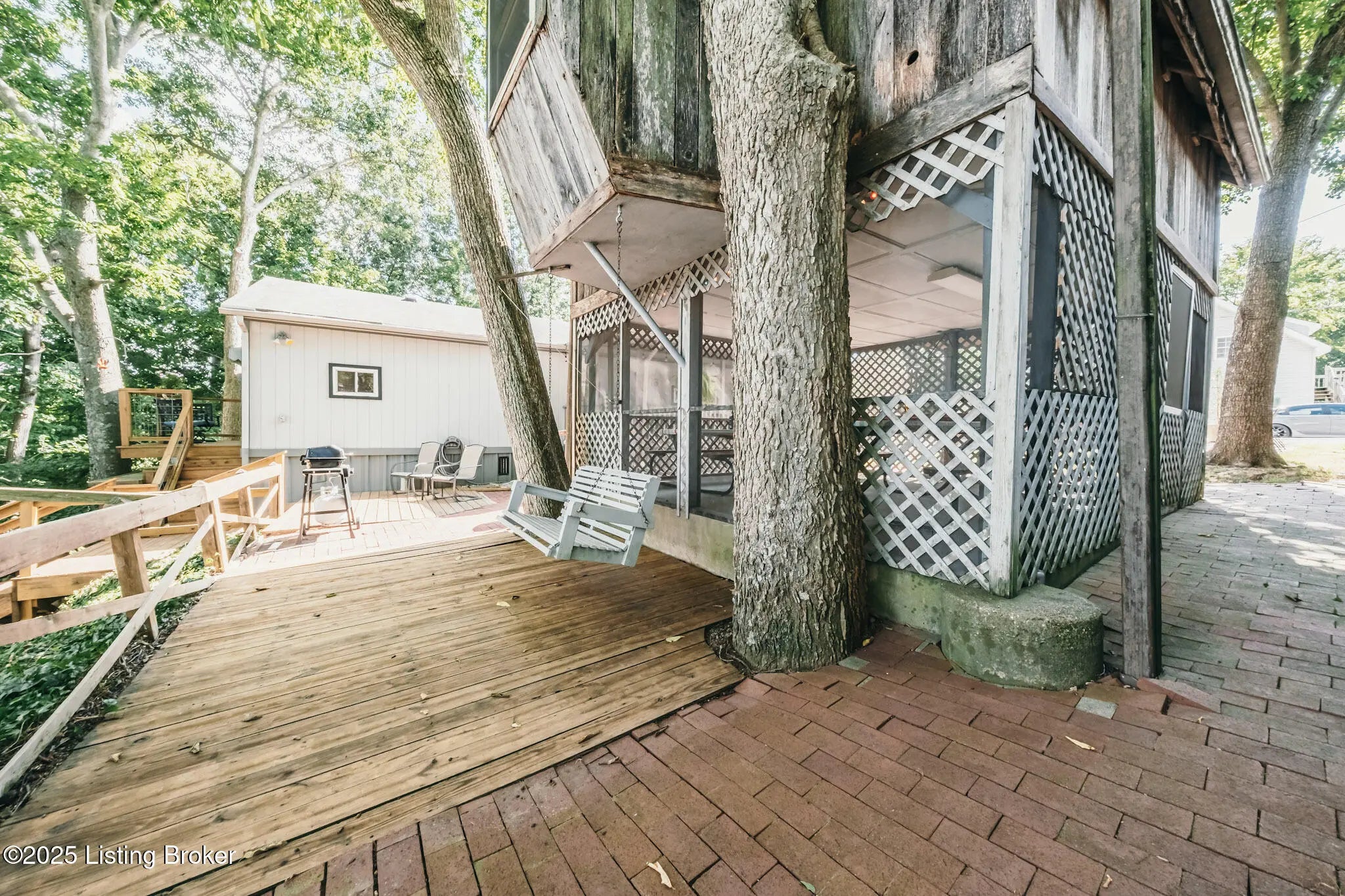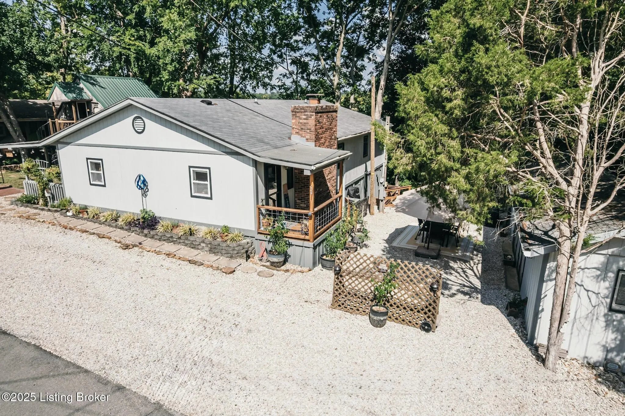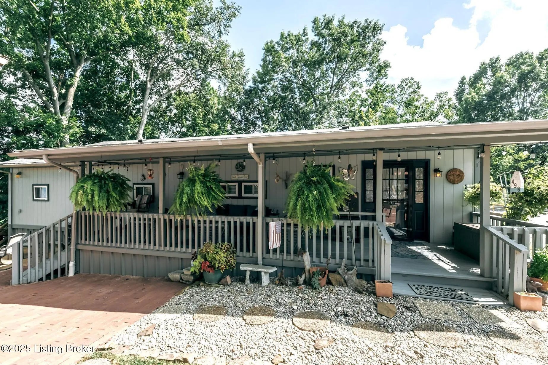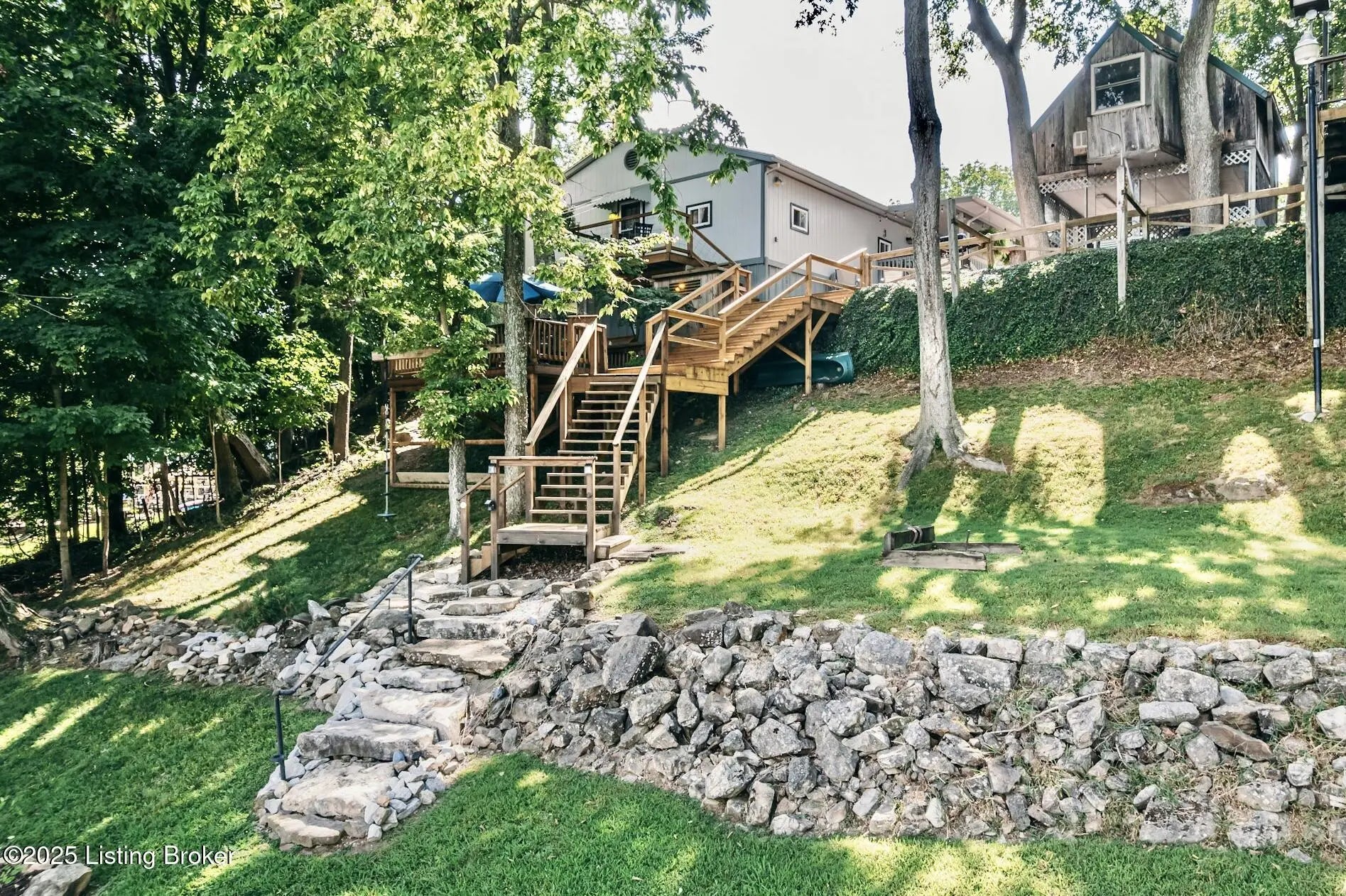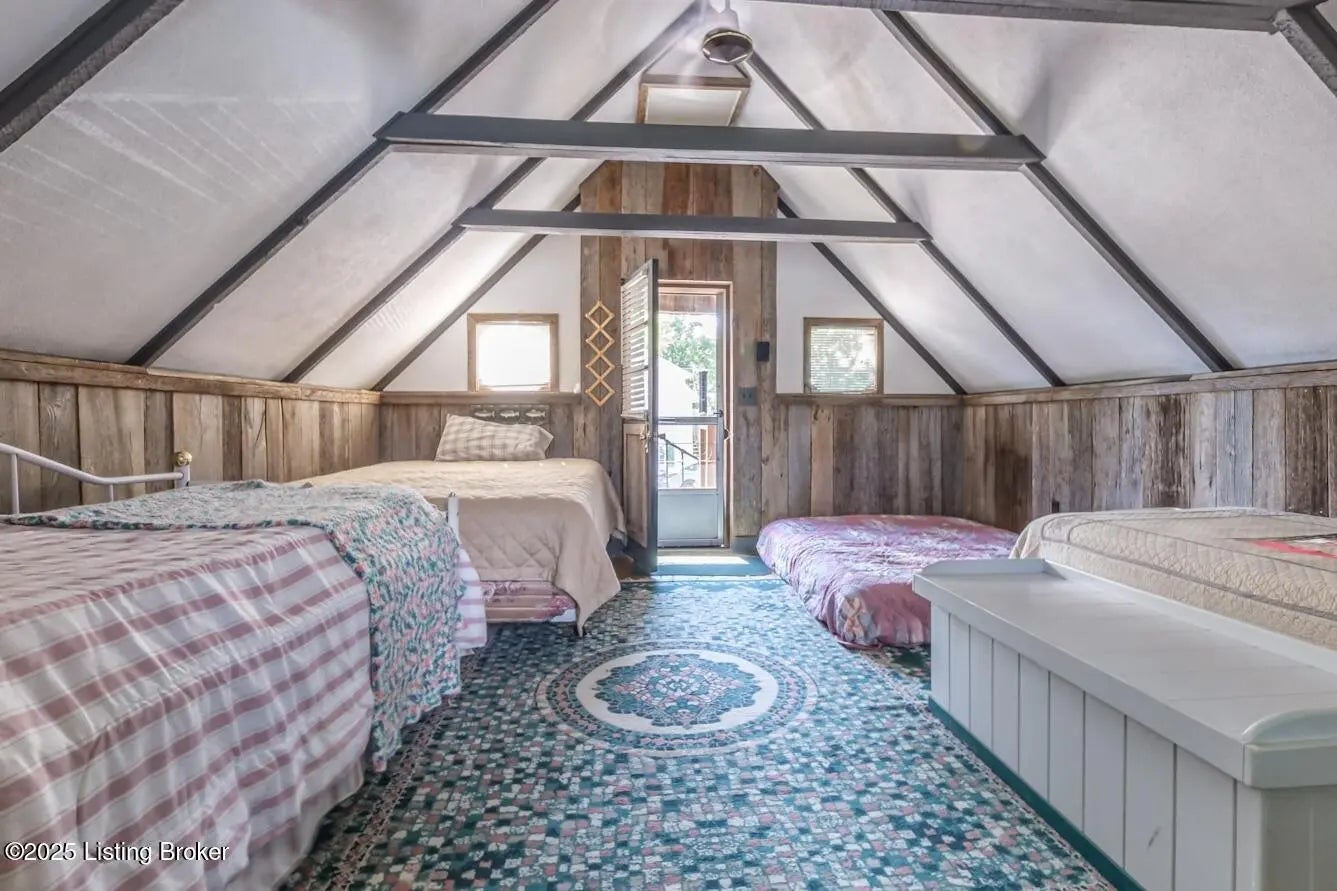 Generations have gathered here sharing laughter, stories & countless fond memories of days & nights spent on this special stretch of Rough River Lake. These 2 waterfront lots are situated on a peninsula at the end of the road with a lakeside home having 4 bedrooms, 2 full baths & a separate laundry room that doubles for extra sleeping arrangements. The property is surrounded by mature shade trees & amazing lake views that overlook the bay toward Axtel Campgrounds where spring, summer & fall nights offer you the mesmerizing glow of campfires shimmering on the lake. Inside, a touch of lakehouse charm can be found most everywhere. The spacious shared bath features a custom vanity & sink...both bathrooms have a subtle touch of rustic character & charm. Eleven closets mean there is a place for most everything while newer LVP flooring runs throughout the entire home. A brick, wood-burning fireplace invites warmth to the cooler evenings while the covered front porch calls for easy afternoons in the shade. The outdoor living spaces are where lots of lake memories are made with a fire pit in front of the tree house, another fire pit & gravel patio space between the home & shed plus a shady lakeside viewing deck that has easy access to the home's hallway. The outdoor shower with hot & cold running water is an experience all on it's on whether in the morning before a day on the lake or after. Newly built, Amish-crafted steps make it an easy stroll to the shoreline for both the young & old alike. A whimsical spiral staircase leads to an extra sleeping or hangout space in the tree house which has electricity & yet another beautiful view of the lake. The screened-in porch below it is perfect for outdoor dining, card games & most any celebration with friends & family. Modern day amenities are well covered...electric, public water & a septic system are connected to the property with rare high-speed fiber optic internet being available. The large shed with electric is ideal as a workshop or storage needs for your gardening tools & lake toys. Plentiful off-street parking means you can invite many of your favorite people for visits to your lake house. A dock on the string just below the property will transfer with COE approval. By land or water, you're minutes from Nick's Boat Dock & Marina with shopping & dining close by in McDaniels, Hardinsburg & Leitchfield. Easy travel to & from Louisville, Elizabethtown, Owensboro & more. This is more than just a lake house, it's a place where summers are meant to be spent, autumns & winters are cozy and new memories are waiting to be made with you & yours. Be sure to view the walk-through video tour and schedule your showing appointment soon! This is a special lake home & property with one of a kind lake views & easy dock access so don't let the opportunity pass you by!