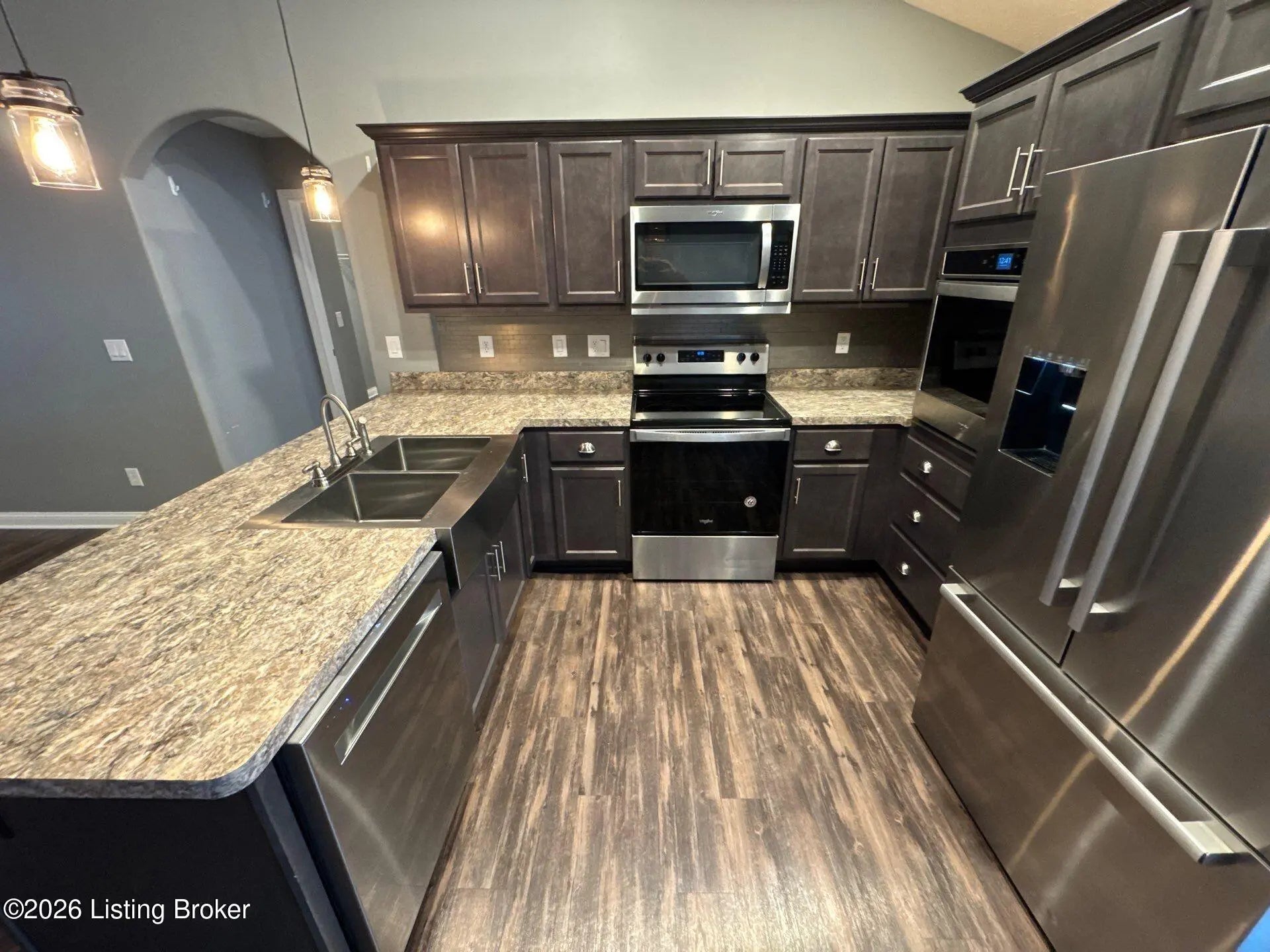 Newer Construction!! This 3-bedroom, 2-bathroom home is absolutely gorgeous. The home sits on a huge corner lot with an extremely large yard. It offers a 2-car attached garage and a nice size shed in the back yard, great for extra storage. The house has vinyl and stone siding. When you walk into the house you are greeted with vaulted ceiling and an open concept. The living room leads into the beautiful eat-in kitchen with its dark wood cabinets. All the bedrooms are a great size, but the Primary is something to talk about. It has an en suite with double sinks and a huge walk-in closet. THIS ONE WILL NOT LAST! RENT: $1899 DEPOSIT: $1899. Pets are welcome, some restrictions may apply. $99 Admin/COB fee due at lease signing.