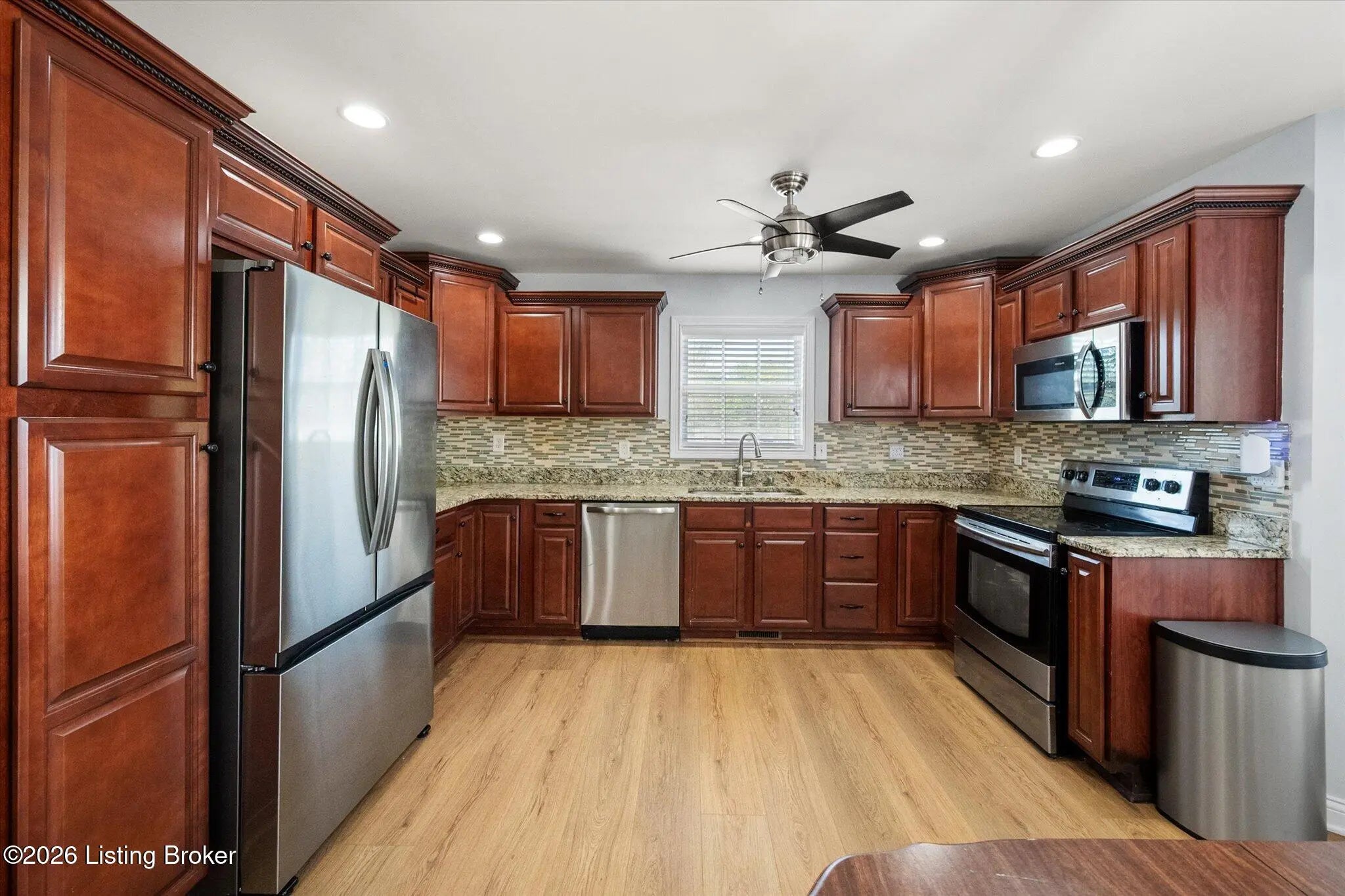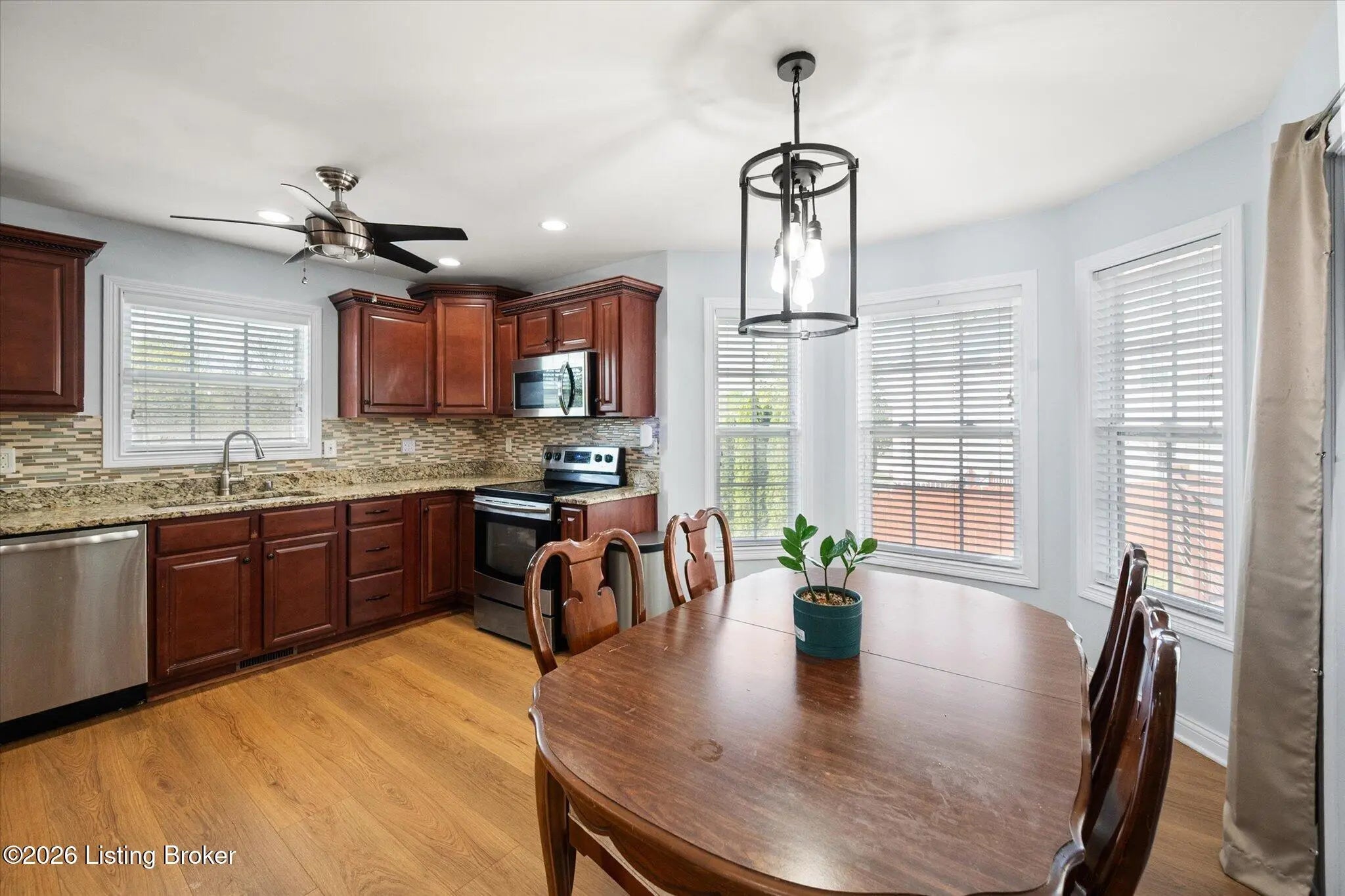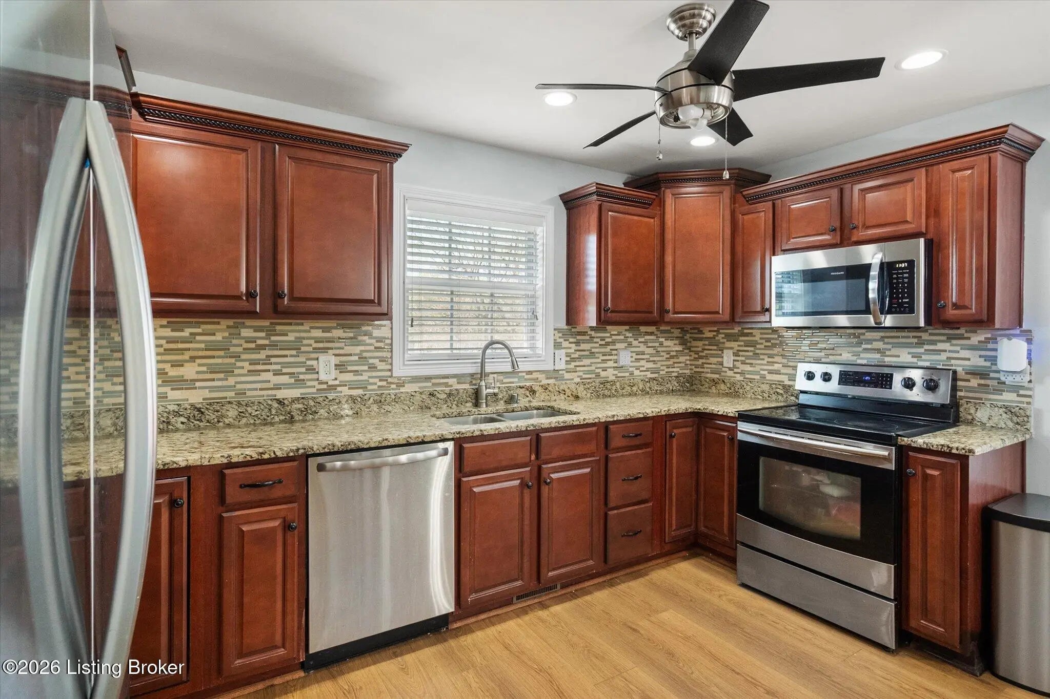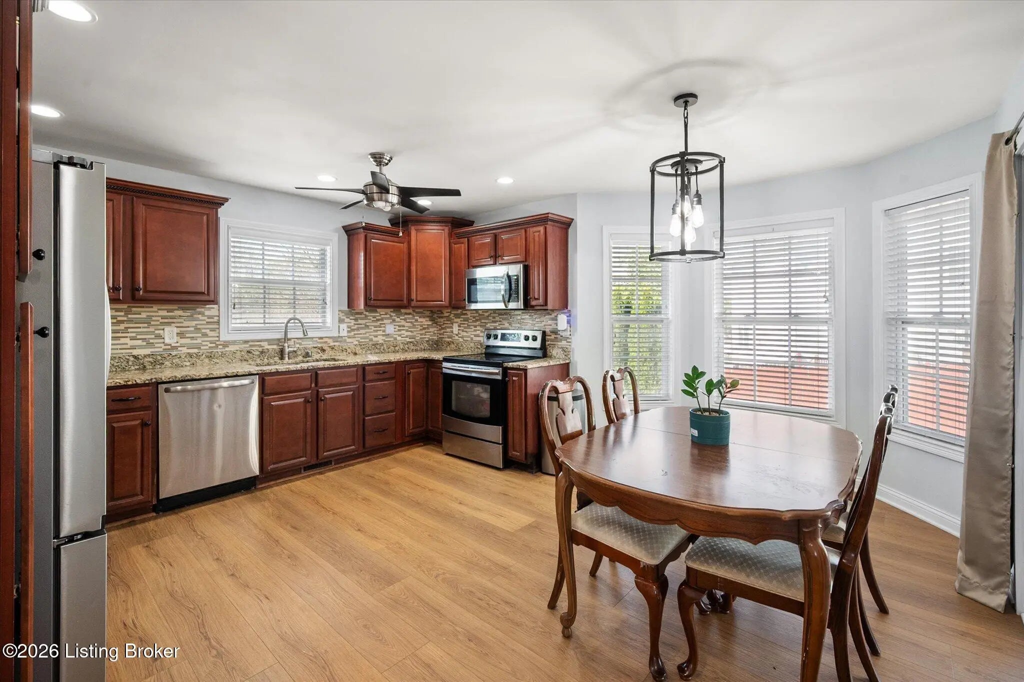 Welcome to this move-in ready 3 bedroom, 2 bath ranch home with a walkout basement and 2 car garage, situated on a desirable corner lot just minutes from Bardstown Road, offering quick access to restaurants, shopping, parks and major highways. This well-maintained home is designed for easy, single level living with a functional layout featuring first floor bedrooms, first floor laundry and a spacious primary suite with an ensuite bathroom. The open and comfortable floor plan creates a natural flow between living spaces, making it ideal for everyday living and entertaining. The walkout basement adds exceptional flexibility and future potential. It offers plenty of convenient storage space and is equipped with plumbing rough in for an additional bathroom, supported by a properly sized water heater to accommodate expanded usage. This space is ready to be transformed into additional living space, home gym/office, or guest suites. Step outside to enjoy a covered back porch overlooking a generous backyard, perfect for relaxing evenings, cookouts or entertaining. Recent updates and features include: • New Water Heater (2025) • French Drain System around perimeter (2025) • Radon Mitigation System (2024) • Washer & Dryer (2024) • Refrigerator (2024) • Nest Smart Learning Thermostat • Pet Free & Smoke Free home This home checks all the boxes for buyers searching for a ranch, walkout basement, first floor living, and move-in ready condition in a convenient location. Don't miss this opportunity!