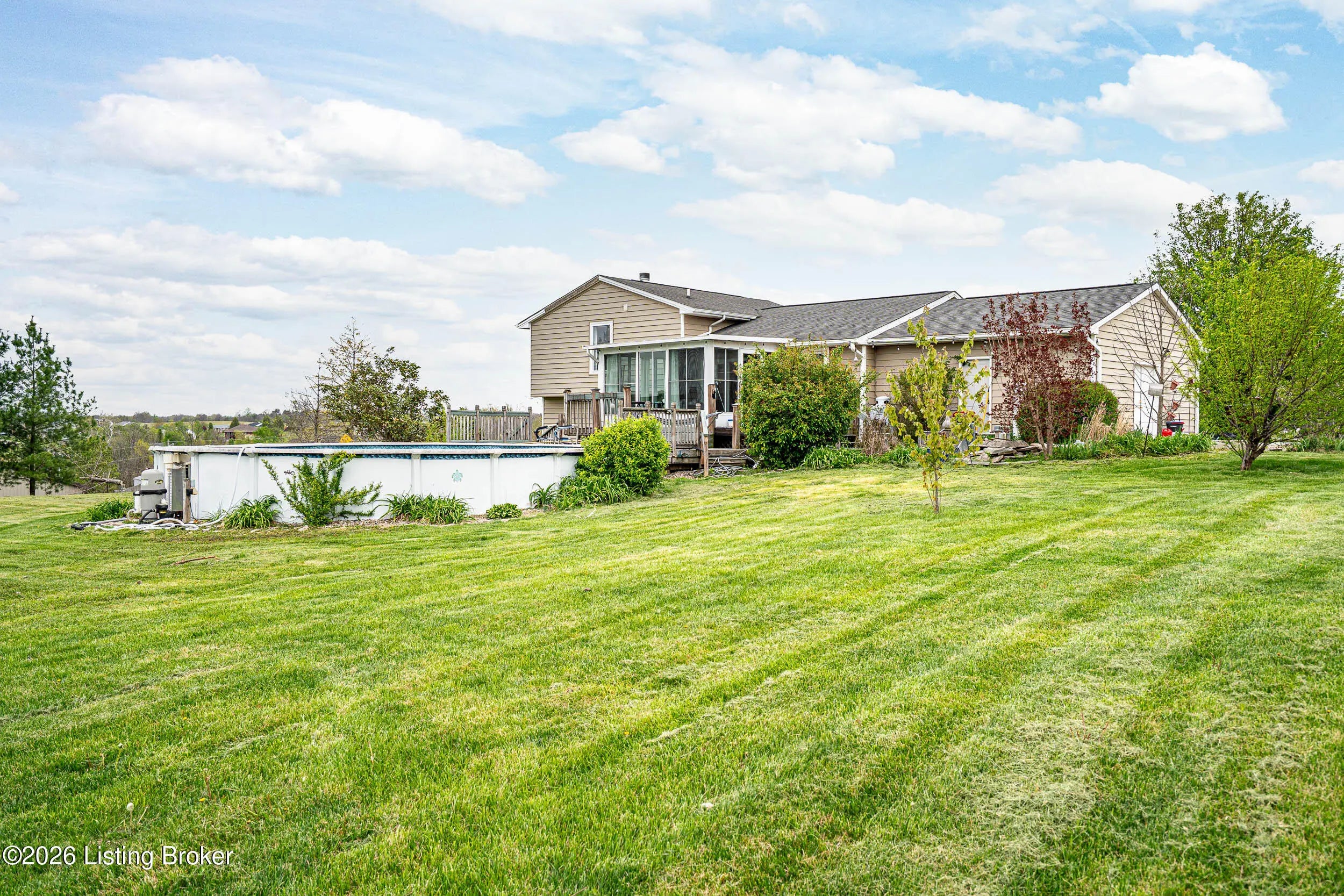 Where space, comfort, and a peaceful setting come together. Tucked in a cul-de-sac on 1.12 acres, this quad-level home offers 3 bedrooms, 2 full baths, 1 half bath, and over 2,500 square feet of living space. The open kitchen and dining area is ideal for everyday living and entertaining, featuring an abundance of cabinetry, a large island, and plenty of room to gather. Just off the back, the sunroom is filled with natural light and offers a relaxing place to unwind while taking in the view. Upstairs, you'll find 3 charming bedrooms and 2 full baths. Just down from the kitchen, the spacious family room adds even more flexibility with custom built-ins, a fireplace, and a built-in desk/work area, plus a large laundry room and half bath on the same level. Outside, enjoy the peaceful lot, above-ground pool, deck, porch, and additional outbuilding space. Conveniently located between Mt. Washington and Taylorsville, this home offers the space you need and the setting buyers are looking for.
