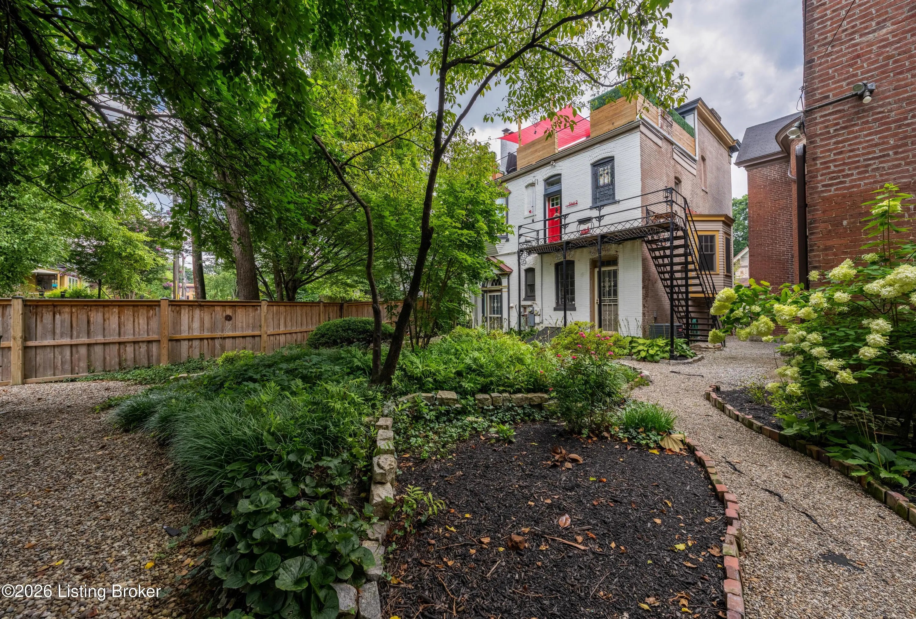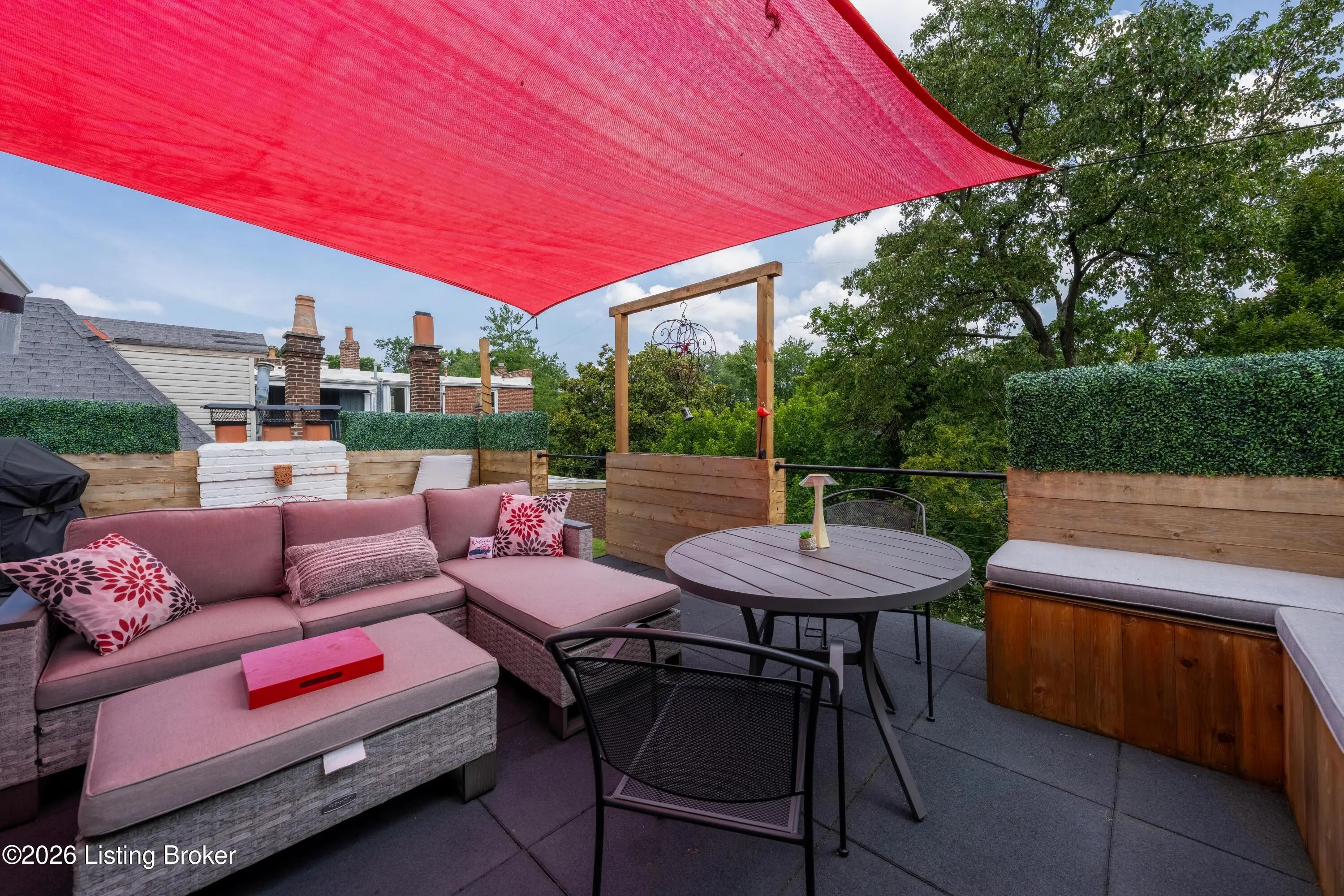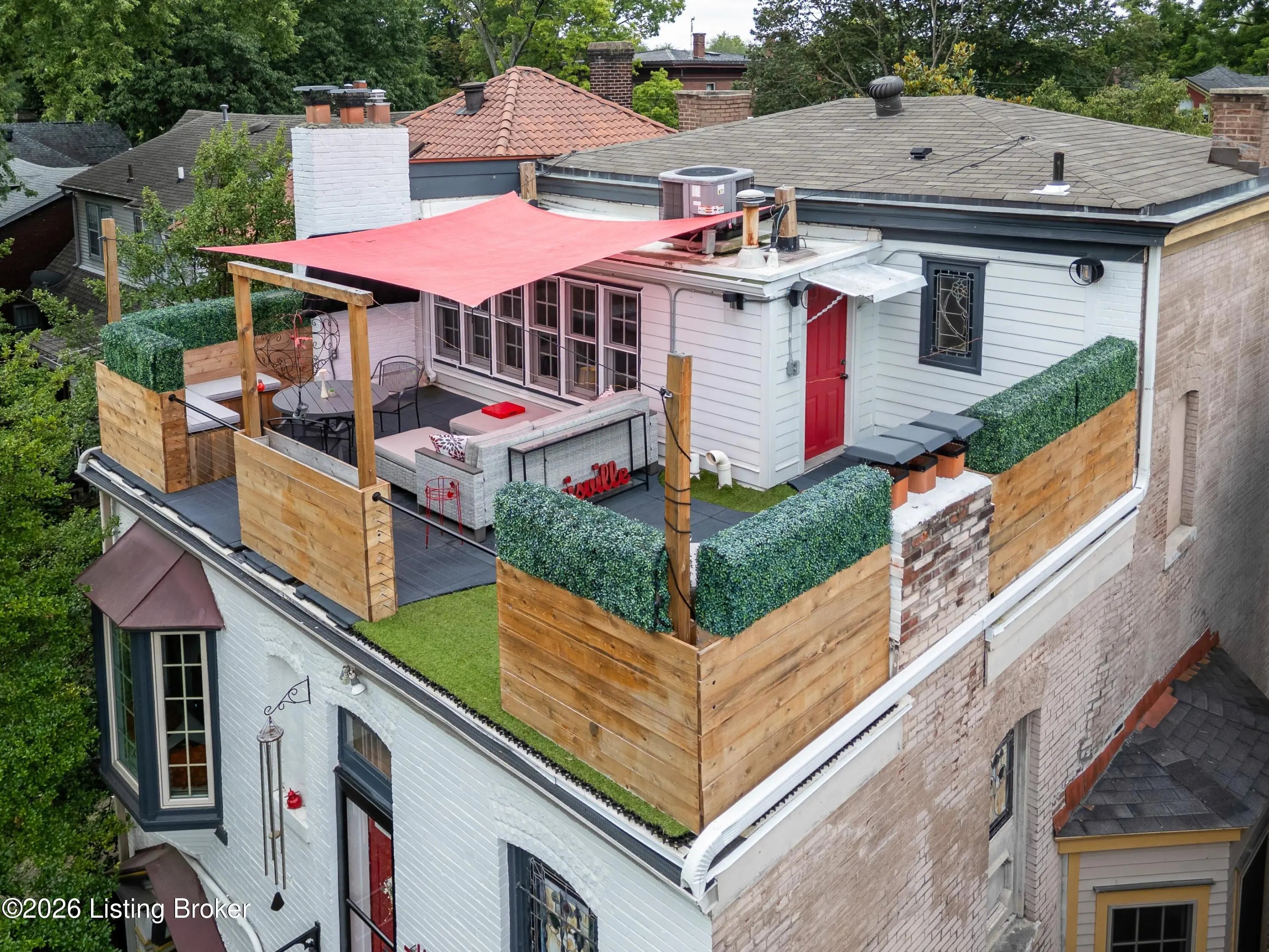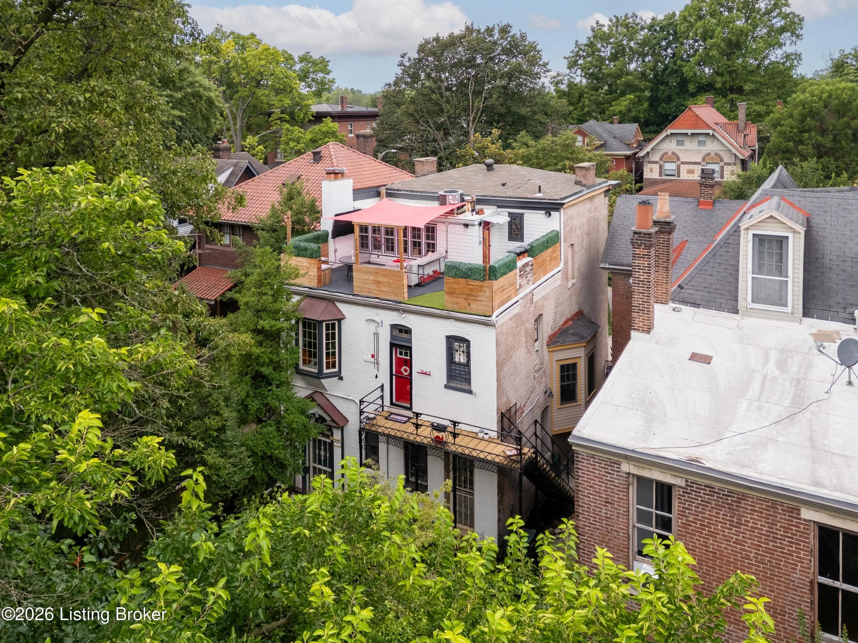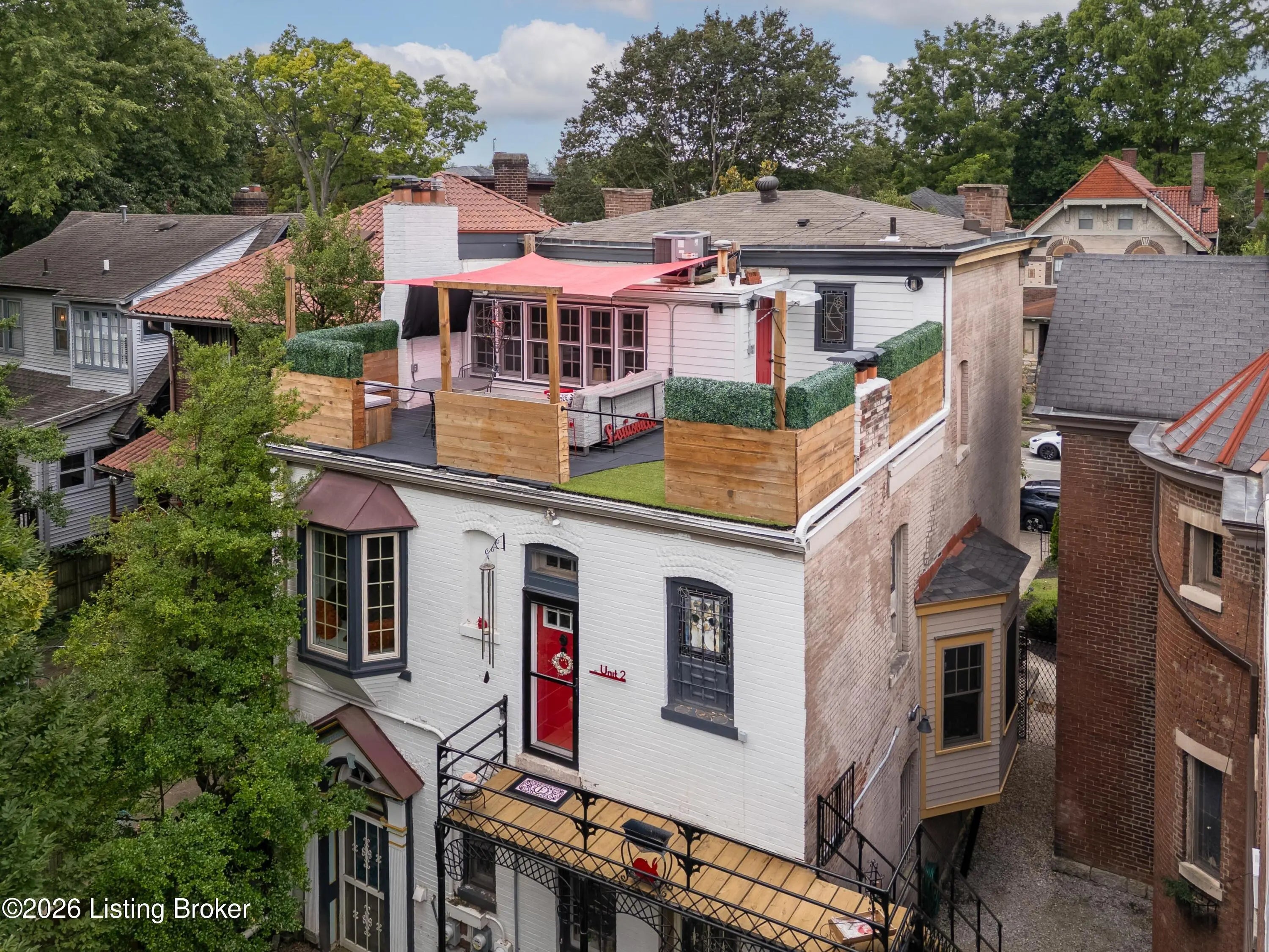 Welcome to Old Louisville's beautiful Victoria Gardens. The owners affectionately call their second home "Louisville Charm", and when you step in, you'll see why. The sellers have put a lot of love into the improvements over the last three years, including new, period-appropriate floor tile in the kitchen, new appliances upgrading to gas, updated cabinets, and granite countertops. The adjoining living room with Bay window makes for a cozy space to entertain or just relax with a good book and your favorite beverage on the custom-made window cushion. And, don't despair—they also added an in-unit washer and dryer with all the bells and whistles. Upstairs, you'll find two nicely sized bedrooms and the completely remodeled remodeled bathroom. The architect- designed private roof top patio boasts custom planter boxes, sleek rails, floating floor, a custom storage bench, installed electric for work-from home access, custom lighting, lounger sofa, and a 65" outdoor TV.