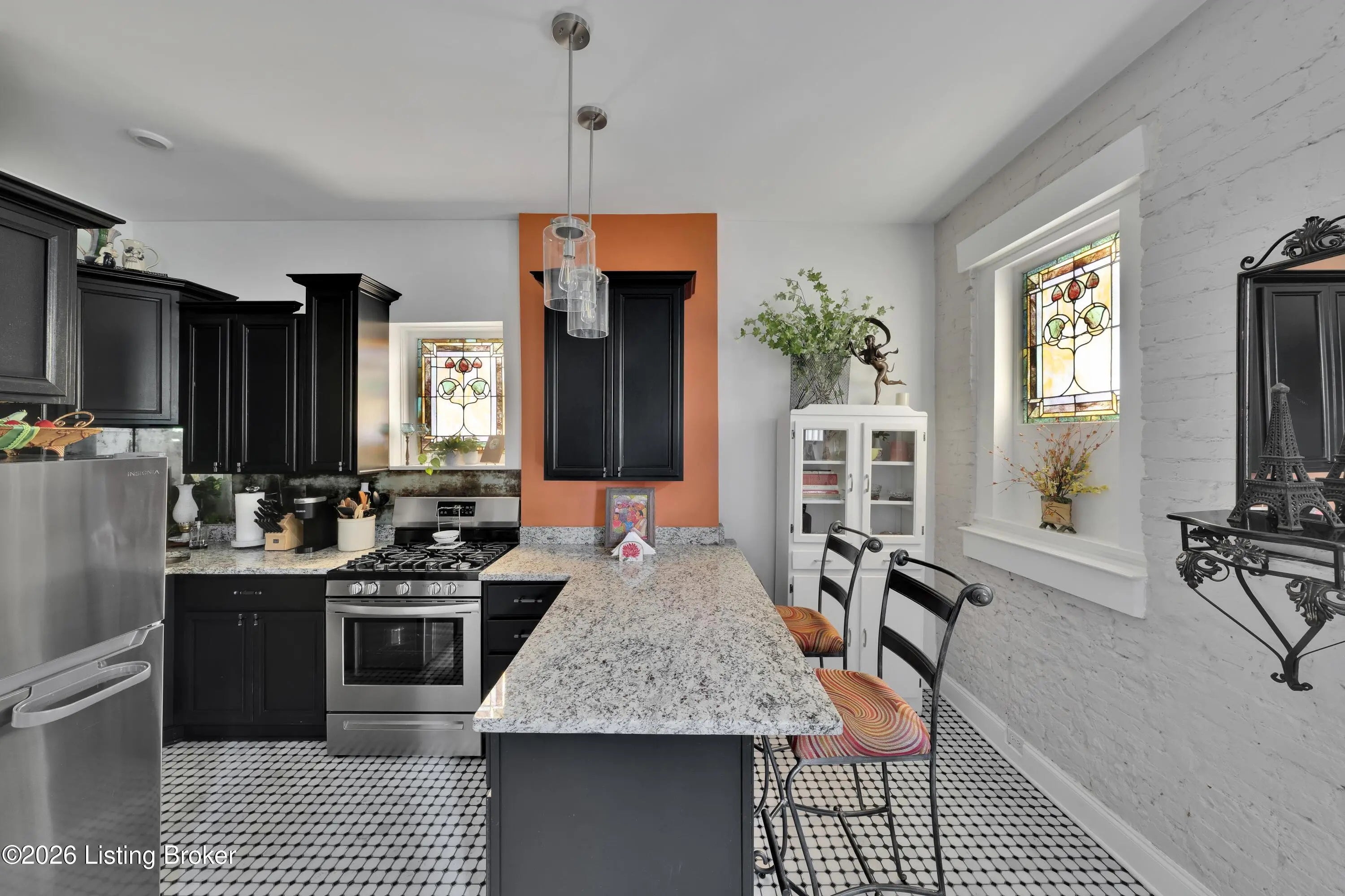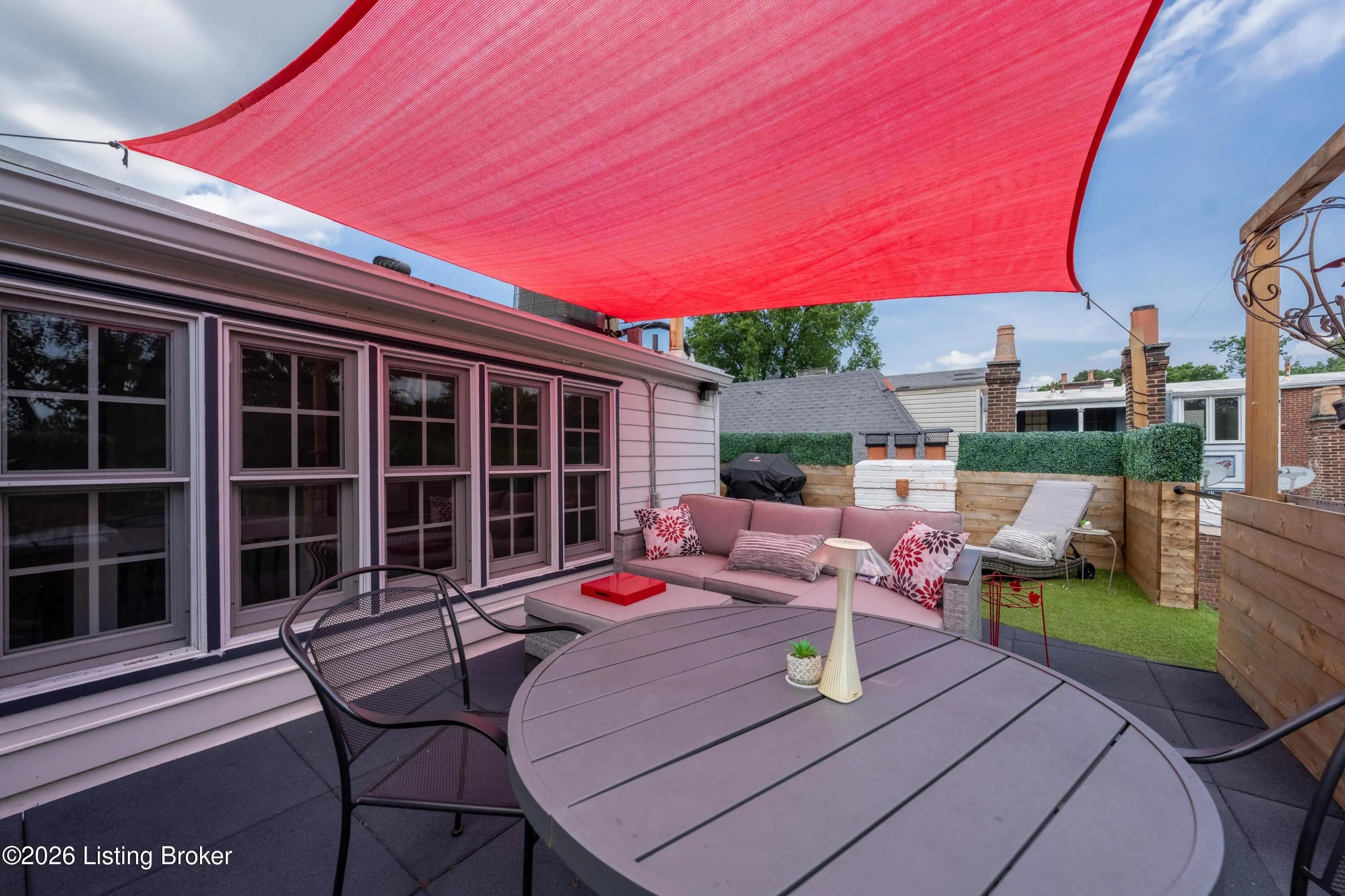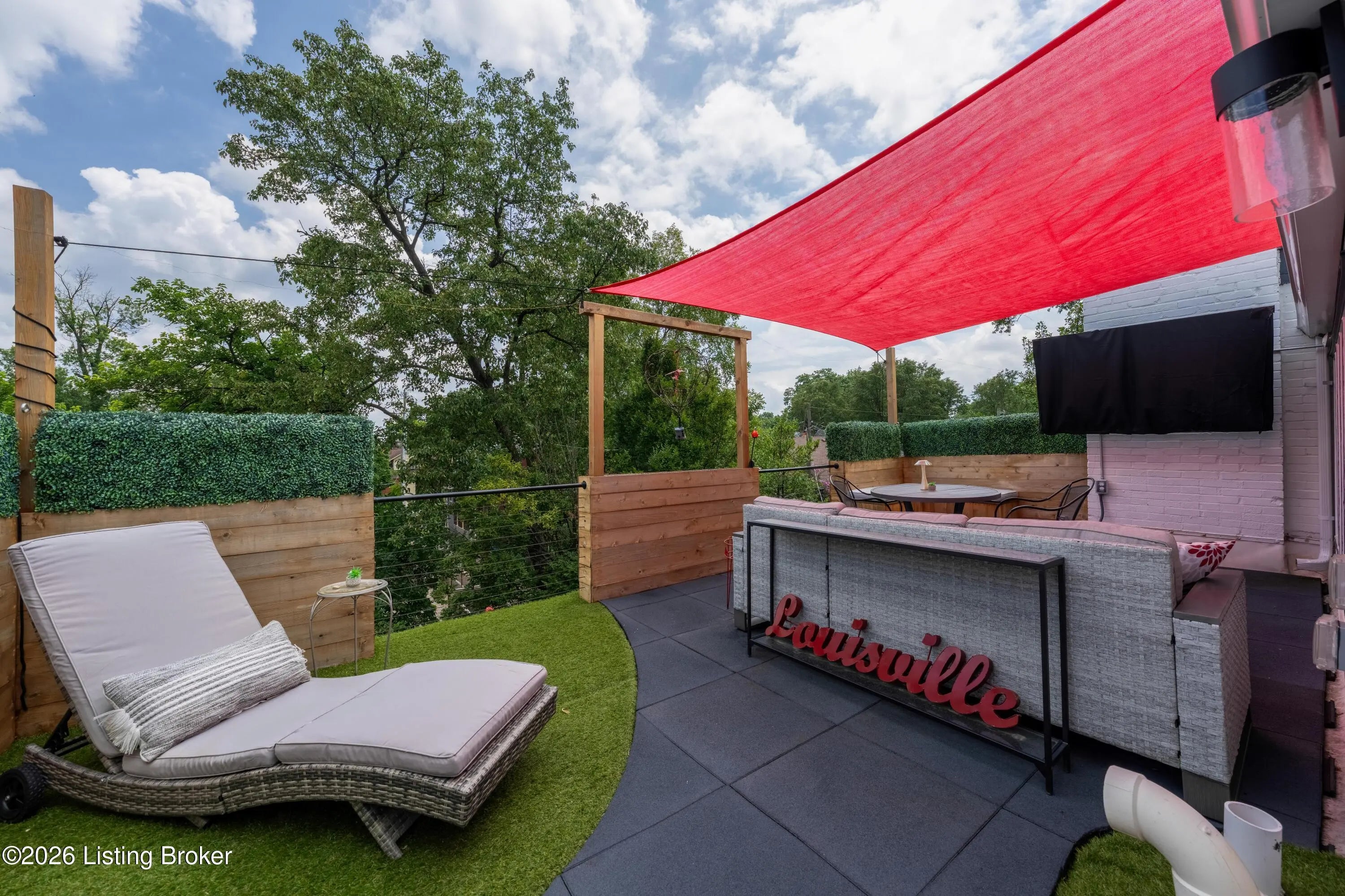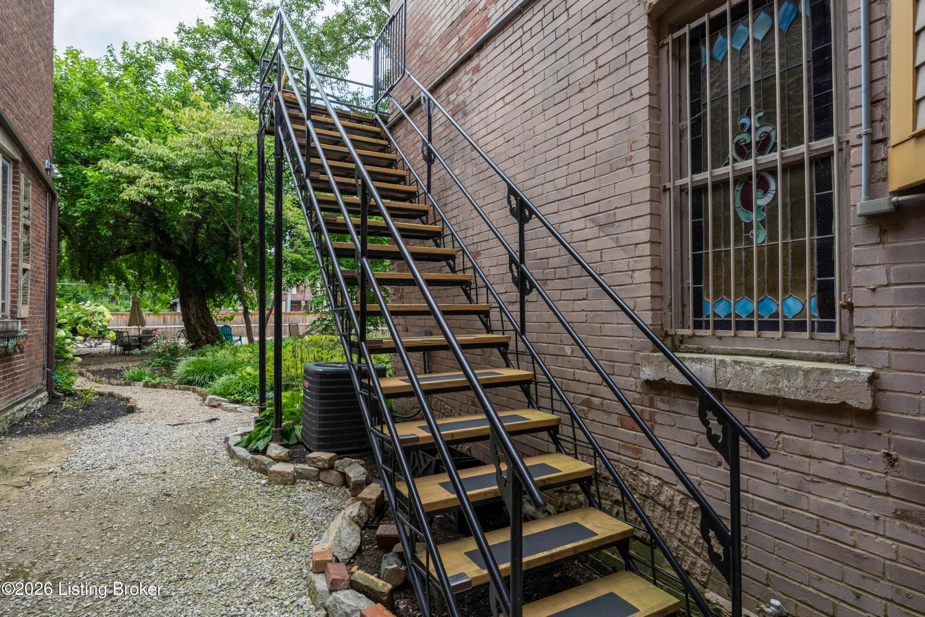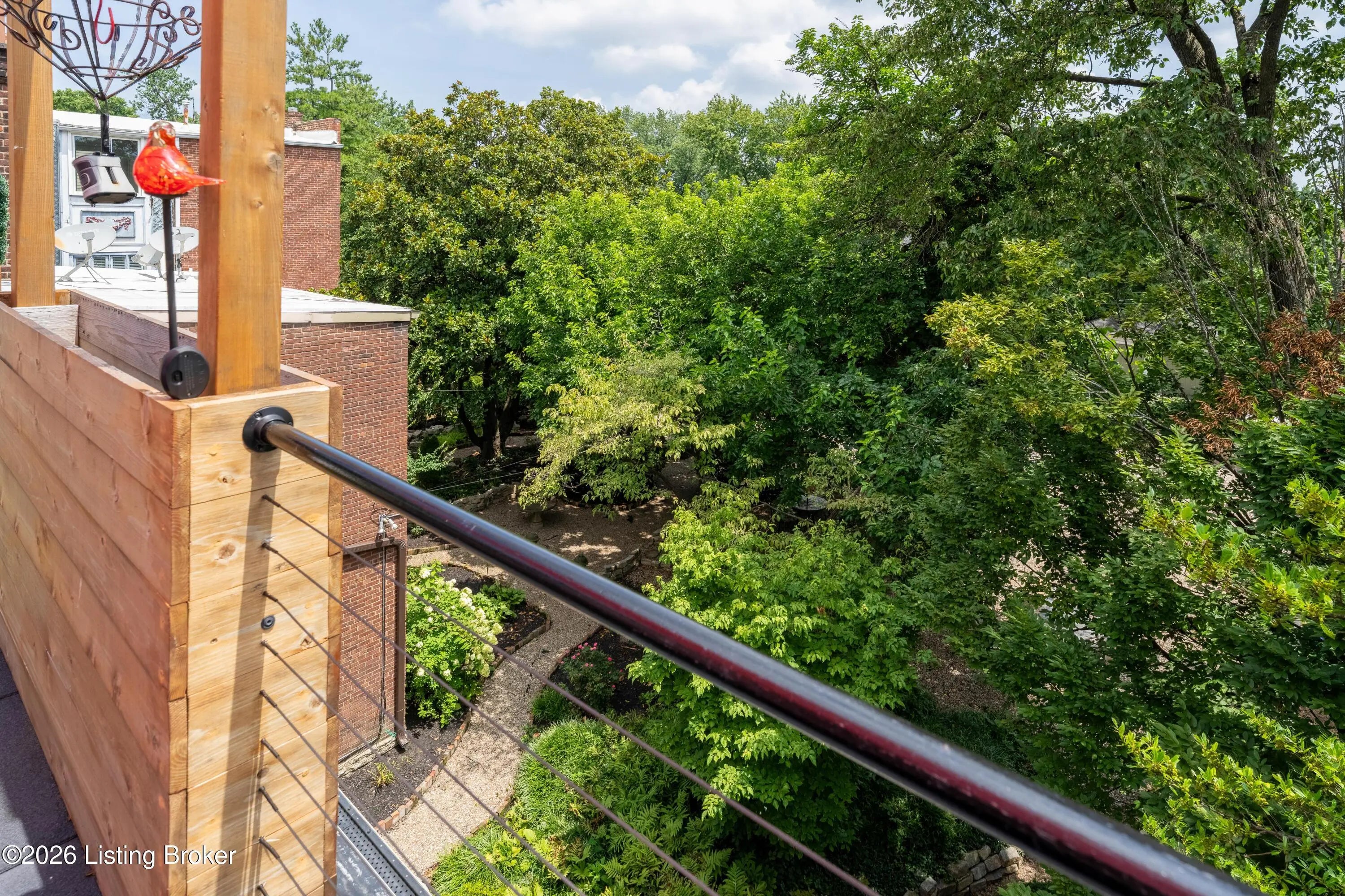 Welcome to Old Louisville's beautiful Victoria Gardens. The owners affectionately call their second home "Louisville Charm", and when you step in, you'll see why. The sellers have put a lot of love into the improvements over the last three years, including new, period-appropriate floor tile in the kitchen, new appliances upgrading to gas, updated cabinets, and granite countertops. The adjoining living room with Bay window makes for a cozy space to entertain or just relax with a good book and your favorite beverage on the custom-made window cushion. And, don't despair—they also added an in-unit washer and dryer with all the bells and whistles. Upstairs, you'll find two nicely sized bedrooms and the completely remodeled remodeled bathroom. The architect- designed private roof top patio boasts custom planter boxes, sleek rails, floating floor, a custom storage bench, installed electric for work-from home access, custom lighting, lounger sofa, and a 65" outdoor TV.