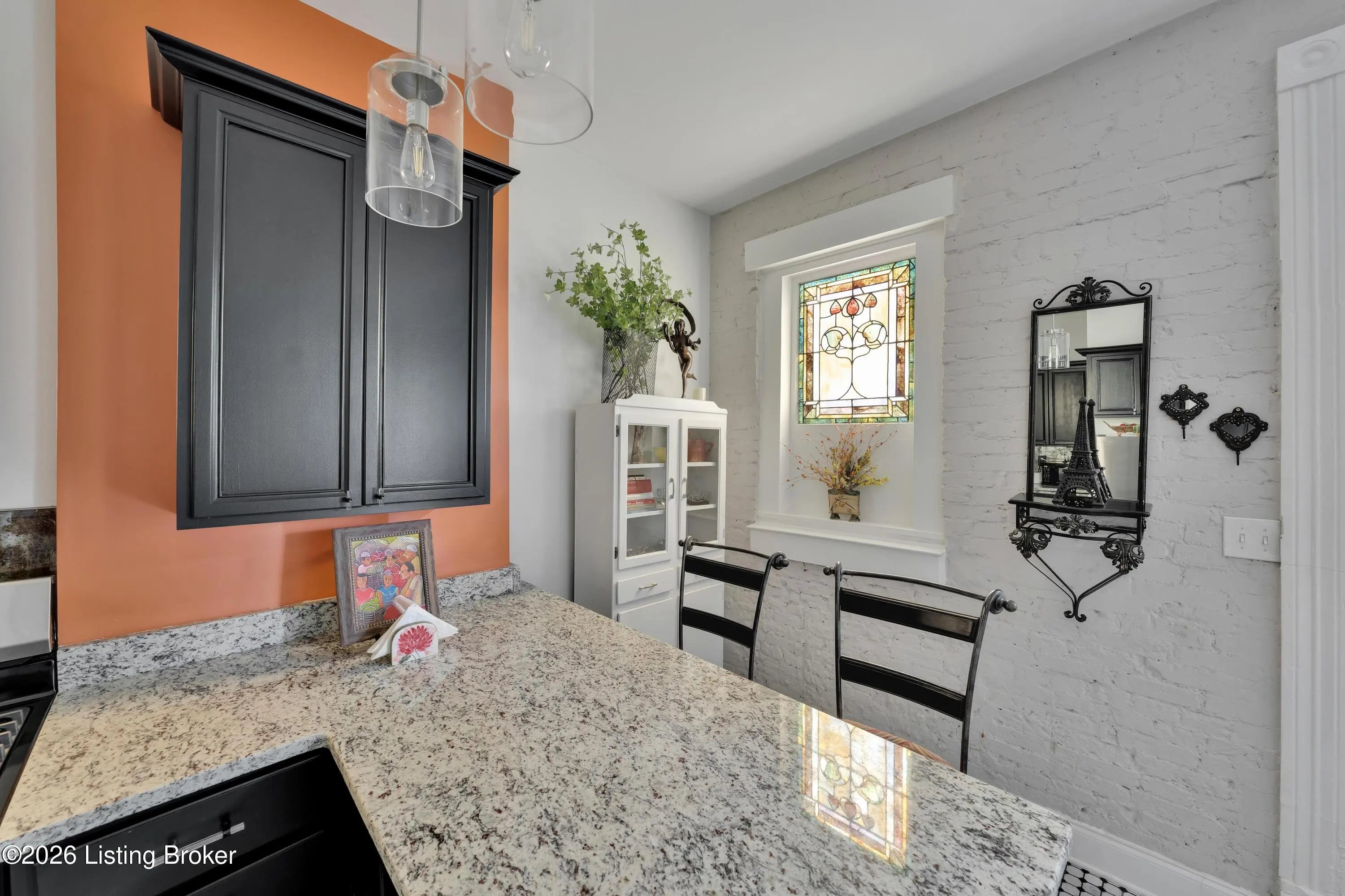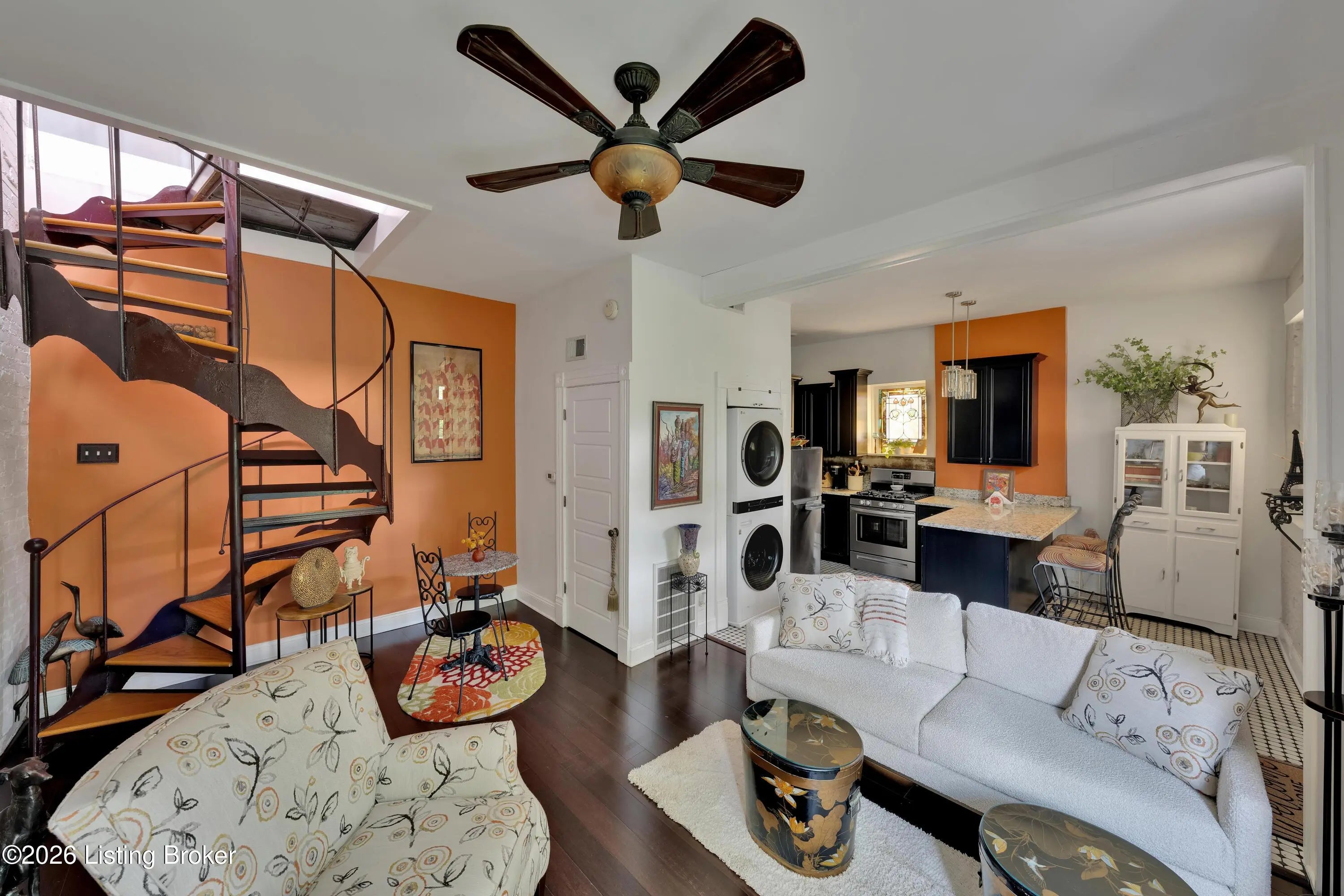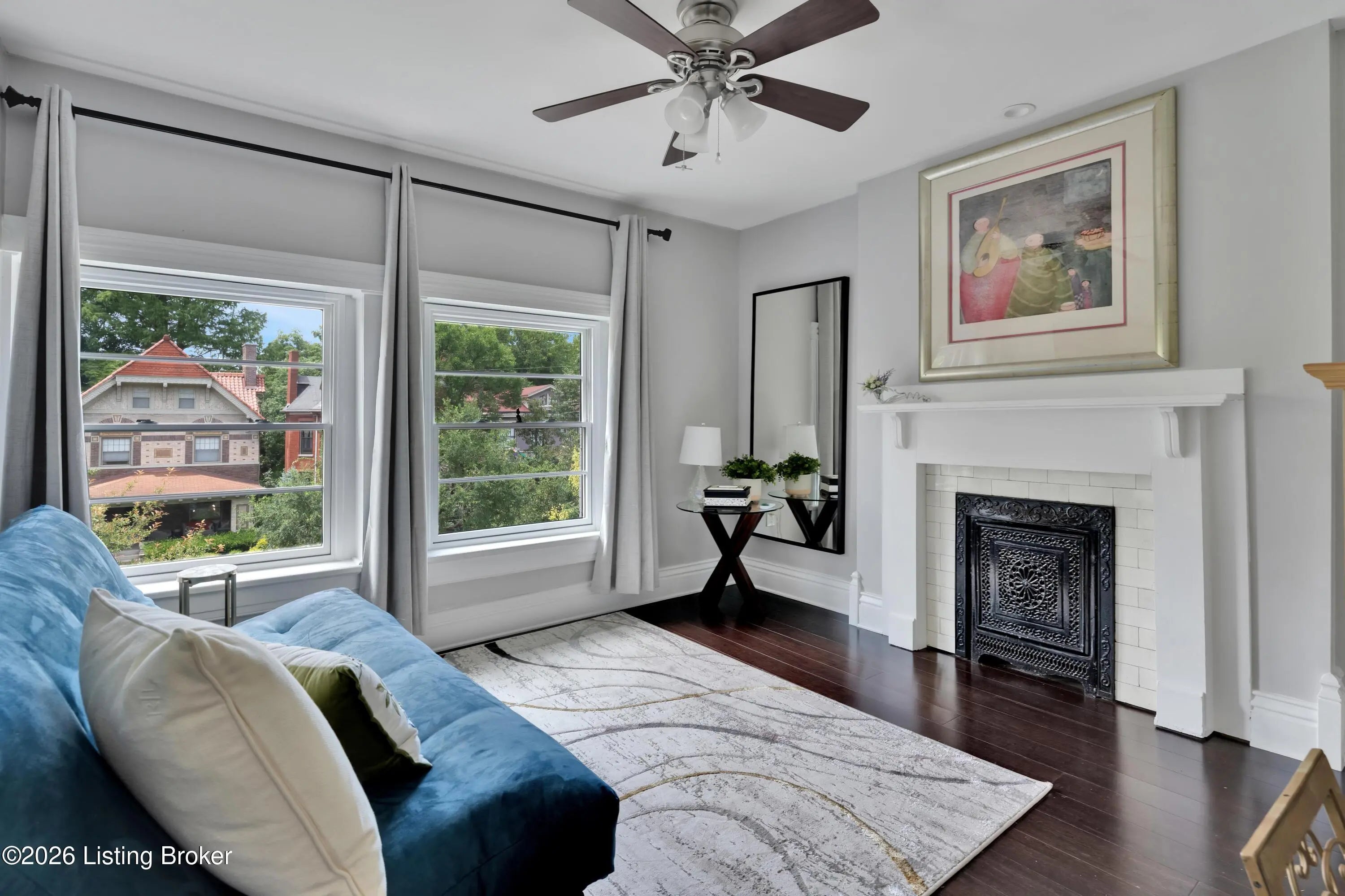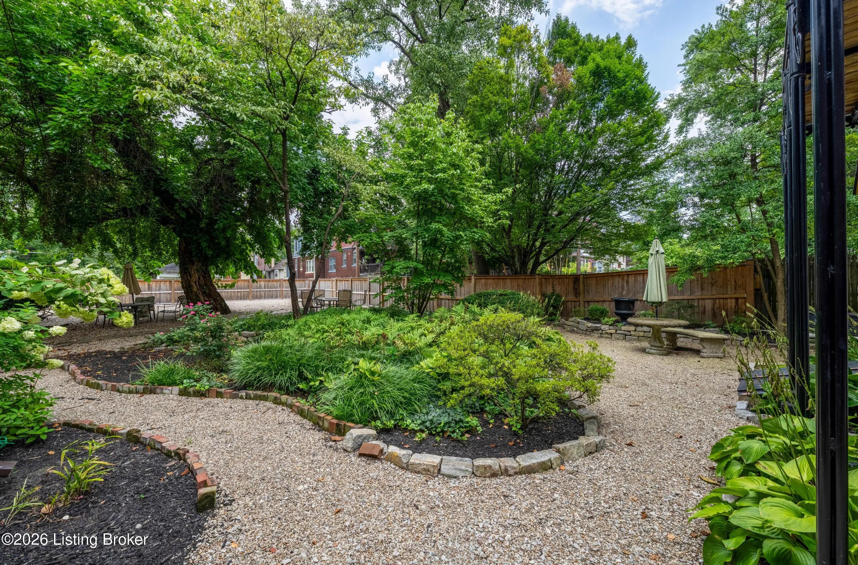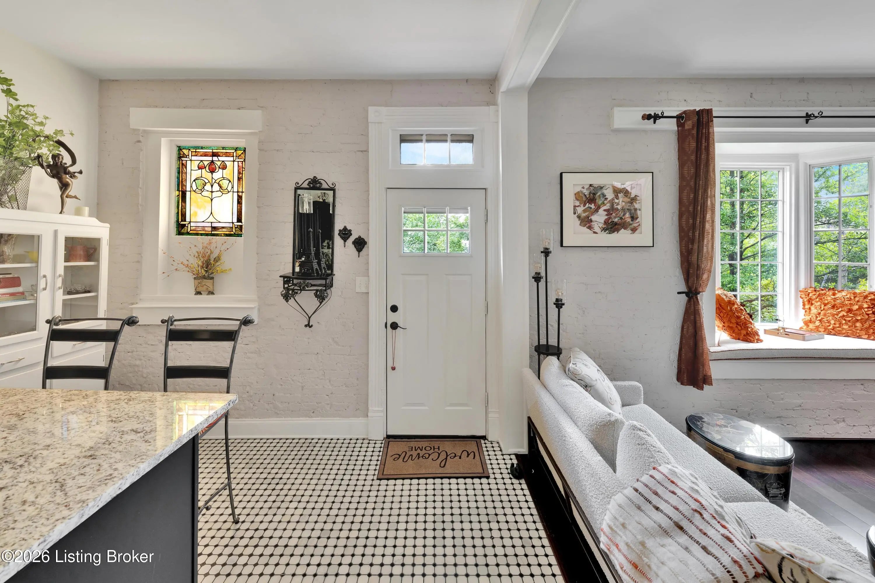 Welcome to Old Louisville's beautiful Victoria Gardens. The owners affectionately call their second home "Louisville Charm", and when you step in, you'll see why. The sellers have put a lot of love into the improvements over the last three years, including new, period-appropriate floor tile in the kitchen, new appliances upgrading to gas, updated cabinets, and granite countertops. The adjoining living room with Bay window makes for a cozy space to entertain or just relax with a good book and your favorite beverage on the custom-made window cushion. And, don't despair—they also added an in-unit washer and dryer with all the bells and whistles. Upstairs, you'll find two nicely sized bedrooms and the completely remodeled remodeled bathroom. The architect- designed private roof top patio boasts custom planter boxes, sleek rails, floating floor, a custom storage bench, installed electric for work-from home access, custom lighting, lounger sofa, and a 65" outdoor TV.