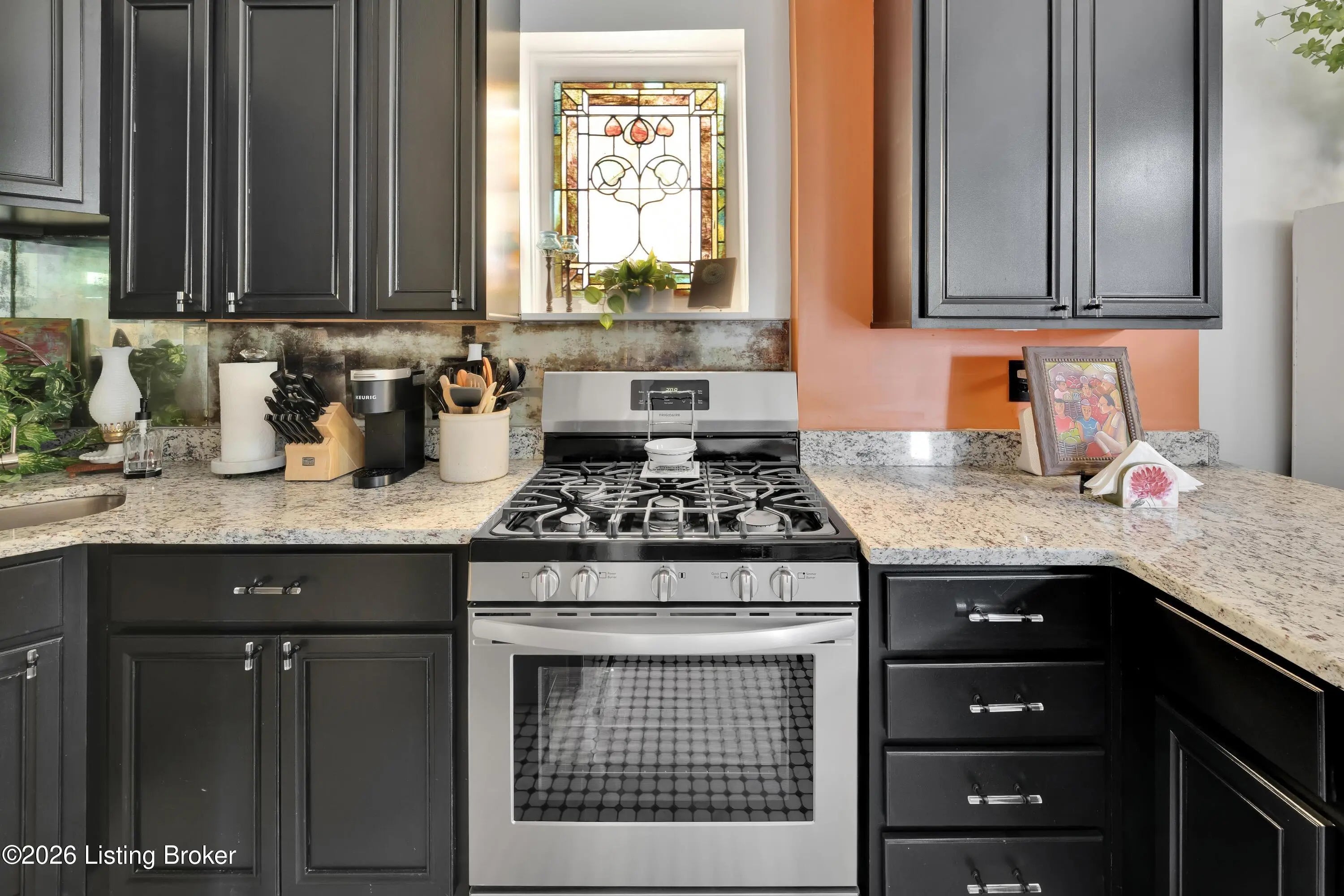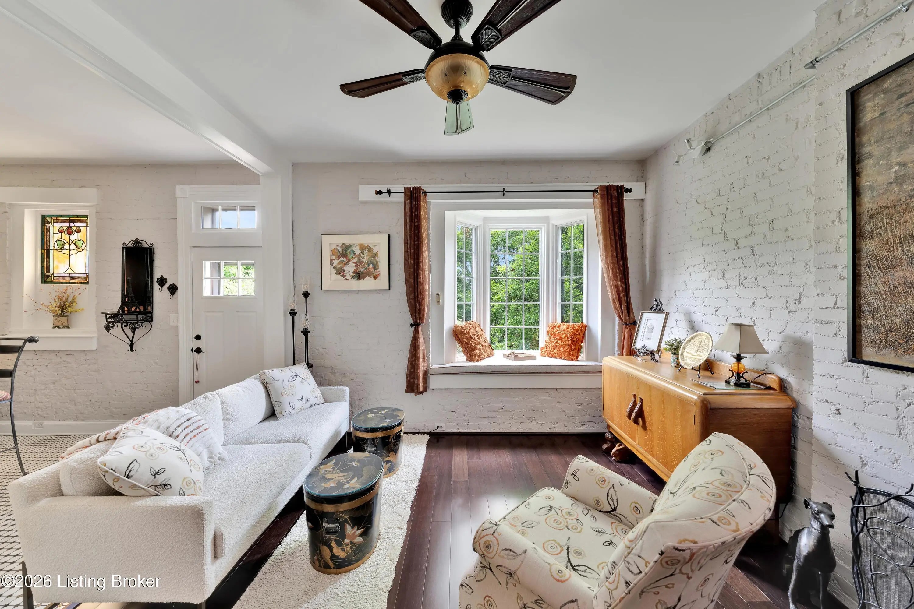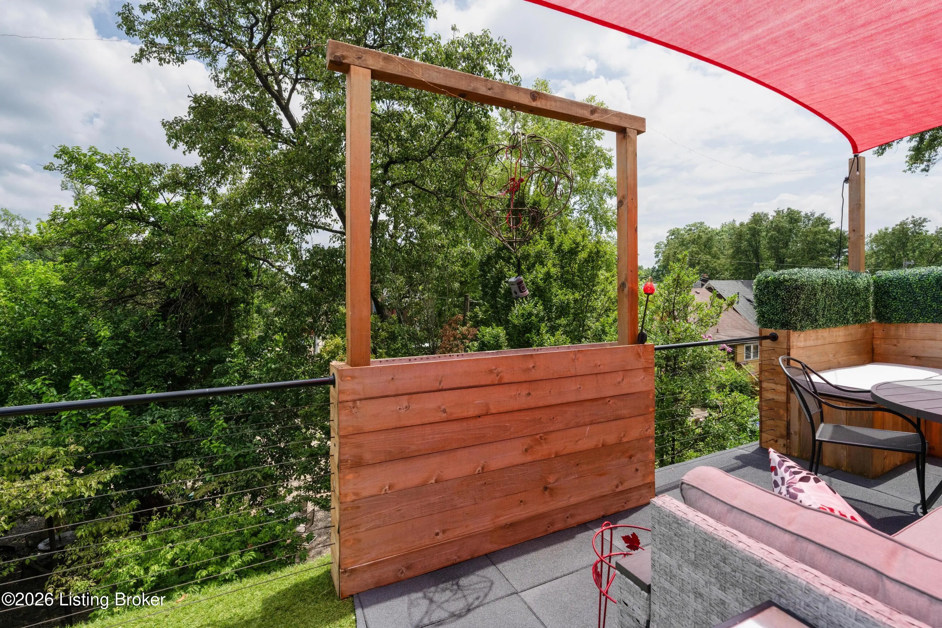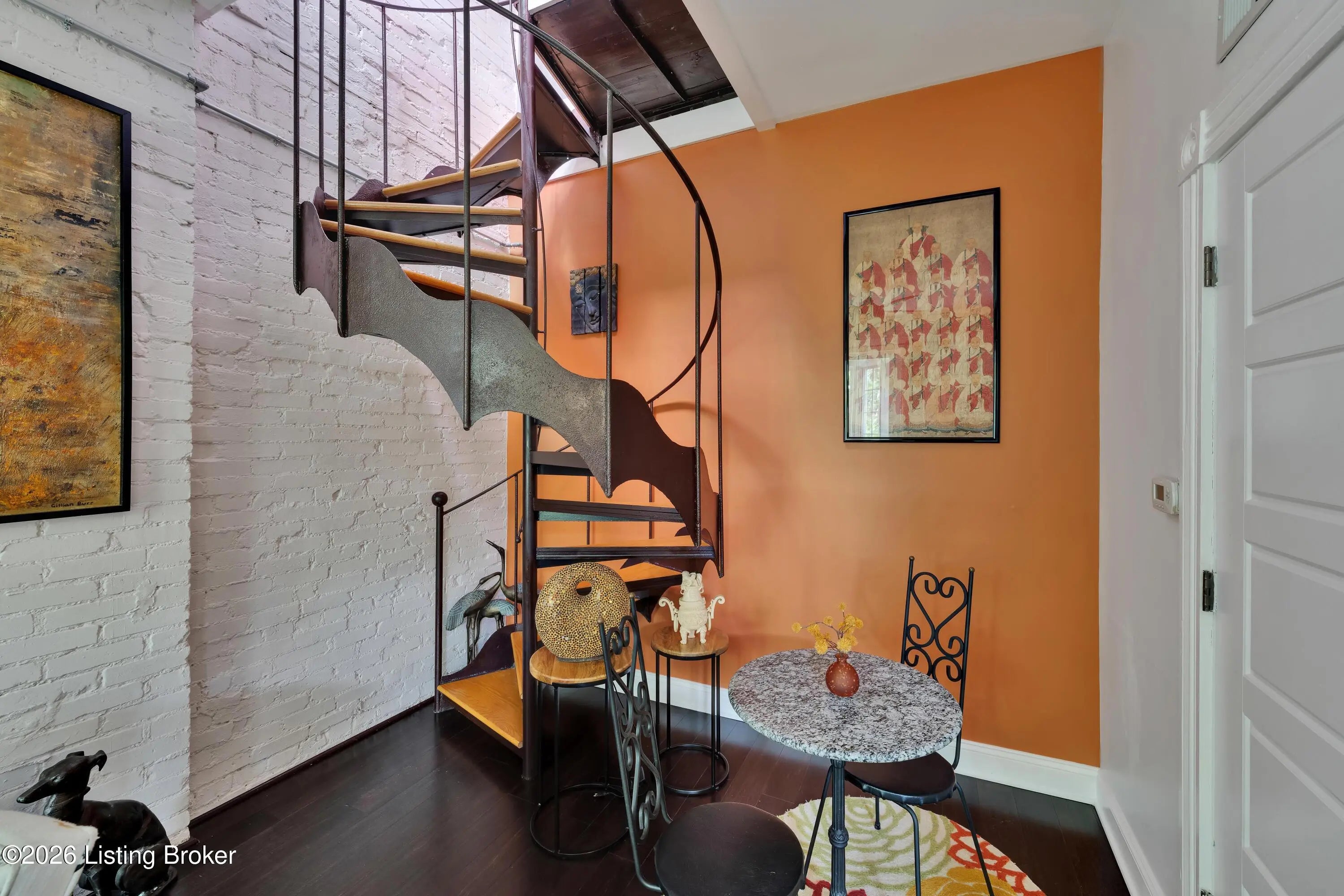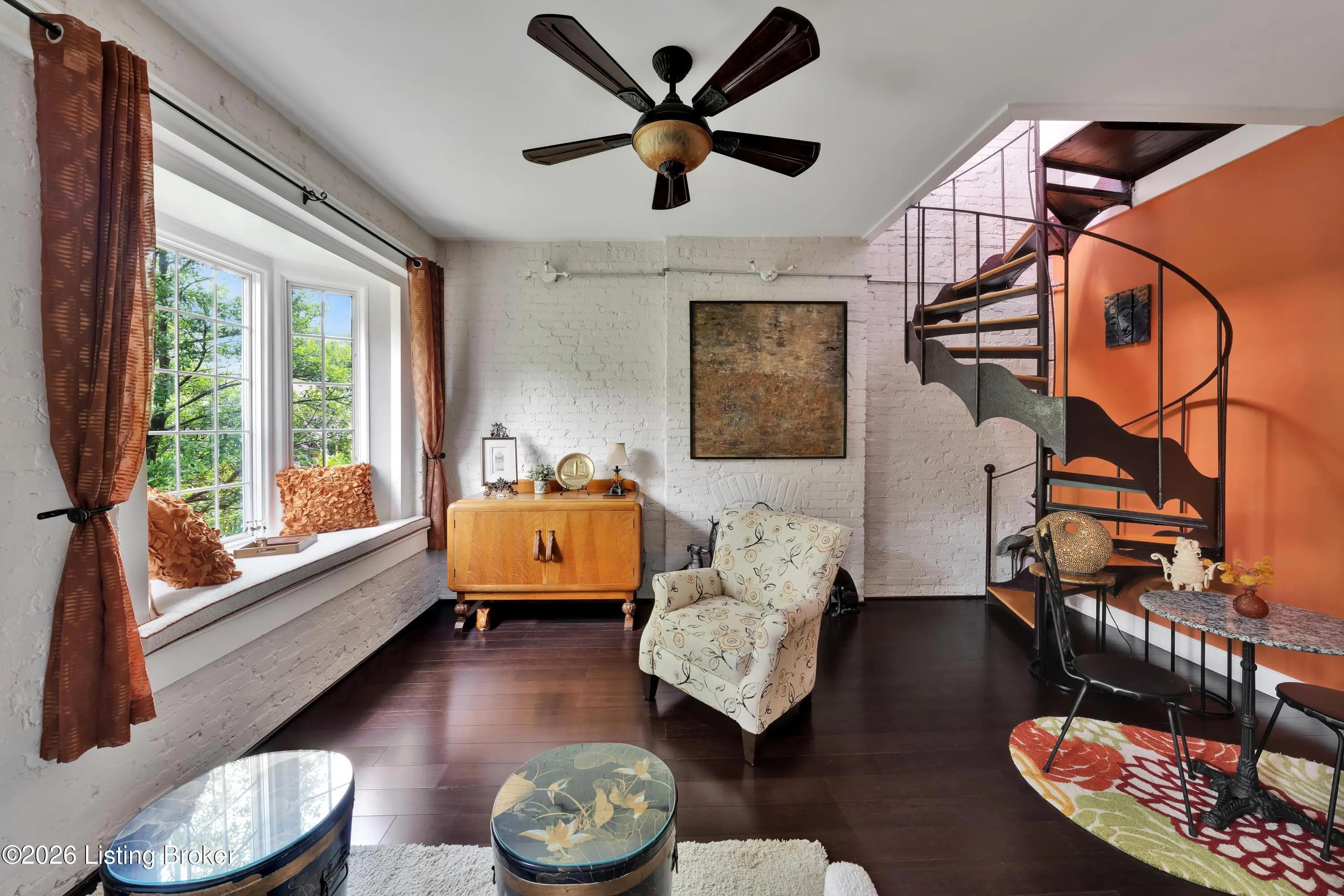 Welcome to Old Louisville's beautiful Victoria Gardens. The owners affectionately call their second home "Louisville Charm", and when you step in, you'll see why. The sellers have put a lot of love into the improvements over the last three years, including new, period-appropriate floor tile in the kitchen, new appliances upgrading to gas, updated cabinets, and granite countertops. The adjoining living room with Bay window makes for a cozy space to entertain or just relax with a good book and your favorite beverage on the custom-made window cushion. And, don't despair—they also added an in-unit washer and dryer with all the bells and whistles. Upstairs, you'll find two nicely sized bedrooms and the completely remodeled remodeled bathroom. The architect- designed private roof top patio boasts custom planter boxes, sleek rails, floating floor, a custom storage bench, installed electric for work-from home access, custom lighting, lounger sofa, and a 65" outdoor TV.