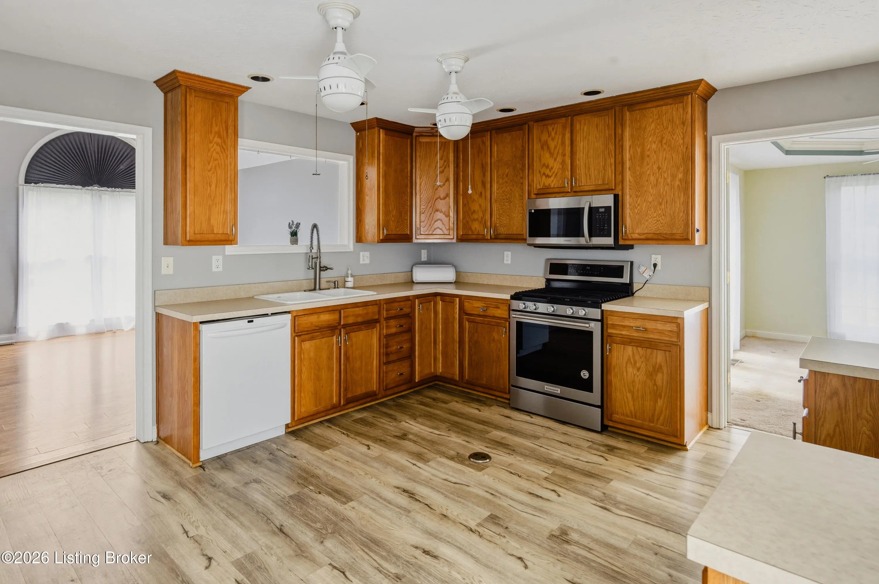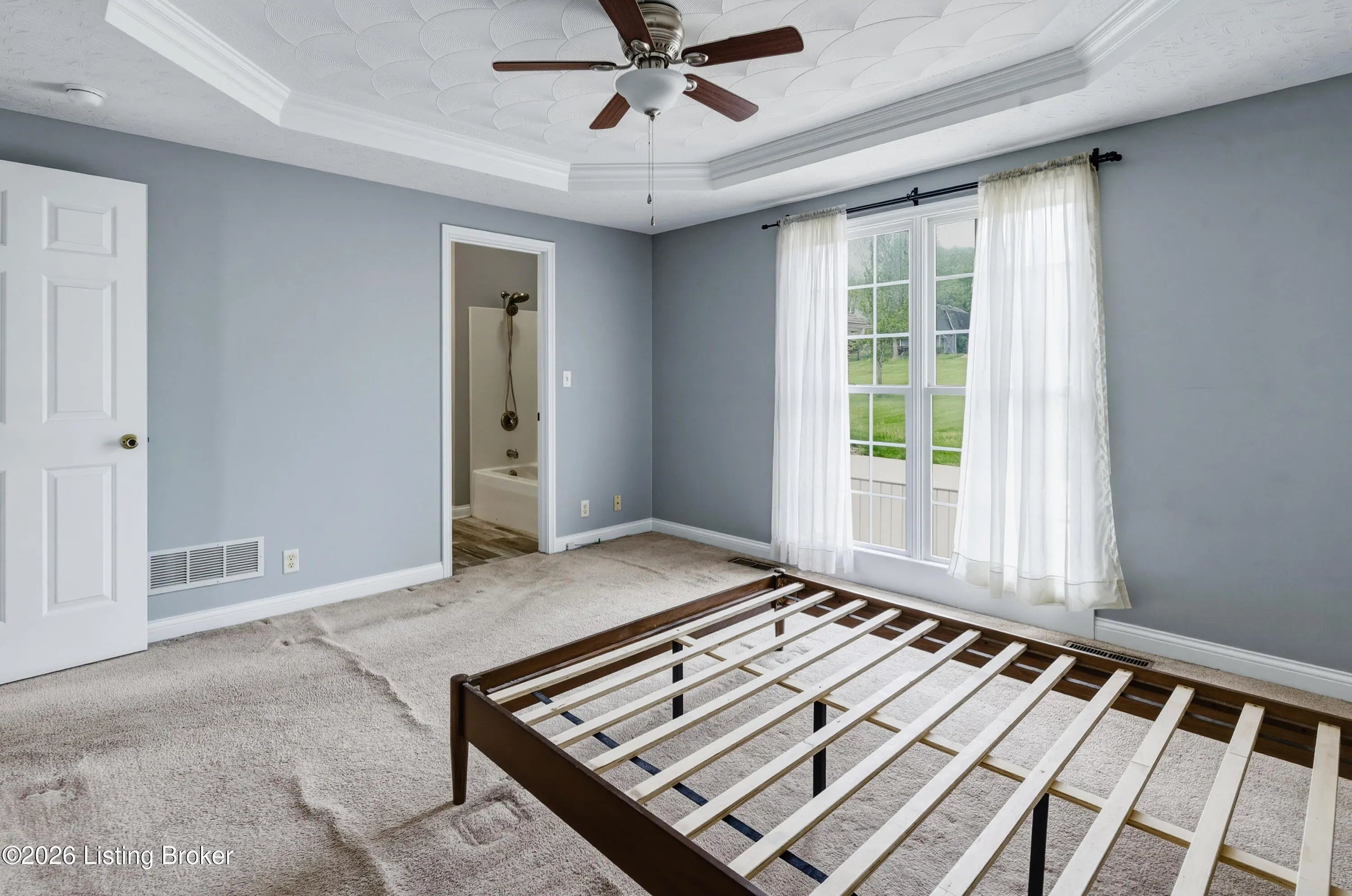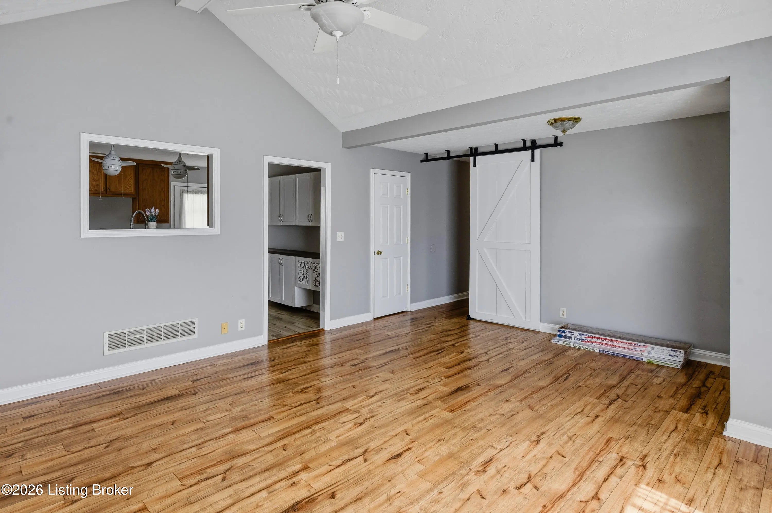 3-bedroom, 3-bath ranch with a walk-up basement and oversized 2.5-car garage, set on a deep lot just shy of one acre. This well-maintained home features cathedral ceilings in the living room with a pass-through to the kitchen. The kitchen offers abundant cabinetry, a gas range with electric hookup available, and a convenient center outlet for a future island.The primary suite features tray ceilings, a private bath with double vanities, and ample storage. Updates include HVAC, roof, most flooring, sump pump, front door, and custom-designed closets in all bedrooms. The mostly unfinished walk-up basement provides great potential, with a finished area recently used as a fourth bedroom.