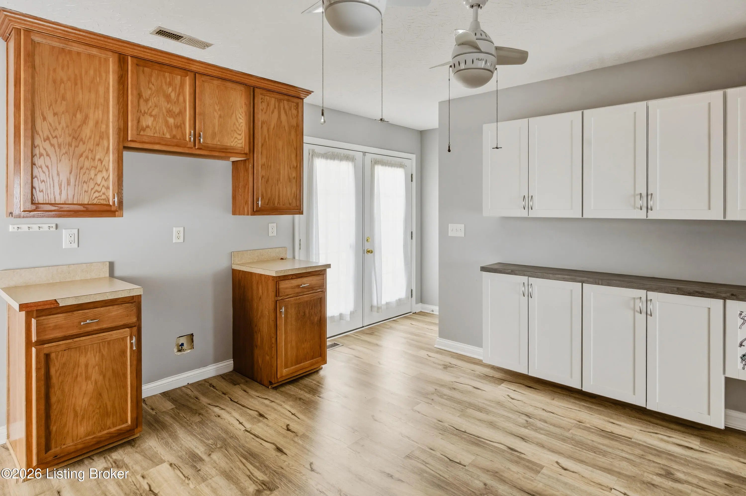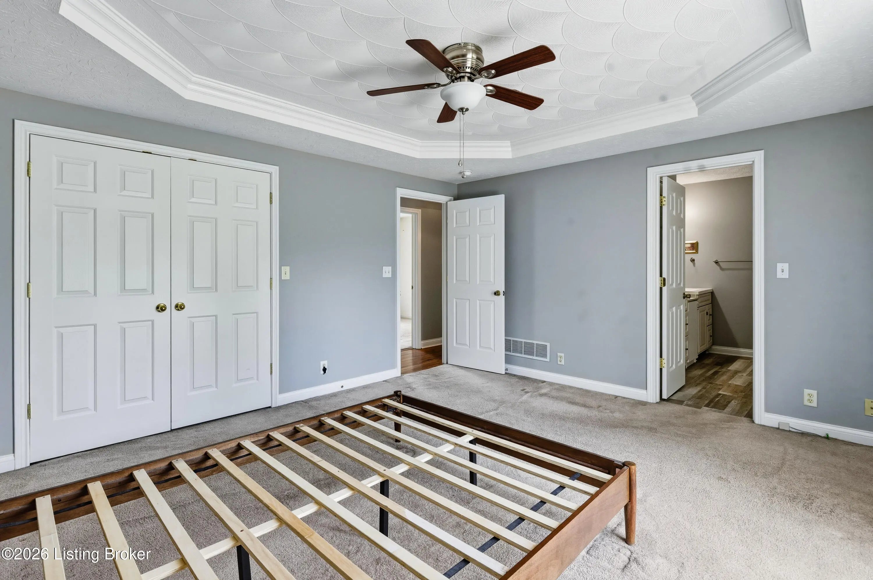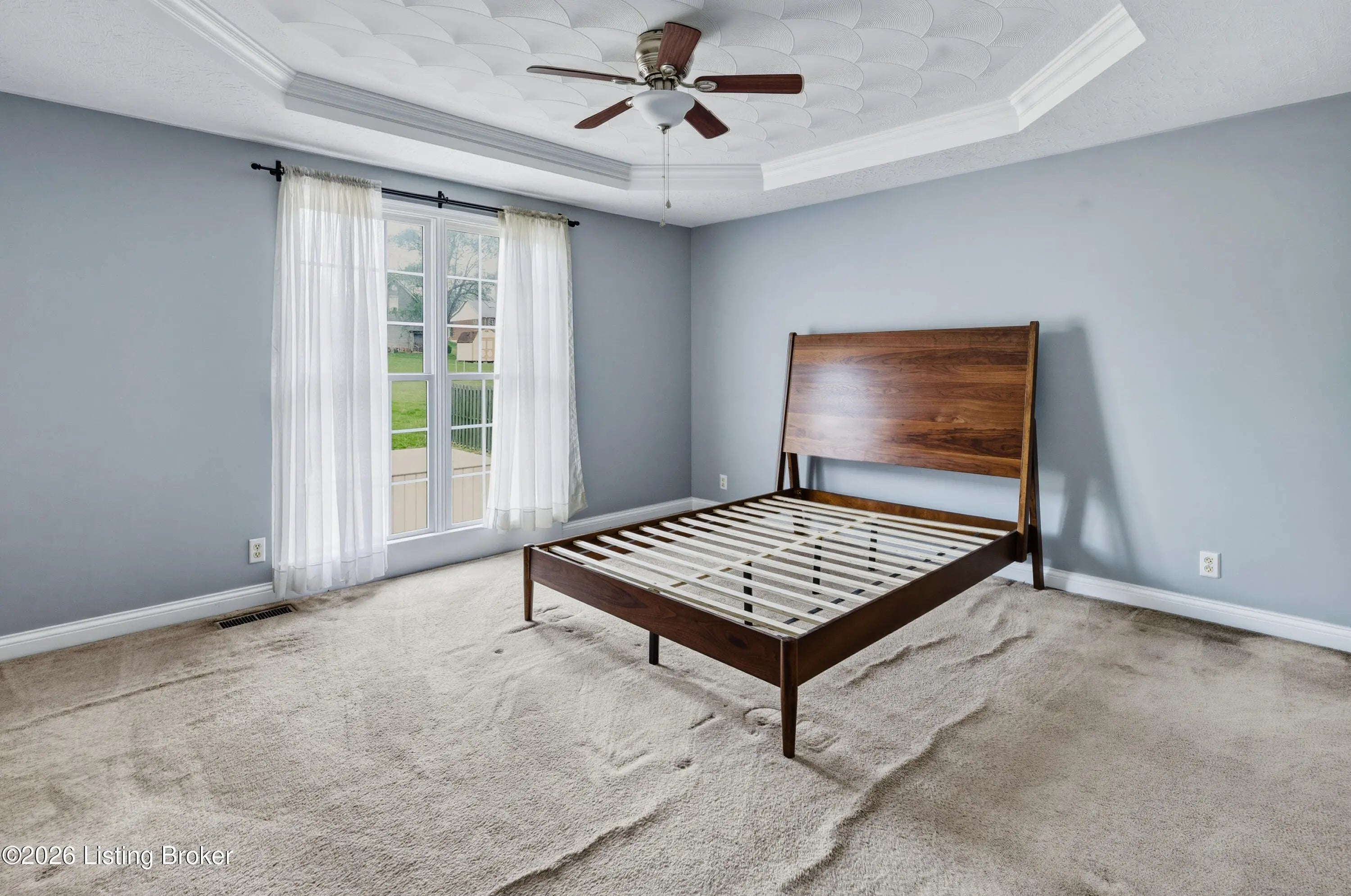 3-bedroom, 3-bath ranch with a walk-up basement and oversized 2.5-car garage, set on a deep lot just shy of one acre. This well-maintained home features cathedral ceilings in the living room with a pass-through to the kitchen. The kitchen offers abundant cabinetry, a gas range with electric hookup available, and a convenient center outlet for a future island.The primary suite features tray ceilings, a private bath with double vanities, and ample storage. Updates include HVAC, roof, most flooring, sump pump, front door, and custom-designed closets in all bedrooms. The mostly unfinished walk-up basement provides great potential, with a finished area recently used as a fourth bedroom.