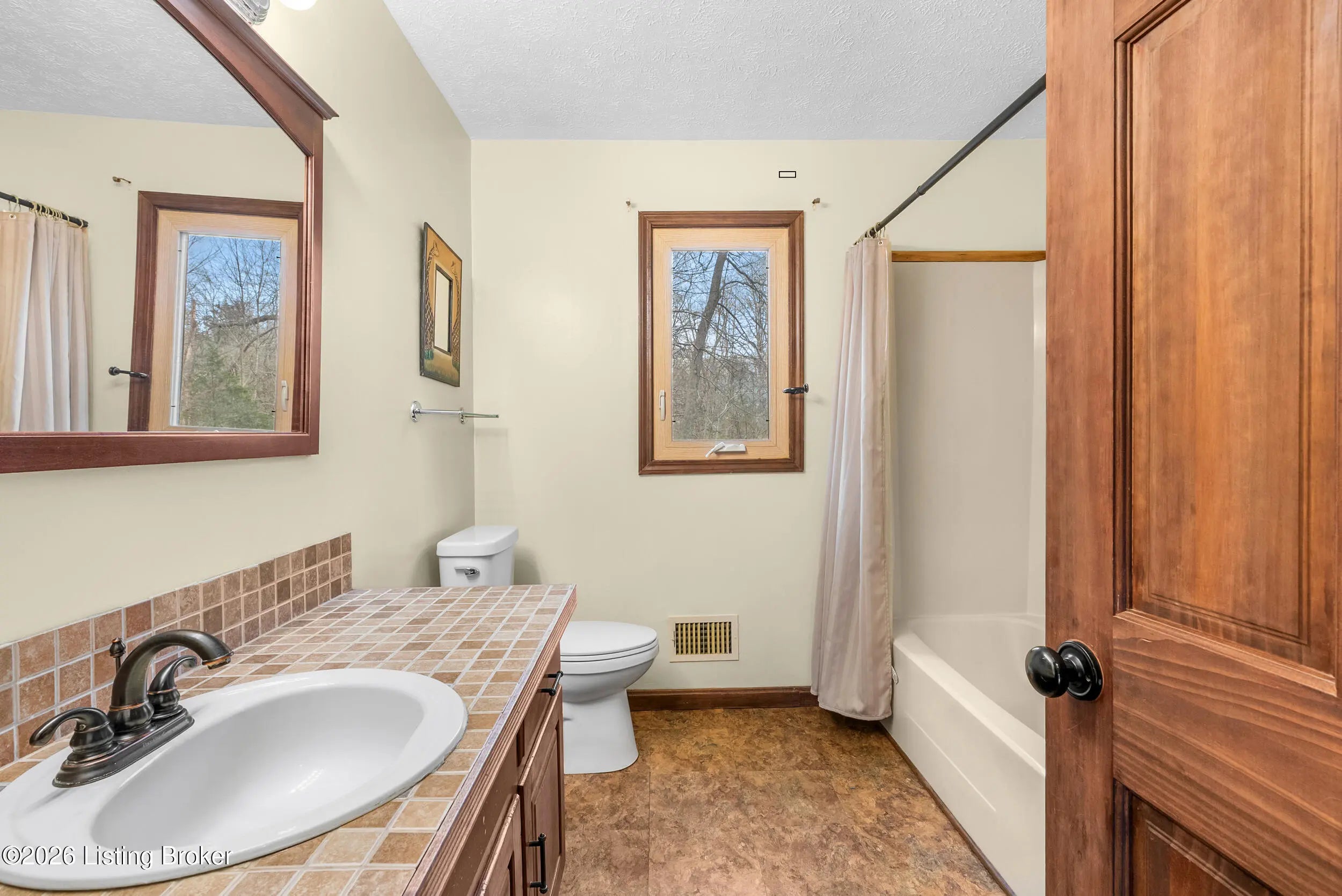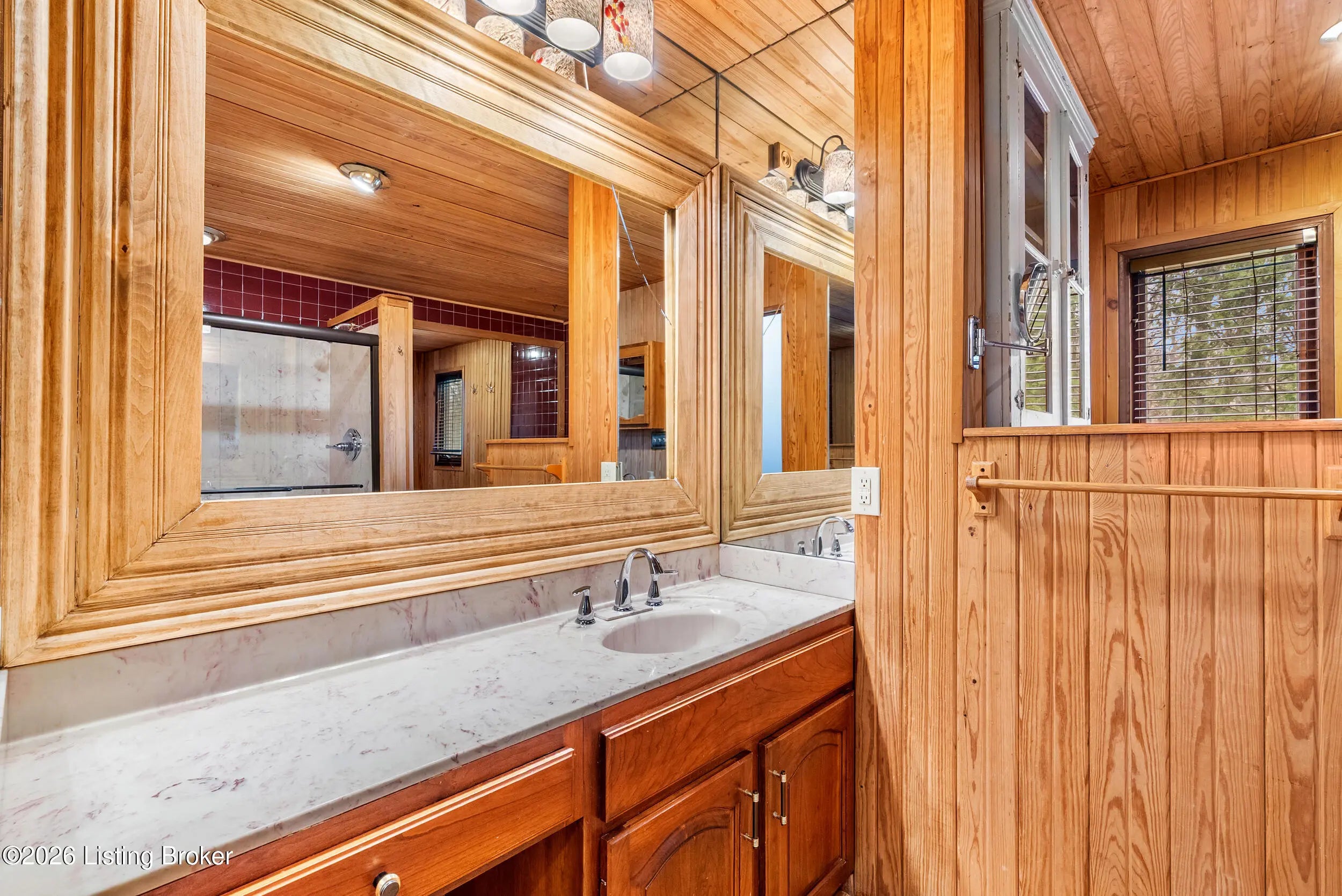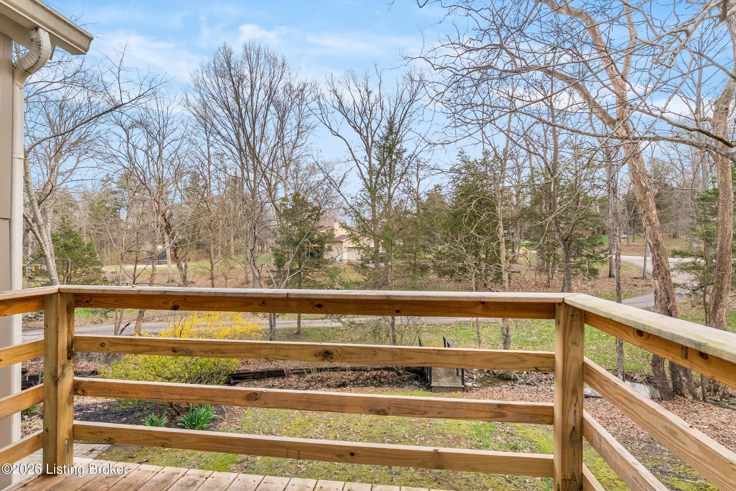 Welcome to your private retreat that has rustic charm in the heart of Oldham County! Located on a quiet cul-de-sac and nestled on a serene, panoramic 1.1 acre lot, this beautiful home perfeclty blends nature, space, and comfort. The lot features mature trees and a stunning creek with a bridge. With over 3,000 square feet of finished living space, this home has 4 bedrooms and 3 full bathrooms, hardwood floors throughout and an extra deep attached 2.5 car garage. The first floor primary bedroom is quite spacious and has a walk-in closet and its own private balcony. The living room has a gorgeous vaulted ceiling and a massive creekstone fireplace. The kitchen has been updated with granite countertops, and a massive double sink. Plenty of cabinets and counterspace! First floor laundry room! Both laundry and kitchen appliances will remain with the home! The finished walkout basement has just been completely renovated, including a new waterproofing system that is transferable to the next owner. The basement also consists of a large family room, bedroom, and a good amount of unfinished space left for storage. Outdoor living is exceptional with multiple spaces to relax and entertain, including a screened-in porch, 3 decks and a patio - all overlooking the picturesque setting. Heating and air conditioner only 1 year old and hot water heater just 5 years old. Additional features include the option of a wood-burning furnace to help reduce utility costs and a thermostatically controlled attic ventilator fan. The seller is providing a one year home warranty! This home is close to the conveniences of La Grange, yet just a short 20 minute drive to Louisville. Situated in the award-winning Oldham County School District. With Oldham County's short supply of listings, this is a rare opportunity you won't want to miss! Buyers are responsible for verifying any and all information including but not limited to square footage, lot size, utilities, zoning, etc.
