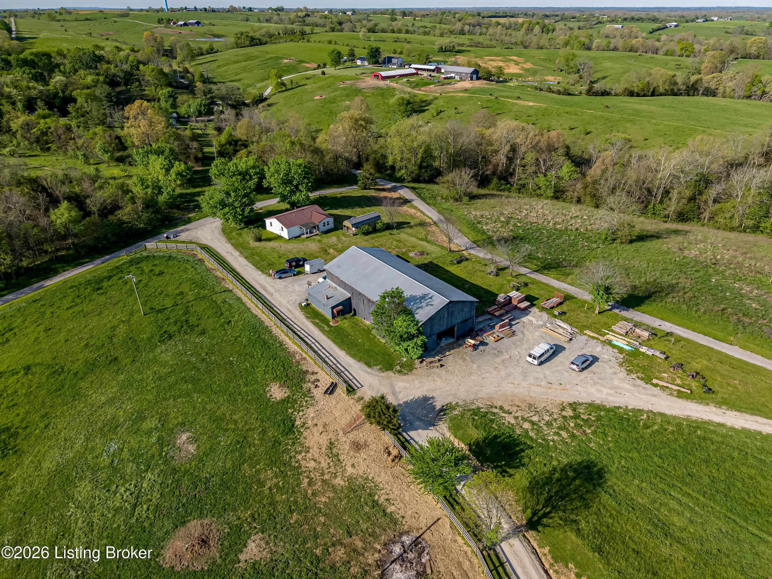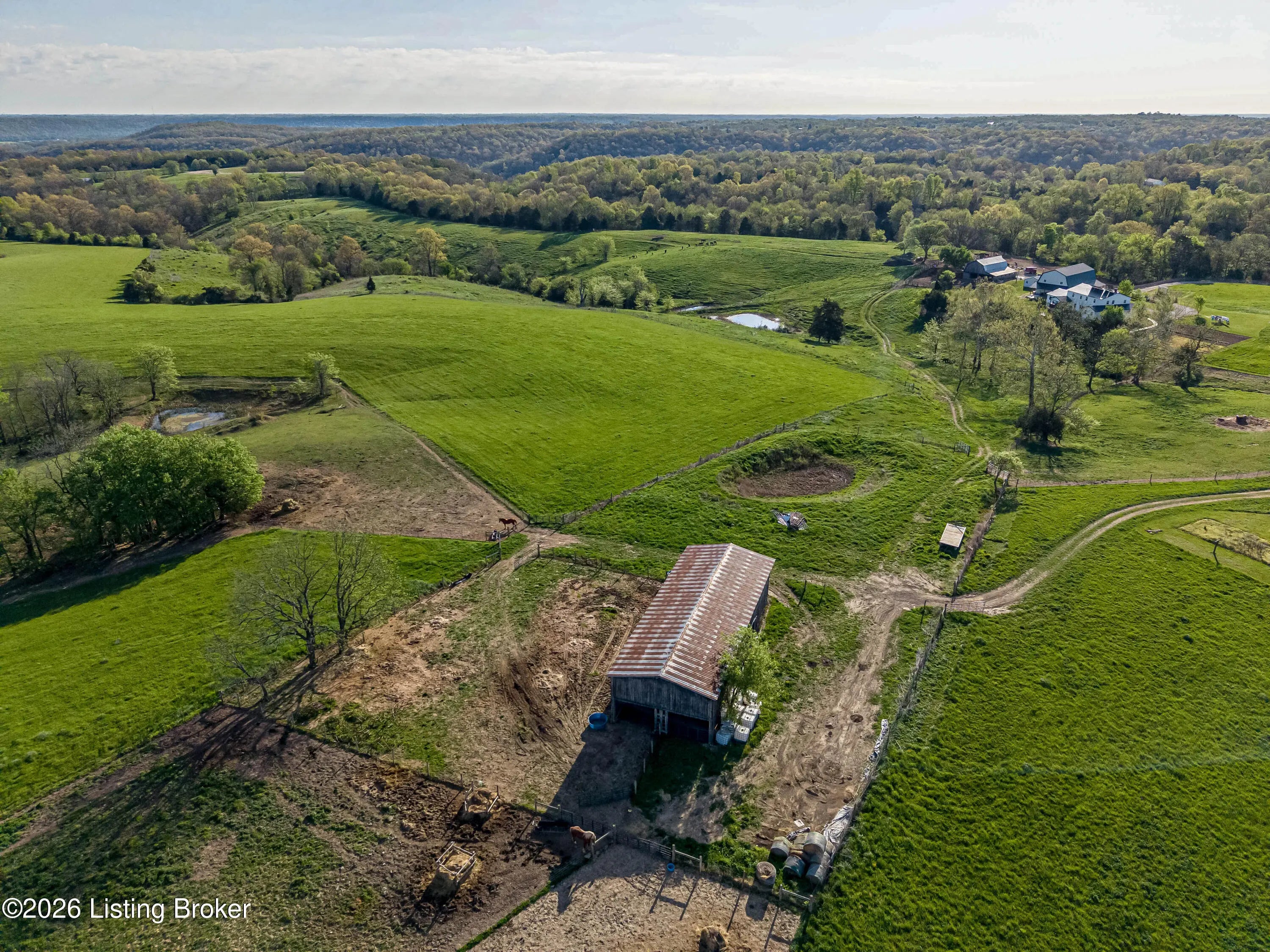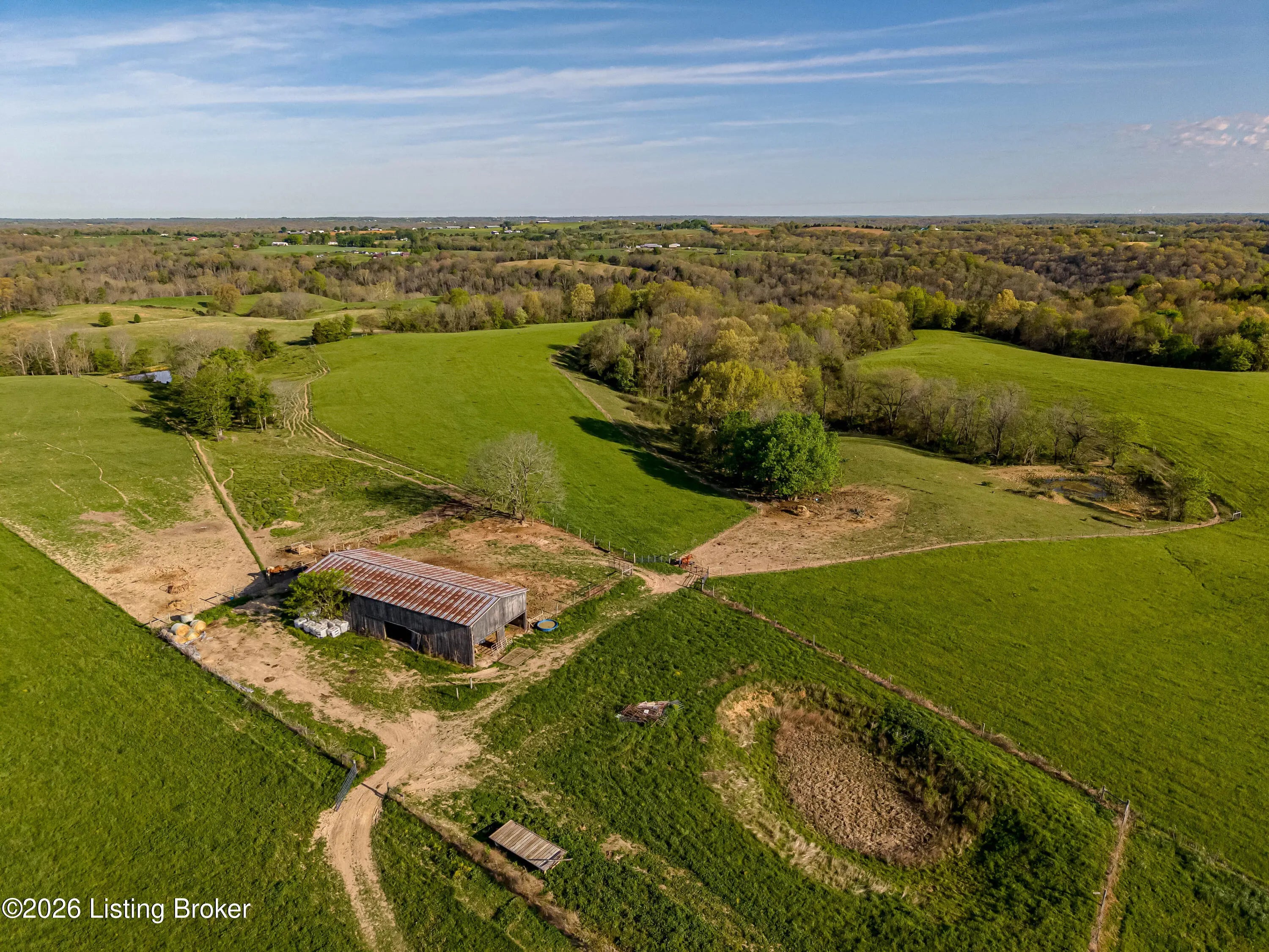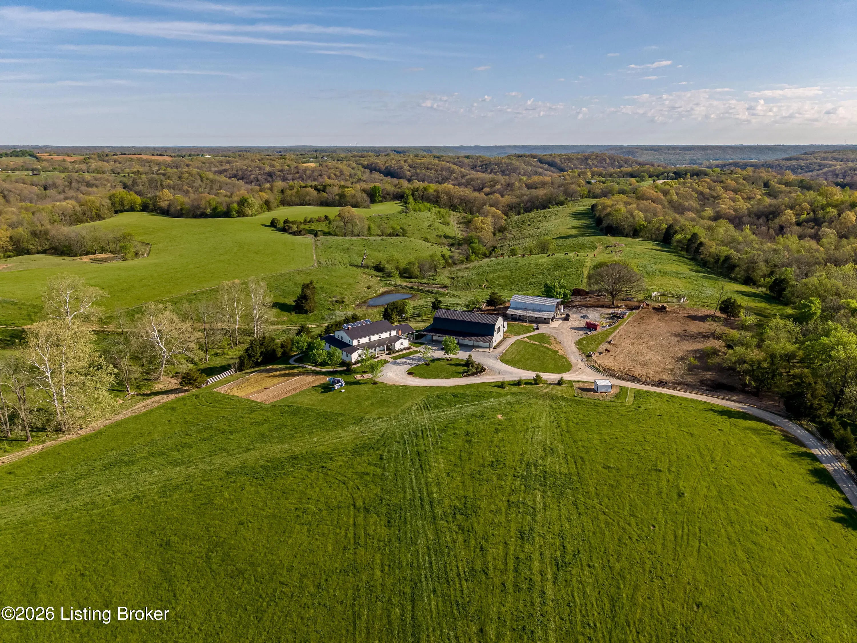 Discover the perfect blend of productivity, privacy, and self-sufficient living on this expansive 237-acre working farm in Henry County, fully surveyed in 2018. Designed for both agricultural use and recreation, the property features multiple fenced pastures ideal for cattle, horses, or hay production, along with approximately 90 acres of mature woodland offering excellent hunting and outdoor opportunities. The main residence, built in 2018 by skilled Amish craftsmen, showcases quality construction and a back-to-basics lifestyle without traditional electrical wiring. The home is thoughtfully equipped with modern essentials including county water, plumbing, septic system, a cistern, solar-powered appliances, a wood-burning hot water heater, and a wood stove for heat. With 9 bedrooms, 3 full bathrooms, over 4,400 square feet above grade, and an additional 2,880 square feet in a walkout basement, there is ample space for large families, multi-generational living, or homesteading needs. Complementing the home is a substantial 36' x 64' insulated two-story garage (also built in 2018) featuring a partially wraparound porch. The upper level offers excellent potential to be finished into additional living quarters, guest space, or rental opportunity. A second home near the road provides even more flexibility, offering 1,232 square feet above ground plus a full basement—ideal for extended family, farm help, or income-producing use. The farm is well-equipped with four additional barns, multiple ponds, and natural water sources including creeks along two boundaries. Currently supporting cattle, horses, hay production, and recreational hunting, this property is ready to continue as a working farm or evolve into your dream rural retreat. Rarely does a property of this size, versatility, and character become available—don't miss this unique opportunity to own a truly special piece of Henry County countryside.