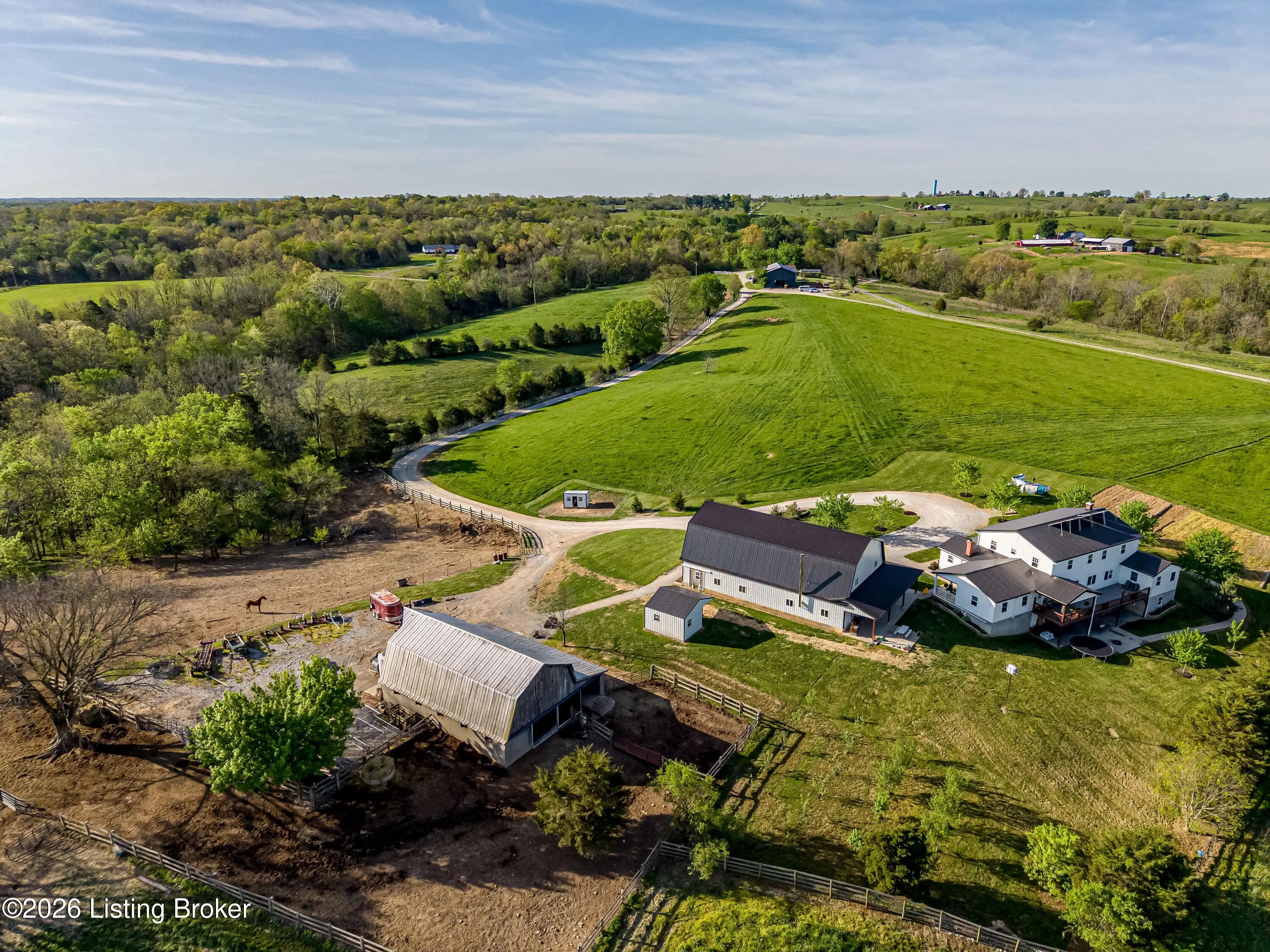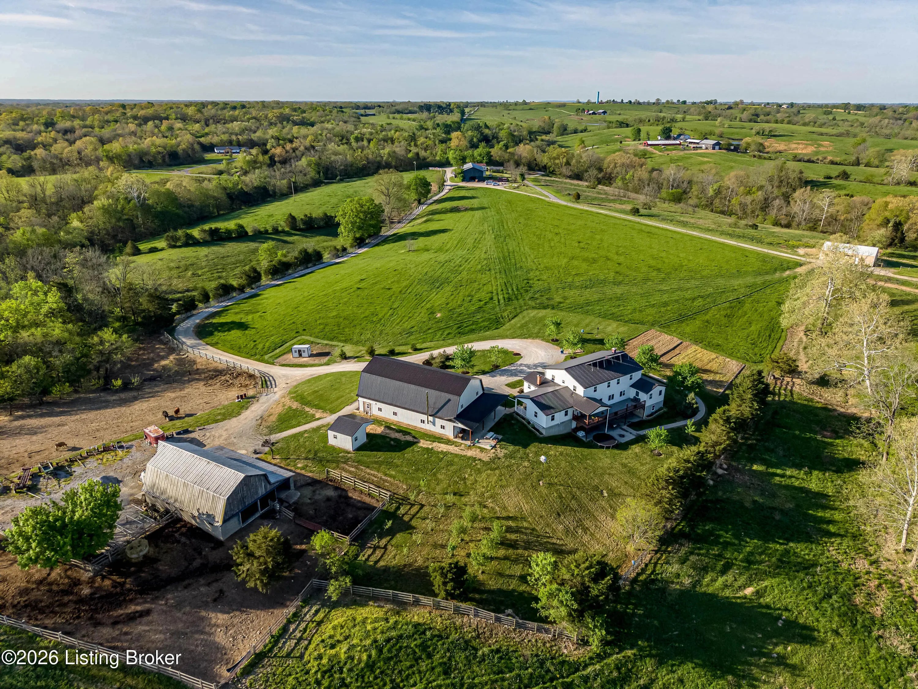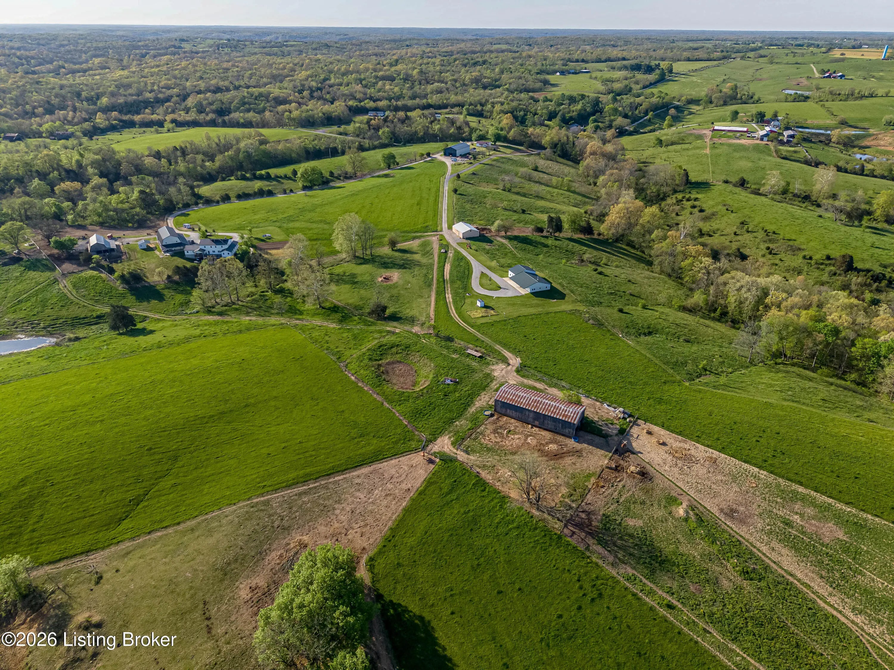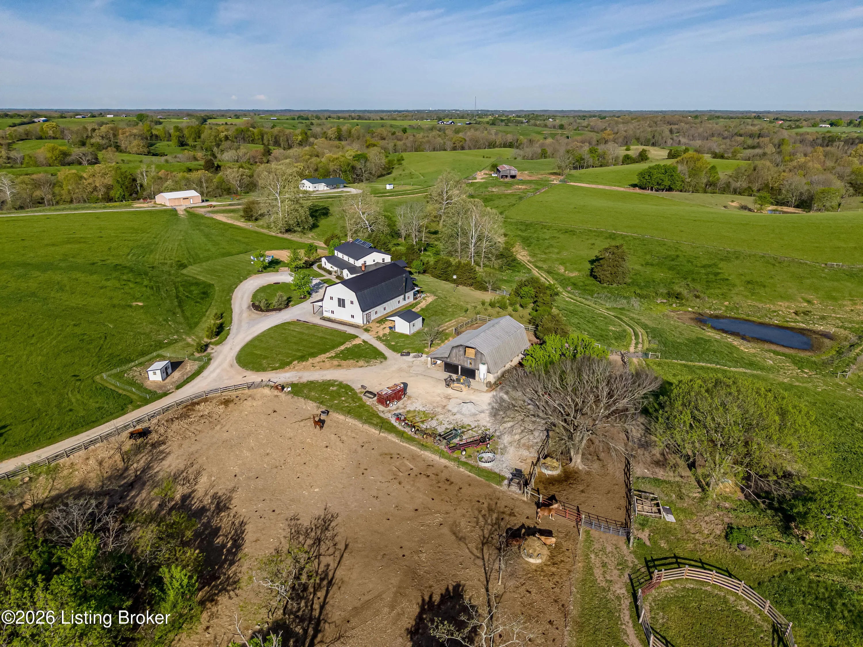 Discover the perfect blend of productivity, privacy, and self-sufficient living on this expansive 237-acre working farm in Henry County, fully surveyed in 2018. Designed for both agricultural use and recreation, the property features multiple fenced pastures ideal for cattle, horses, or hay production, along with approximately 90 acres of mature woodland offering excellent hunting and outdoor opportunities. The main residence, built in 2018 by skilled Amish craftsmen, showcases quality construction and a back-to-basics lifestyle without traditional electrical wiring. The home is thoughtfully equipped with modern essentials including county water, plumbing, septic system, a cistern, solar-powered appliances, a wood-burning hot water heater, and a wood stove for heat. With 9 bedrooms, 3 full bathrooms, over 4,400 square feet above grade, and an additional 2,880 square feet in a walkout basement, there is ample space for large families, multi-generational living, or homesteading needs. Complementing the home is a substantial 36' x 64' insulated two-story garage (also built in 2018) featuring a partially wraparound porch. The upper level offers excellent potential to be finished into additional living quarters, guest space, or rental opportunity. A second home near the road provides even more flexibility, offering 1,232 square feet above ground plus a full basement—ideal for extended family, farm help, or income-producing use. The farm is well-equipped with four additional barns, multiple ponds, and natural water sources including creeks along two boundaries. Currently supporting cattle, horses, hay production, and recreational hunting, this property is ready to continue as a working farm or evolve into your dream rural retreat. Rarely does a property of this size, versatility, and character become available—don't miss this unique opportunity to own a truly special piece of Henry County countryside.