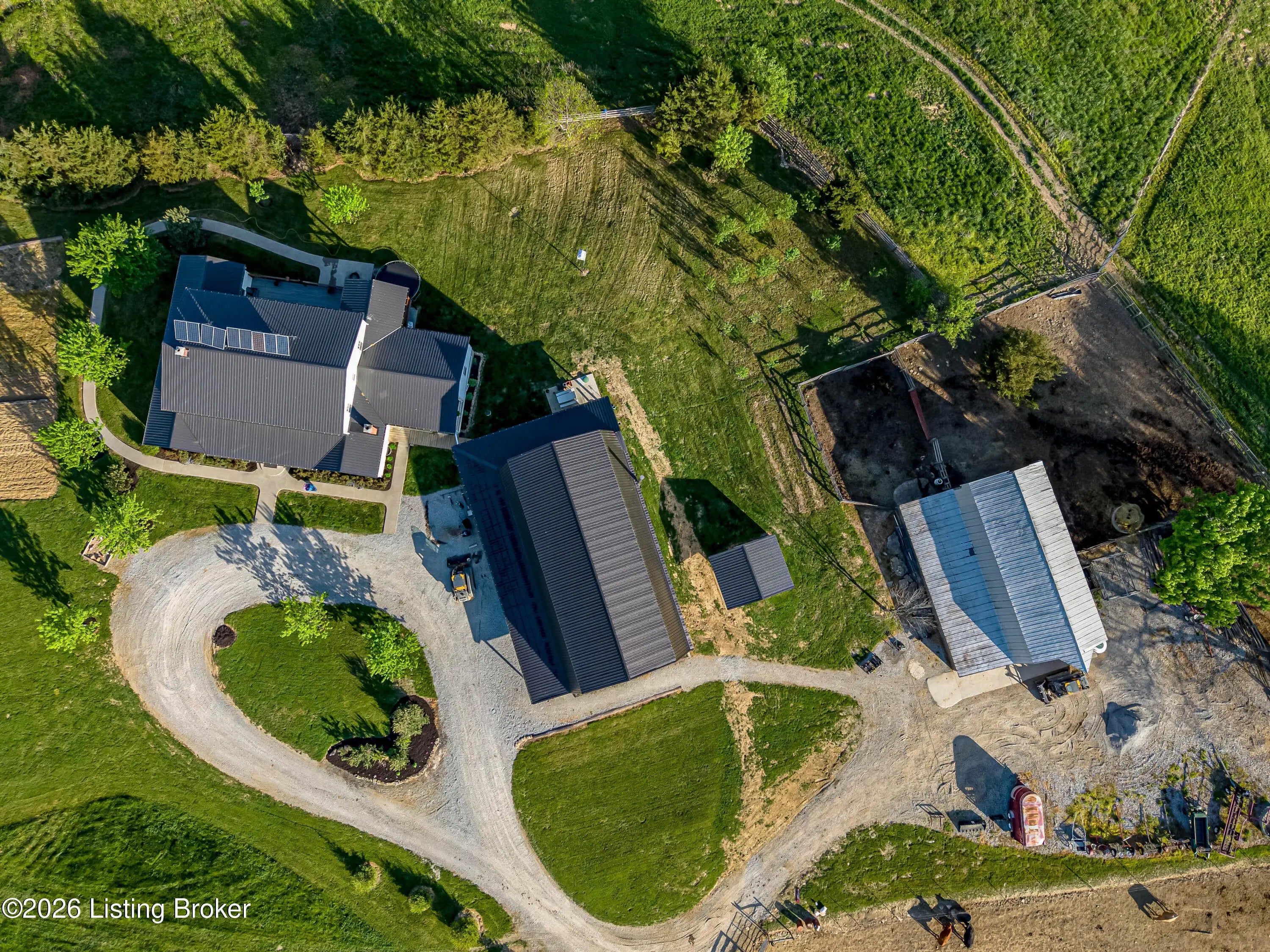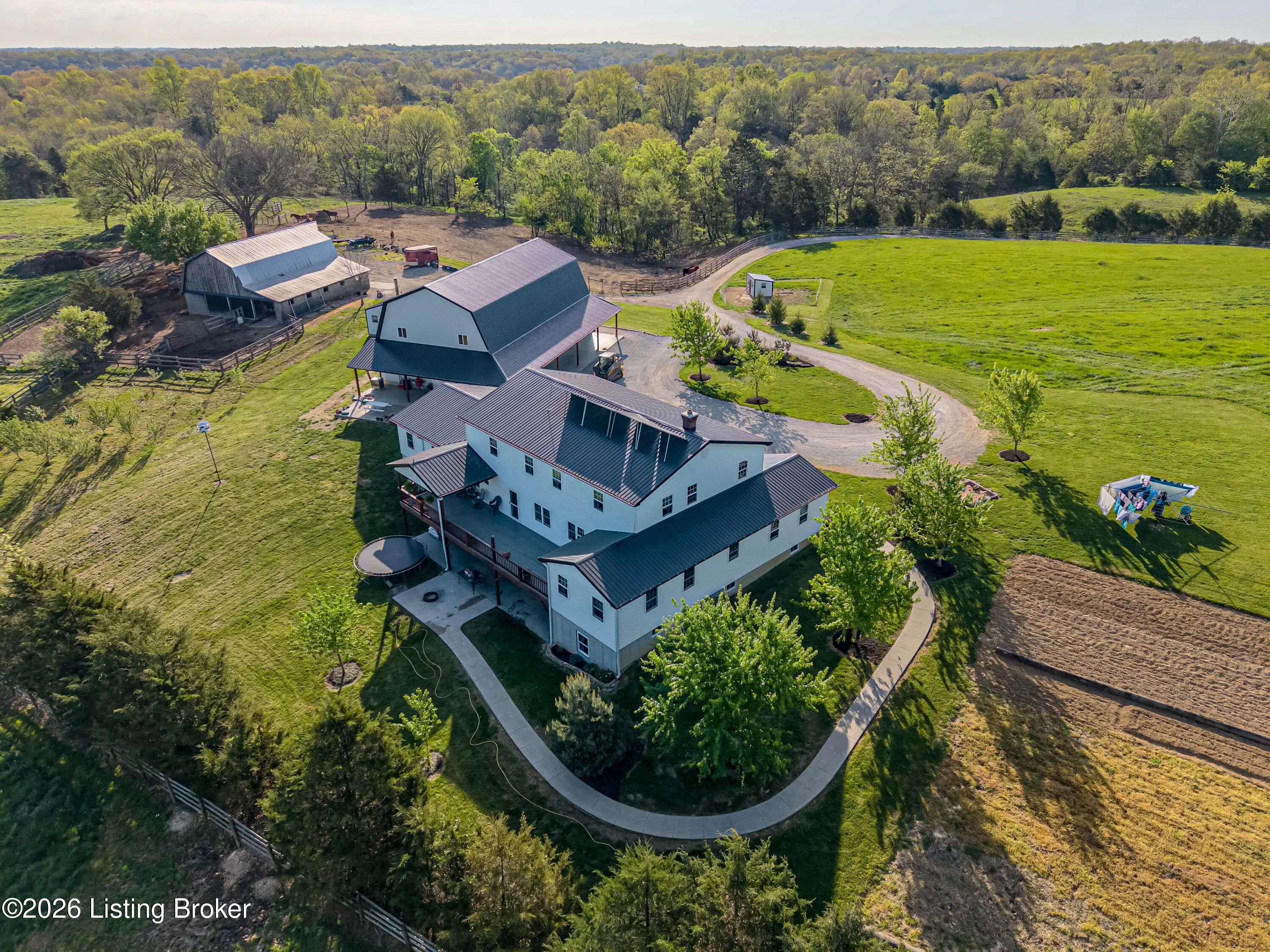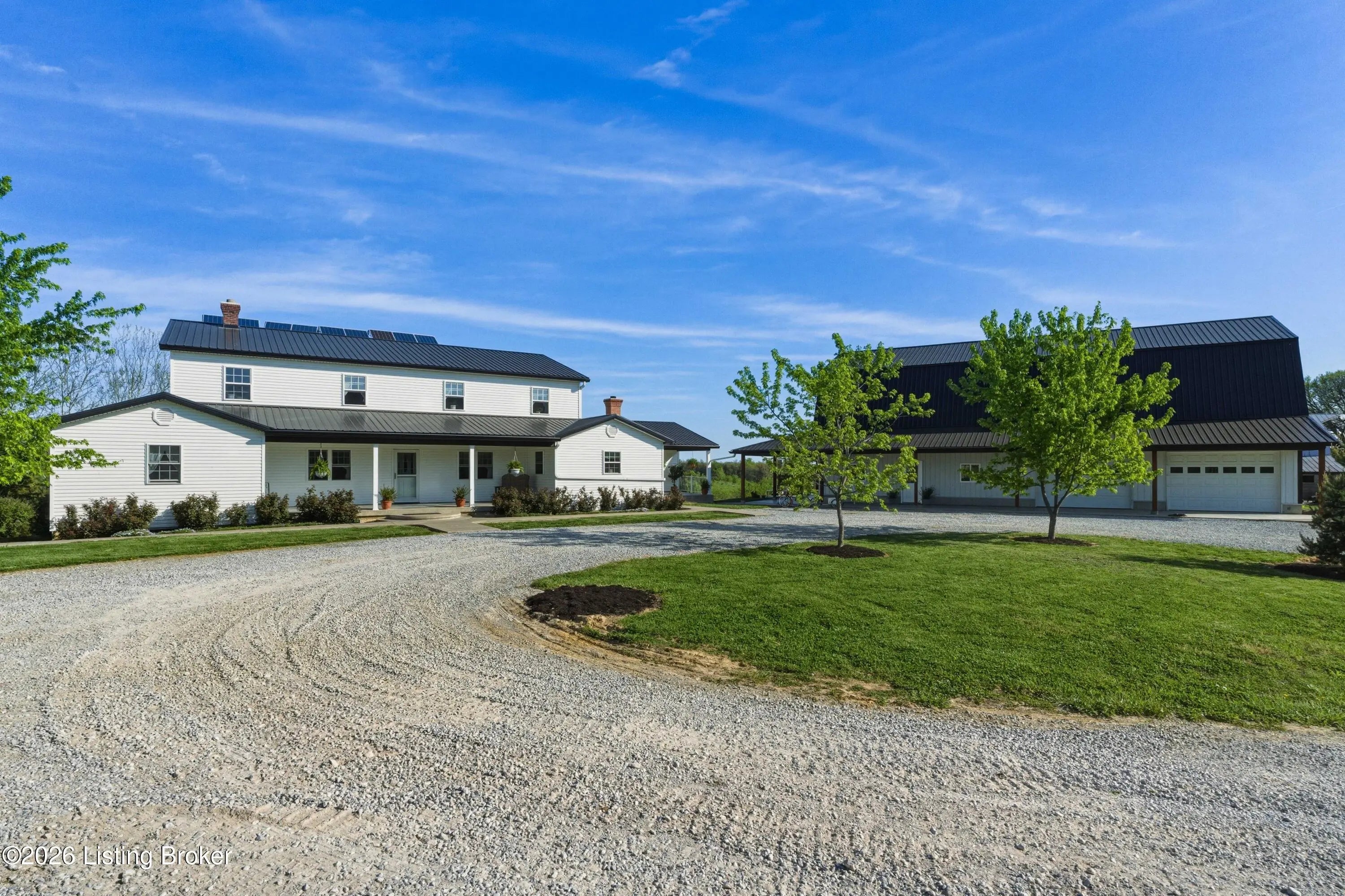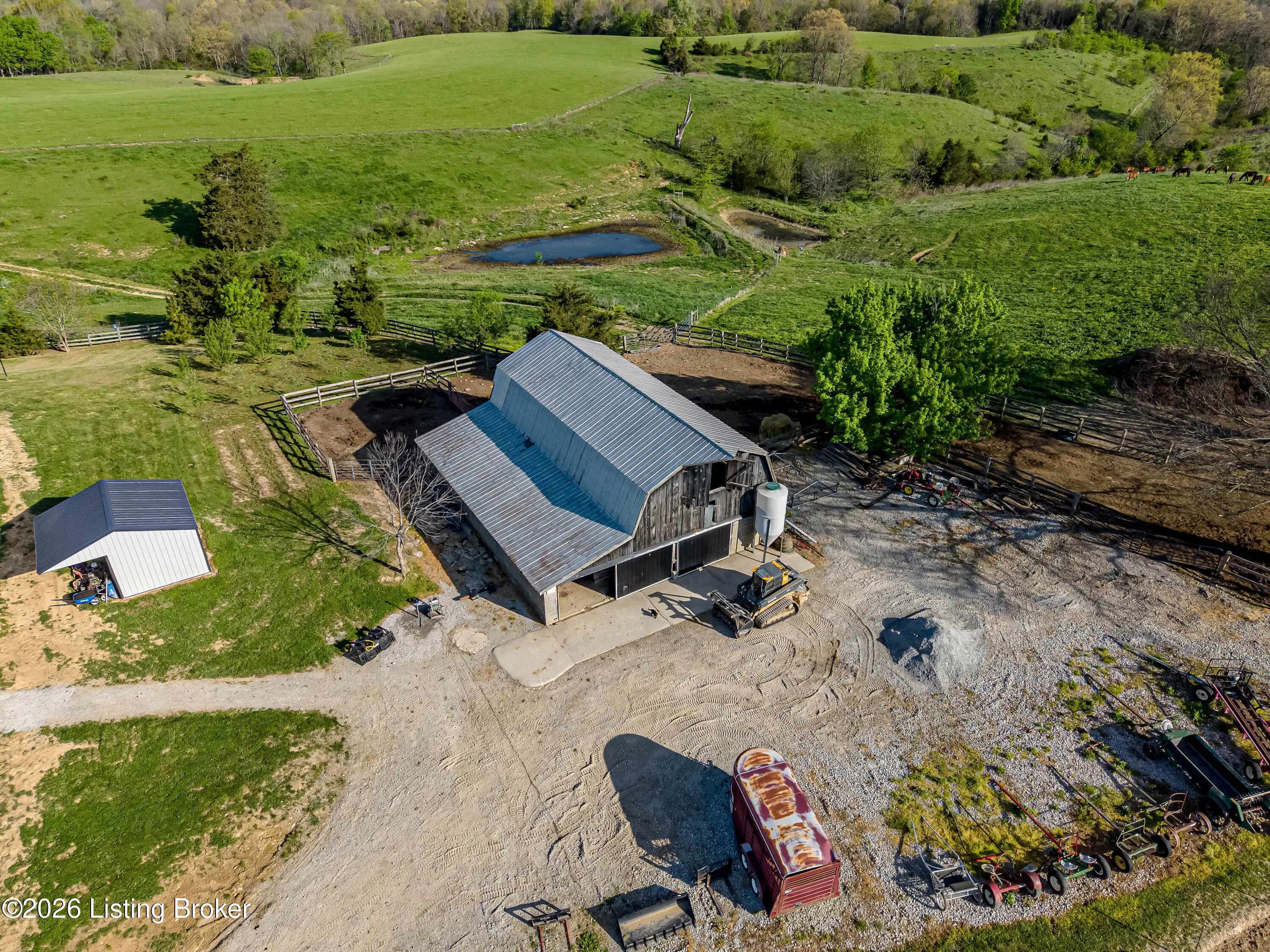 Discover the perfect blend of productivity, privacy, and self-sufficient living on this expansive 237-acre working farm in Henry County, fully surveyed in 2018. Designed for both agricultural use and recreation, the property features multiple fenced pastures ideal for cattle, horses, or hay production, along with approximately 90 acres of mature woodland offering excellent hunting and outdoor opportunities. The main residence, built in 2018 by skilled Amish craftsmen, showcases quality construction and a back-to-basics lifestyle without traditional electrical wiring. The home is thoughtfully equipped with modern essentials including county water, plumbing, septic system, a cistern, solar-powered appliances, a wood-burning hot water heater, and a wood stove for heat. With 9 bedrooms, 3 full bathrooms, over 4,400 square feet above grade, and an additional 2,880 square feet in a walkout basement, there is ample space for large families, multi-generational living, or homesteading needs. Complementing the home is a substantial 36' x 64' insulated two-story garage (also built in 2018) featuring a partially wraparound porch. The upper level offers excellent potential to be finished into additional living quarters, guest space, or rental opportunity. A second home near the road provides even more flexibility, offering 1,232 square feet above ground plus a full basement—ideal for extended family, farm help, or income-producing use. The farm is well-equipped with four additional barns, multiple ponds, and natural water sources including creeks along two boundaries. Currently supporting cattle, horses, hay production, and recreational hunting, this property is ready to continue as a working farm or evolve into your dream rural retreat. Rarely does a property of this size, versatility, and character become available—don't miss this unique opportunity to own a truly special piece of Henry County countryside.