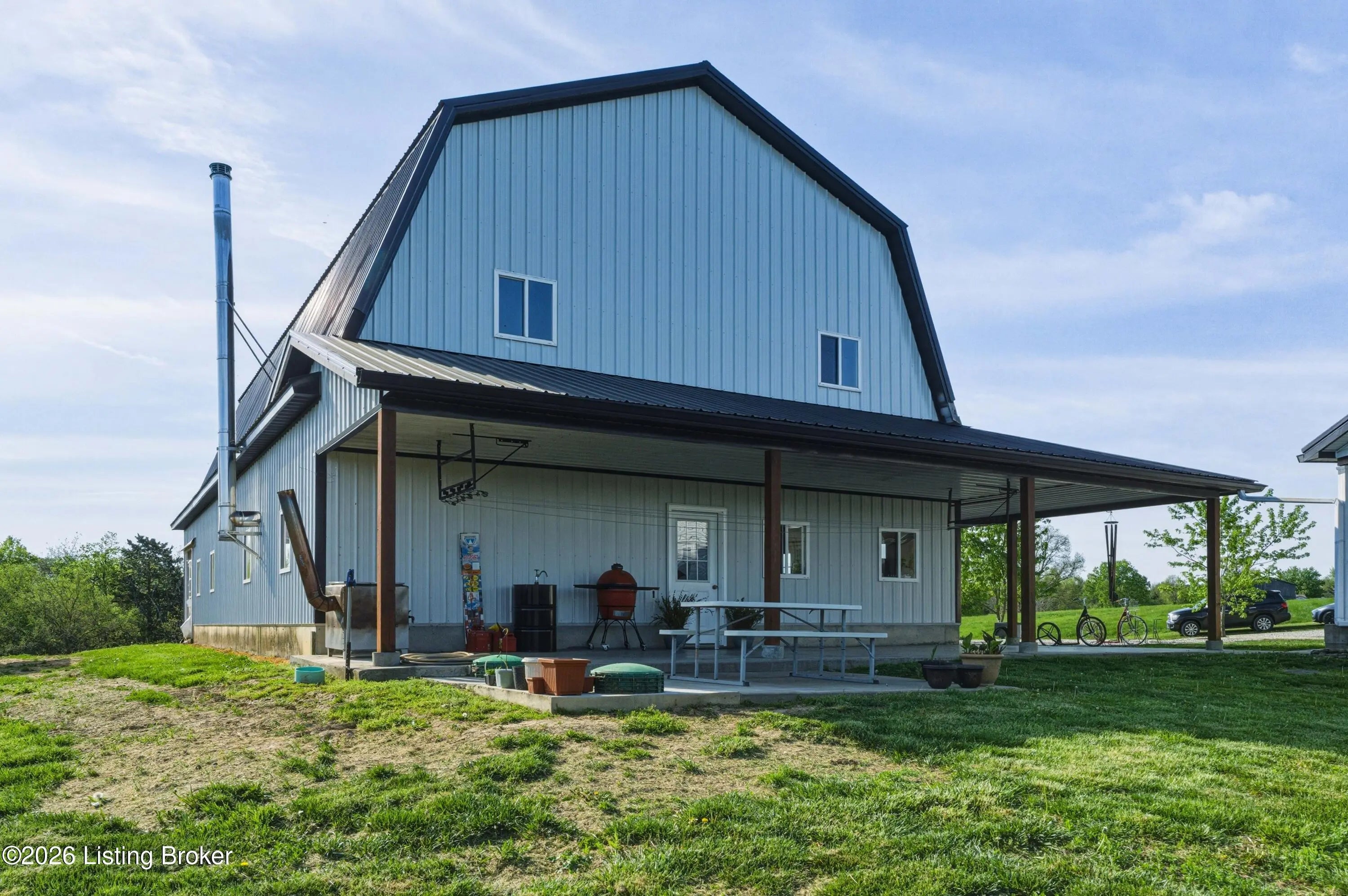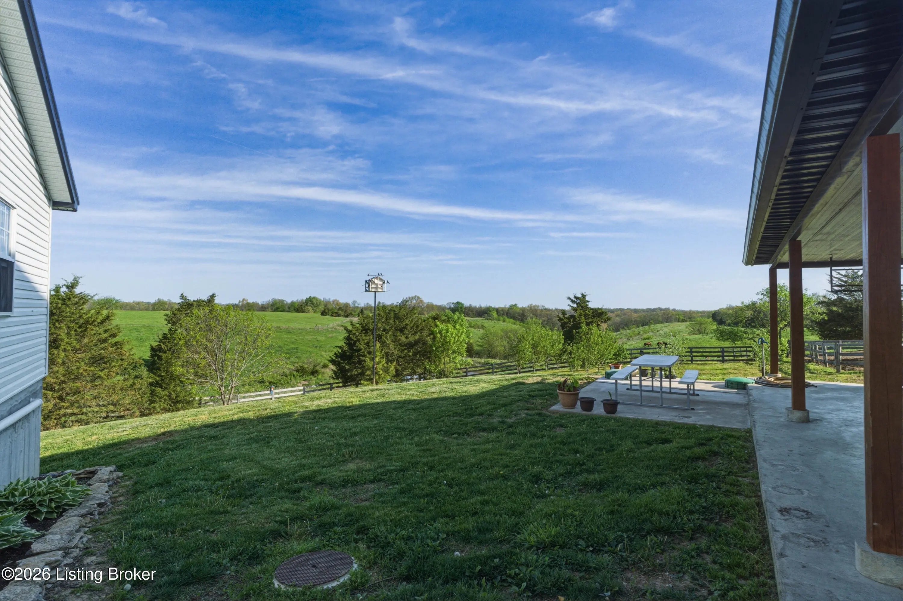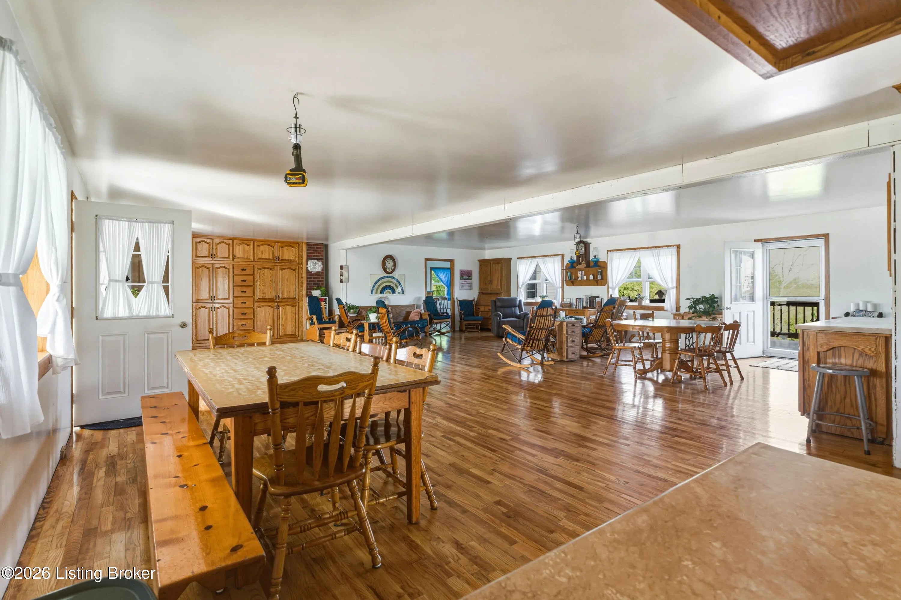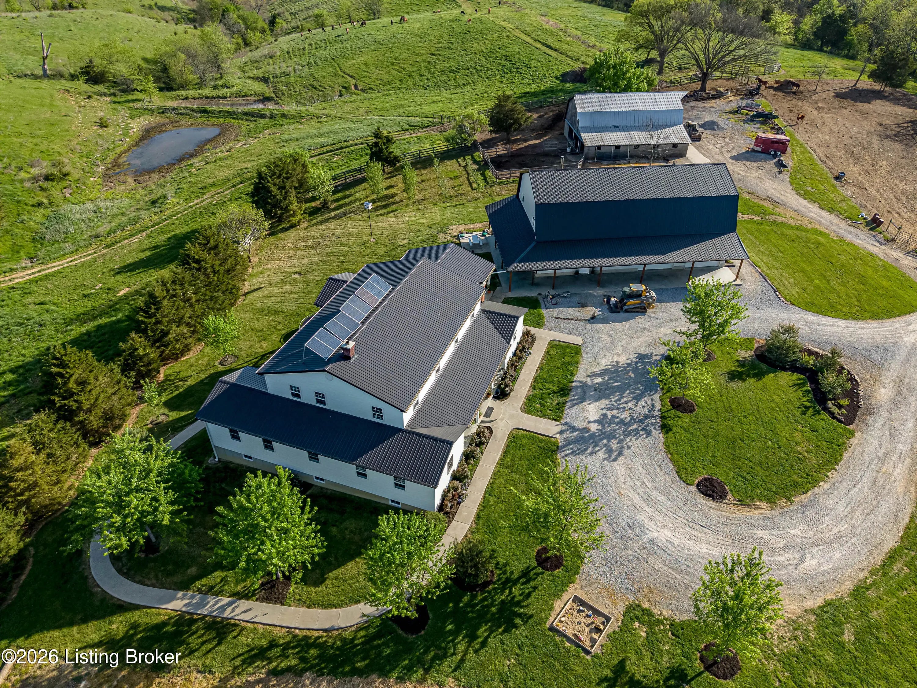 Discover the perfect blend of productivity, privacy, and self-sufficient living on this expansive 237-acre working farm in Henry County, fully surveyed in 2018. Designed for both agricultural use and recreation, the property features multiple fenced pastures ideal for cattle, horses, or hay production, along with approximately 90 acres of mature woodland offering excellent hunting and outdoor opportunities. The main residence, built in 2018 by skilled Amish craftsmen, showcases quality construction and a back-to-basics lifestyle without traditional electrical wiring. The home is thoughtfully equipped with modern essentials including county water, plumbing, septic system, a cistern, solar-powered appliances, a wood-burning hot water heater, and a wood stove for heat. With 9 bedrooms, 3 full bathrooms, over 4,400 square feet above grade, and an additional 2,880 square feet in a walkout basement, there is ample space for large families, multi-generational living, or homesteading needs. Complementing the home is a substantial 36' x 64' insulated two-story garage (also built in 2018) featuring a partially wraparound porch. The upper level offers excellent potential to be finished into additional living quarters, guest space, or rental opportunity. A second home near the road provides even more flexibility, offering 1,232 square feet above ground plus a full basement—ideal for extended family, farm help, or income-producing use. The farm is well-equipped with four additional barns, multiple ponds, and natural water sources including creeks along two boundaries. Currently supporting cattle, horses, hay production, and recreational hunting, this property is ready to continue as a working farm or evolve into your dream rural retreat. Rarely does a property of this size, versatility, and character become available—don't miss this unique opportunity to own a truly special piece of Henry County countryside.