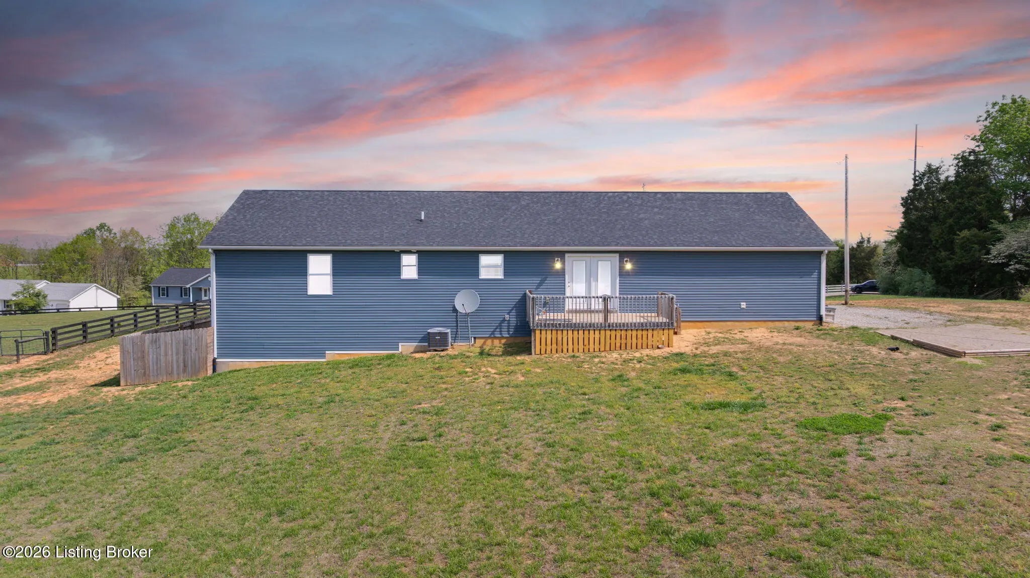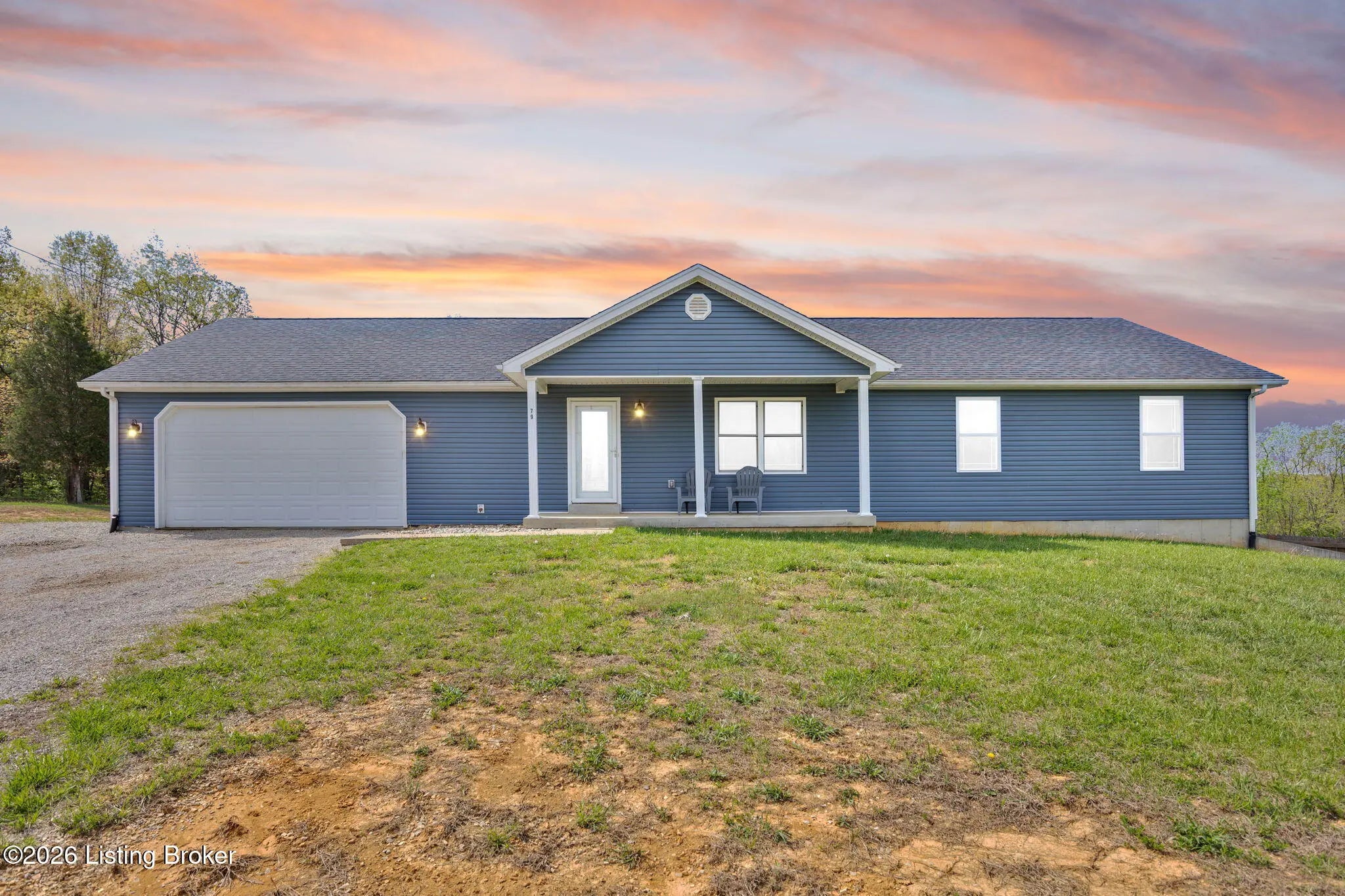Beautiful ranch-style home located on Valentine Ct, offering 3 spacious bedrooms and 2 full bathrooms, all set on a generous 1.21-acre lot. This home features an open-concept floor plan where the kitchen, dining area, and living room flow seamlessly perfect for everyday living and entertaining. The primary suite includes a private full bath, and all bedrooms offer walk-in closets for ample storage. Enjoy peaceful evenings watching stunning sunsets from the welcoming front porch or back deck. The full unfinished basement provides endless potential, with plumbing already in place and ready for the new owner's dream bathroom and future expansion. A perfect blend of comfort, space, and opportunity!