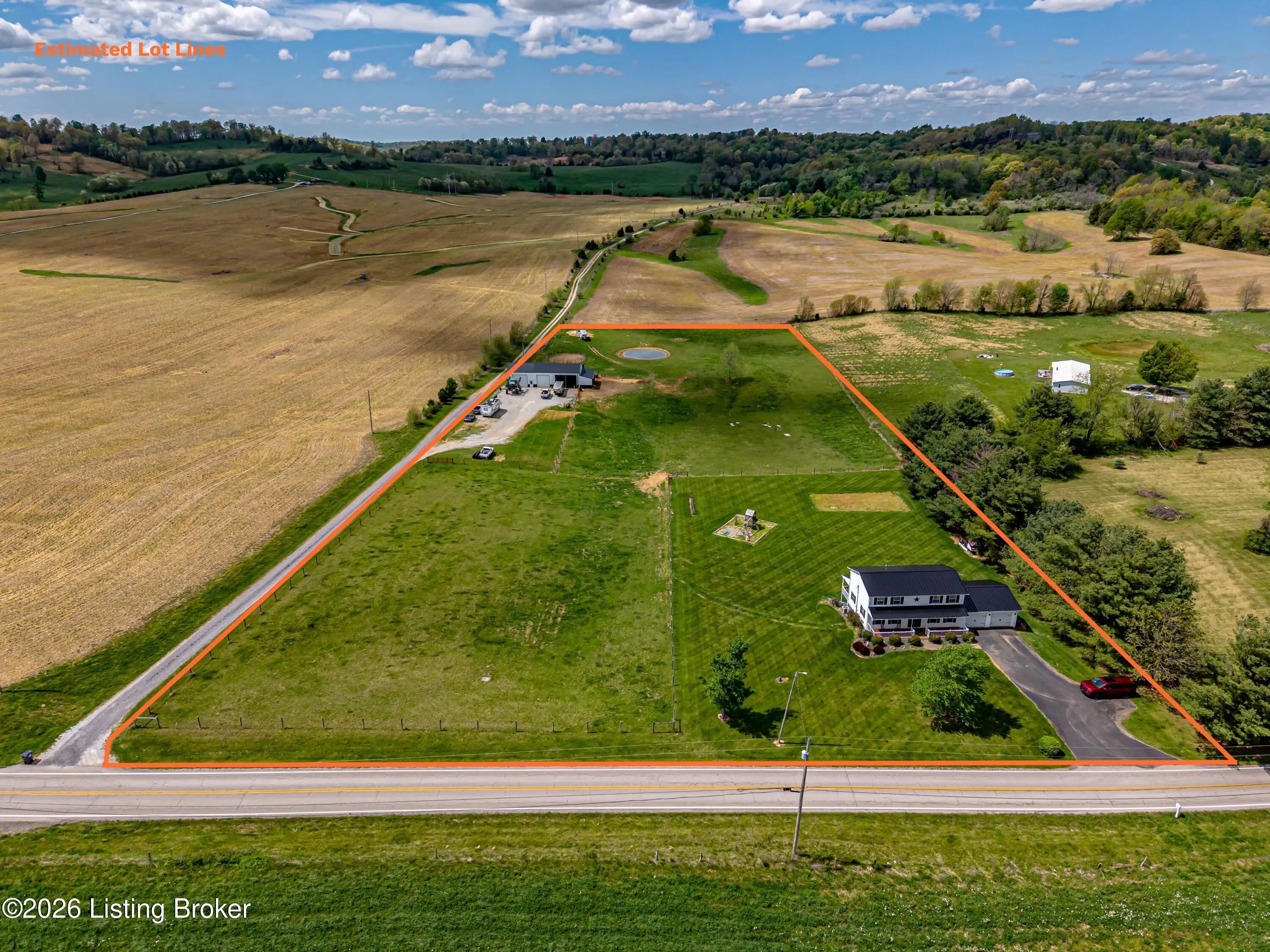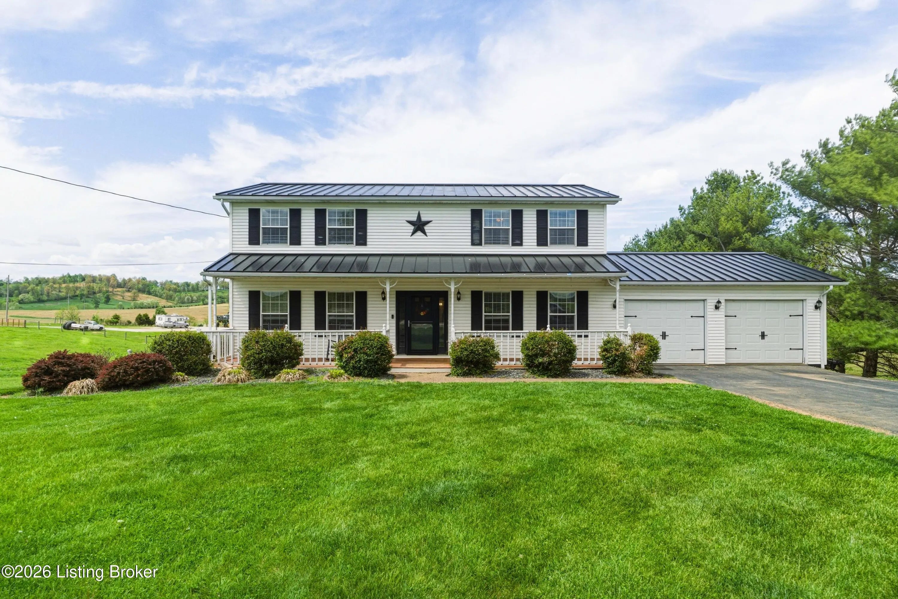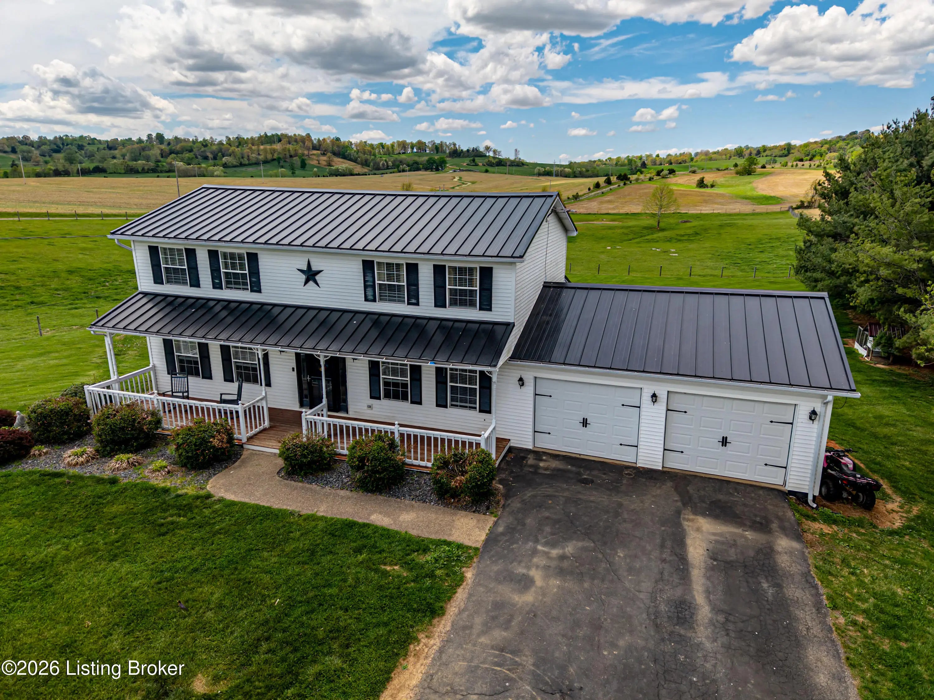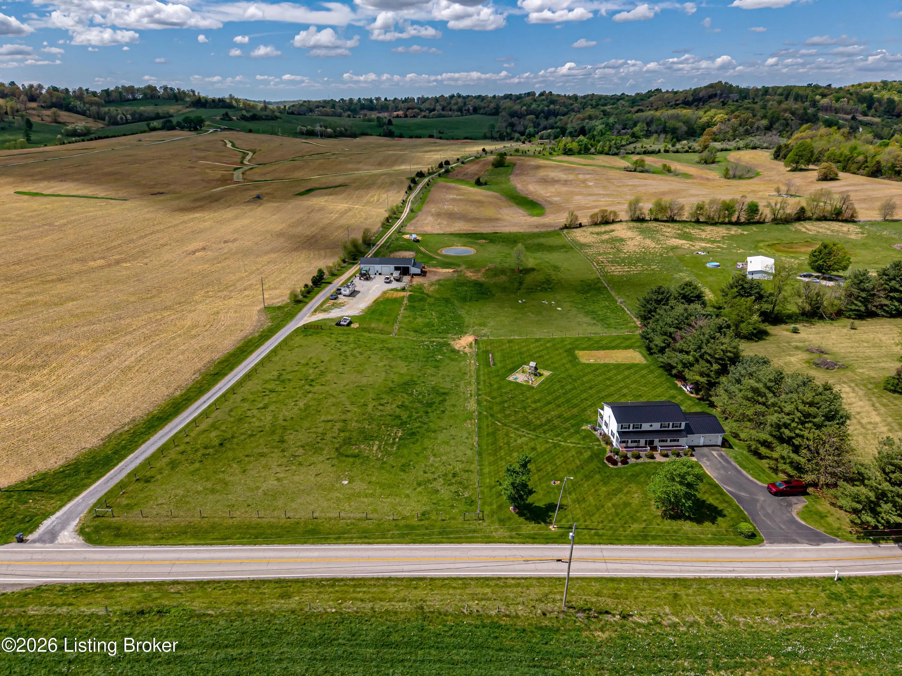 Metal roof 2025 • 6.2 acres • detached shop with 2 bays • fenced pasture with water • full walkout basement • covered front and back porches • 18 minutes to Fort Knox Set on approximately 6.2 acres, 1970 Stith Valley Rd in Guston offers a flexible layout, usable land, and a detached shop setup that supports a wide range of rural and outdoor needs. This 4-bedroom, 3-bath home includes a spacious primary bedroom with three closets, two additional bedrooms upstairs, a separate play area upstairs, and a fourth bedroom in the full walkout basement. The main floor includes a formal dining area, living area, eat-in kitchen with generous counter space, a full bath, and laundry on the main floor for everyday convenience. Interior finishes include real hardwood flooring in parts of the home, carpet on the main floor, tile in the kitchen, tile in the basement, butcher block countertops in the basement, and a bar area that adds extra function to the lower level. The walkout basement also includes a full bath and direct access to the patio. Outdoor features add to the versatility of the property, including covered front and back porches, a blacktop driveway, well water, and an attached 2-car garage. The metal roof was installed in 2025. A detached shop expands the property's utility with two 15-foot garage door bays, a half bath, loft storage, separate 200-amp electric service, and ample power available for equipment, storage, or workshop use. The additional barn and livestock shelter space, along with fenced pastures that have water access, make the land well-suited for animals, agricultural use, equipment storage, hobby farming, and other outdoor uses. The location adds convenience to the property's acreage and utility, with Brandenburg about 12 minutes away, Fort Knox about 18 minutes away, and Louisville Muhammad Ali International Airport about 45 minutes away. Nearby school options shown online include Flaherty Elementary School, Stuart Pepper Middle School, and Meade County High School, all within the Meade County School District.