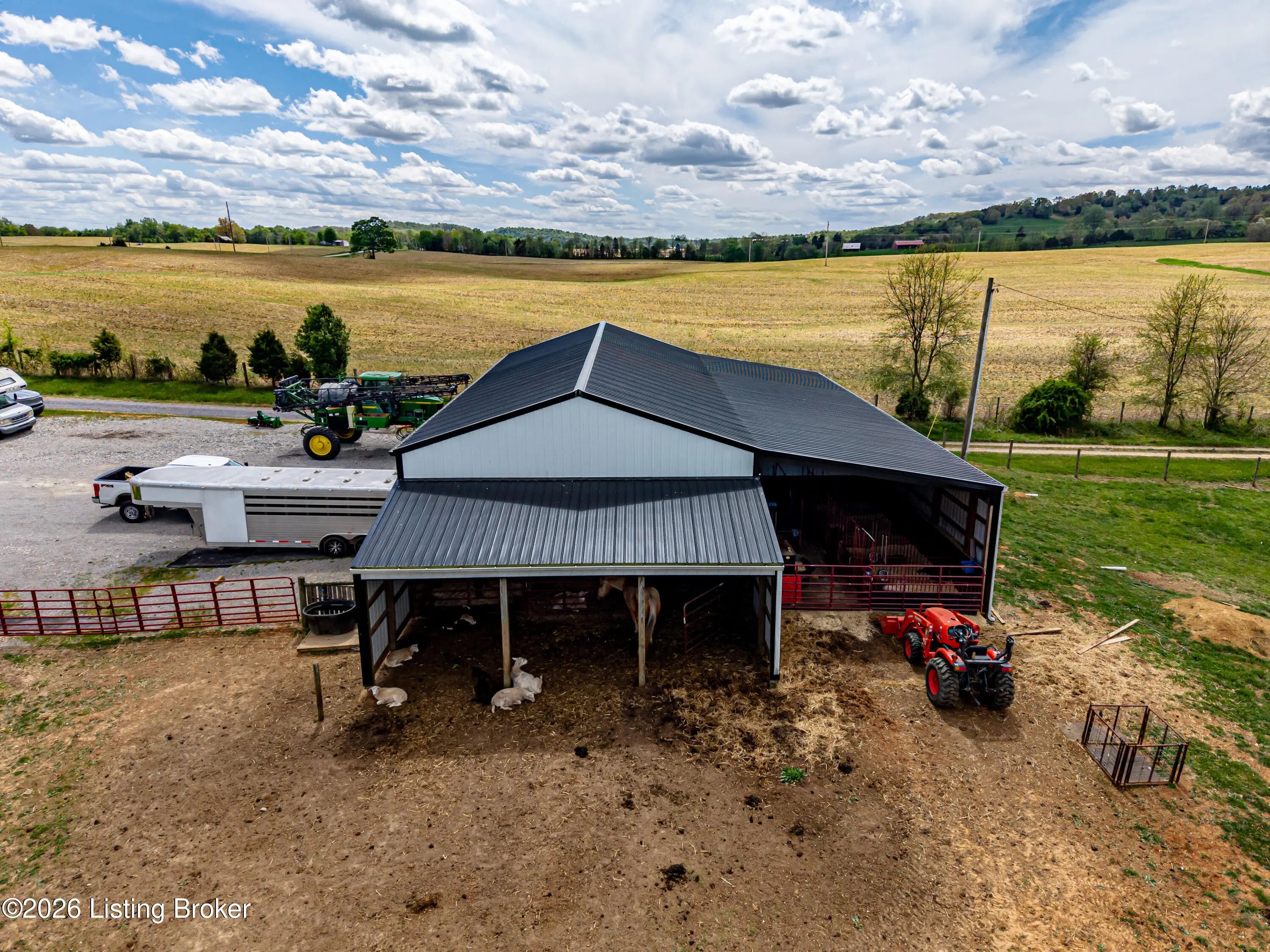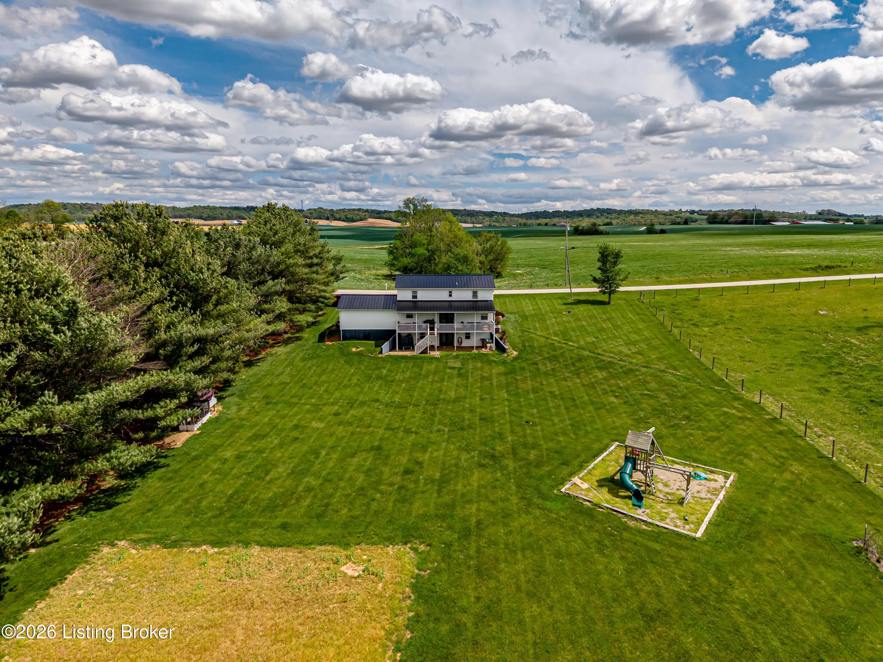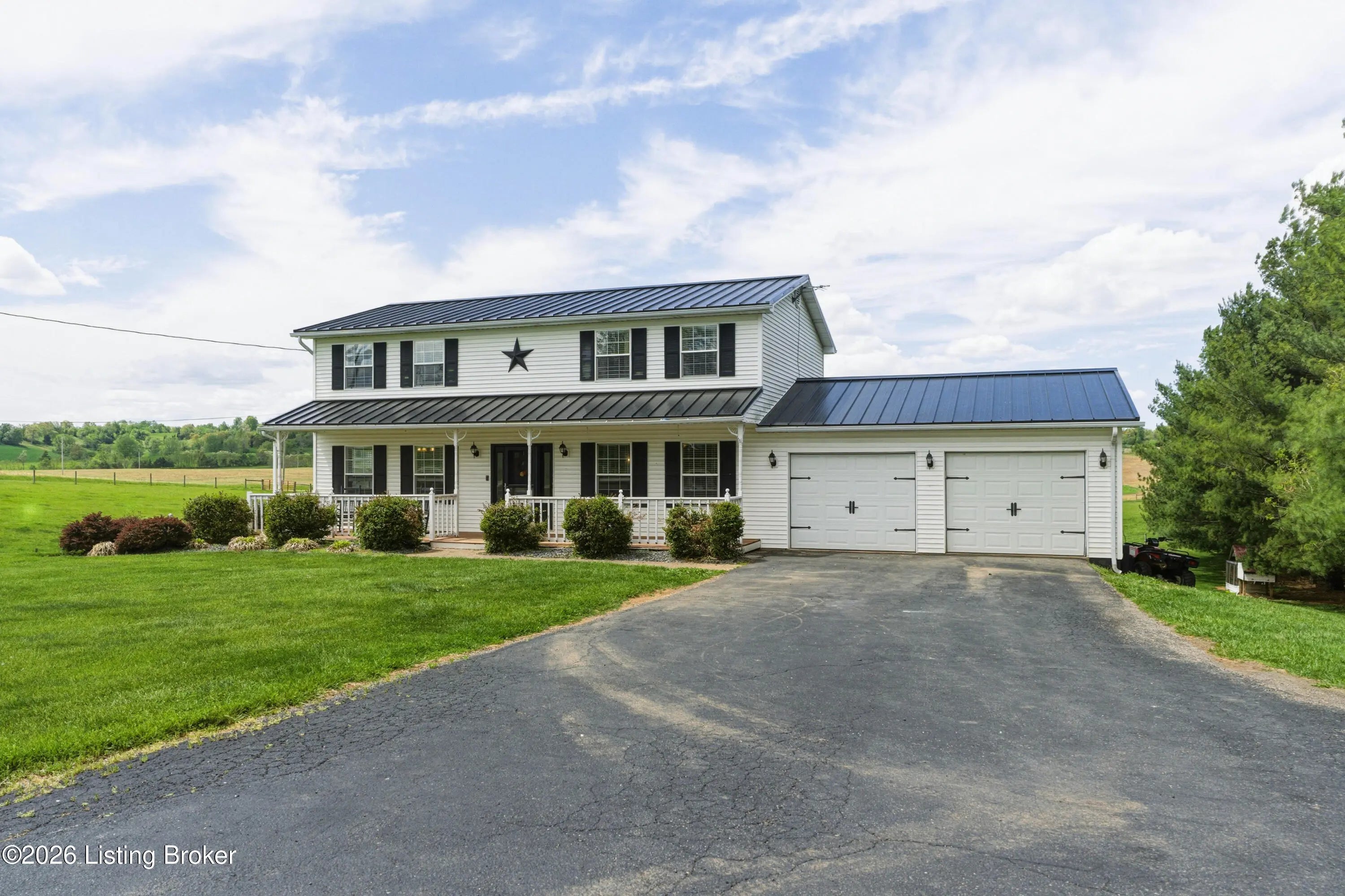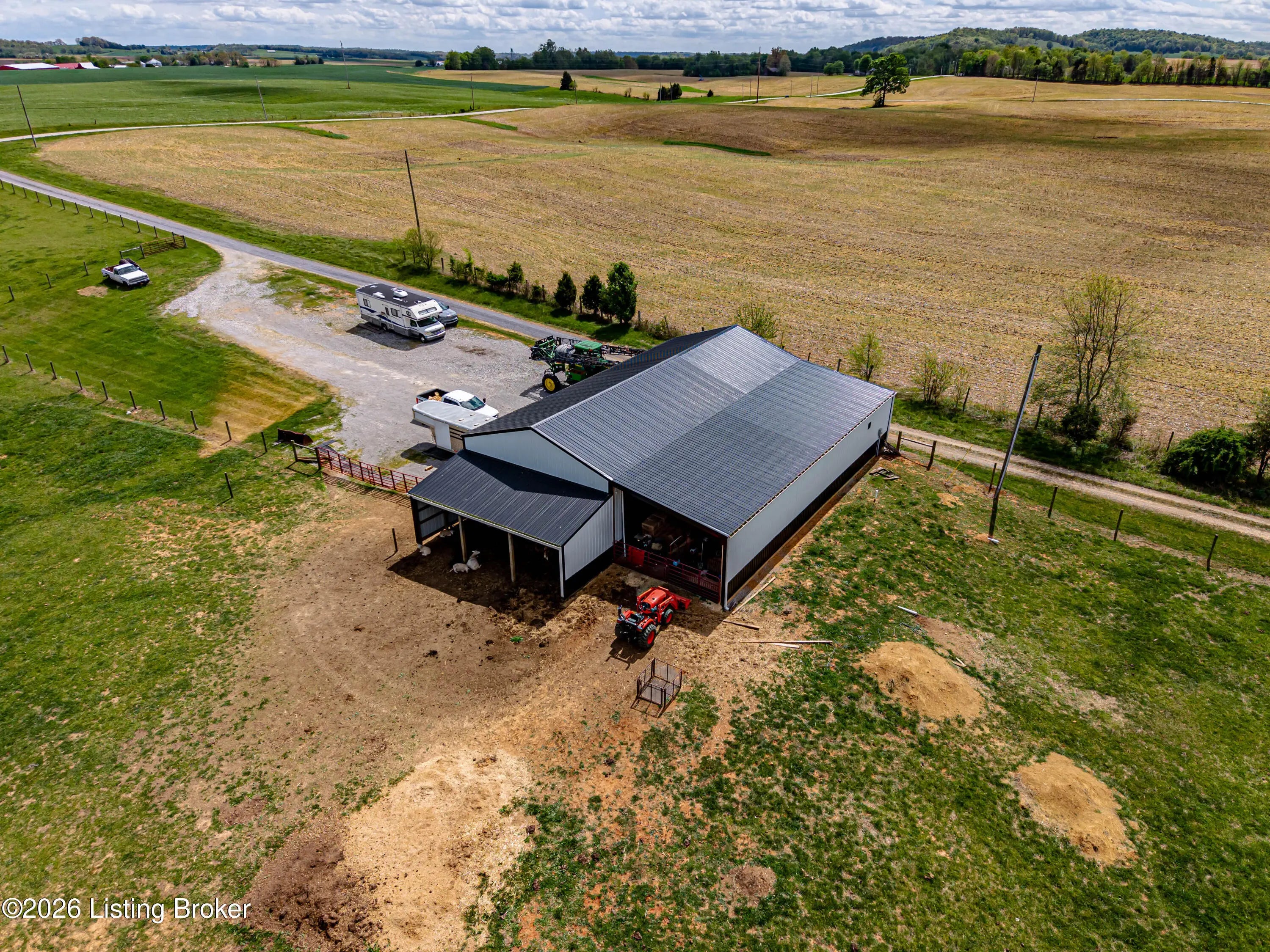 Metal roof 2025 • 6.2 acres • detached shop with 2 bays • fenced pasture with water • full walkout basement • covered front and back porches • 18 minutes to Fort Knox Set on approximately 6.2 acres, 1970 Stith Valley Rd in Guston offers a flexible layout, usable land, and a detached shop setup that supports a wide range of rural and outdoor needs. This 4-bedroom, 3-bath home includes a spacious primary bedroom with three closets, two additional bedrooms upstairs, a separate play area upstairs, and a fourth bedroom in the full walkout basement. The main floor includes a formal dining area, living area, eat-in kitchen with generous counter space, a full bath, and laundry on the main floor for everyday convenience. Interior finishes include real hardwood flooring in parts of the home, carpet on the main floor, tile in the kitchen, tile in the basement, butcher block countertops in the basement, and a bar area that adds extra function to the lower level. The walkout basement also includes a full bath and direct access to the patio. Outdoor features add to the versatility of the property, including covered front and back porches, a blacktop driveway, well water, and an attached 2-car garage. The metal roof was installed in 2025. A detached shop expands the property's utility with two 15-foot garage door bays, a half bath, loft storage, separate 200-amp electric service, and ample power available for equipment, storage, or workshop use. The additional barn and livestock shelter space, along with fenced pastures that have water access, make the land well-suited for animals, agricultural use, equipment storage, hobby farming, and other outdoor uses. The location adds convenience to the property's acreage and utility, with Brandenburg about 12 minutes away, Fort Knox about 18 minutes away, and Louisville Muhammad Ali International Airport about 45 minutes away. Nearby school options shown online include Flaherty Elementary School, Stuart Pepper Middle School, and Meade County High School, all within the Meade County School District.