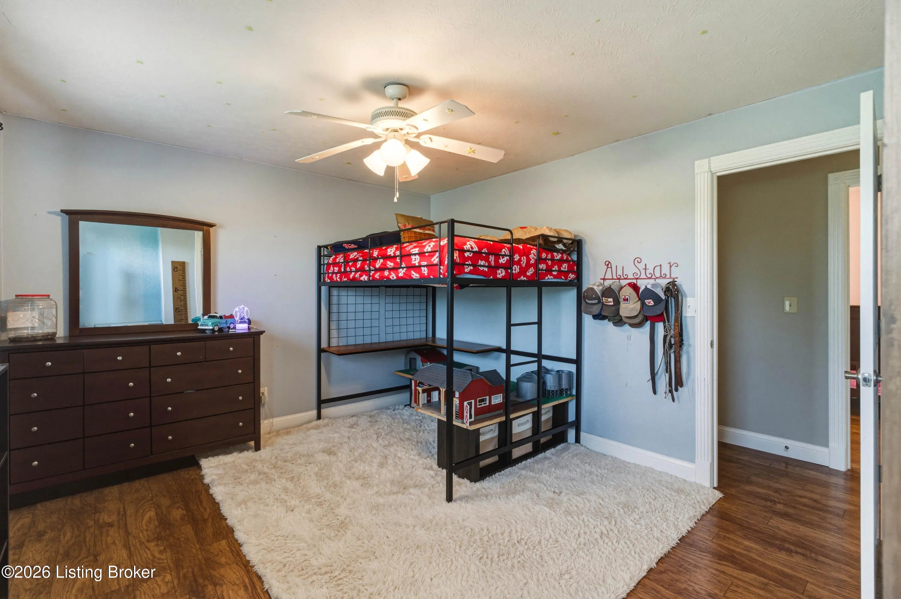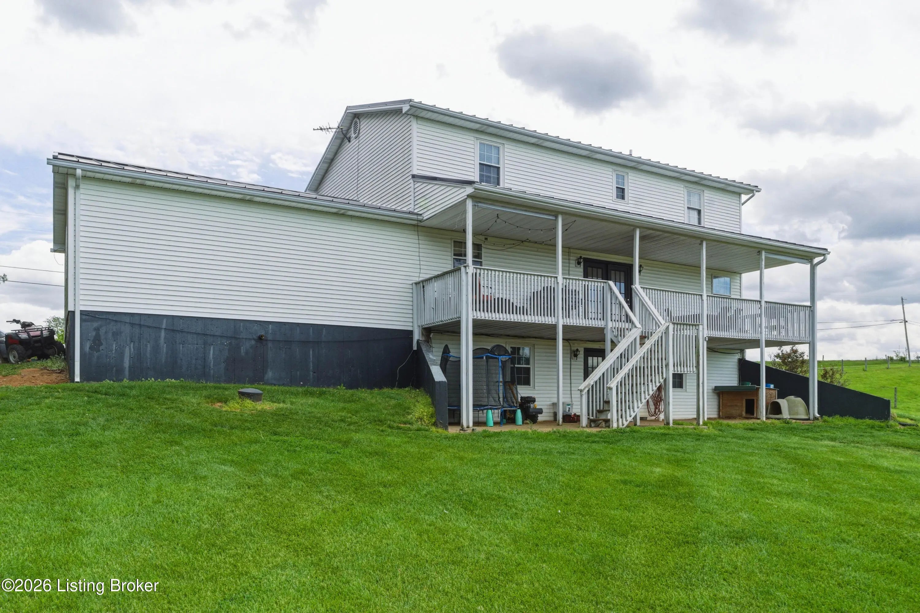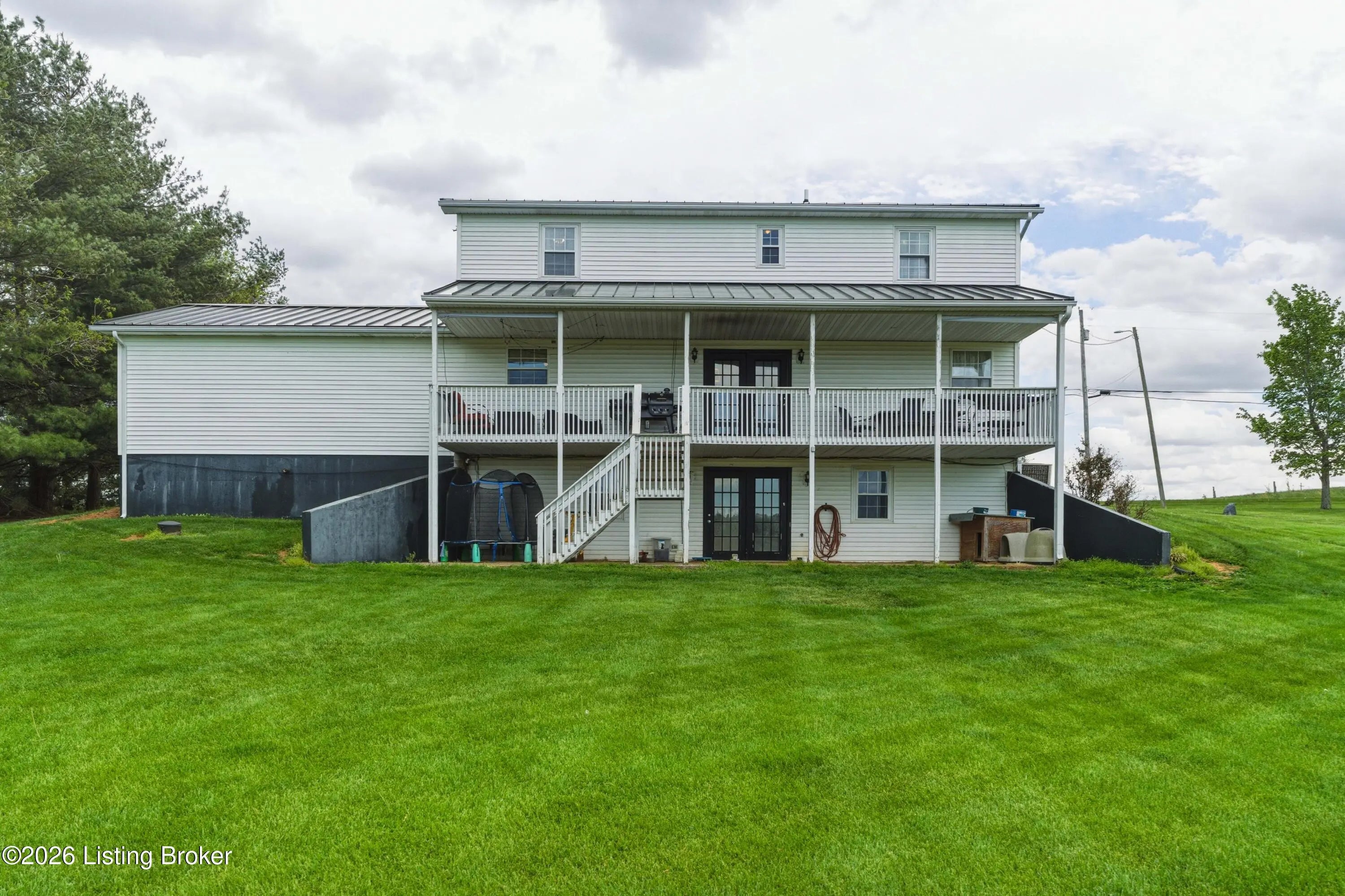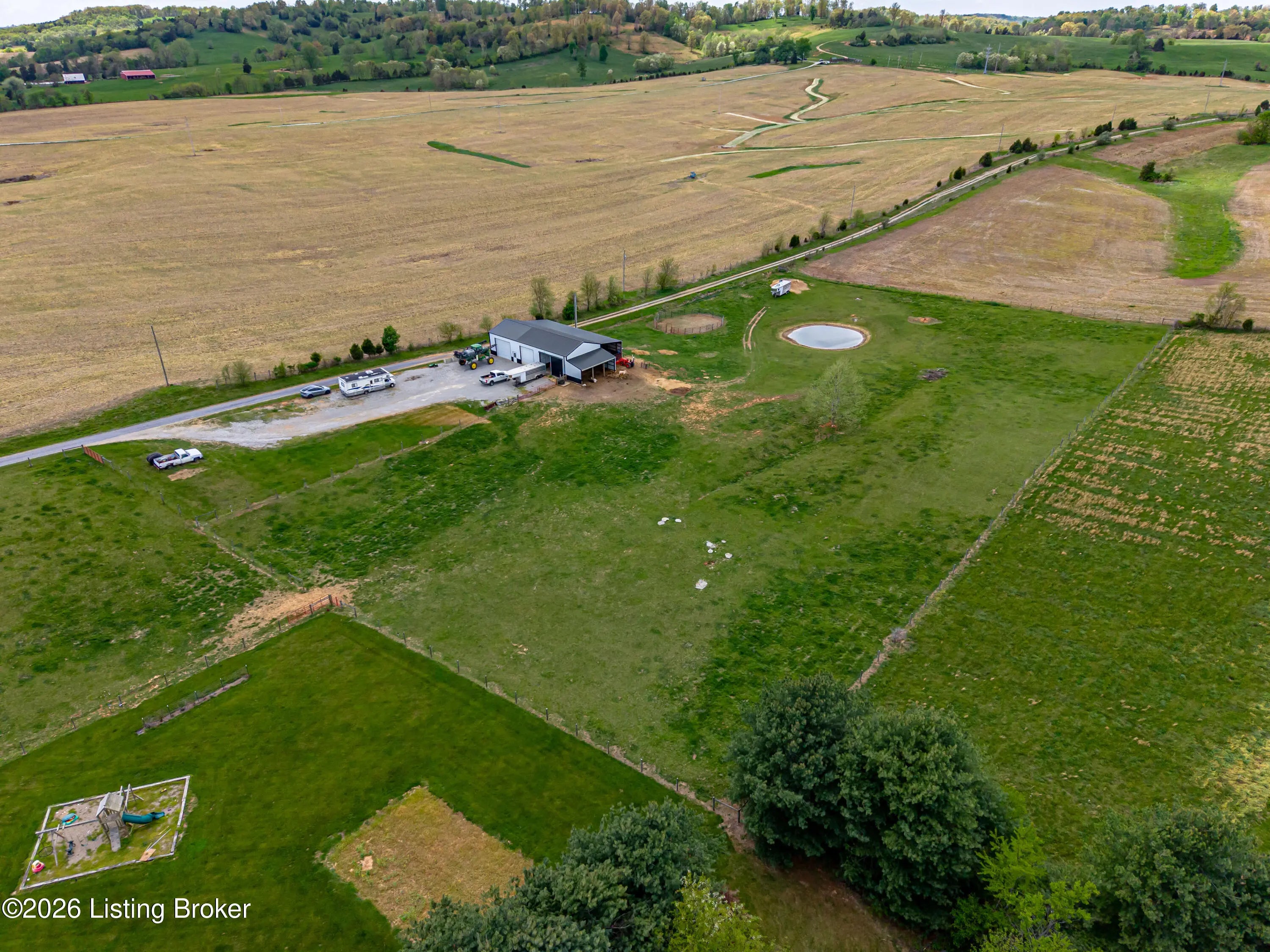 Metal roof 2025 • 6.2 acres • detached shop with 2 bays • fenced pasture with water • full walkout basement • covered front and back porches • 18 minutes to Fort Knox Set on approximately 6.2 acres, 1970 Stith Valley Rd in Guston offers a flexible layout, usable land, and a detached shop setup that supports a wide range of rural and outdoor needs. This 4-bedroom, 3-bath home includes a spacious primary bedroom with three closets, two additional bedrooms upstairs, a separate play area upstairs, and a fourth bedroom in the full walkout basement. The main floor includes a formal dining area, living area, eat-in kitchen with generous counter space, a full bath, and laundry on the main floor for everyday convenience. Interior finishes include real hardwood flooring in parts of the home, carpet on the main floor, tile in the kitchen, tile in the basement, butcher block countertops in the basement, and a bar area that adds extra function to the lower level. The walkout basement also includes a full bath and direct access to the patio. Outdoor features add to the versatility of the property, including covered front and back porches, a blacktop driveway, well water, and an attached 2-car garage. The metal roof was installed in 2025. A detached shop expands the property's utility with two 15-foot garage door bays, a half bath, loft storage, separate 200-amp electric service, and ample power available for equipment, storage, or workshop use. The additional barn and livestock shelter space, along with fenced pastures that have water access, make the land well-suited for animals, agricultural use, equipment storage, hobby farming, and other outdoor uses. The location adds convenience to the property's acreage and utility, with Brandenburg about 12 minutes away, Fort Knox about 18 minutes away, and Louisville Muhammad Ali International Airport about 45 minutes away. Nearby school options shown online include Flaherty Elementary School, Stuart Pepper Middle School, and Meade County High School, all within the Meade County School District.