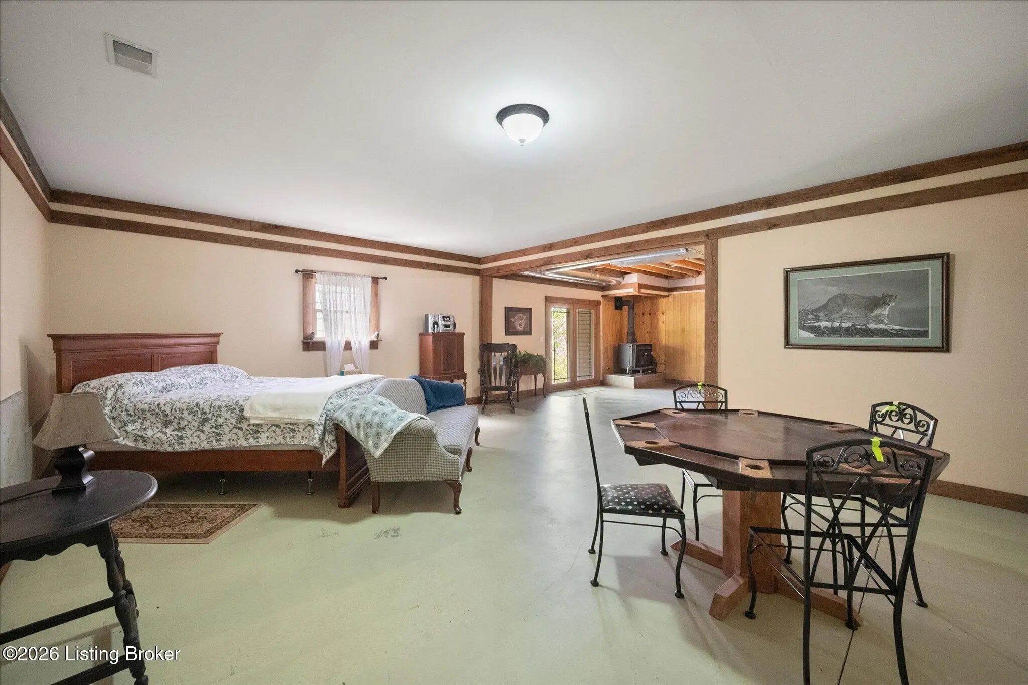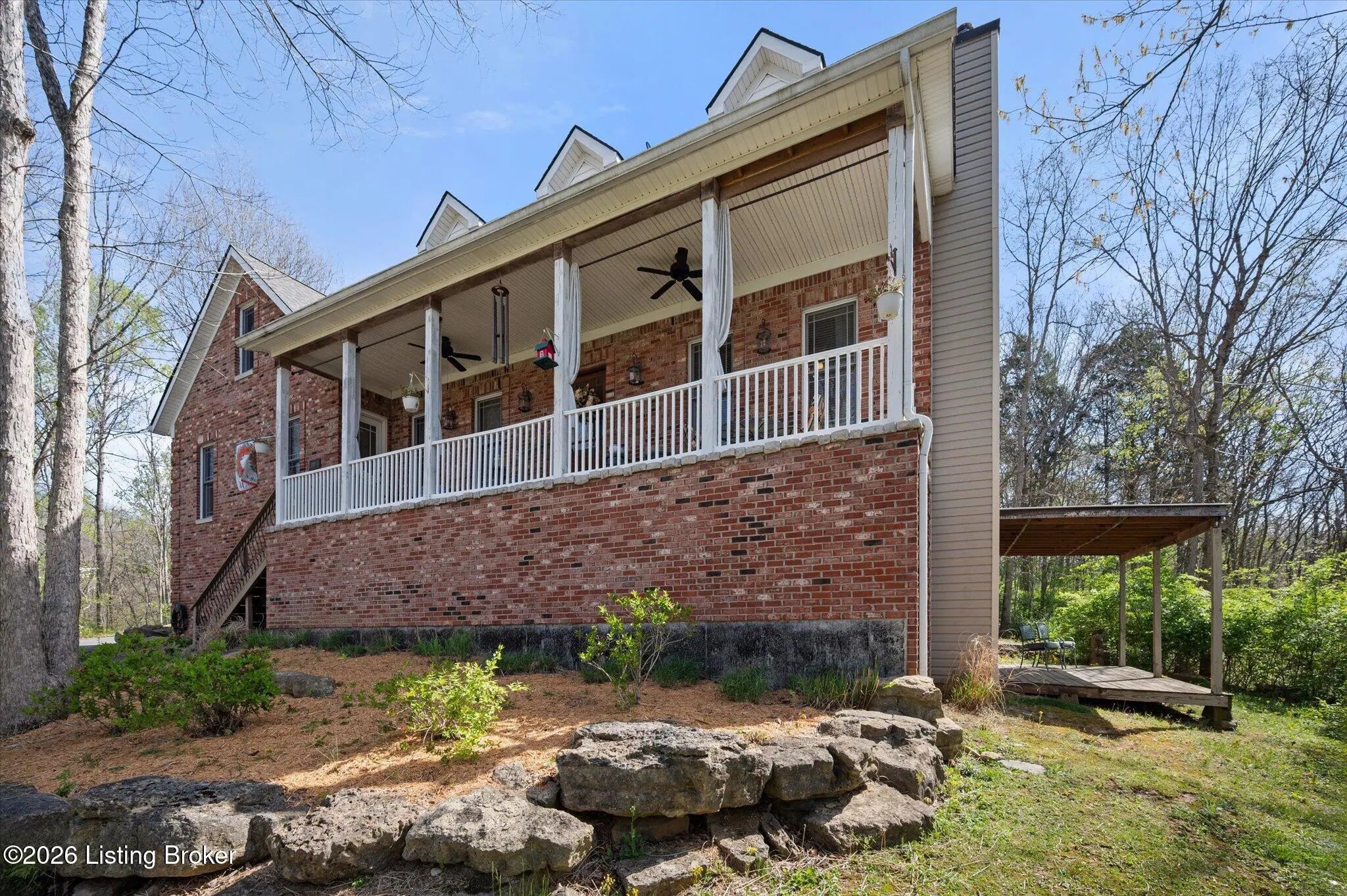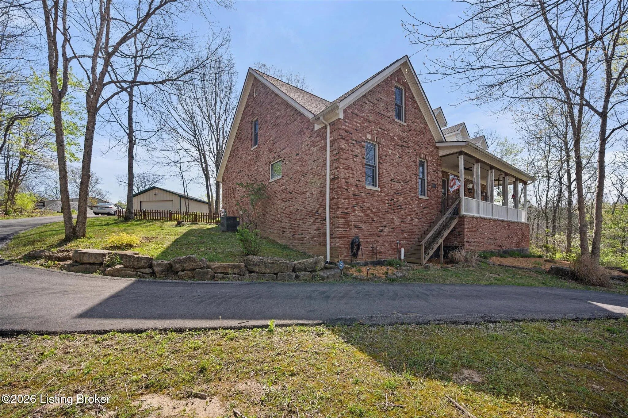 Wow - A thoughtful floorplan, open space, beautiful scenery, so much to love about this move-in ready home on almost 3 acres! Picturesque lot, wooded, nature lovers will enjoy all the surrounding woods. Greeted by a wonderful front porch, enjoying the perfect weather is easy at any time of day. As you park at the detached garage or the lean-to with additional covered parking and storage for outdoor equipment, you head to the back deck and enter the beautiful living room. Brazilian Cherry Flooring through the living room and kitchen. The kitchen offers Cherry cabinetry, and appliances remain. Dining area at the Bay Window with a view of the backyard. Peek upstairs as the attic steps are off the kitchen. This attic could be finished - add another room, office, or play area. The foyer with coat closet and dining room is Travertine tile, an elegant space. The Primary bedroom has lots of room, an en-suite bathroom, a separate shower, a tub, and a 14x14 walk-in closet everyone dreams of! The split bedroom floor plan leads you down the hall to an amazing laundry room with storage space and access to the front porch. Two additional bedrooms and a hall bathroom complete the first floor. Now downstairs in the basement, you will appreciate the tall ceiling, large recreational room, kitchenette area, full bathroom, possible 4th bedroom, wood-burning stove, and covered deck. Do not miss the HUGE storage room and another large utility room too. Call to see this one in person, you will love the floorplan and spacious rooms! Please do not drive up driveway without an appointment.