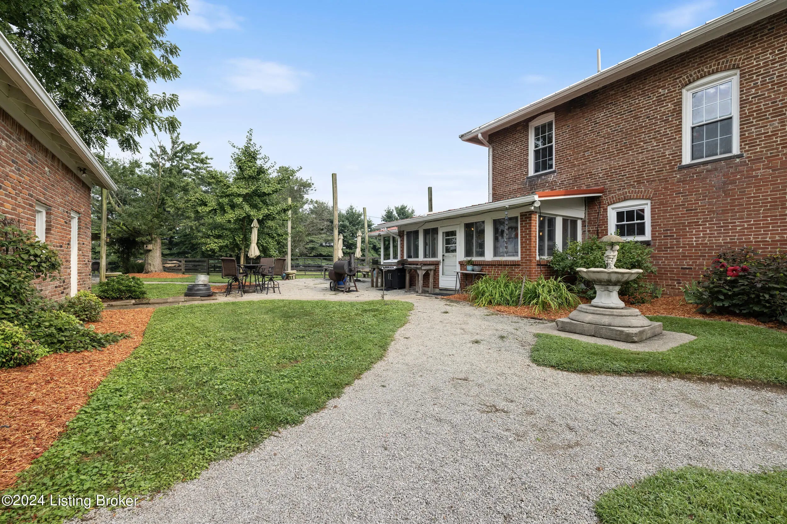 Welcome to 575 Moody Pike where Southern charm meets historic beauty. Conveniently located less than 10 minutes from quaint downtown Shelbyville, this 13.46 +/- acre one-of-a-kind equestrian estate has been featured in Southern Living Magazine, Bourbon Barrel Retreats, USA Today, the Lane Report and more! The enchanting tree-lined drive leads to the stately 2 story brick home (circa 1860). Inside, enjoy refinished and original hardwood floor, beautiful millwork, an upgraded eat-in kitchen with granite countertops, custom cabinetry, upgraded appliances as well as an additional fabulous prep kitchen/butler's pantry. Gorgeous views are plentiful on this property. Retreat to the shaded gazebo adorned with grape vines for a cup of tea or coffee or relax by the bubbling lily pond from the comfort of a front porch rocking chair. Watch the sunrise from the all-season wrap around porch and sunsets through the pines from the well-appointed sunroom. Enjoy up to four fireplaces to create that special ambiance for the holidays or cooler months. Efficient geothermal heating and cooling keep the home comfortable all year round. This notable property has a huge historic 12+ stall concrete block and wooden barn that includes 2 foaling stalls, all fully renovated with rubber stall mats on top of an asphalt base and a loft that can easily accommodate 1000 square bales. A large heated and cooled tack room is complete with utility sink. The "milk room" next to the tack room provides ample storage options. Attached to the barn is extra covered storage that is large enough to protect several tractors, implements or round bales. This property also features three additional period-specific custom-built all-oak barns crafted by the Amish, complete with attached feed rooms equipped with electric access and concrete floors, plus storage! The first barn could easily house 4 stalls and is adorned with a stylish cupola wired for incredible nighttime aesthetics. The second barn could accommodate 2 stalls and has an attached feed room with a concrete floor and a large storage room and cupola. The third barn is big enough to house up to 6 small stalls or 3 large stalls plus run-in space and is next to an 80 x 190 ft. professionally installed riding arena with all-weather footing. Water and electric are run to all paddock areas, up to 15 paddocks of various sizes. Located in Bourbon country, this unique turnkey property is also income producing, whether as a Bed and Breakfast, wedding venue, derby/corporate events, retreats and/or Horse Boarding/Training/Breeding facility. The possibilities are endless. Or simply move in and enjoy this slice of heaven!