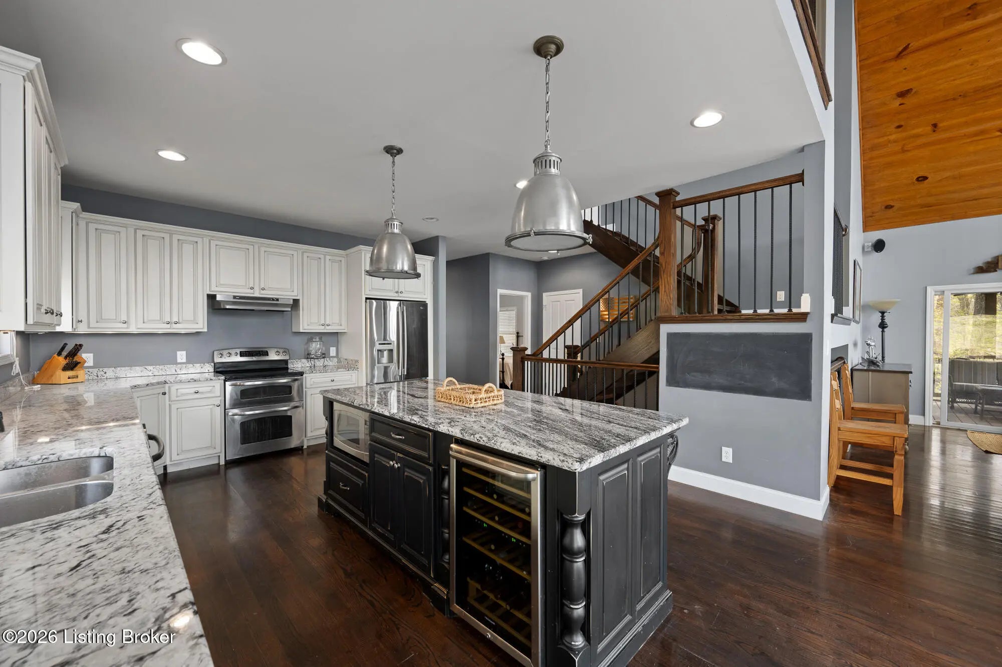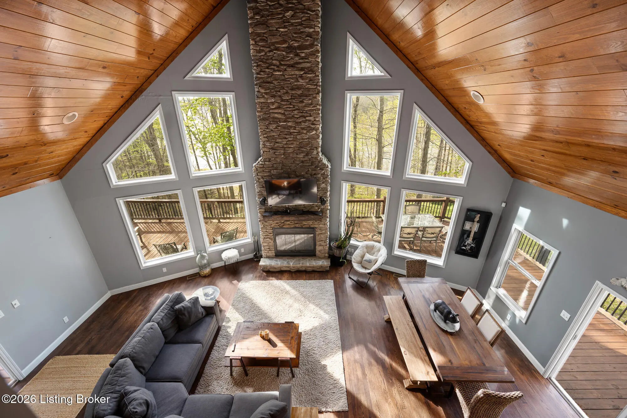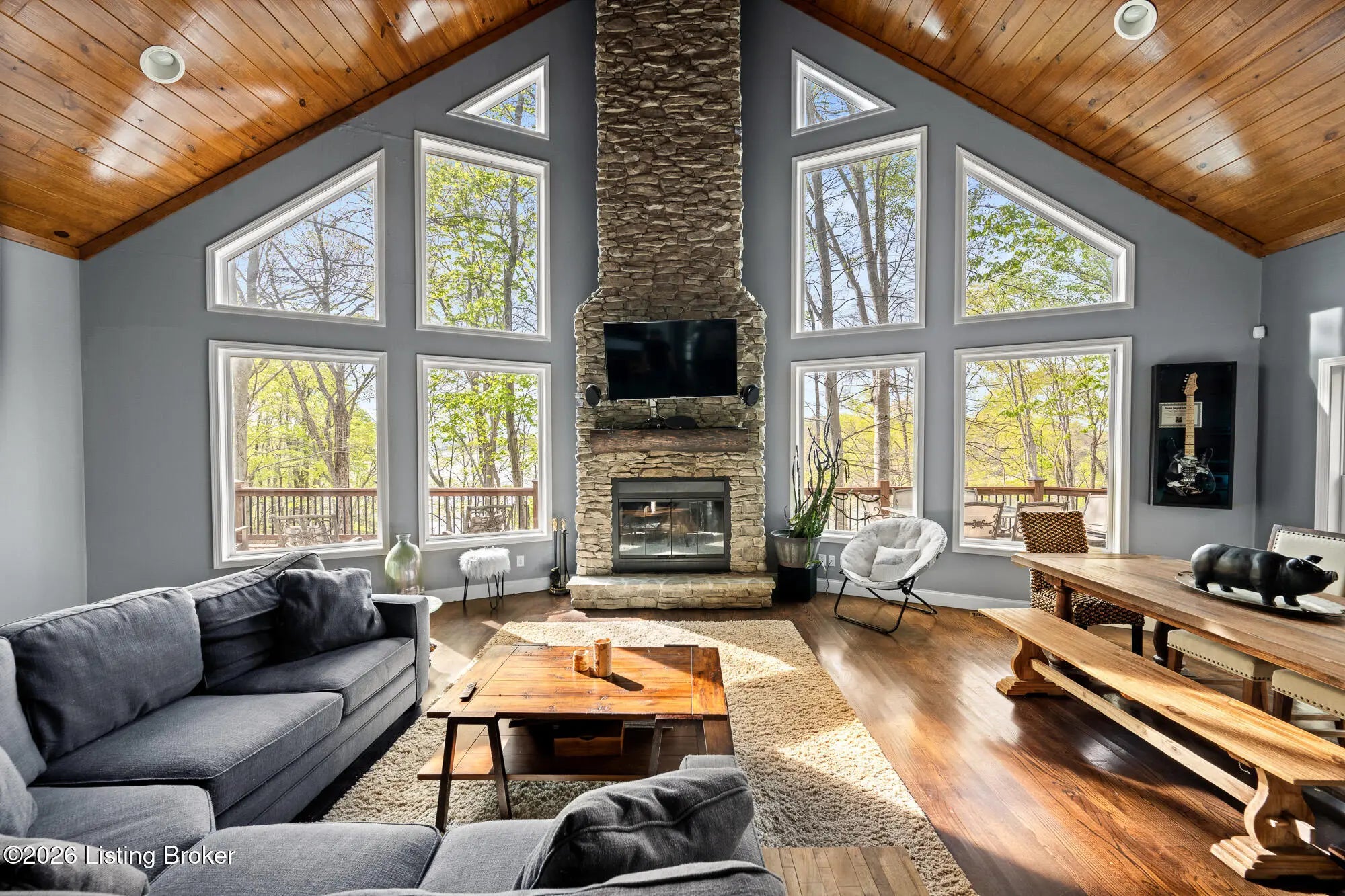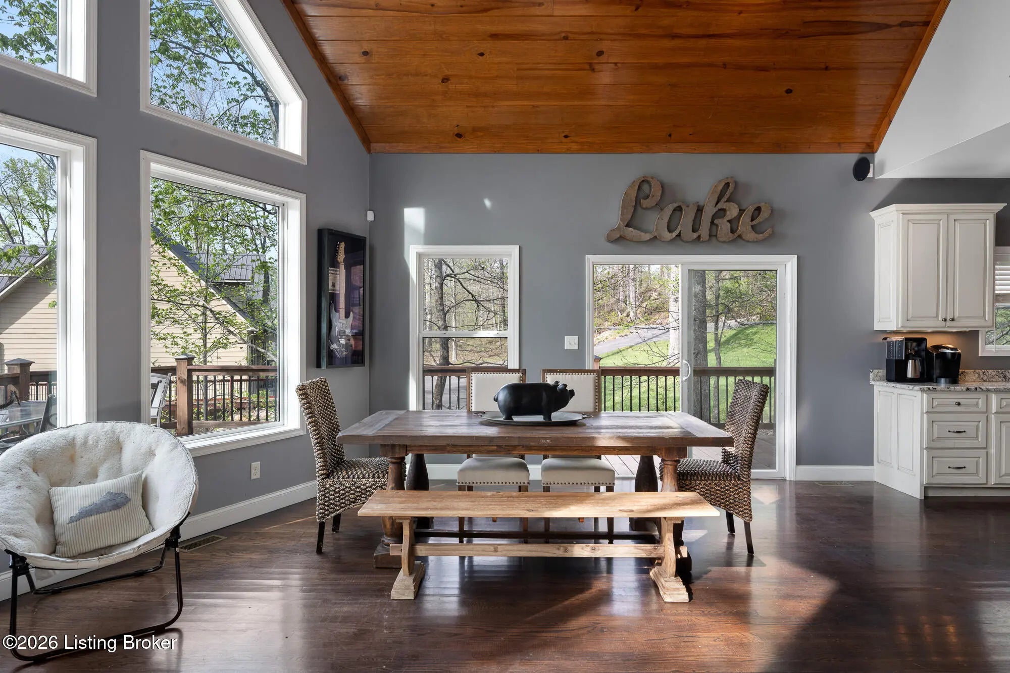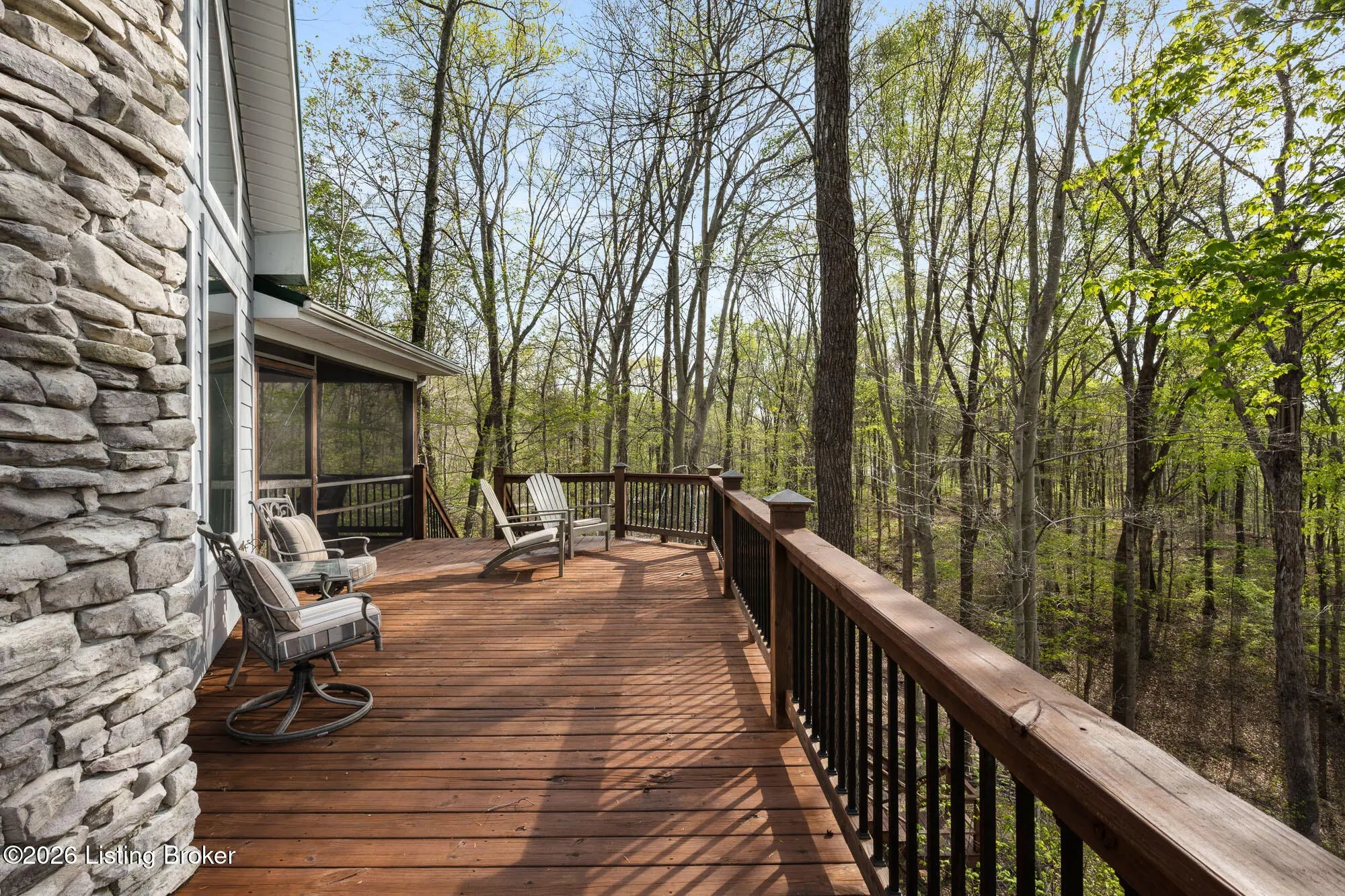 Lakefront views and timeless craftsmanship define this Amish-built retreat in the highly desirable gated, deed-restricted community of The Point at Nolin. Thoughtfully designed for both relaxation and entertaining, the home features expansive decks and a screened porch overlooking a , protected cove with neighborhood docks—perfect for soaking in breathtaking sunset views. Inside, soaring ceilings and a stunning stone fireplace anchor the great room, creating a warm and inviting gathering space. The open-concept layout flows seamlessly into the fully equipped kitchen, complete with granite countertops, a large island with seating, and a beverage refrigerator—truly the heart of the home. The main level offers a private primary suite with dual vanities and dual closets, along with a convenient laundry room with sink and abundant cabinetry, a dining area, and a half bath. Upstairs, two additional bedrooms and a full bath are connected by solid slab staircases, while a loft provides flexible overflow space. The finished walkout lower level is a true highlight, featuring a full bath and expansive areas ideal for additional sleeping quarters, recreation, or relaxation—perfect for hosting family and friends. An unfinished mechanical room provides excellent storage options. Outdoor enthusiasts will appreciate access to community boat docks via a neighborhood path (UTV or foot access), as well as on-site boat storage (based on availability, for a fee). Adjacent Nolin State Park offers easy access to hiking and biking trails, enhancing the appeal of this exceptional location. Whether you're seeking a full-time residence or a weekend escape, this property delivers the very best of Nolin Lake living—a place where lasting memories are made.