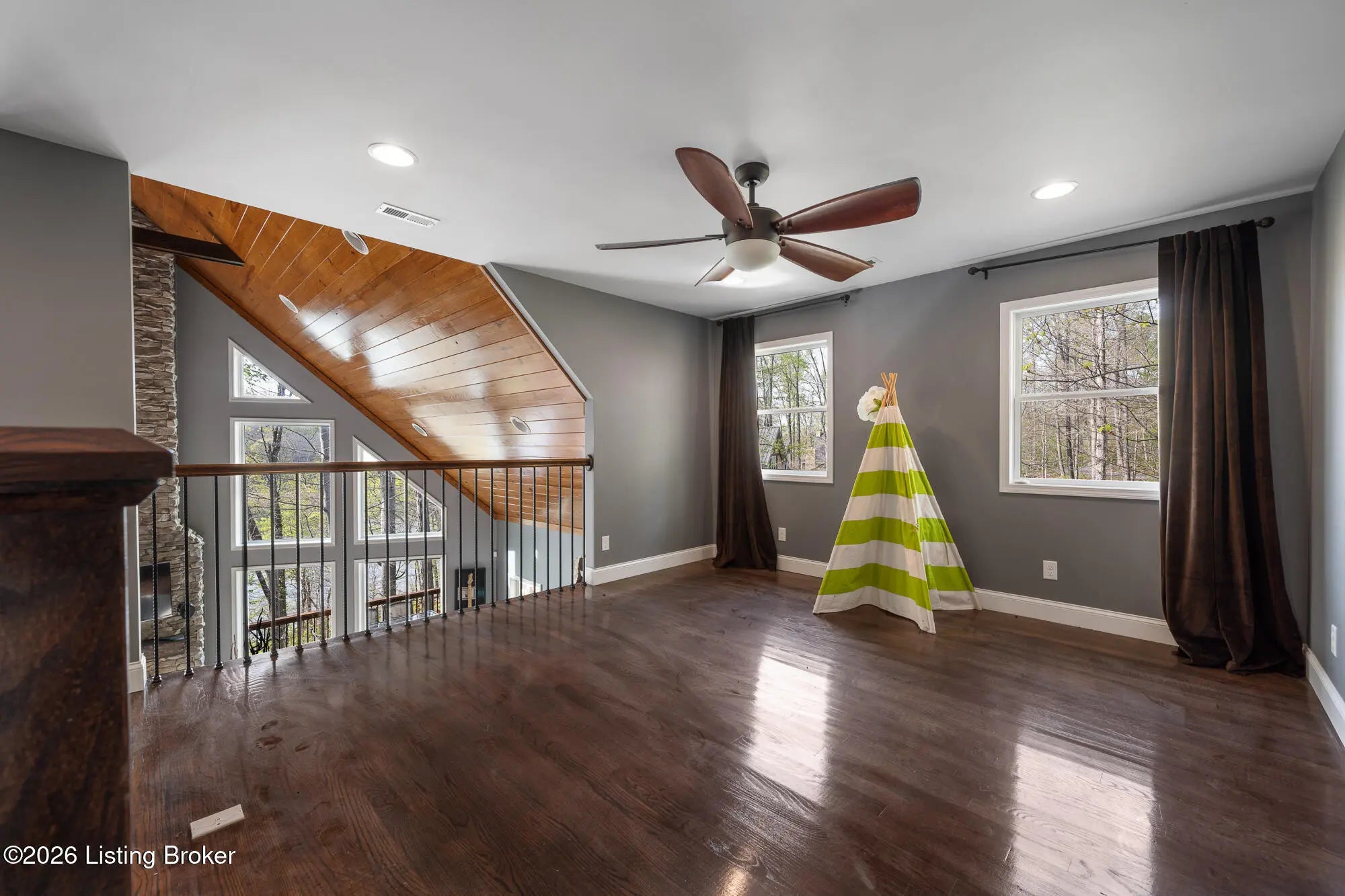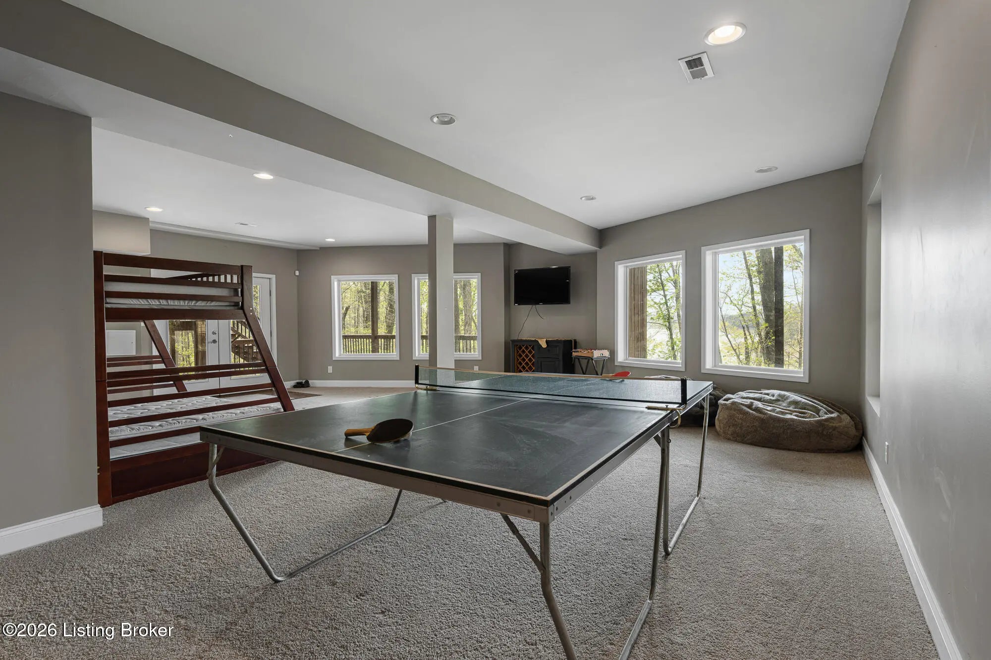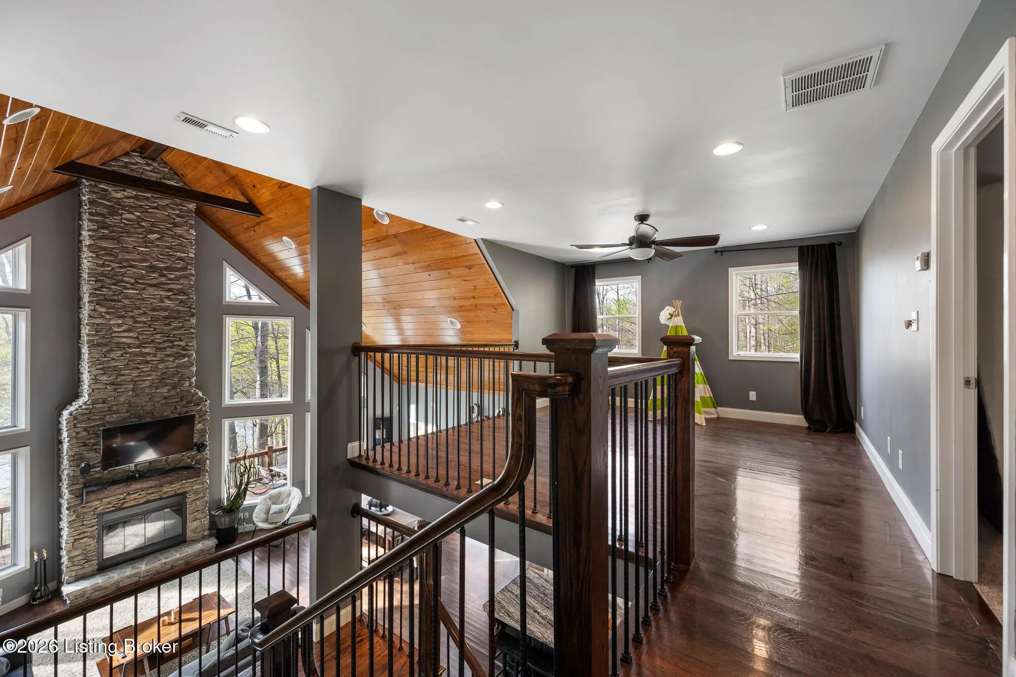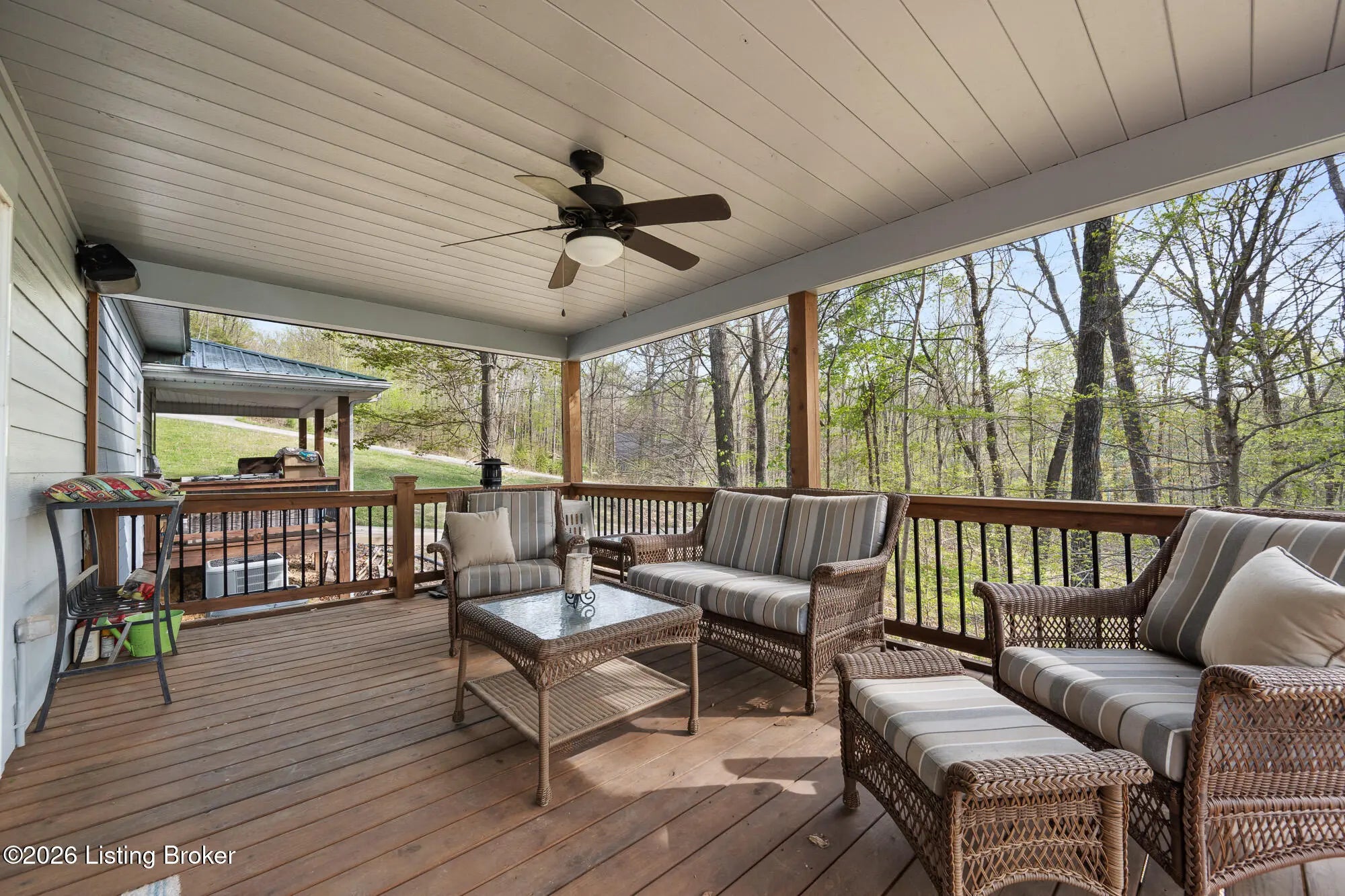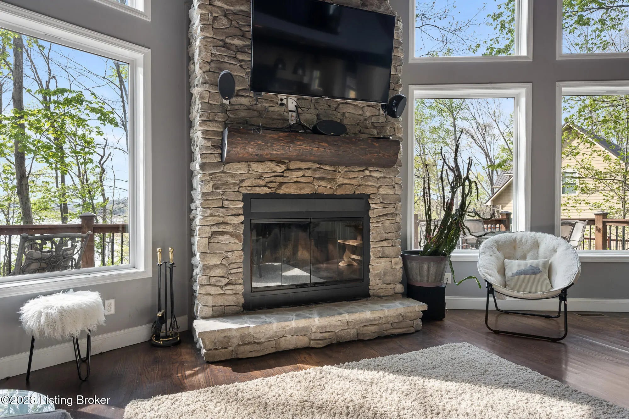 Lakefront views and timeless craftsmanship define this Amish-built retreat in the highly desirable gated, deed-restricted community of The Point at Nolin. Thoughtfully designed for both relaxation and entertaining, the home features expansive decks and a screened porch overlooking a , protected cove with neighborhood docks—perfect for soaking in breathtaking sunset views. Inside, soaring ceilings and a stunning stone fireplace anchor the great room, creating a warm and inviting gathering space. The open-concept layout flows seamlessly into the fully equipped kitchen, complete with granite countertops, a large island with seating, and a beverage refrigerator—truly the heart of the home. The main level offers a private primary suite with dual vanities and dual closets, along with a convenient laundry room with sink and abundant cabinetry, a dining area, and a half bath. Upstairs, two additional bedrooms and a full bath are connected by solid slab staircases, while a loft provides flexible overflow space. The finished walkout lower level is a true highlight, featuring a full bath and expansive areas ideal for additional sleeping quarters, recreation, or relaxation—perfect for hosting family and friends. An unfinished mechanical room provides excellent storage options. Outdoor enthusiasts will appreciate access to community boat docks via a neighborhood path (UTV or foot access), as well as on-site boat storage (based on availability, for a fee). Adjacent Nolin State Park offers easy access to hiking and biking trails, enhancing the appeal of this exceptional location. Whether you're seeking a full-time residence or a weekend escape, this property delivers the very best of Nolin Lake living—a place where lasting memories are made.