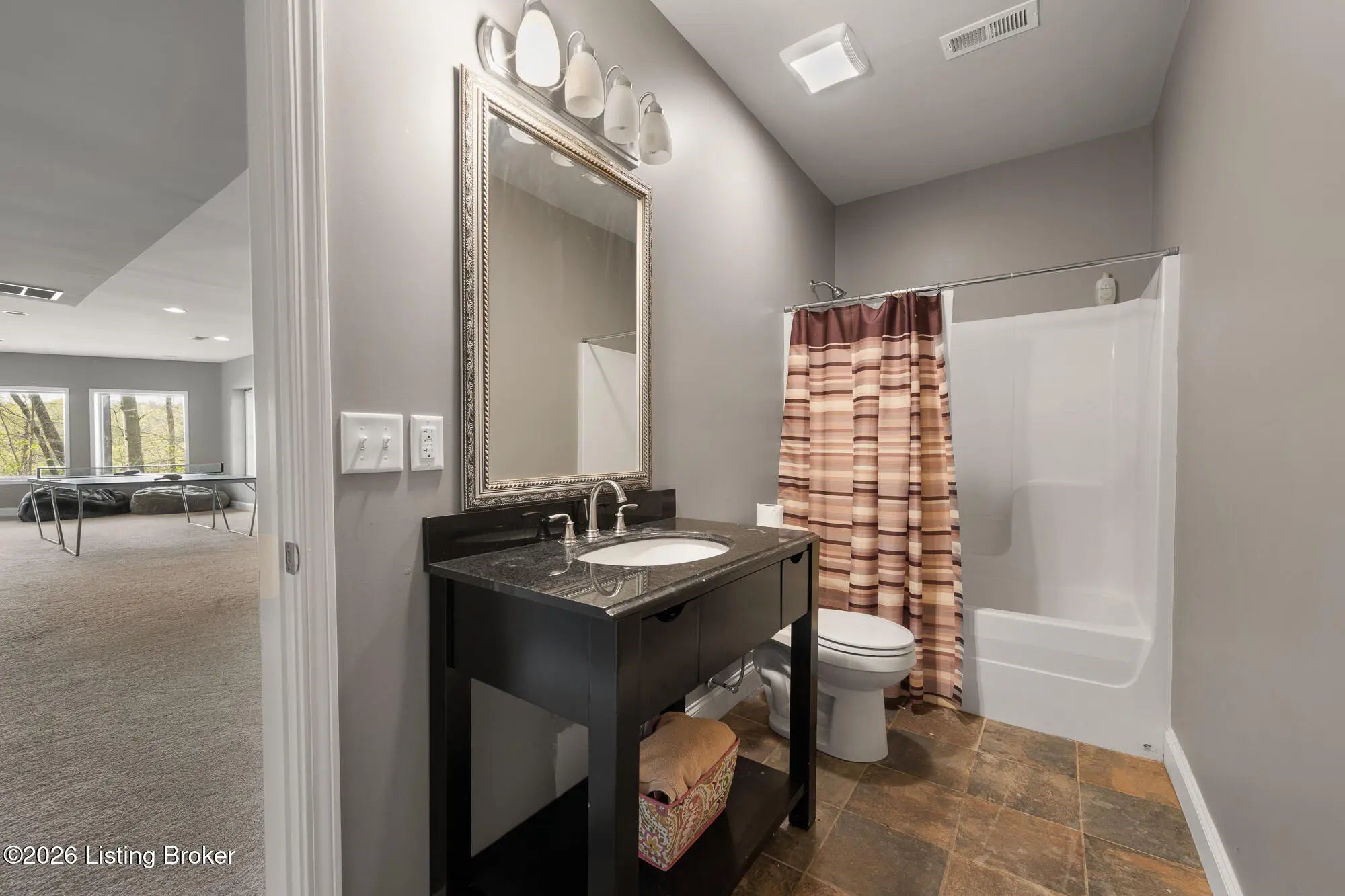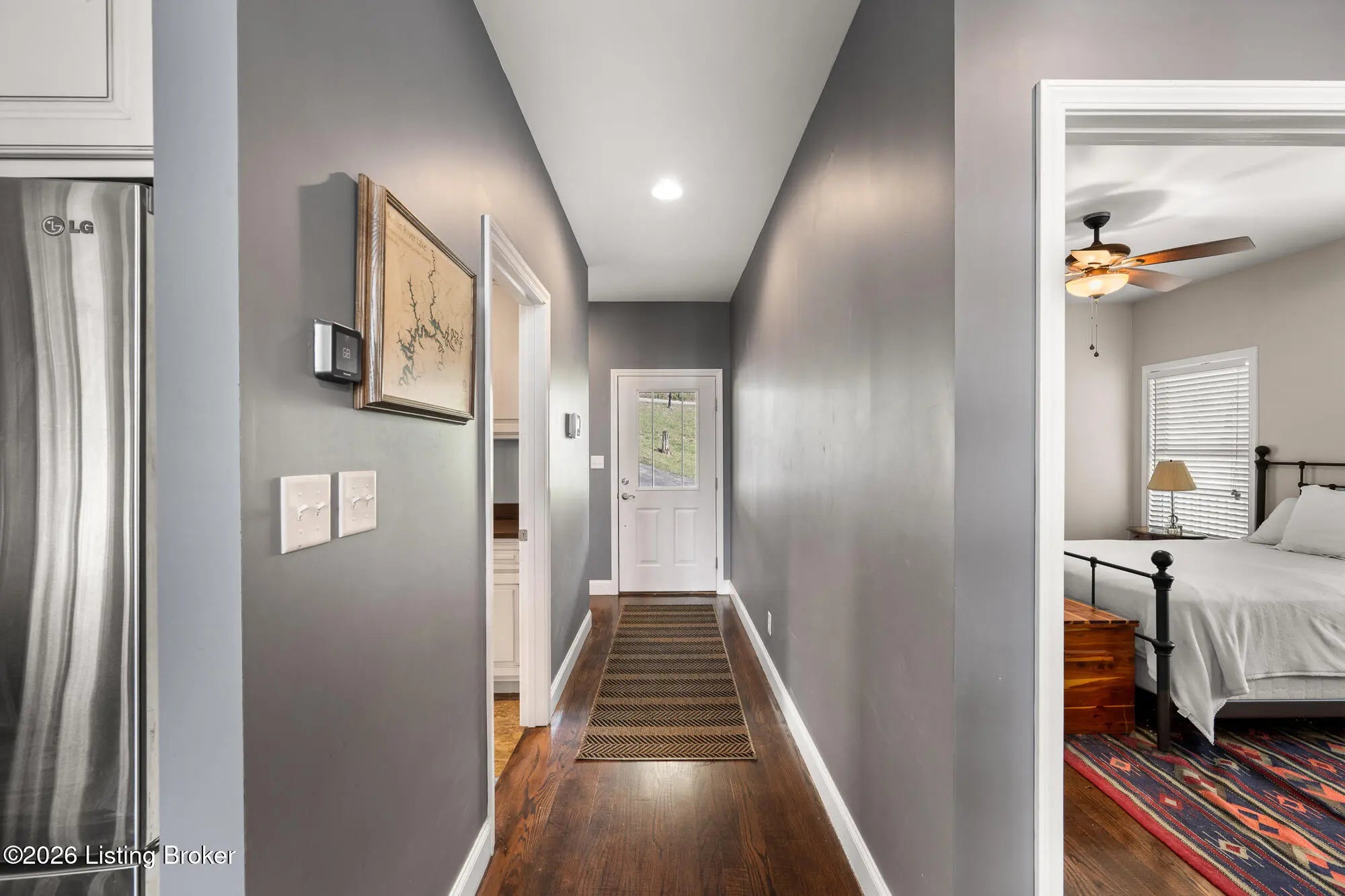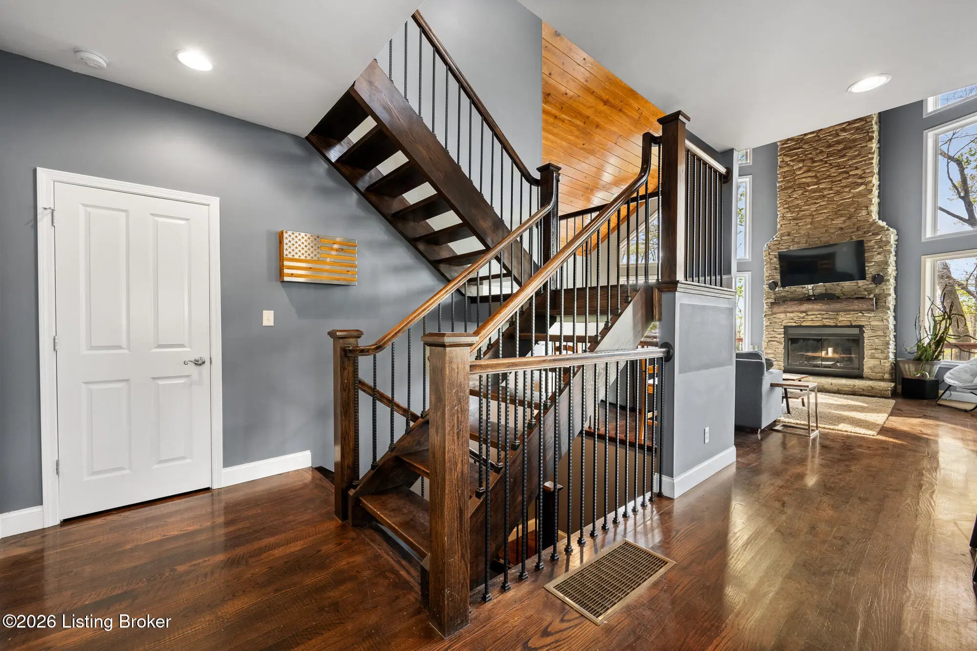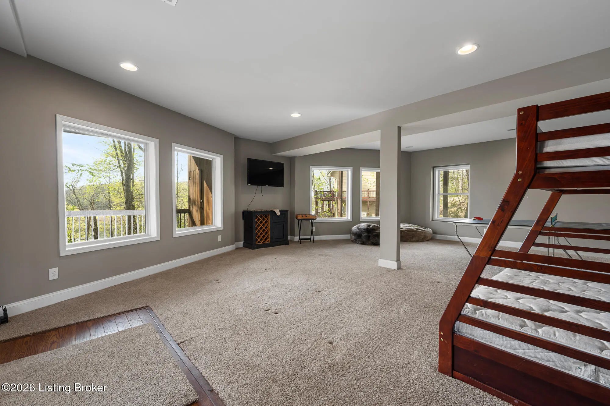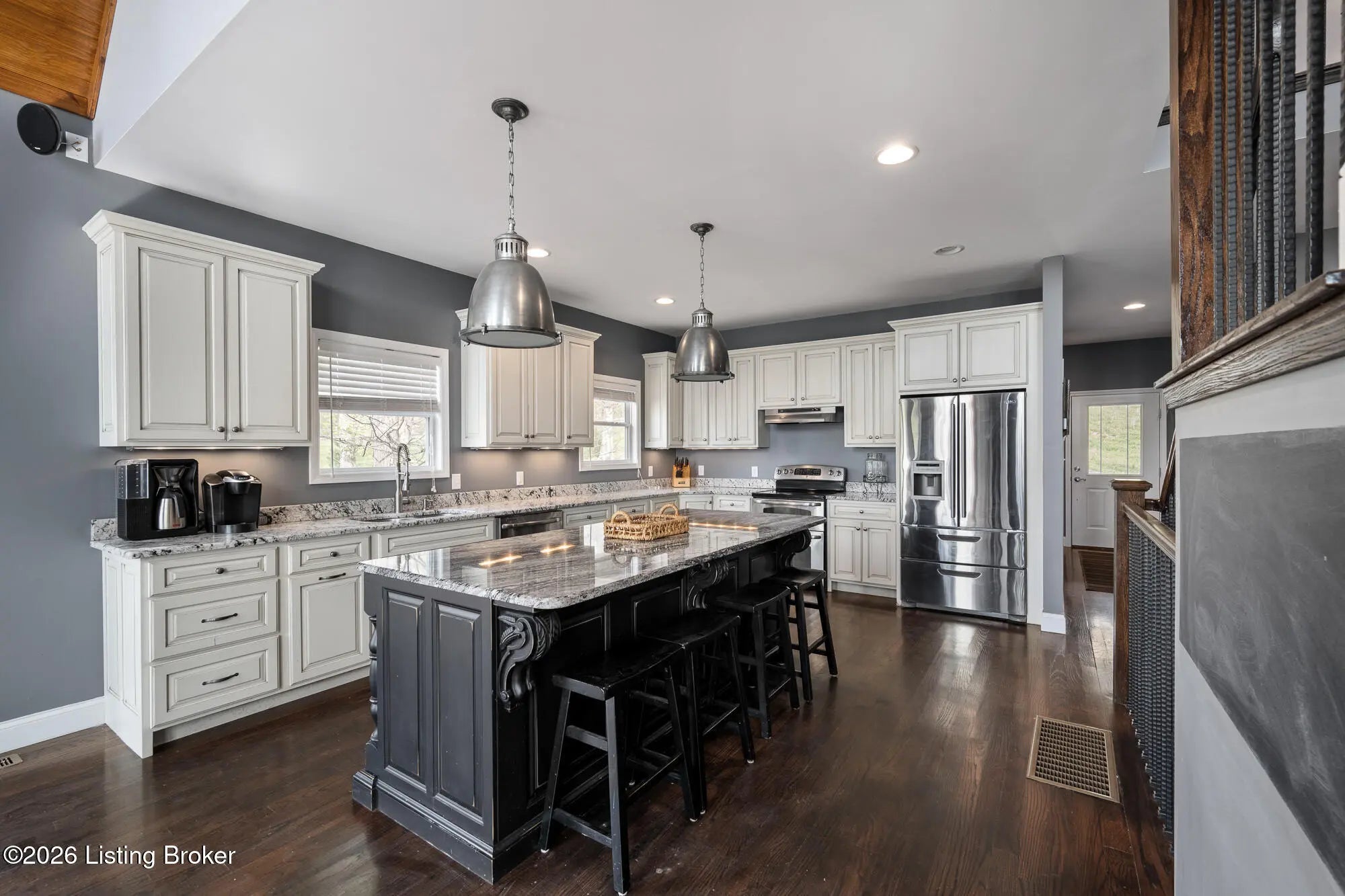 Lakefront views and timeless craftsmanship define this Amish-built retreat in the highly desirable gated, deed-restricted community of The Point at Nolin. Thoughtfully designed for both relaxation and entertaining, the home features expansive decks and a screened porch overlooking a , protected cove with neighborhood docks—perfect for soaking in breathtaking sunset views. Inside, soaring ceilings and a stunning stone fireplace anchor the great room, creating a warm and inviting gathering space. The open-concept layout flows seamlessly into the fully equipped kitchen, complete with granite countertops, a large island with seating, and a beverage refrigerator—truly the heart of the home. The main level offers a private primary suite with dual vanities and dual closets, along with a convenient laundry room with sink and abundant cabinetry, a dining area, and a half bath. Upstairs, two additional bedrooms and a full bath are connected by solid slab staircases, while a loft provides flexible overflow space. The finished walkout lower level is a true highlight, featuring a full bath and expansive areas ideal for additional sleeping quarters, recreation, or relaxation—perfect for hosting family and friends. An unfinished mechanical room provides excellent storage options. Outdoor enthusiasts will appreciate access to community boat docks via a neighborhood path (UTV or foot access), as well as on-site boat storage (based on availability, for a fee). Adjacent Nolin State Park offers easy access to hiking and biking trails, enhancing the appeal of this exceptional location. Whether you're seeking a full-time residence or a weekend escape, this property delivers the very best of Nolin Lake living—a place where lasting memories are made.
